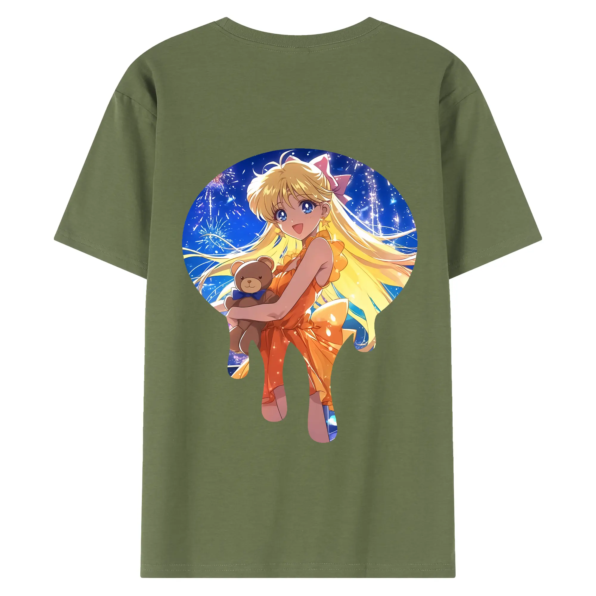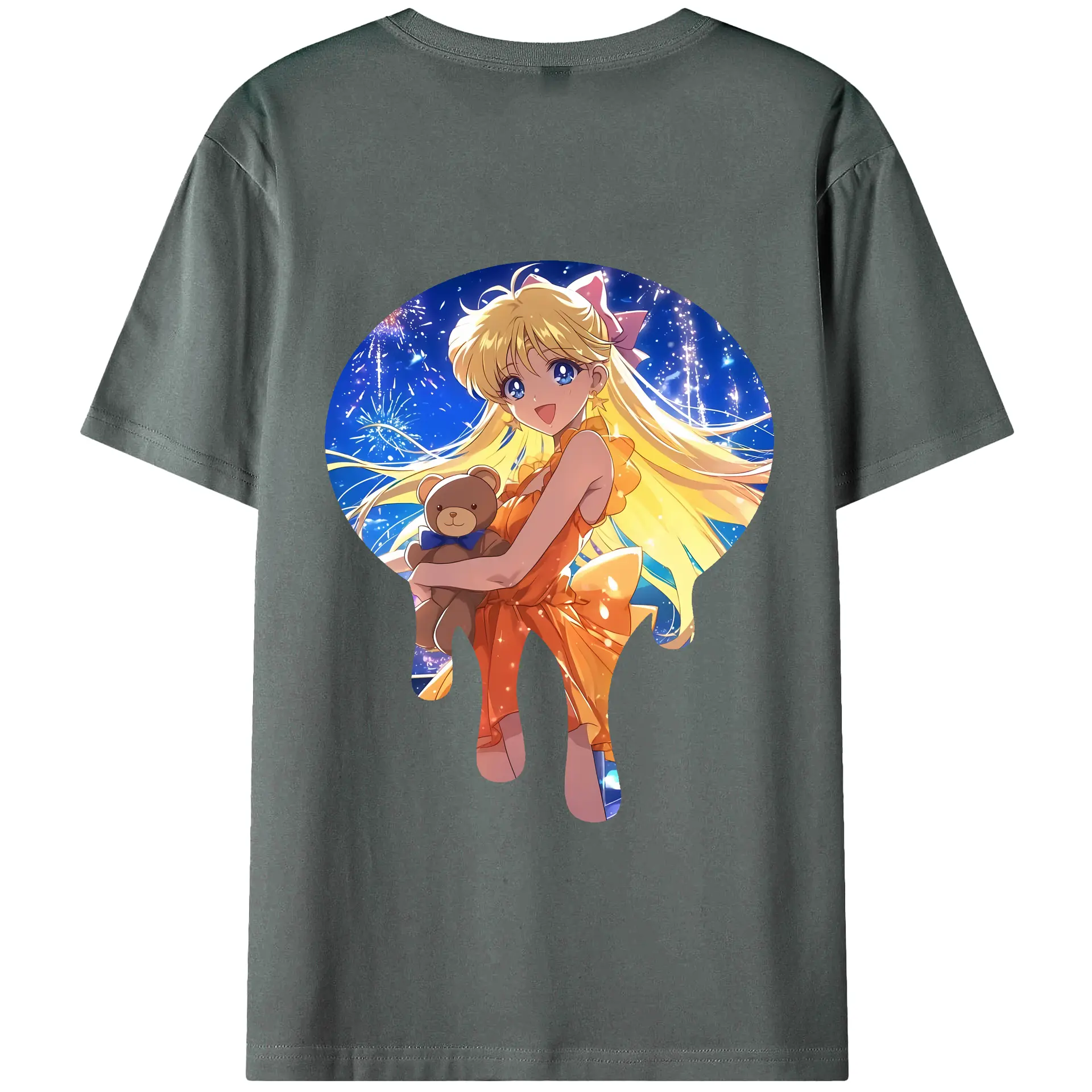 美少女戦士セーラームーン グッズ 愛野 美奈子 - 綿100% 半袖Tシャツ ・ フロントプリント ・ 快適 通気性 ・ 日常使い 散歩 スポーツ用