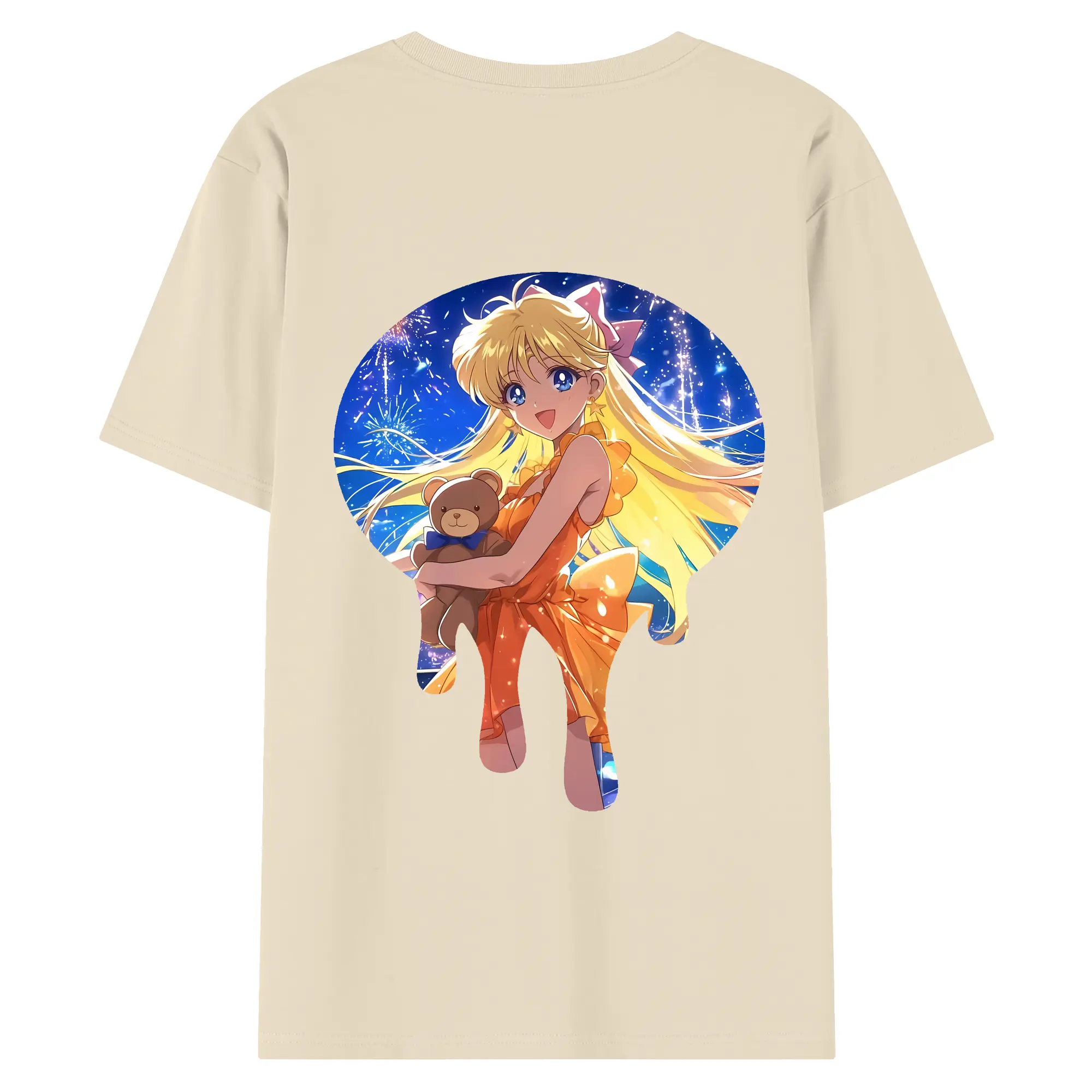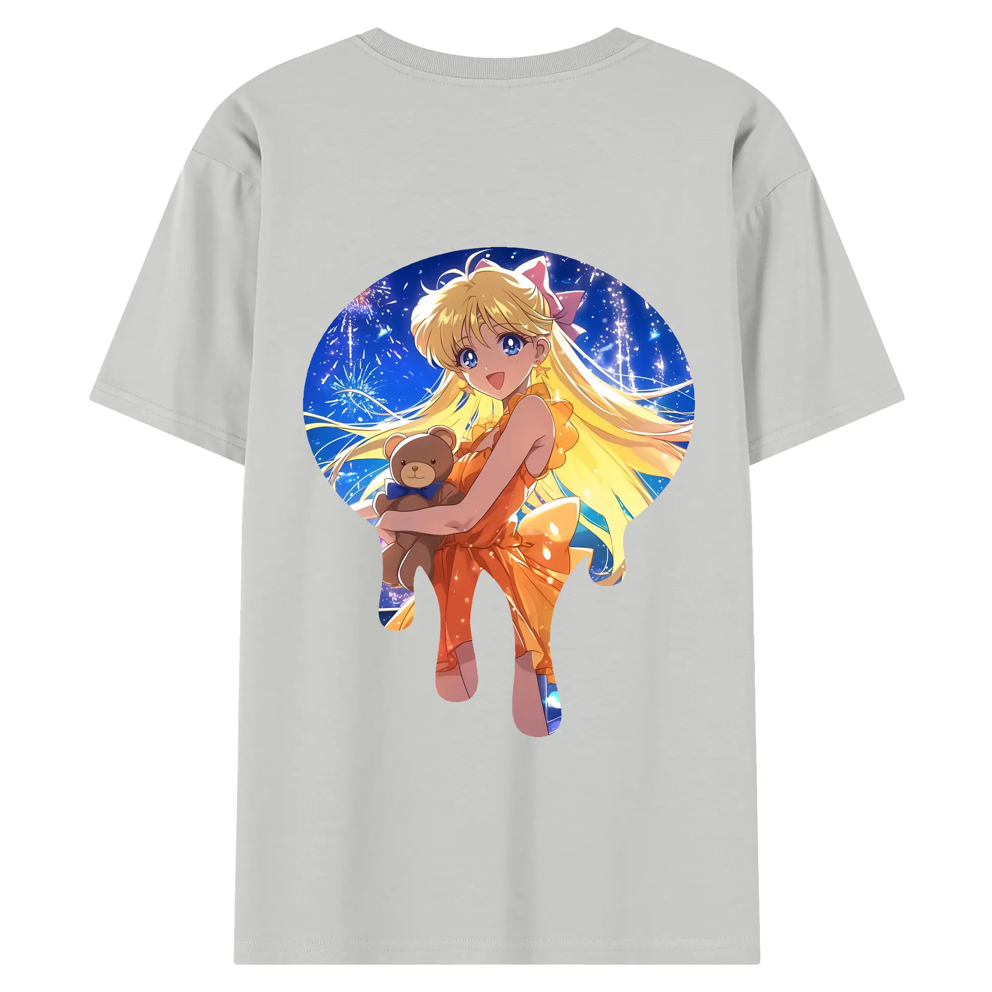 美少女戦士セーラームーン グッズ 愛野 美奈子 - 綿100% ヴィンテージ風 半袖Tシャツ ・ 背面プリント ・ 柔らか肌触り ・ 通気性 快適 ・ スポーツ カジュアル 外出用