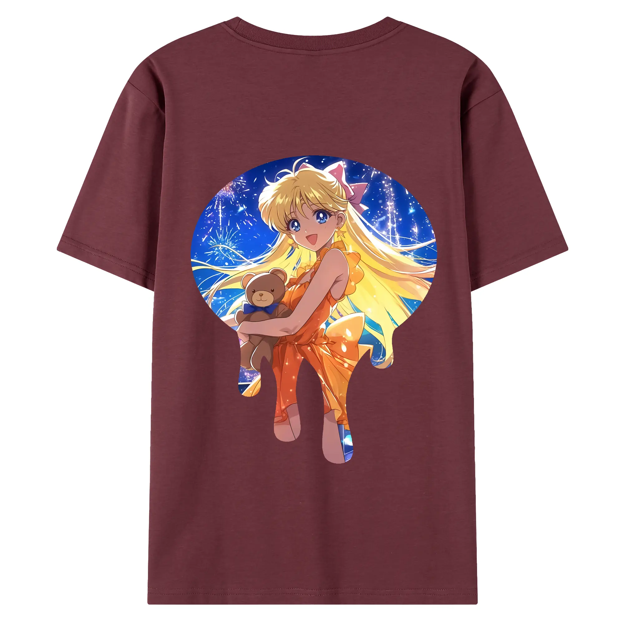 美少女戦士セーラームーン グッズ 木野 まこと - 綿100% 半袖Tシャツ ・ バックプリント ・ 快適 通気性 ・ 日常使い 散歩 スポーツ用