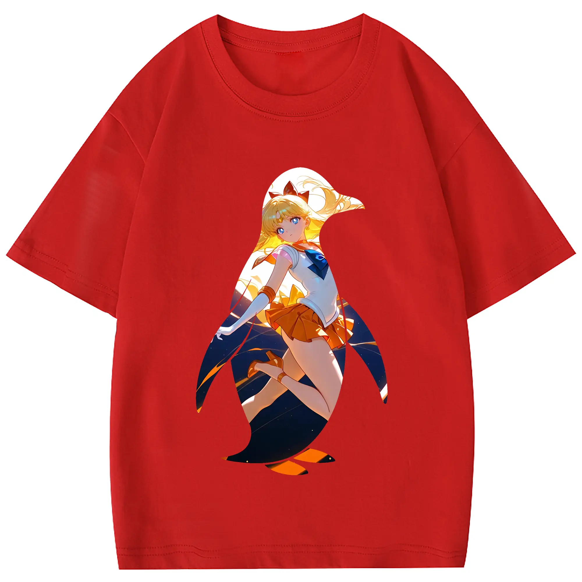 美少女戦士セーラームーン グッズ 愛野 美奈子 - 綿100% 半袖Tシャツ ・ フロントプリント ・ 快適 通気性 ・ 日常使い 散歩 スポーツ用