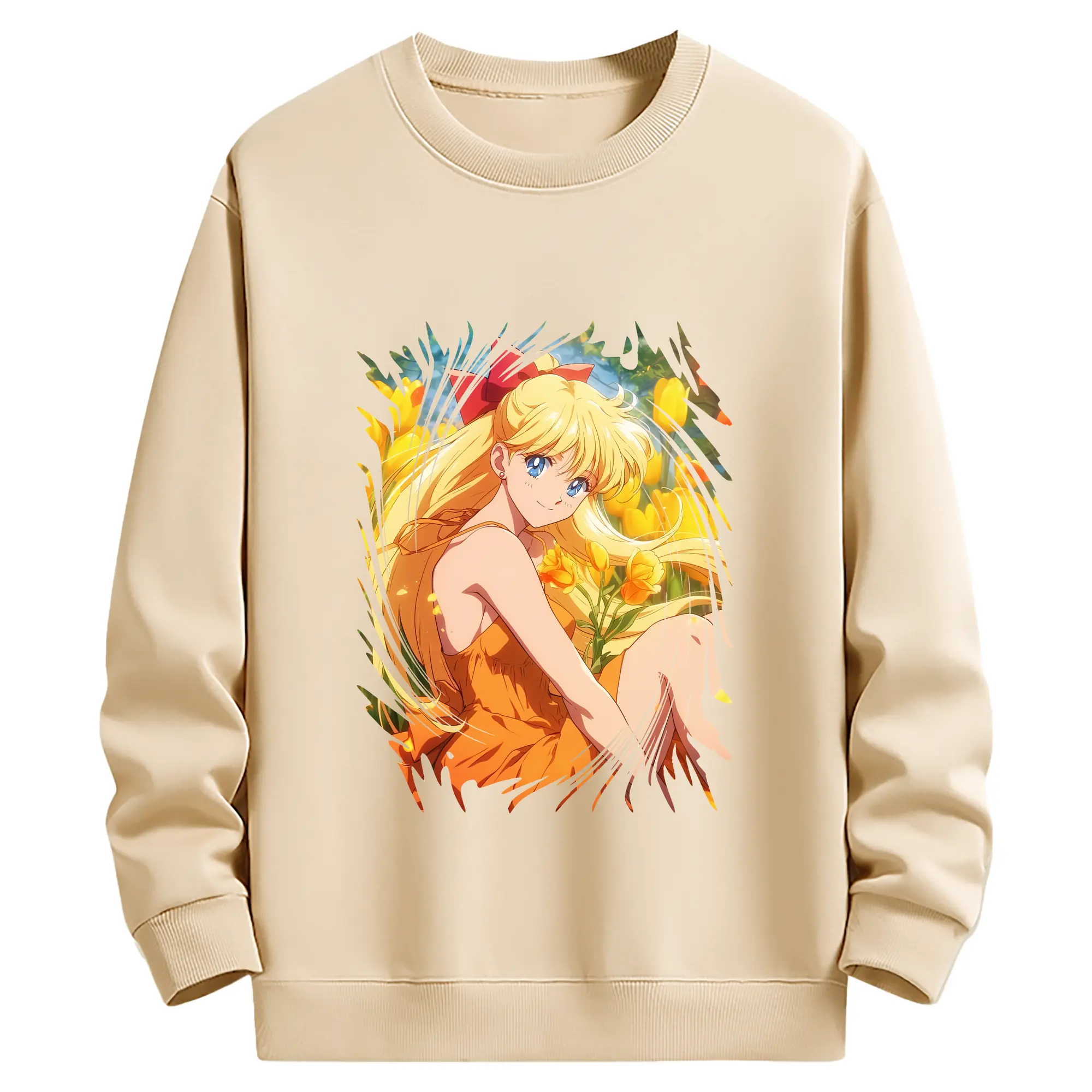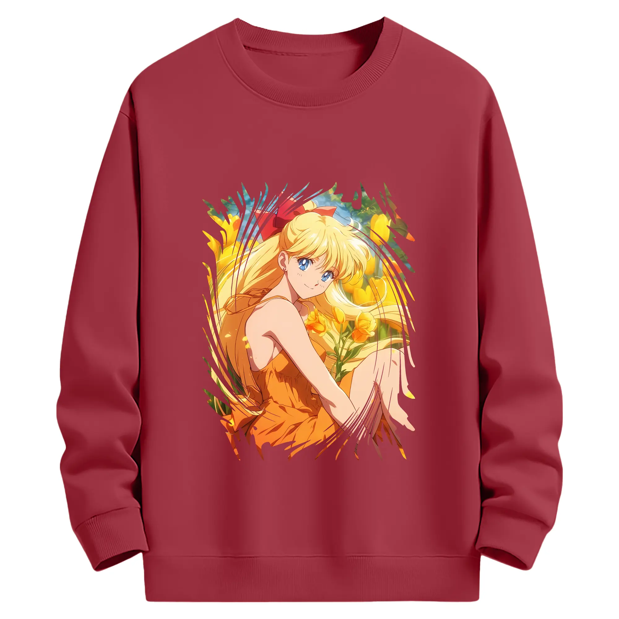 美少女戦士セーラームーン グッズ 愛野 美奈子 - 薄手 クルーネック スウェット 裏毛260g · ポリエステル 春秋向け カジュアル 男女兼用 · トレーナー デイリー スポーツ 散歩に最適