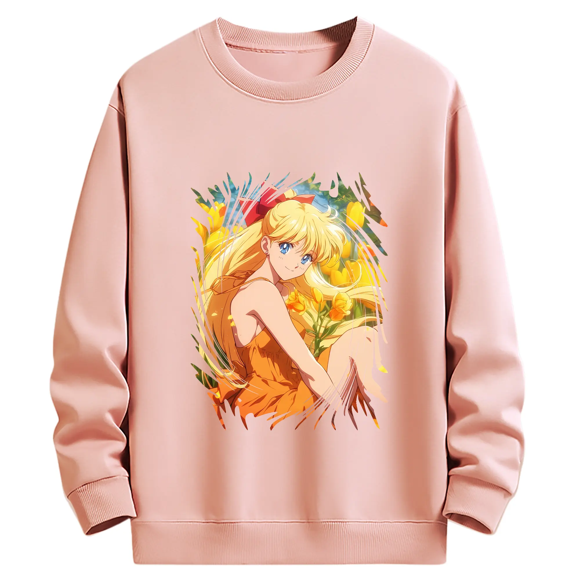 美少女戦士セーラームーン グッズ 愛野 美奈子 - 薄手 クルーネック スウェット 裏毛260g · ポリエステル 春秋向け カジュアル 男女兼用 · トレーナー デイリー スポーツ 散歩に最適