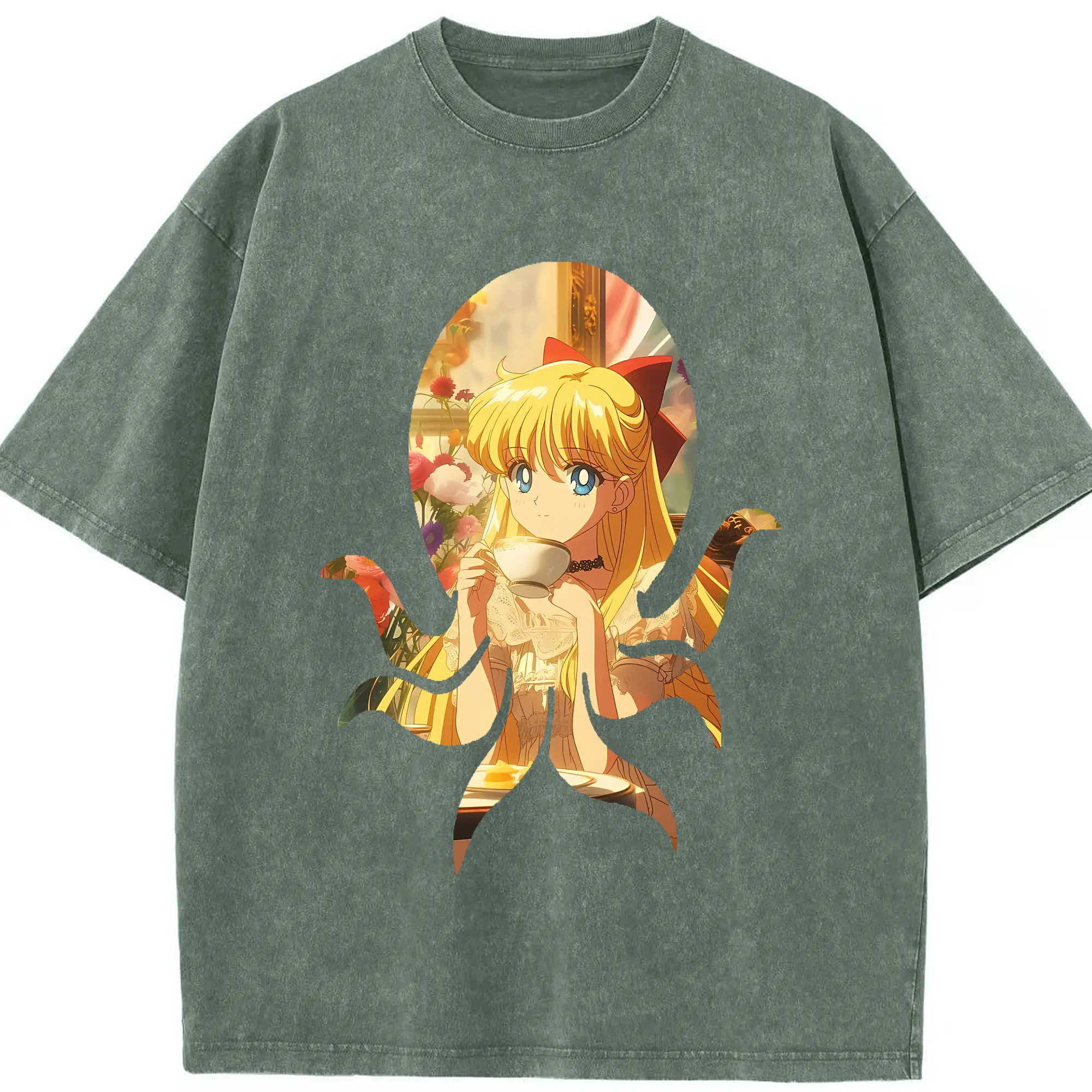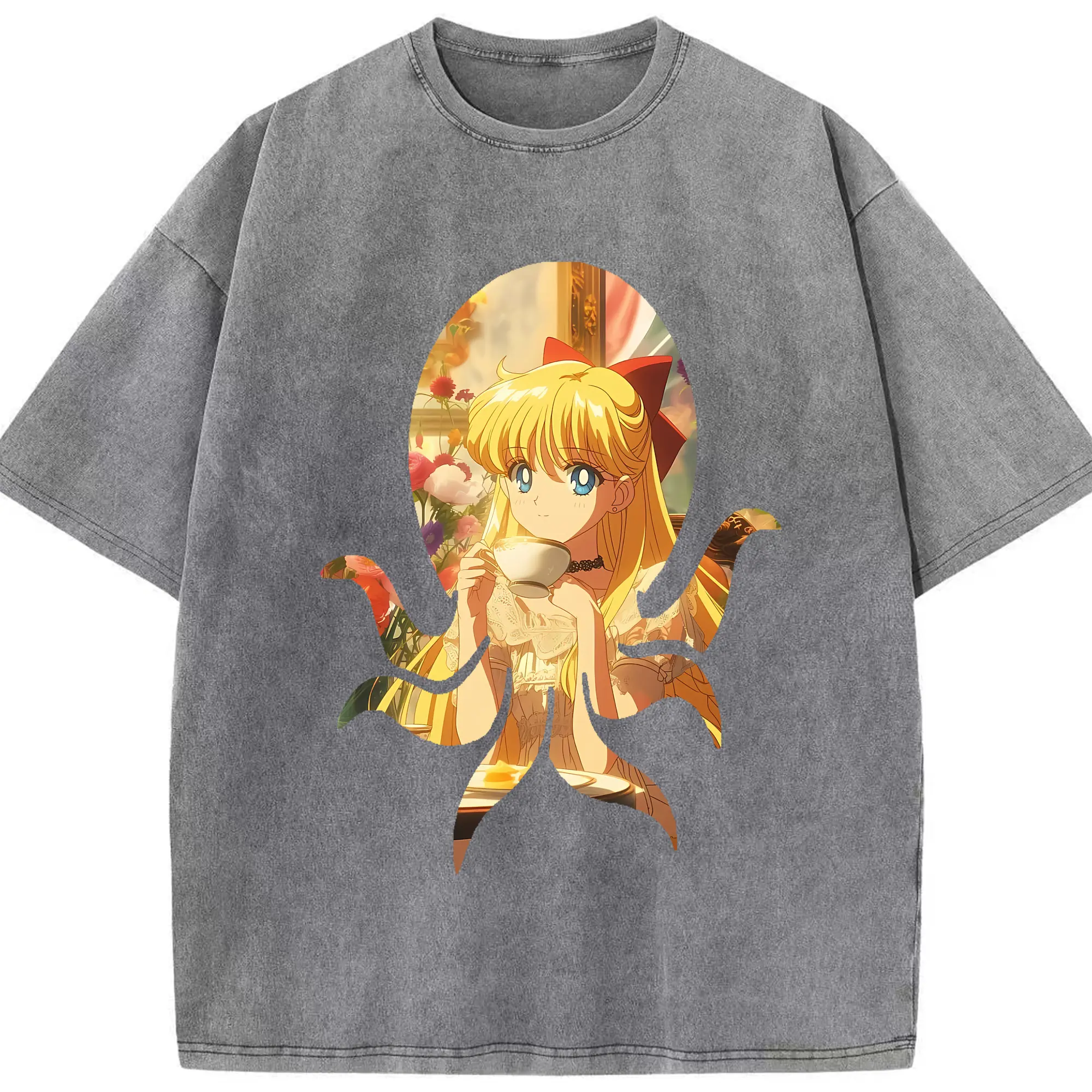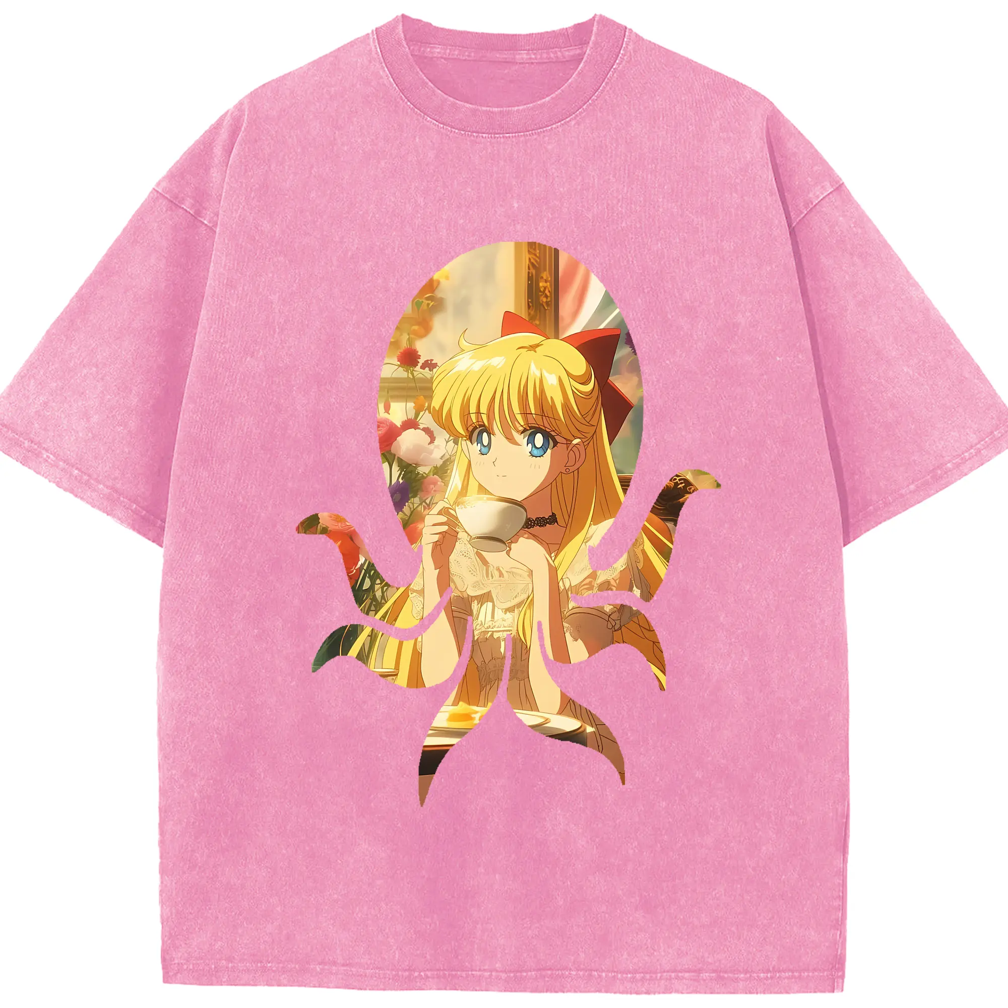 美少女戦士セーラームーン グッズ 愛野 美奈子 - 綿100% ヴィンテージ風 半袖Tシャツ ・ 背面プリント ・ 柔らか肌触り ・ 通気性 快適 ・ スポーツ カジュアル 外出用