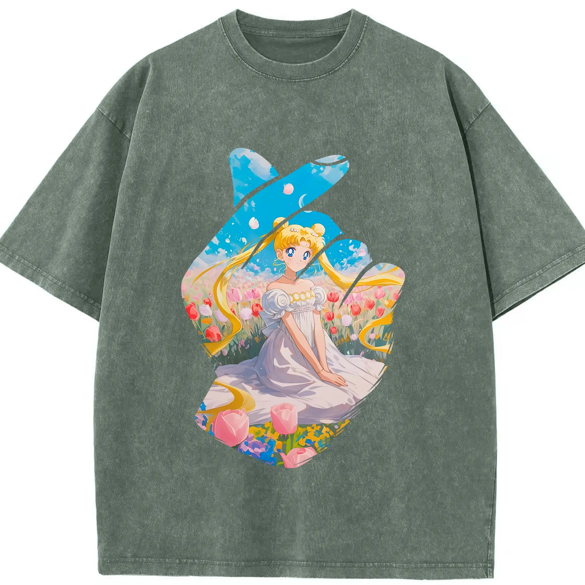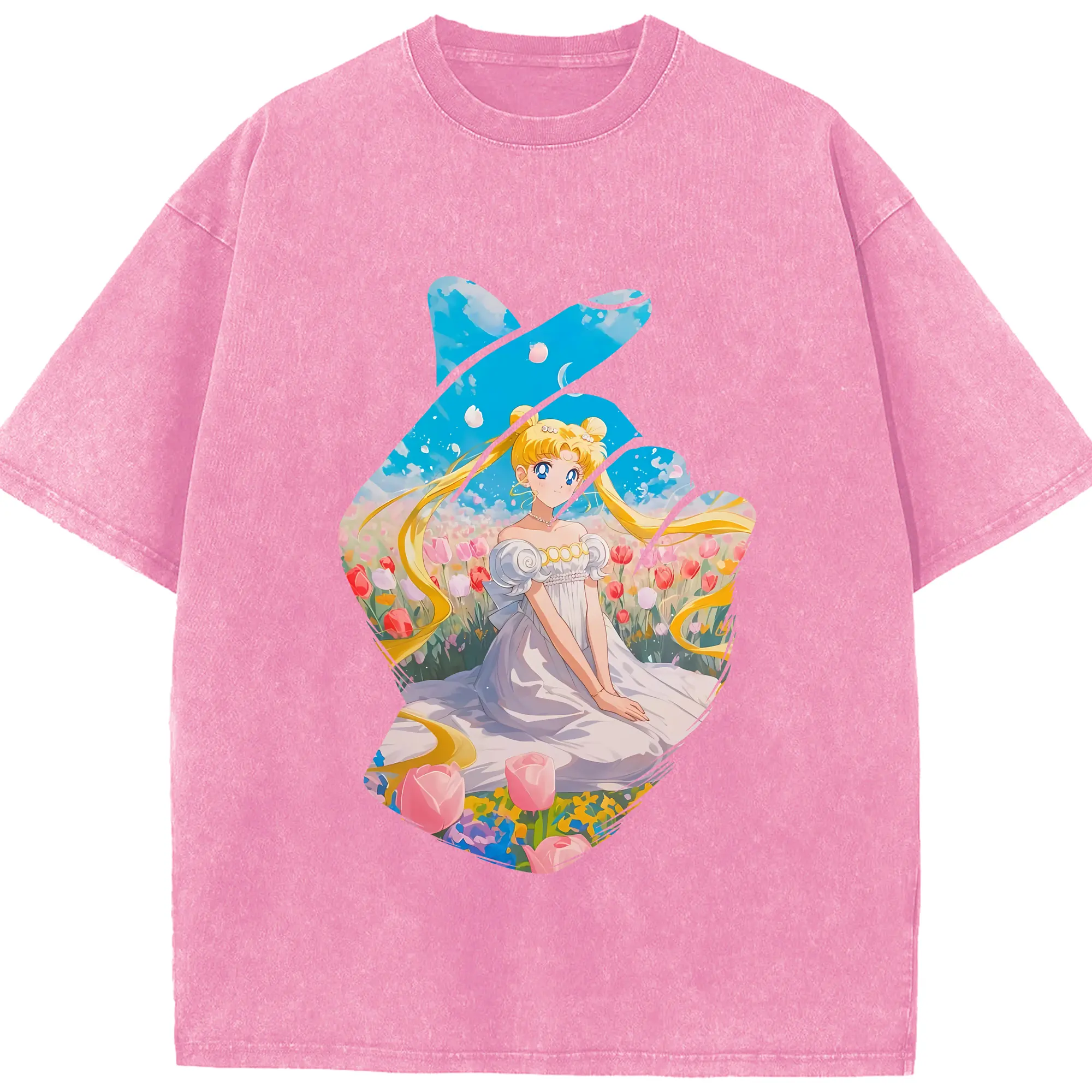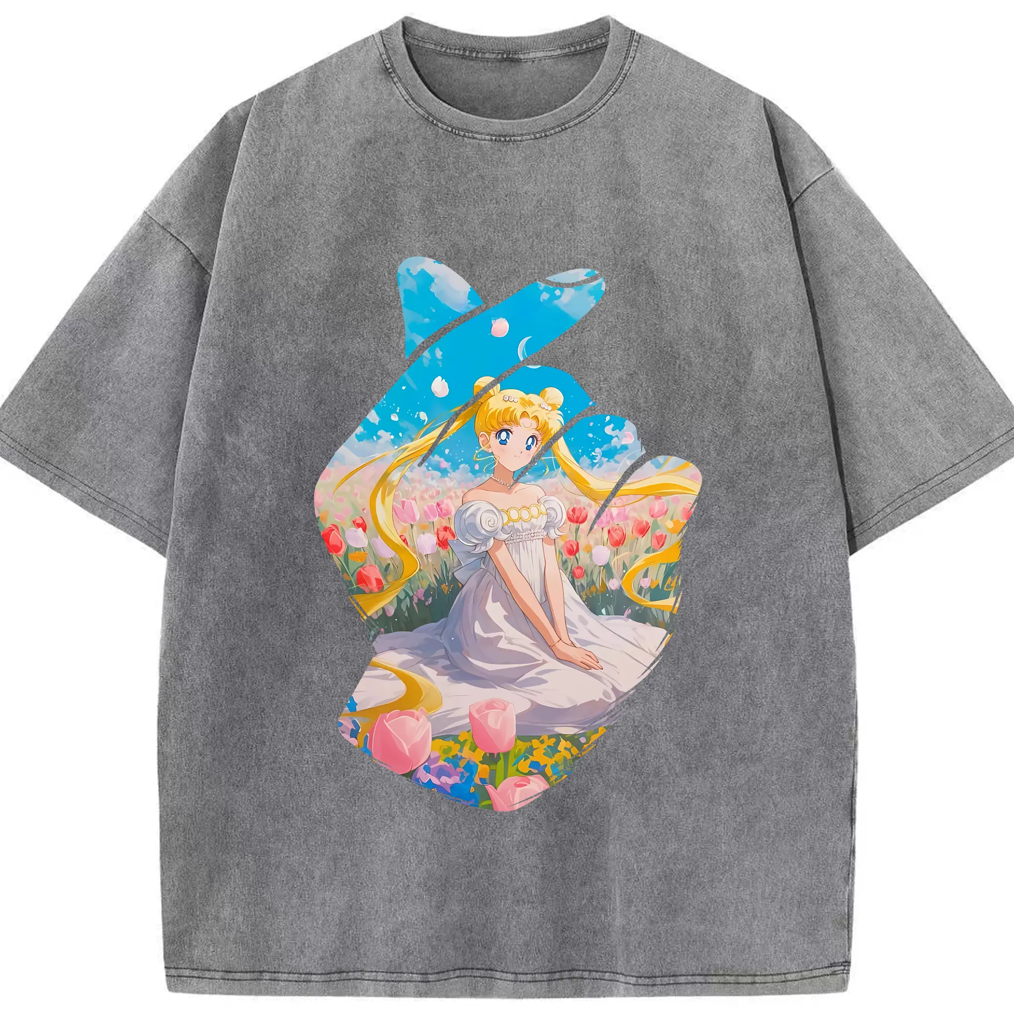 美少女戦士セーラームーン グッズ 愛野 美奈子 - 綿100% ヴィンテージ風 半袖Tシャツ ・ 背面プリント ・ 柔らか肌触り ・ 通気性 快適 ・ スポーツ カジュアル 外出用