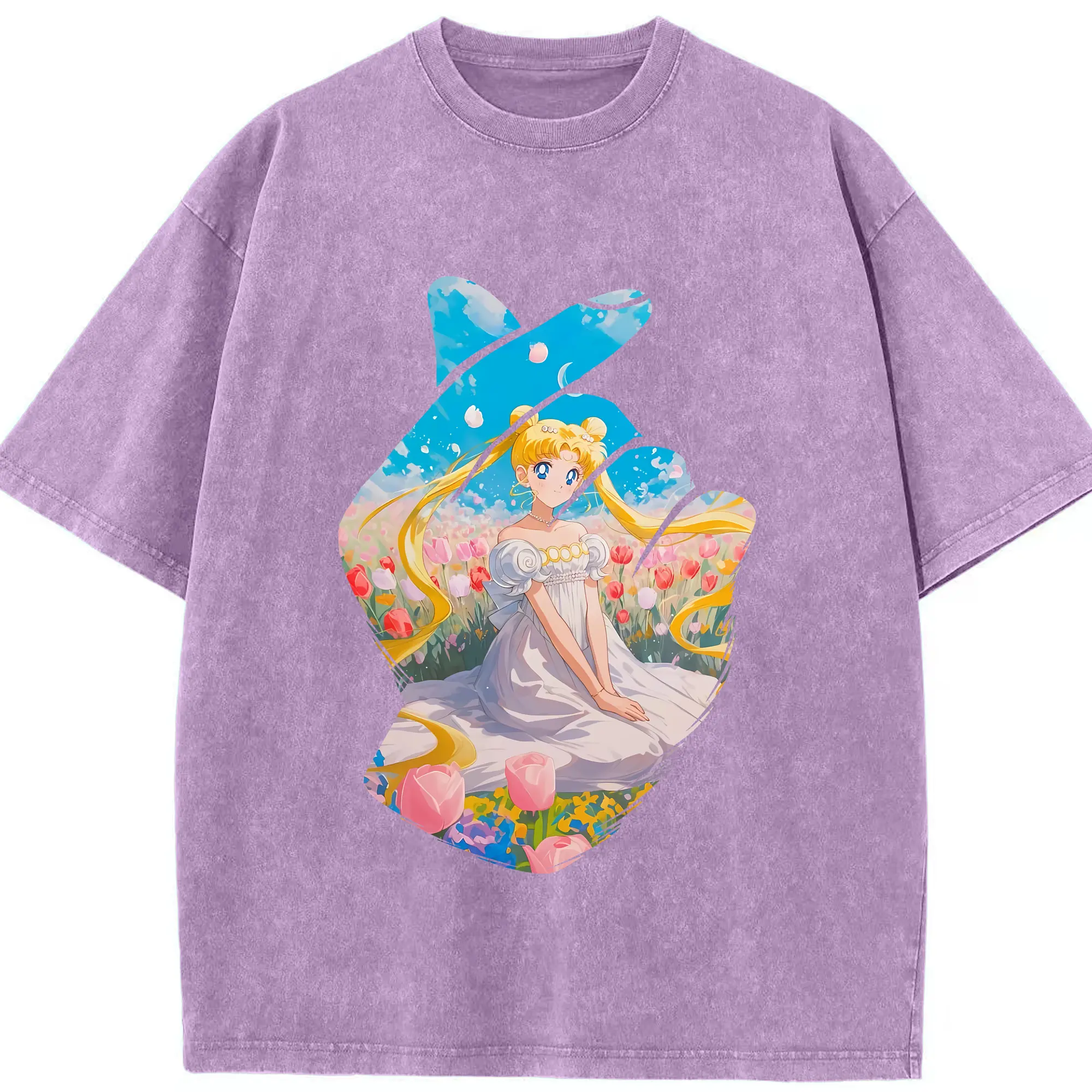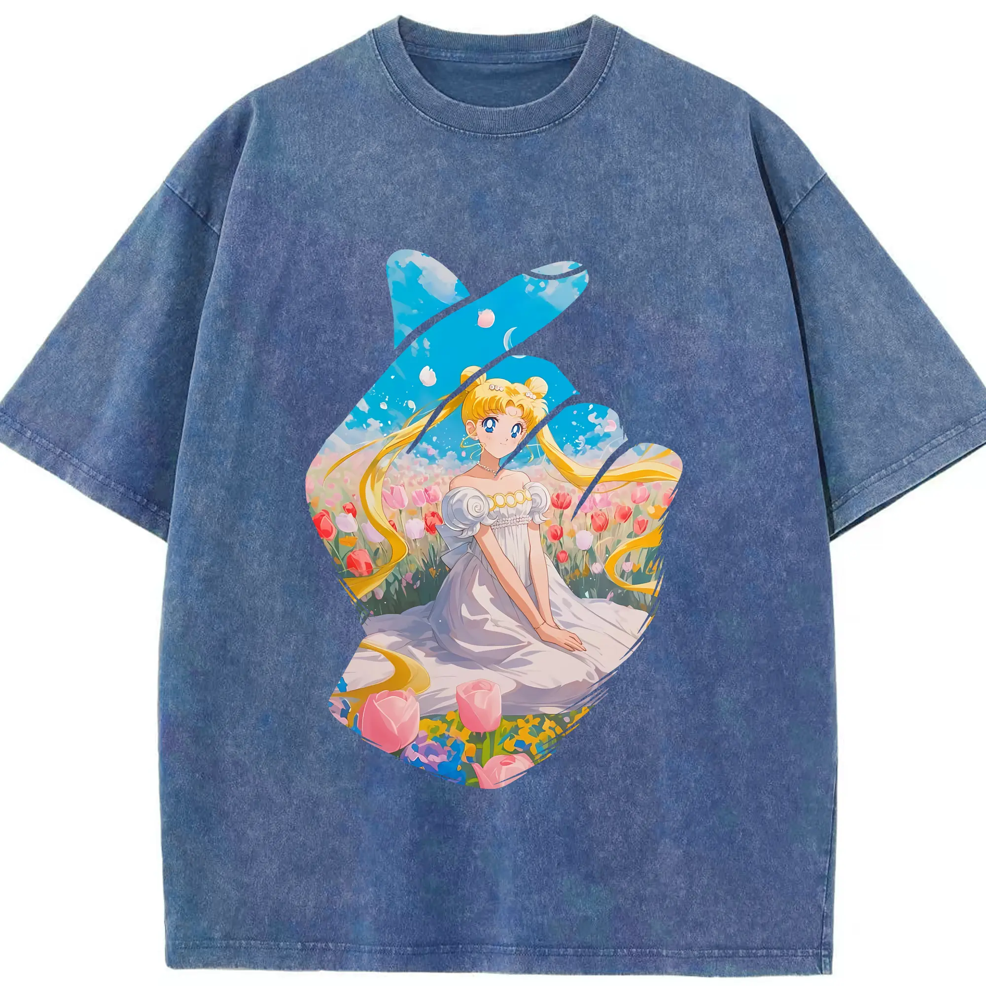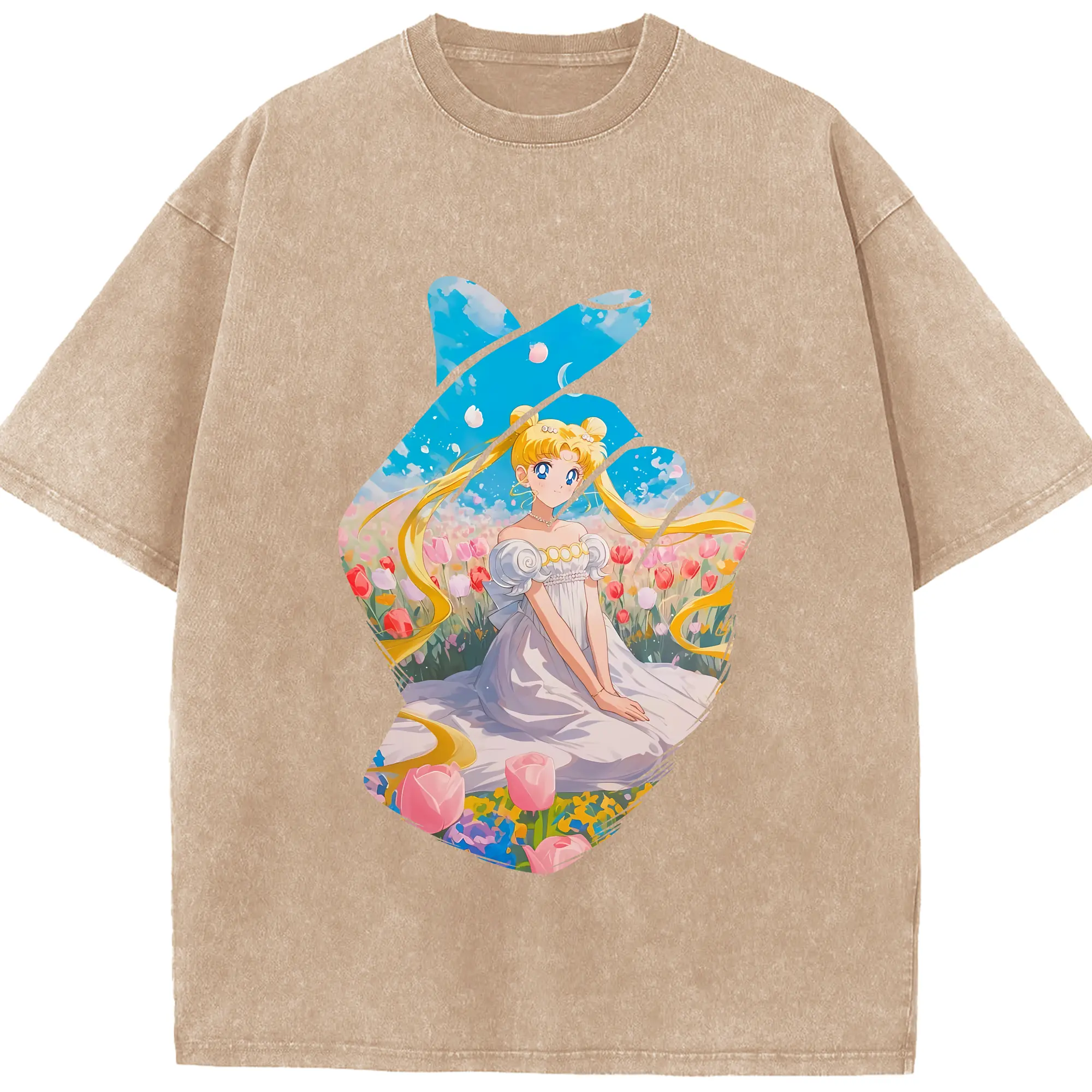 美少女戦士セーラームーン グッズ 愛野 美奈子 - 綿100% ヴィンテージ風 半袖Tシャツ ・ 背面プリント ・ 柔らか肌触り ・ 通気性 快適 ・ スポーツ カジュアル 外出用