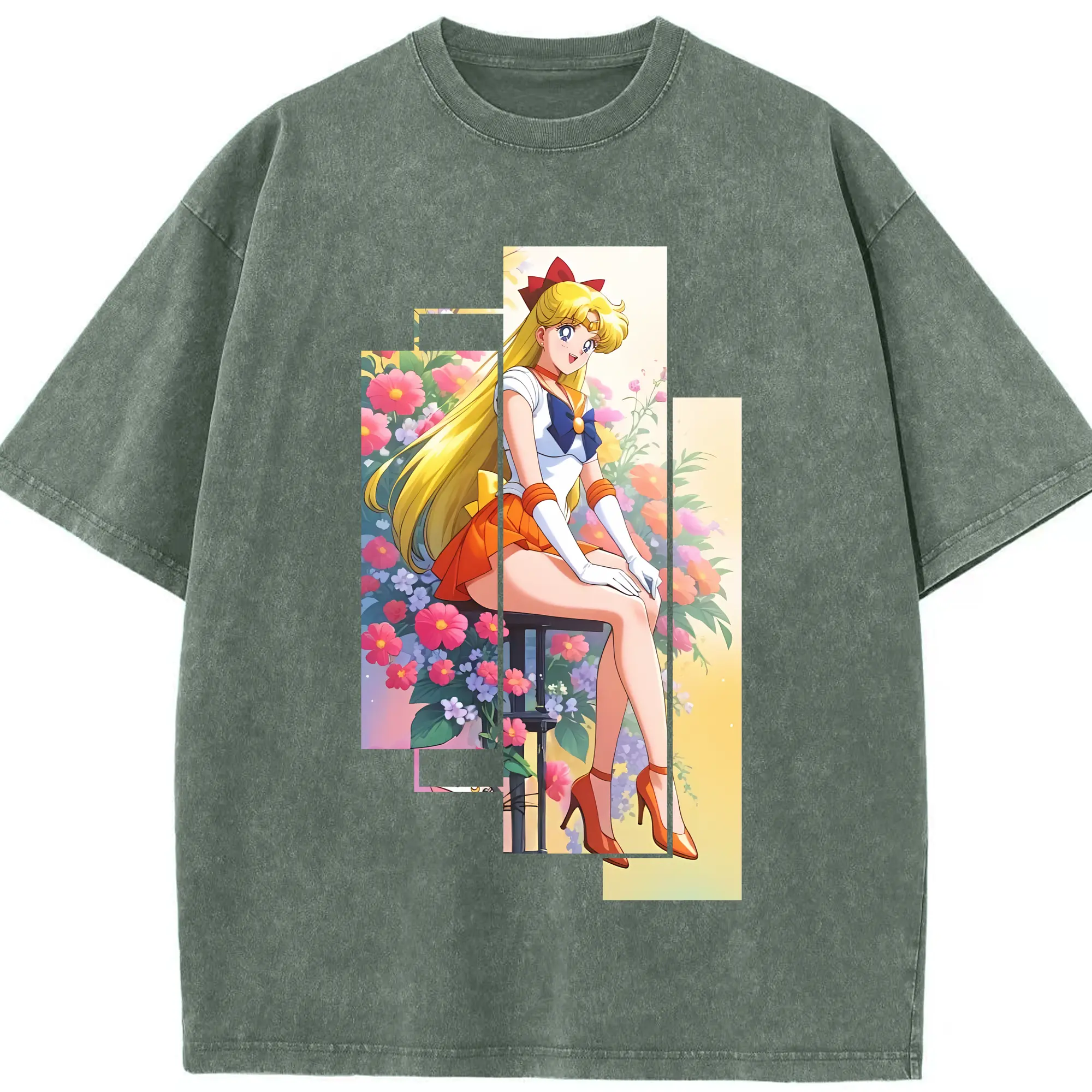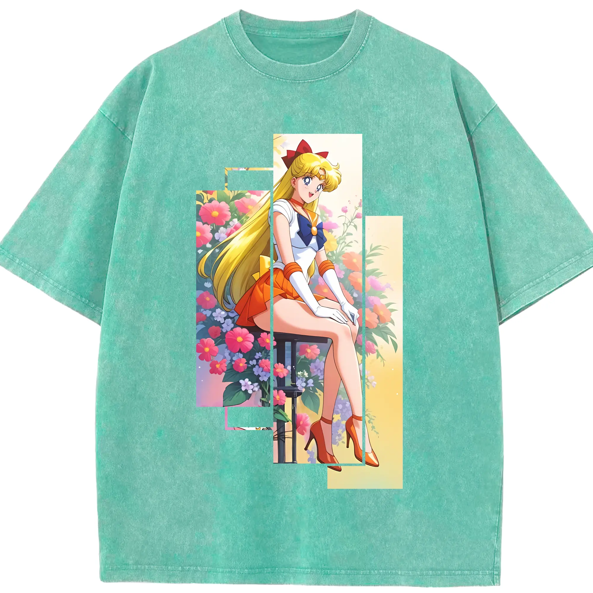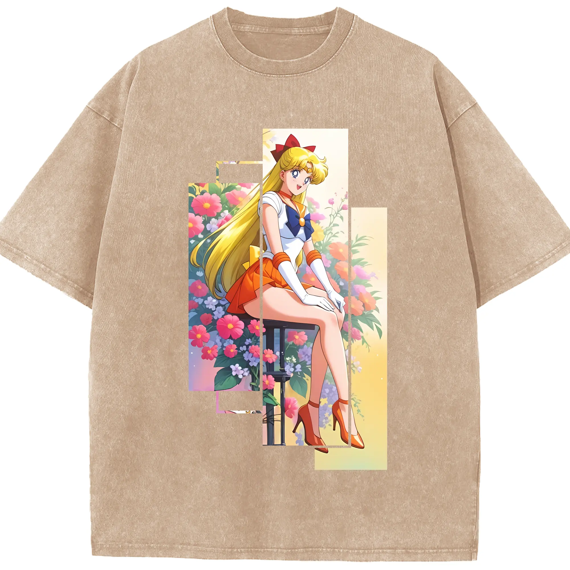 美少女戦士セーラームーン グッズ 愛野 美奈子 - 綿100% ヴィンテージ風 半袖Tシャツ ・ 背面プリント ・ 柔らか肌触り ・ 通気性 快適 ・ スポーツ カジュアル 外出用