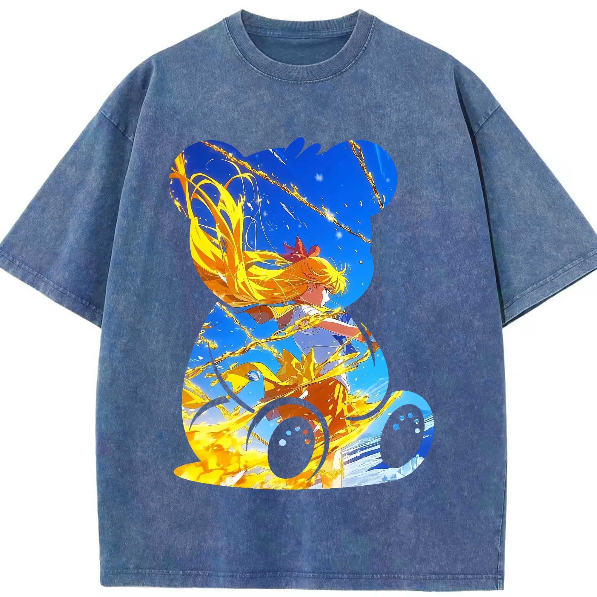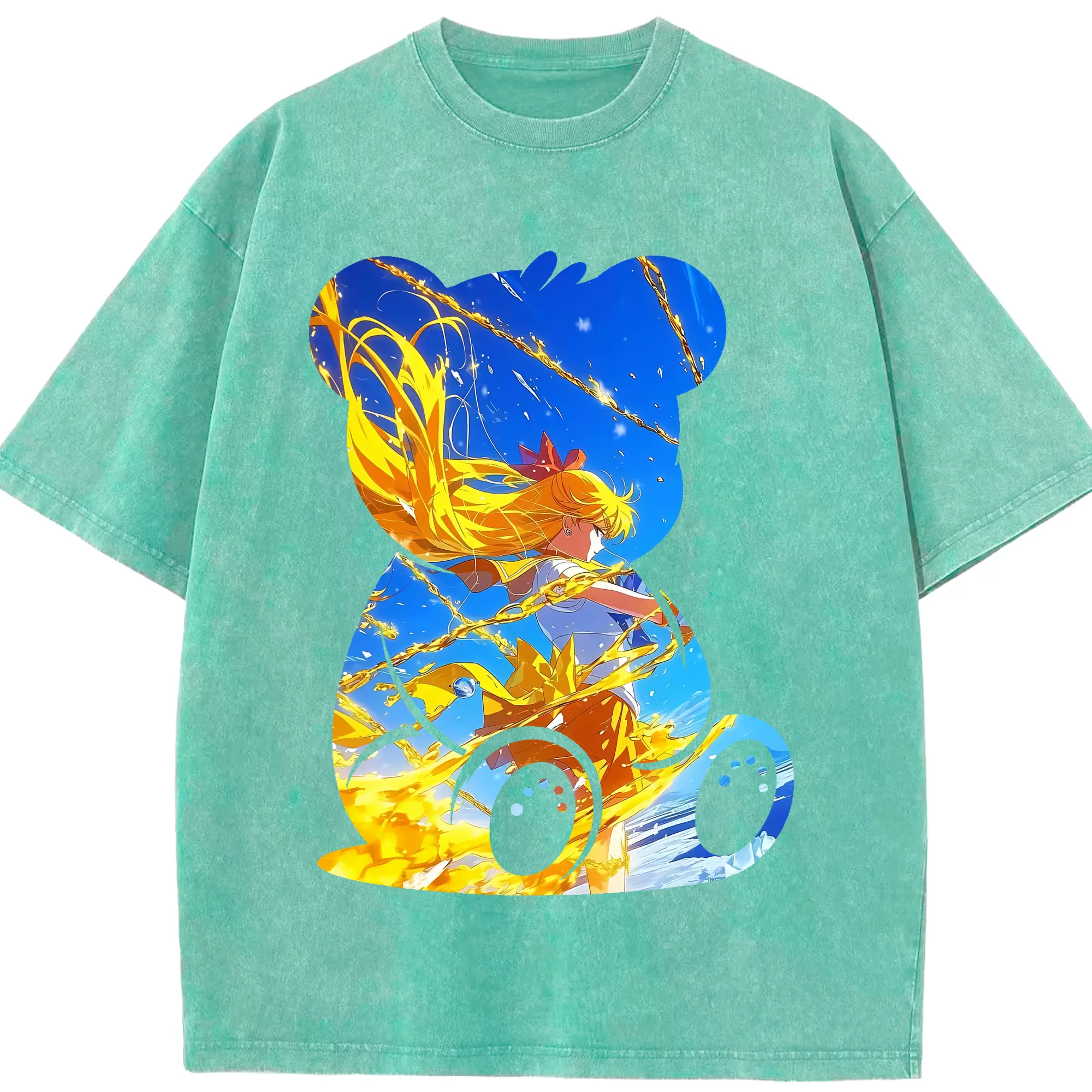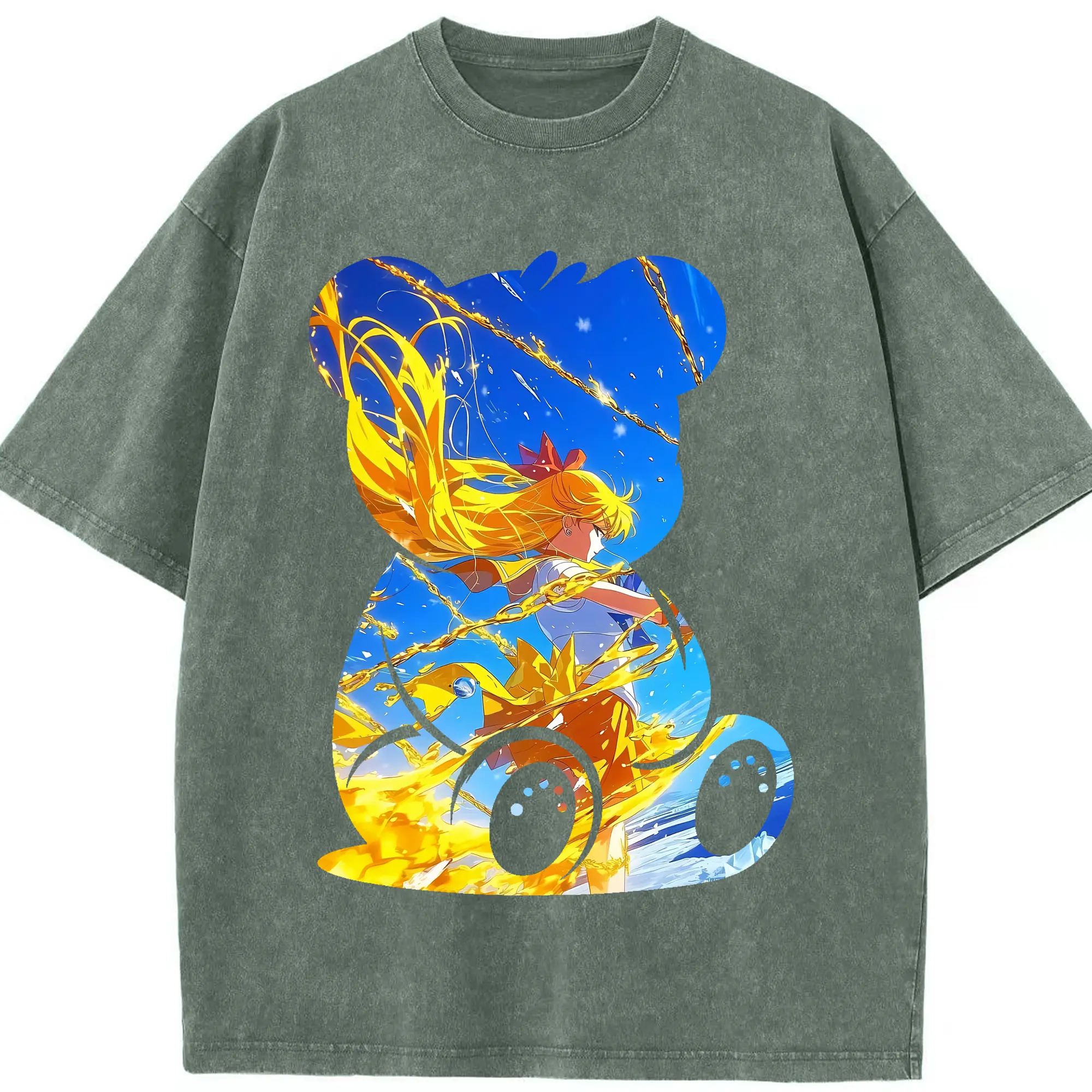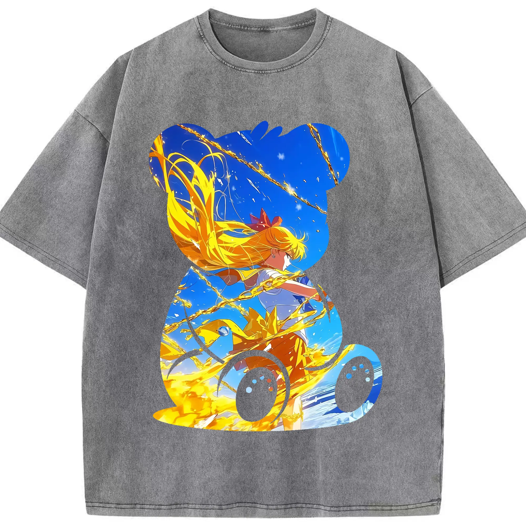 美少女戦士セーラームーン グッズ 愛野 美奈子 - 綿100% ヴィンテージ風 半袖Tシャツ ・ 背面プリント ・ 柔らか肌触り ・ 通気性 快適 ・ スポーツ カジュアル 外出用