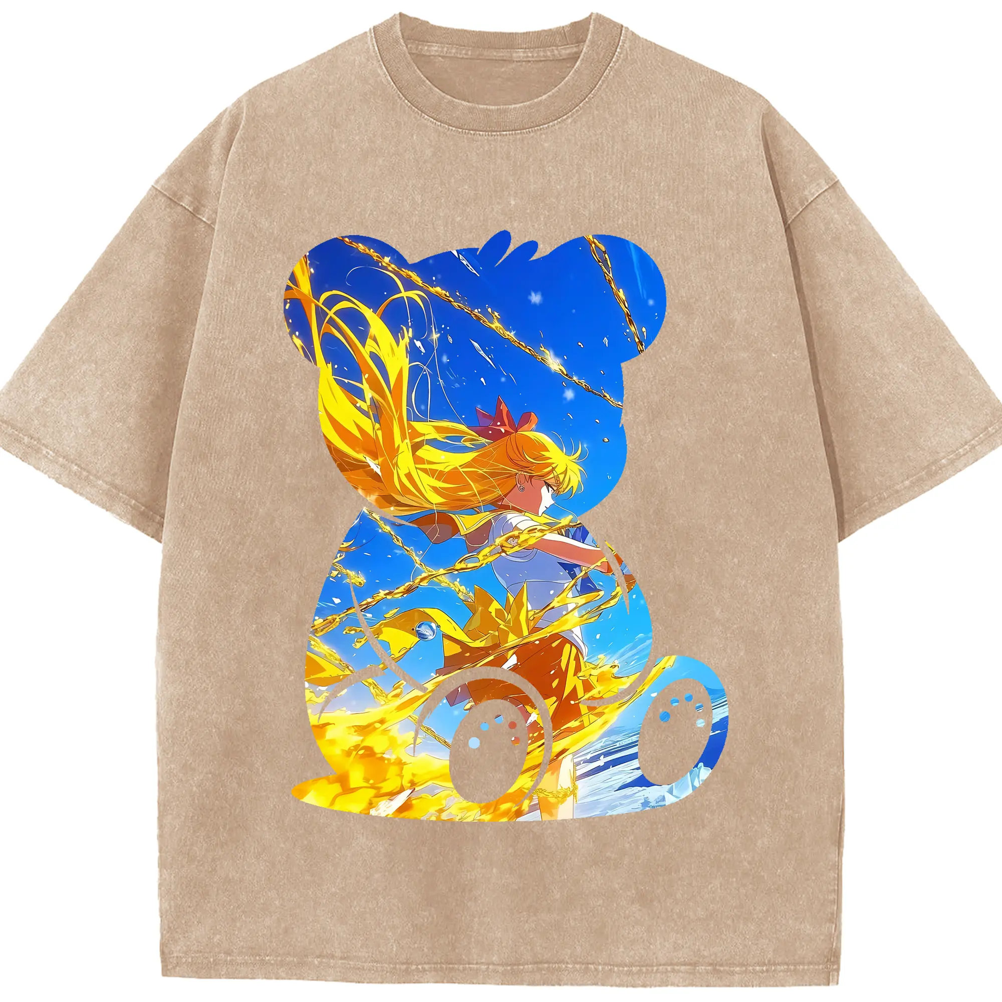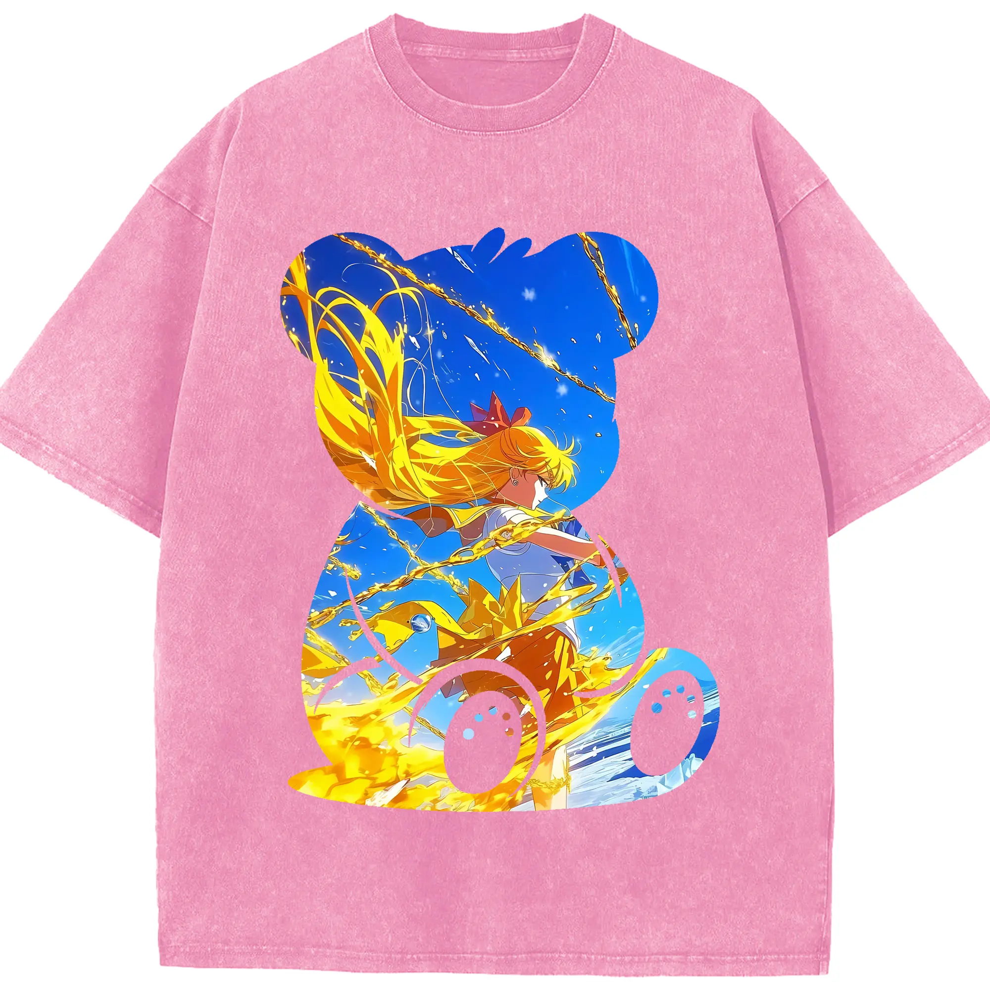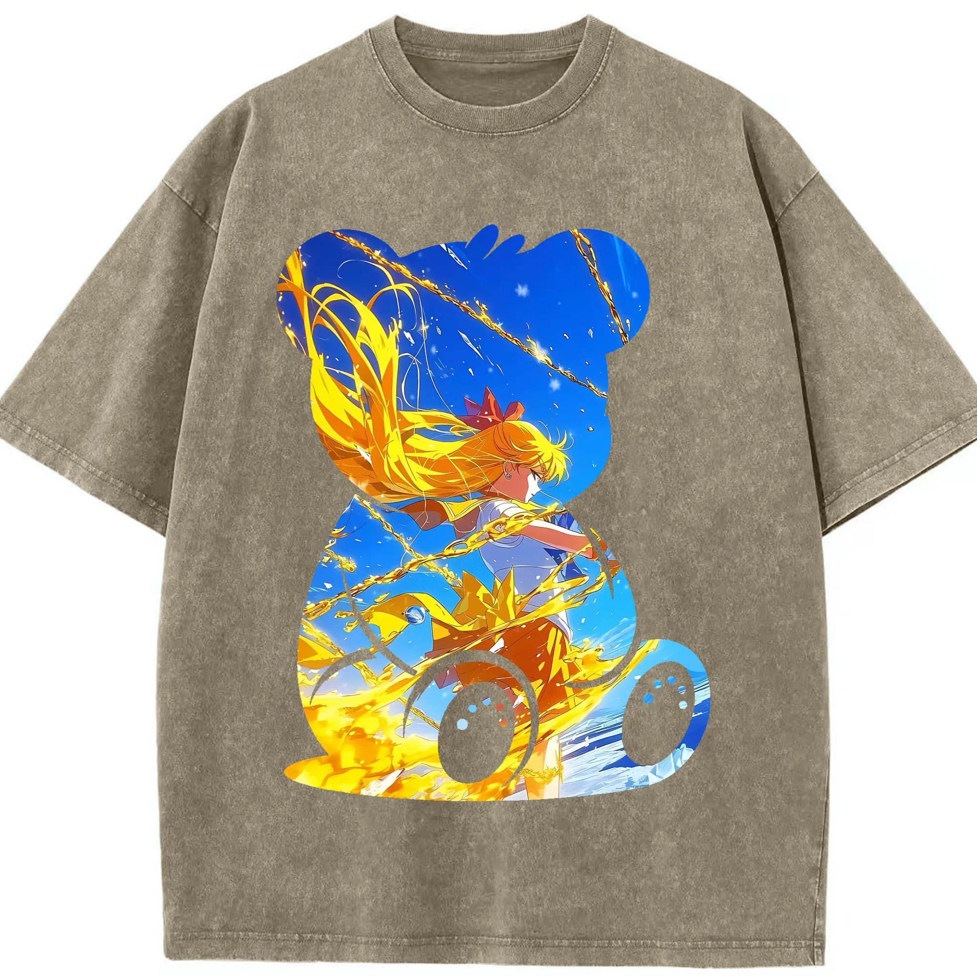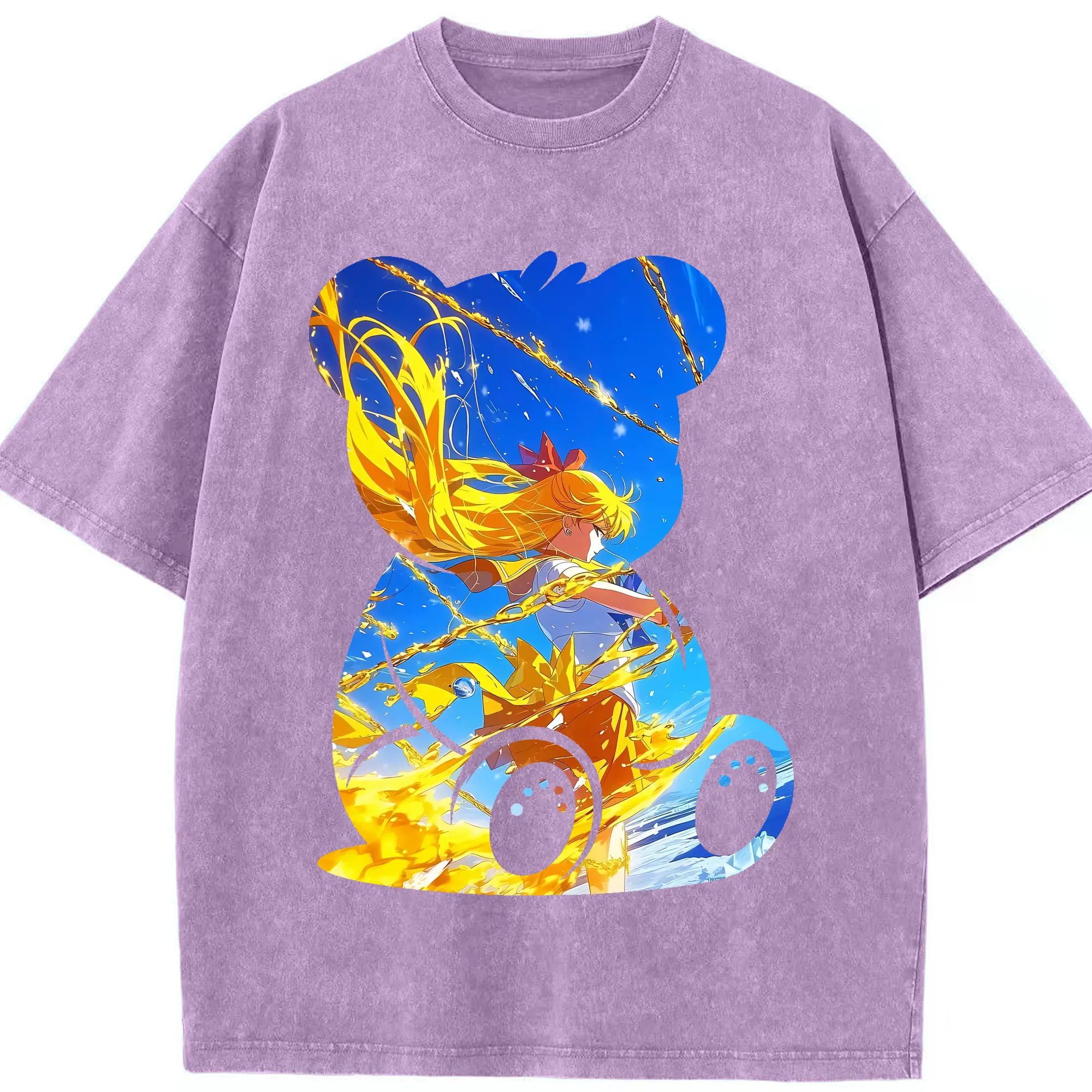 美少女戦士セーラームーン グッズ 愛野 美奈子 - 綿100% ヴィンテージ風 半袖Tシャツ ・ 背面プリント ・ 柔らか肌触り ・ 通気性 快適 ・ スポーツ カジュアル 外出用