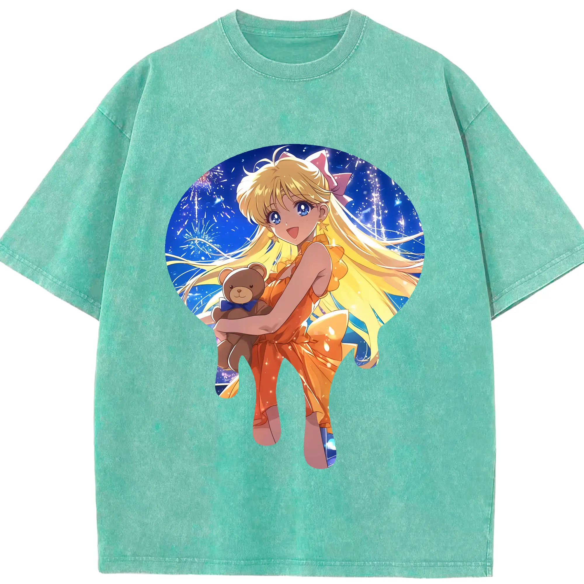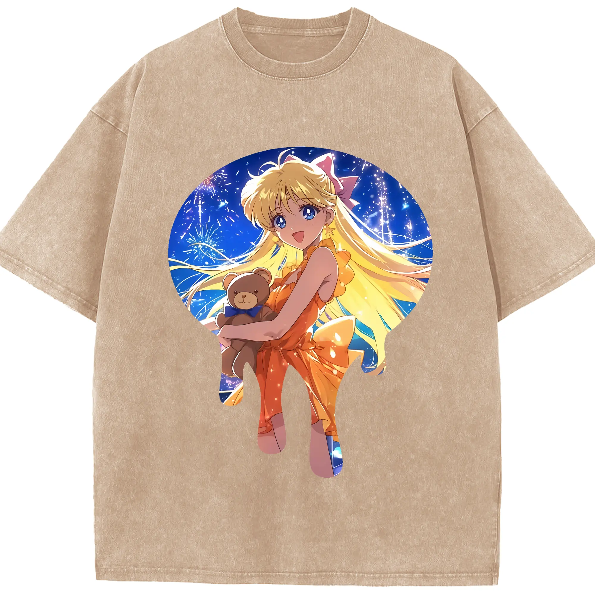美少女戦士セーラームーン グッズ 愛野 美奈子 - 綿100% ヴィンテージ風 半袖Tシャツ ・ 背面プリント ・ 柔らか肌触り ・ 通気性 快適 ・ スポーツ カジュアル 外出用