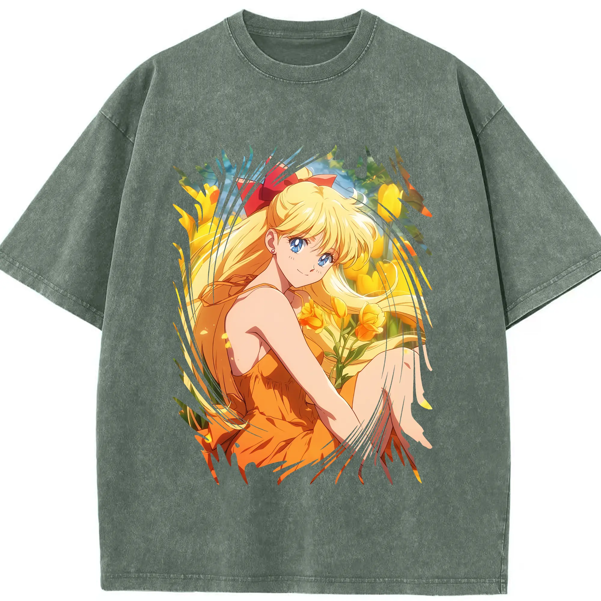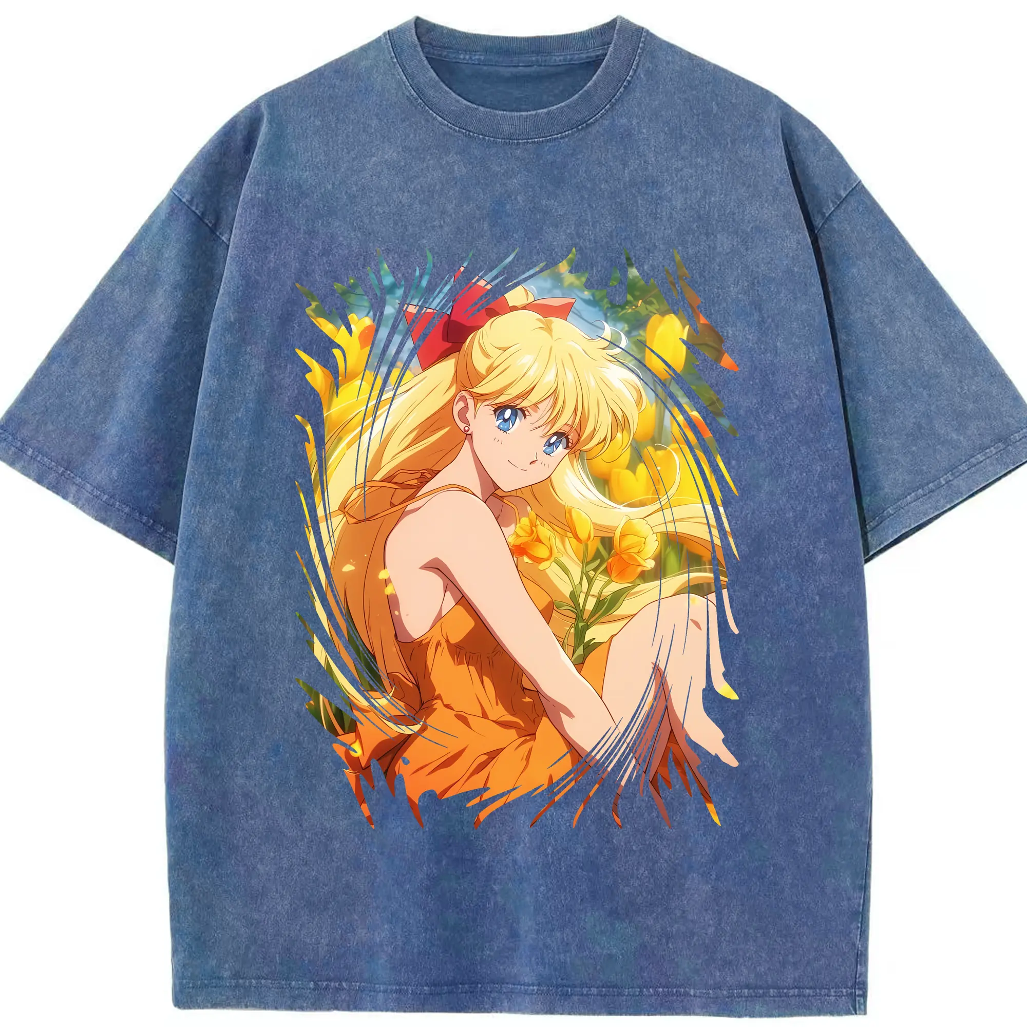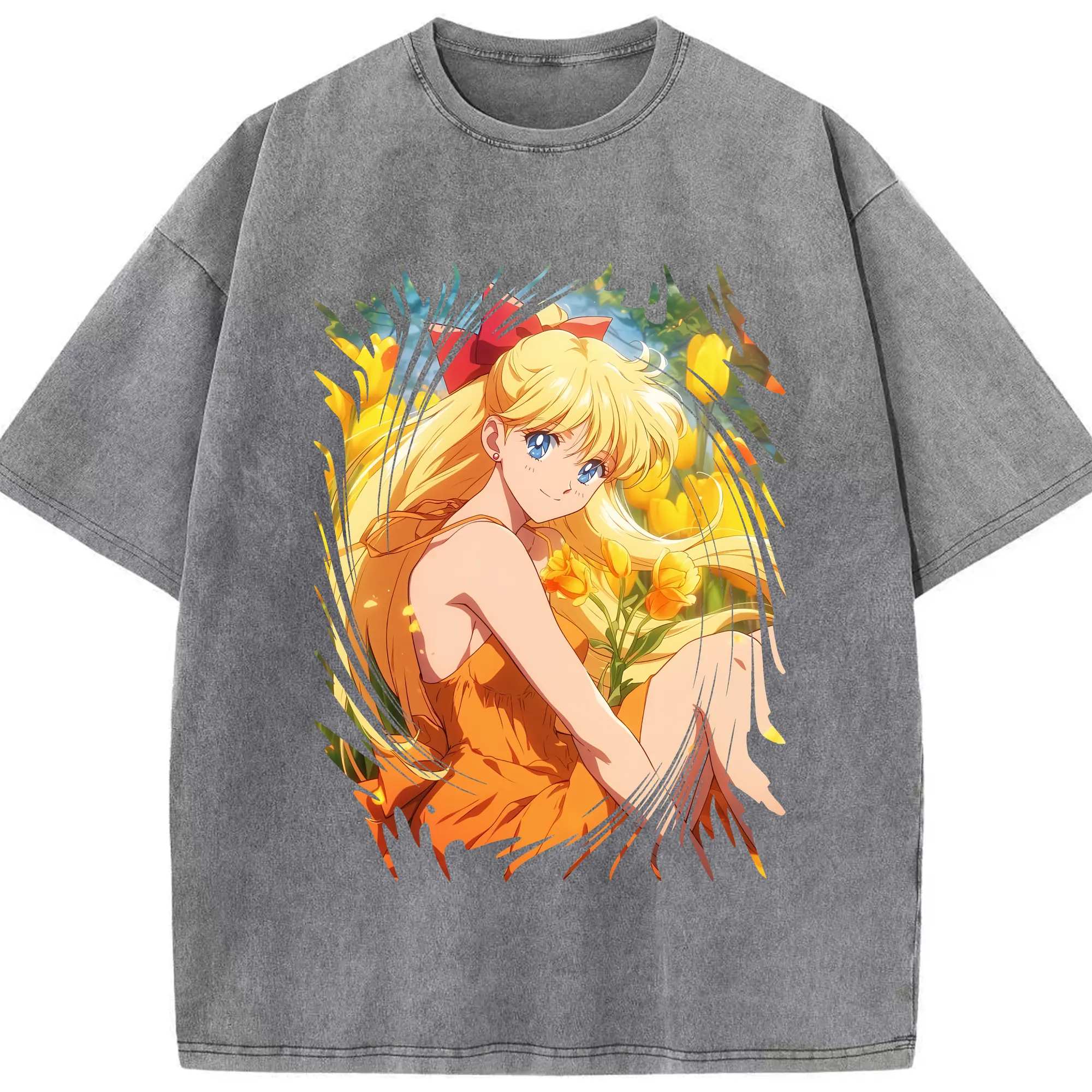 美少女戦士セーラームーン グッズ 愛野 美奈子 - 綿100% ヴィンテージ風 半袖Tシャツ ・ 背面プリント ・ 柔らか肌触り ・ 通気性 快適 ・ スポーツ カジュアル 外出用