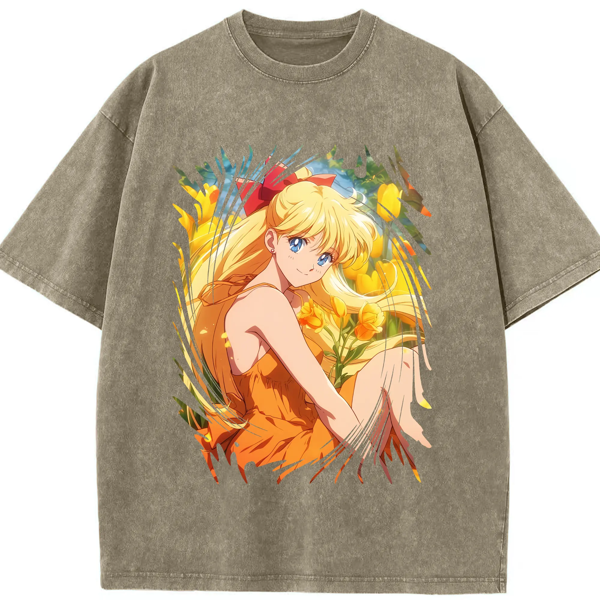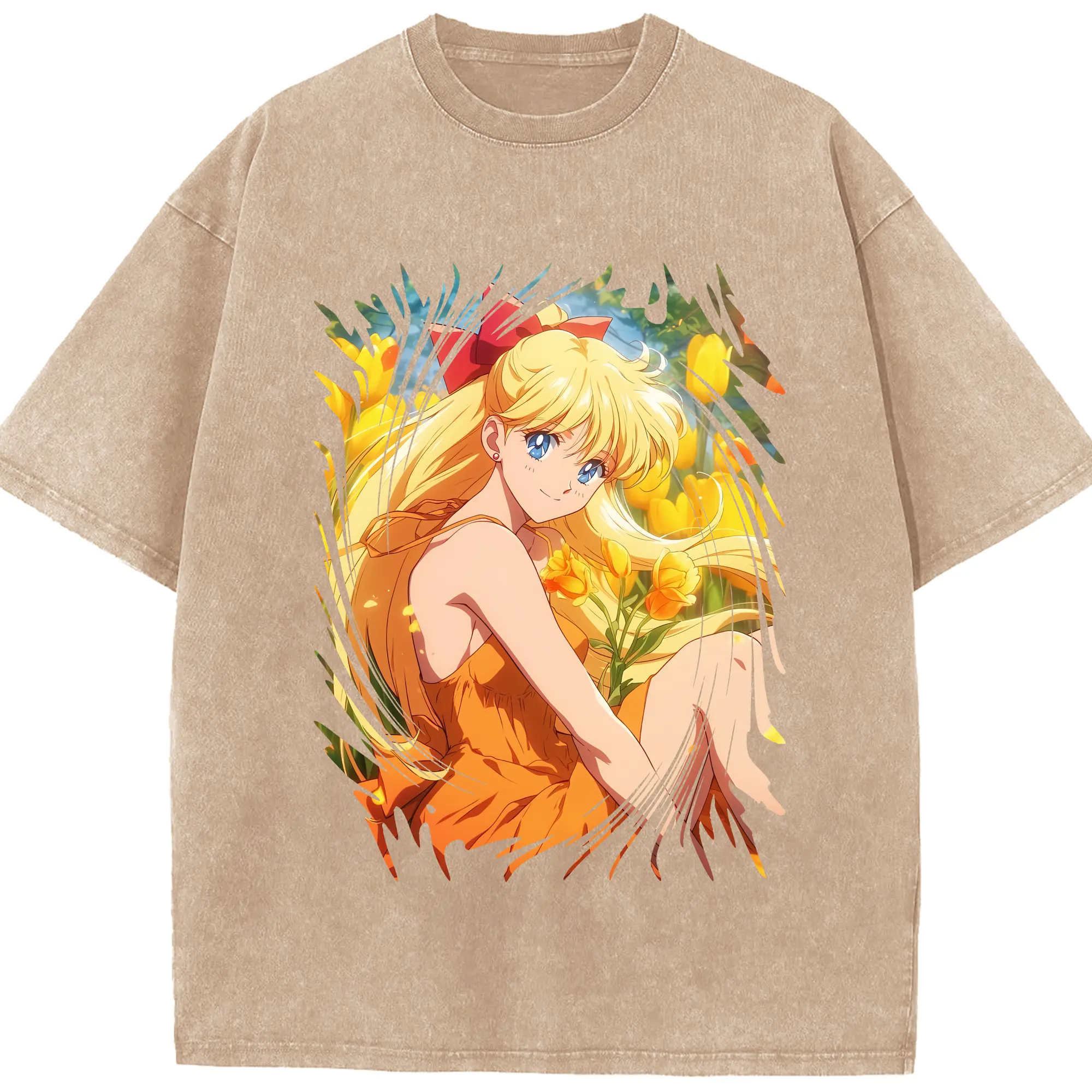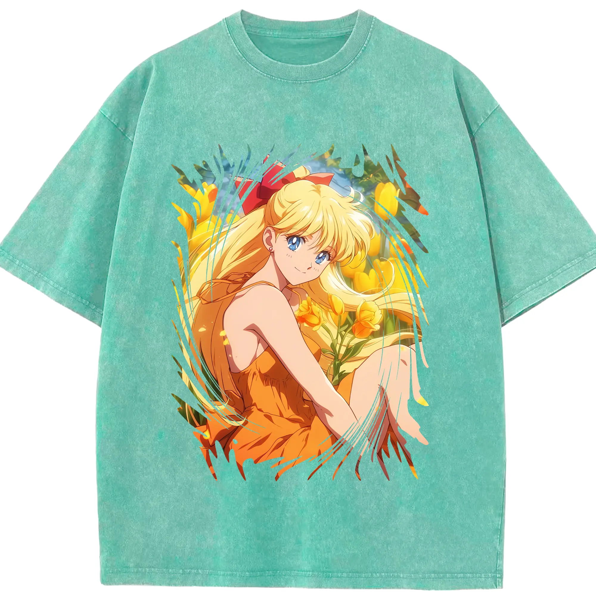 美少女戦士セーラームーン グッズ 愛野 美奈子 - 綿100% ヴィンテージ風 半袖Tシャツ ・ 背面プリント ・ 柔らか肌触り ・ 通気性 快適 ・ スポーツ カジュアル 外出用