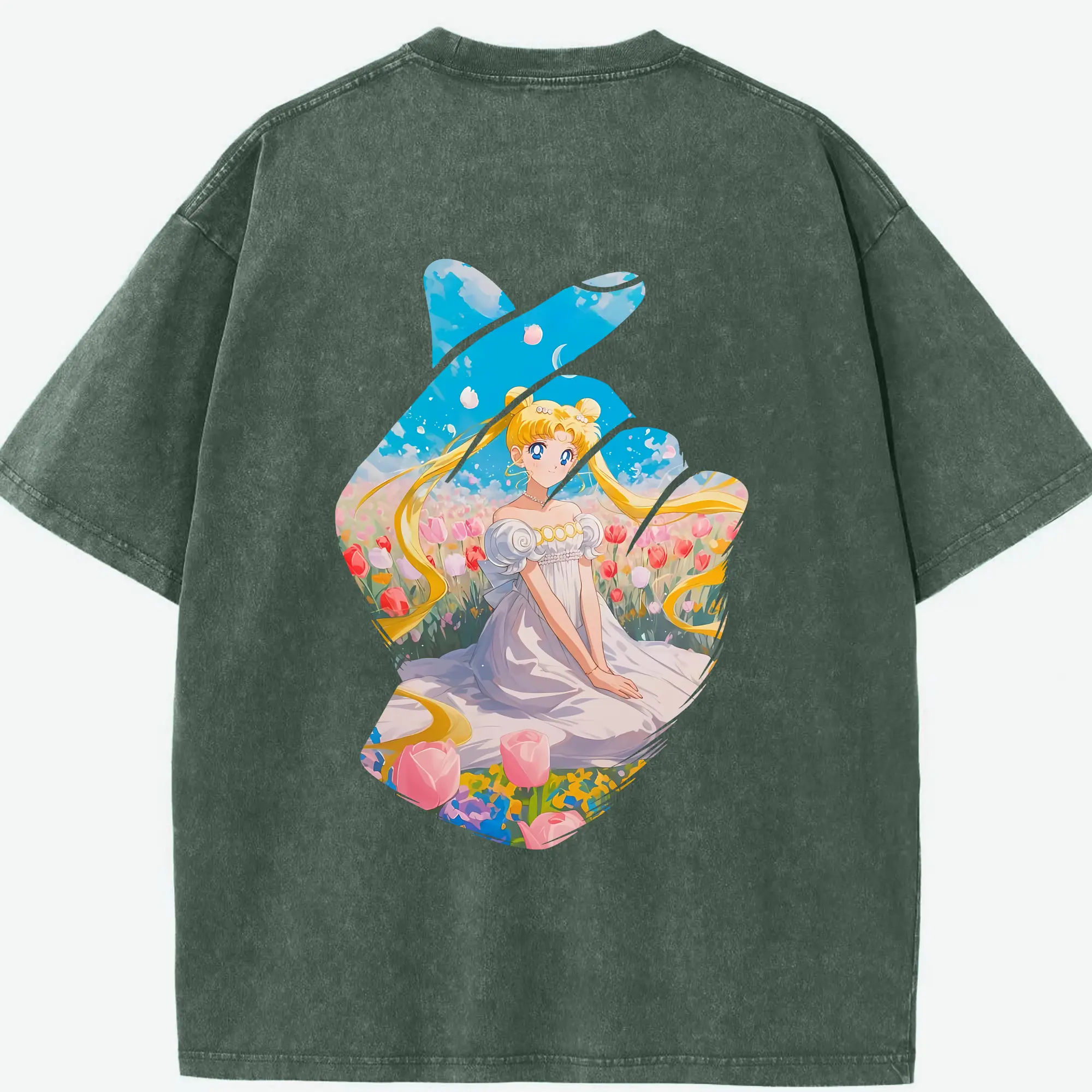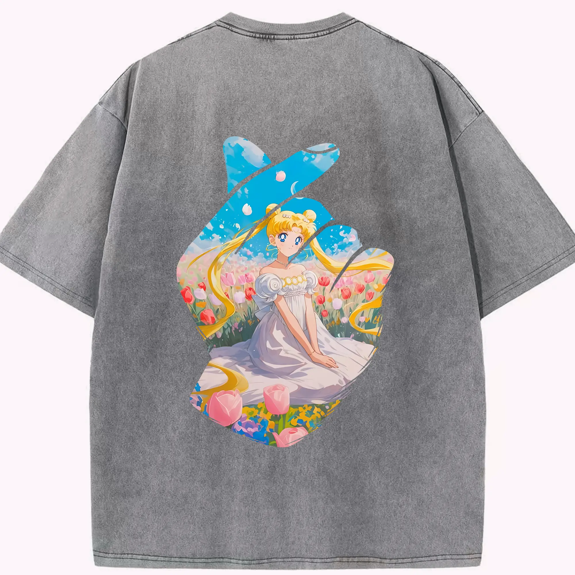 美少女戦士セーラームーン グッズ 愛野 美奈子 - 綿100% ヴィンテージ風 半袖Tシャツ ・ フロントプリント ・ 柔らか肌触り ・ 通気性 快適 ・ スポーツ カジュアル 外出用