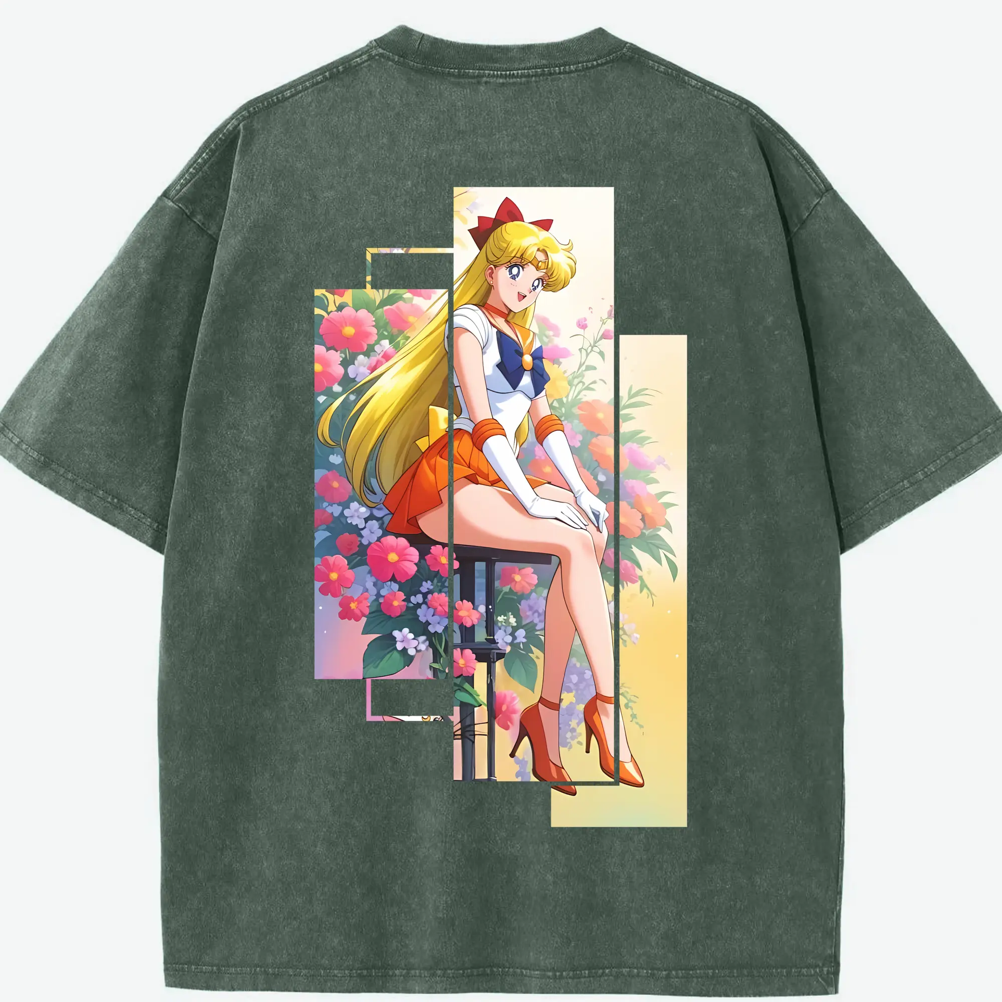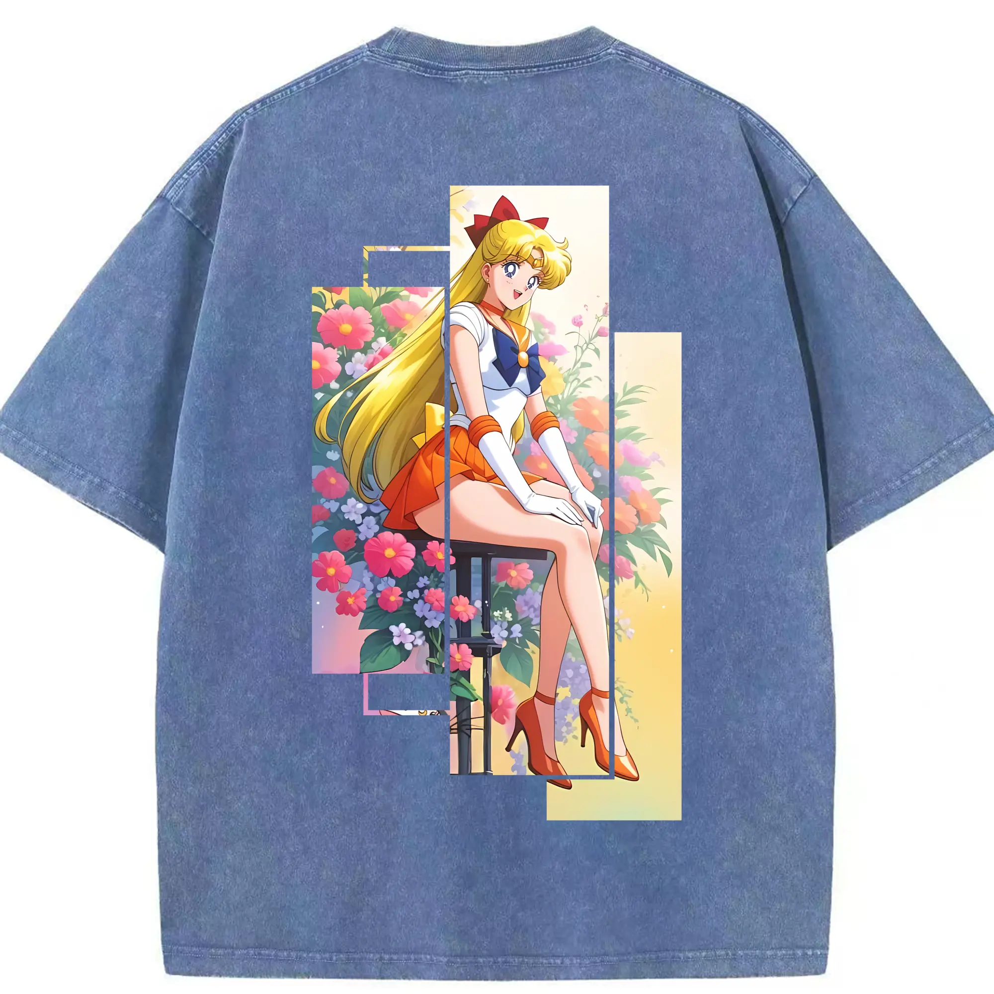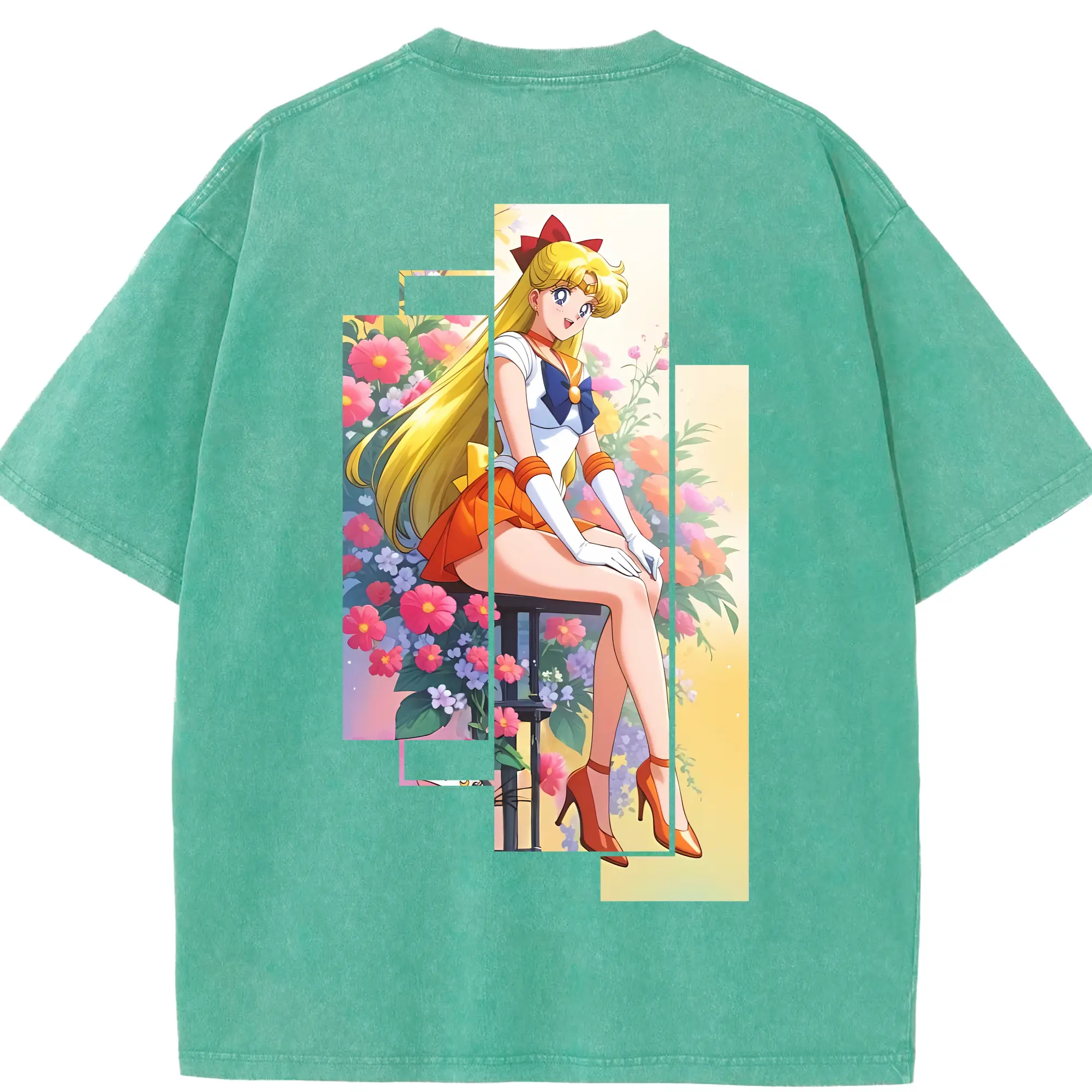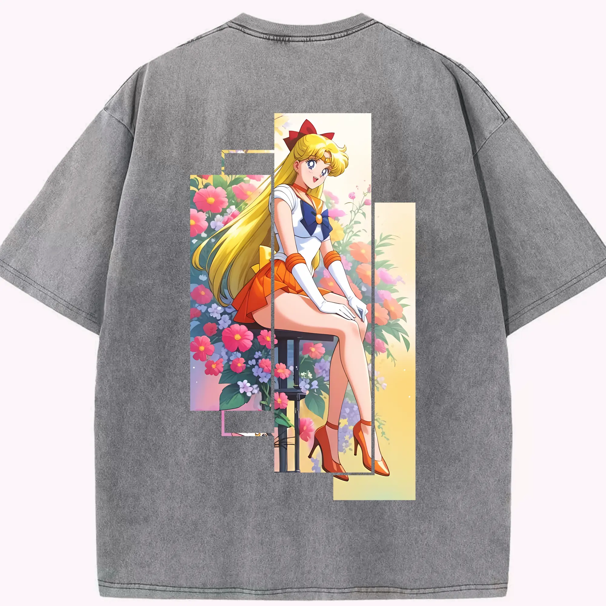 美少女戦士セーラームーン グッズ 愛野 美奈子 - 綿100% ヴィンテージ風 半袖Tシャツ ・ フロントプリント ・ 柔らか肌触り ・ 通気性 快適 ・ スポーツ カジュアル 外出用