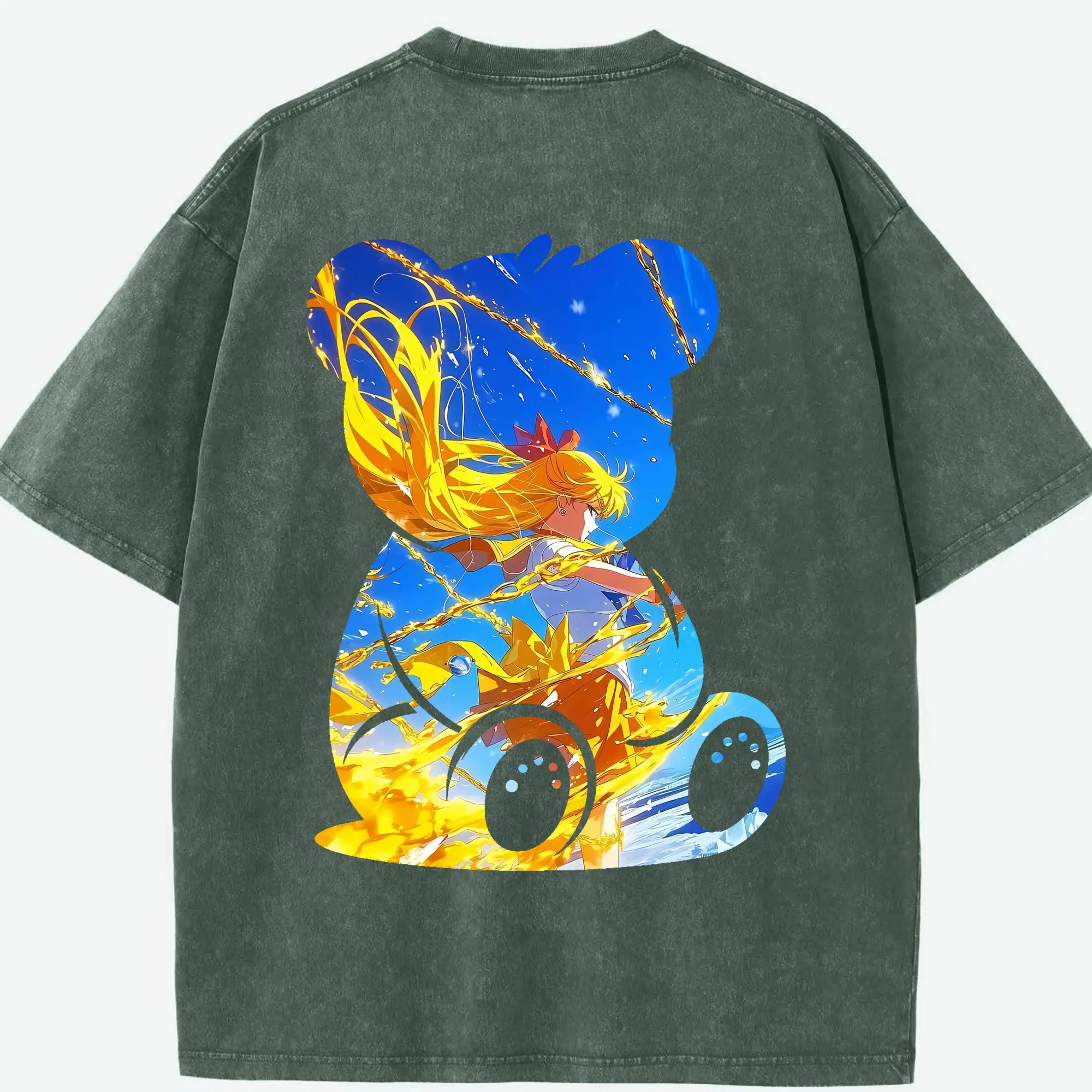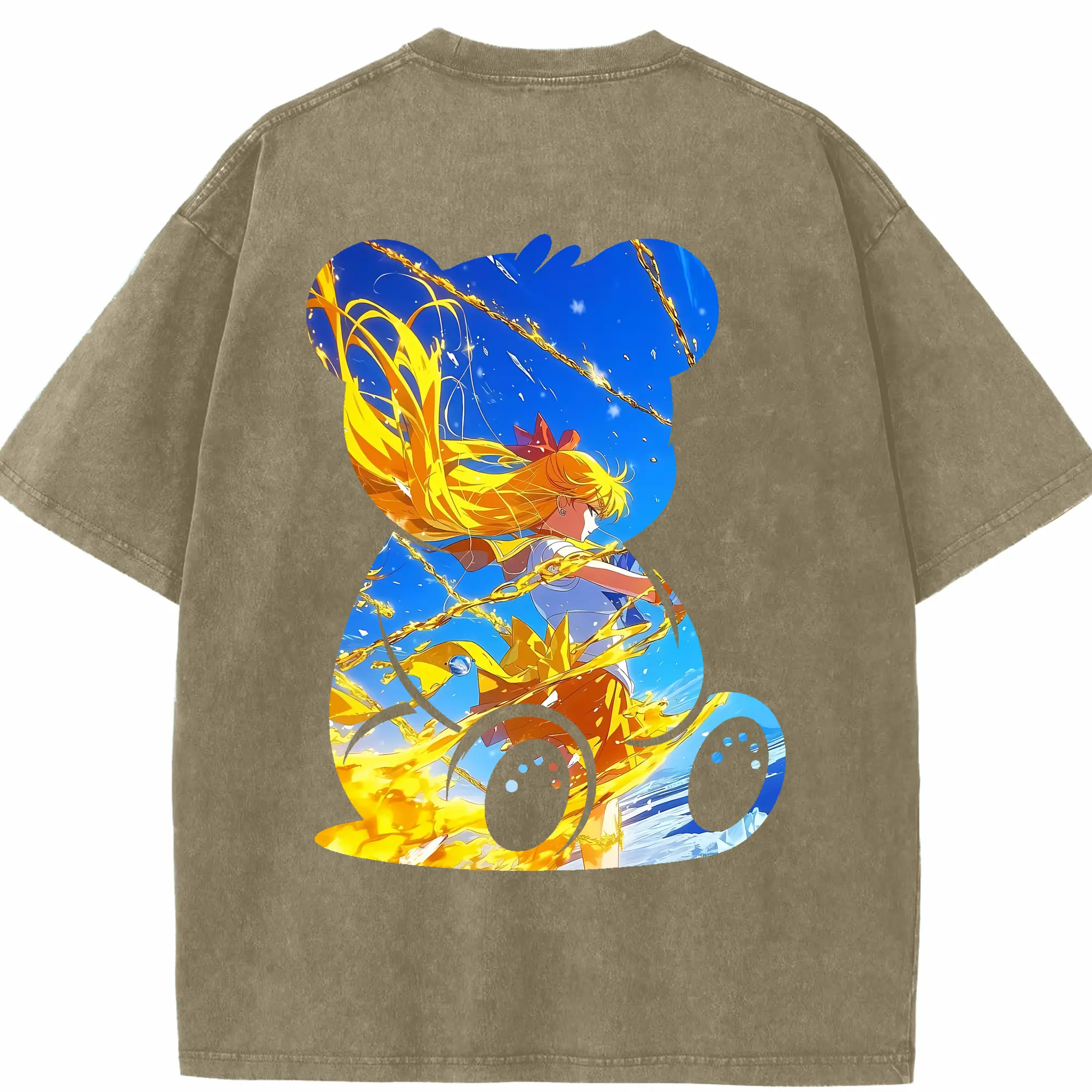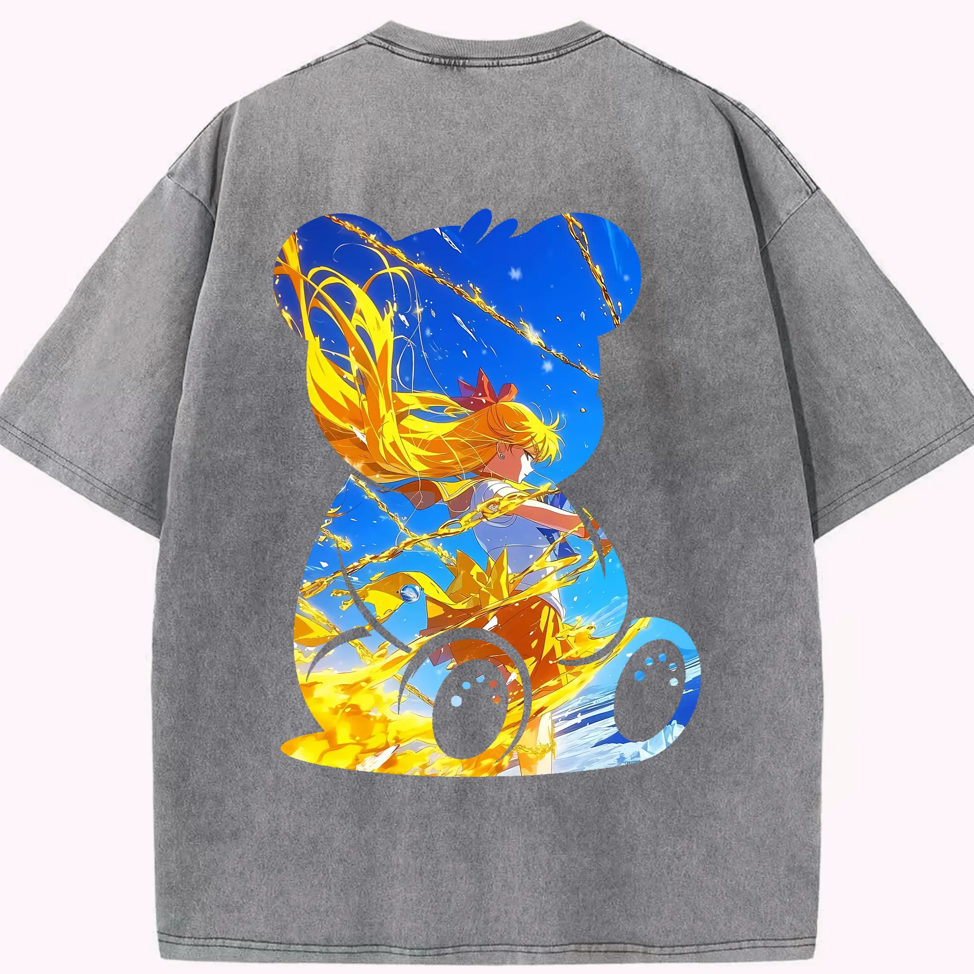 美少女戦士セーラームーン グッズ 愛野 美奈子 - 綿100% ヴィンテージ風 半袖Tシャツ ・ フロントプリント ・ 柔らか肌触り ・ 通気性 快適 ・ スポーツ カジュアル 外出用