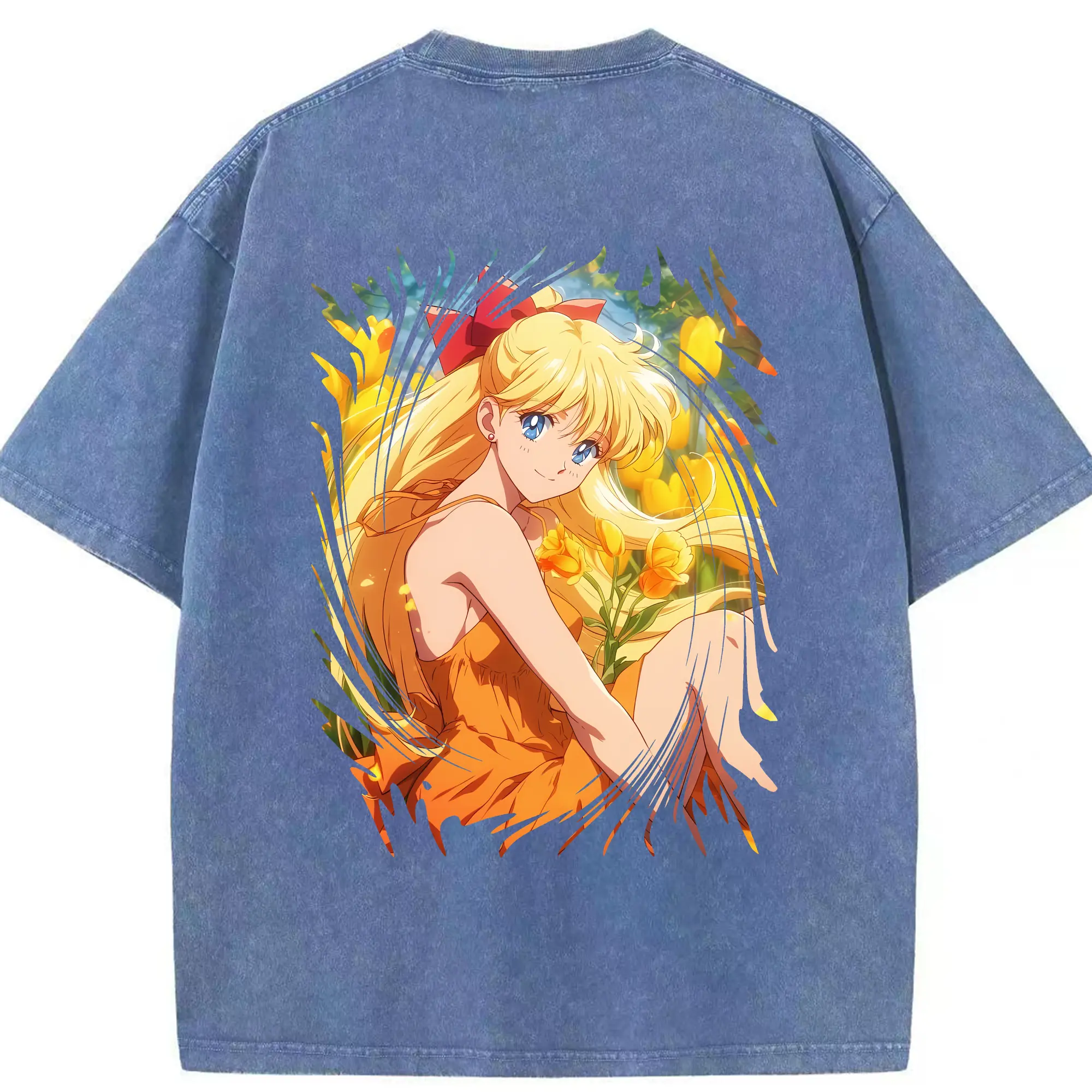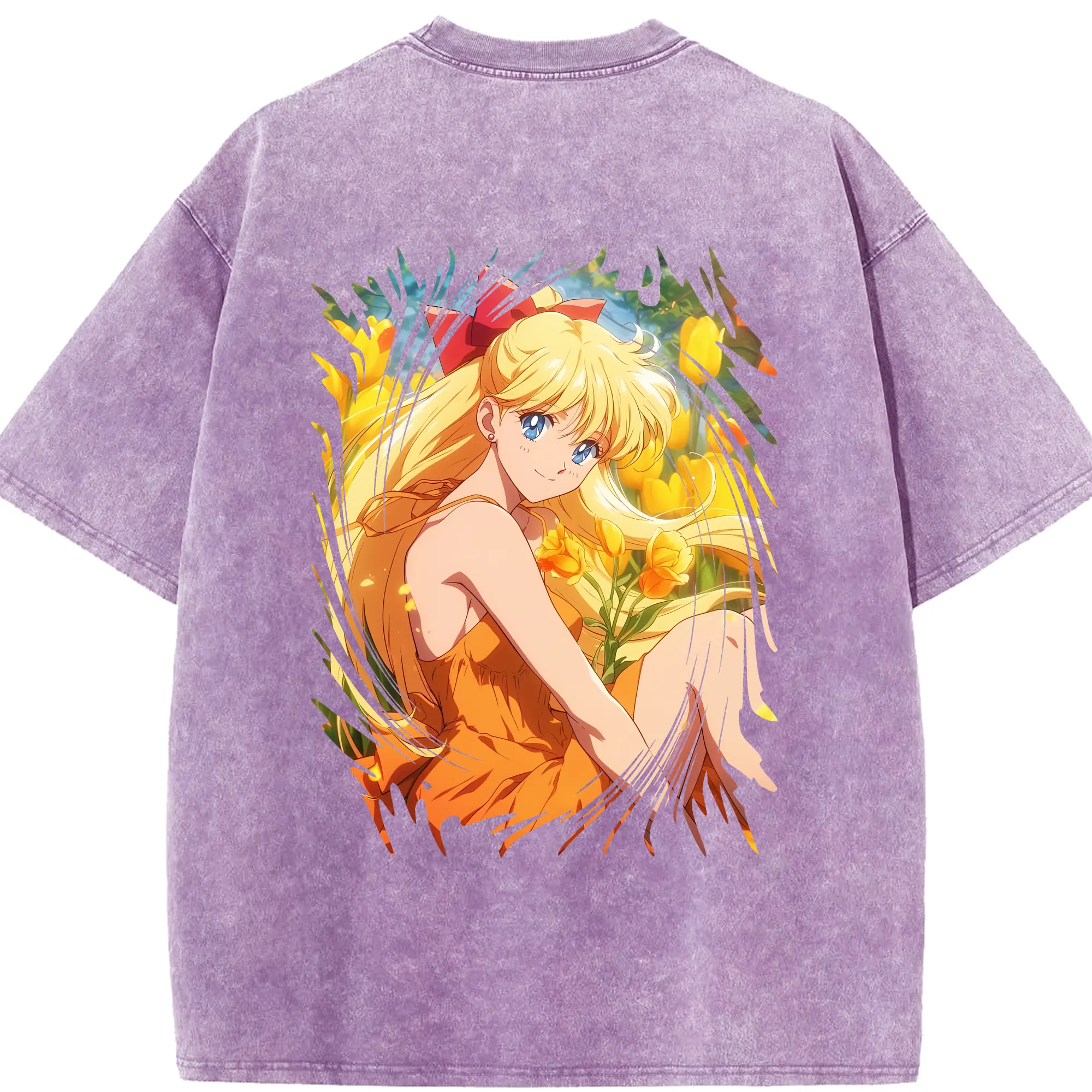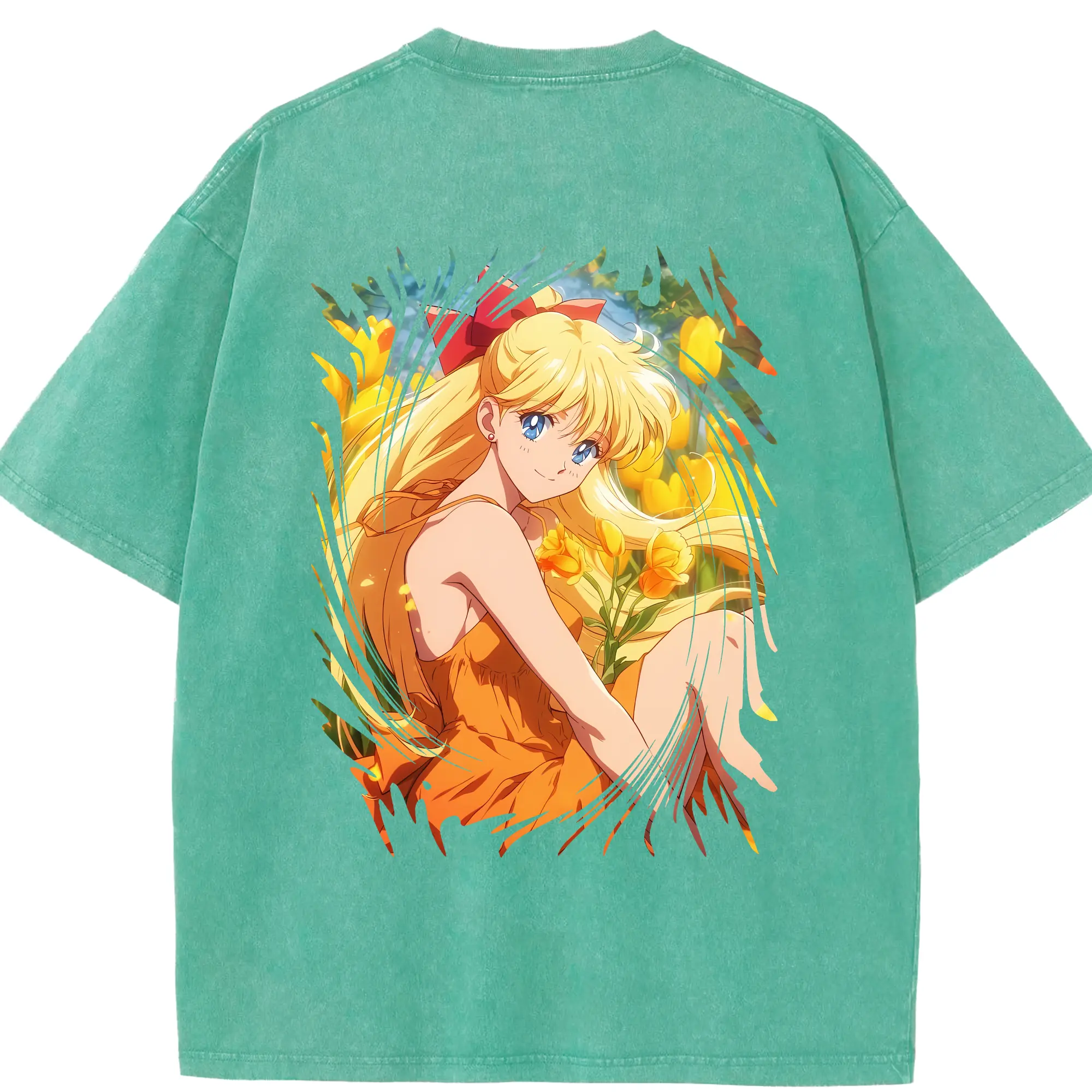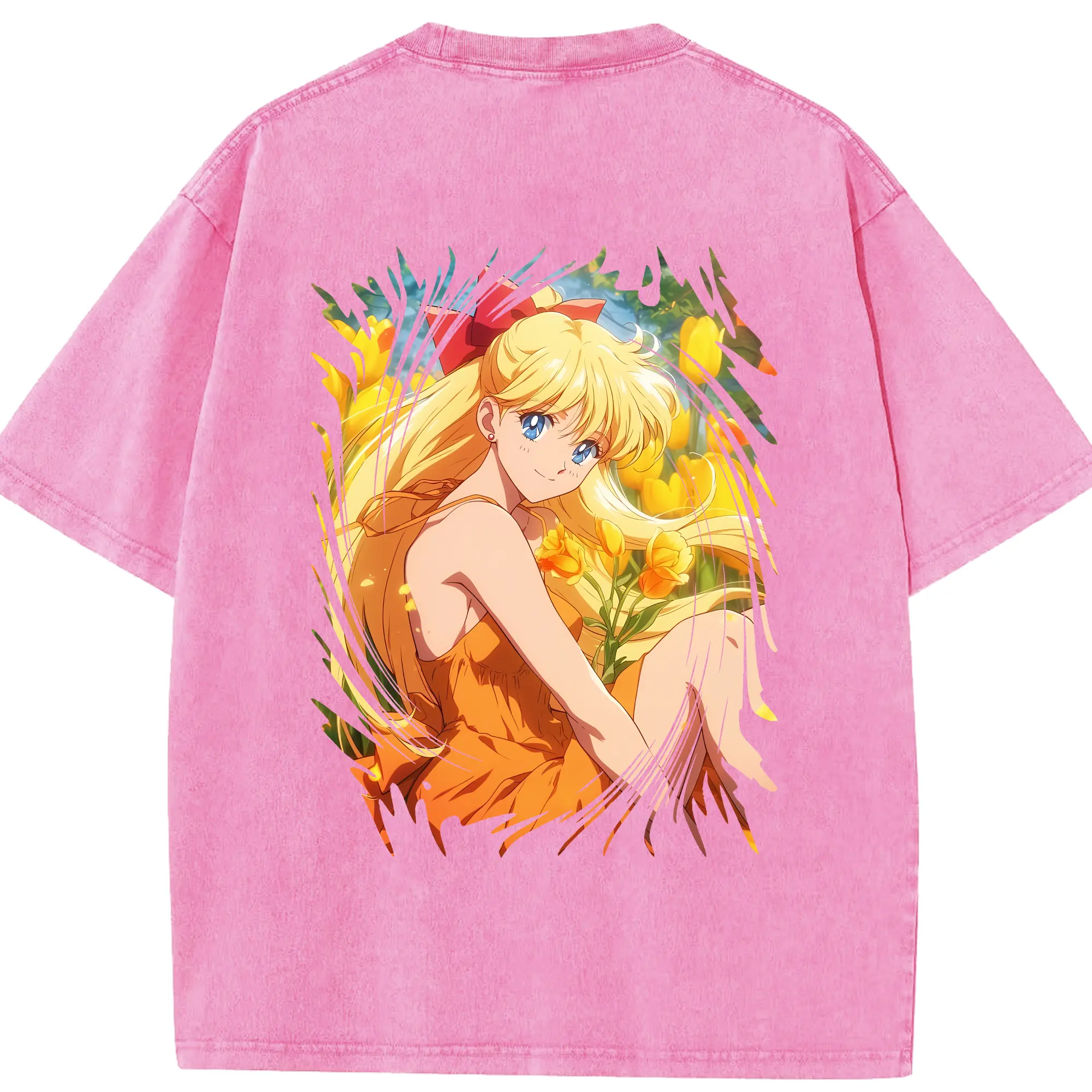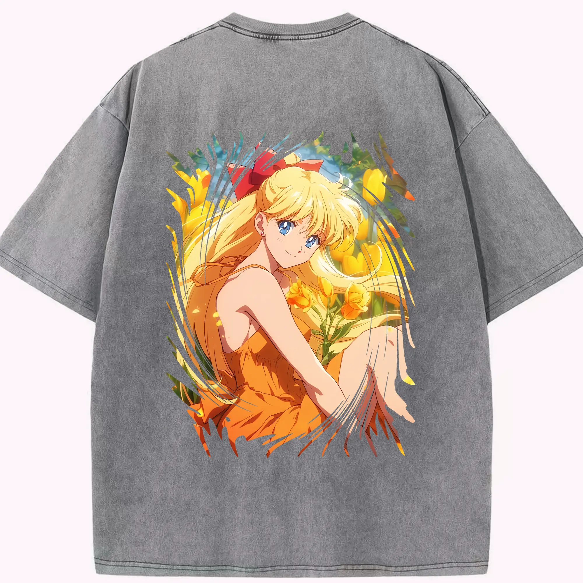 美少女戦士セーラームーン グッズ 愛野 美奈子 - 綿100% ヴィンテージ風 半袖Tシャツ ・ フロントプリント ・ 柔らか肌触り ・ 通気性 快適 ・ スポーツ カジュアル 外出用
