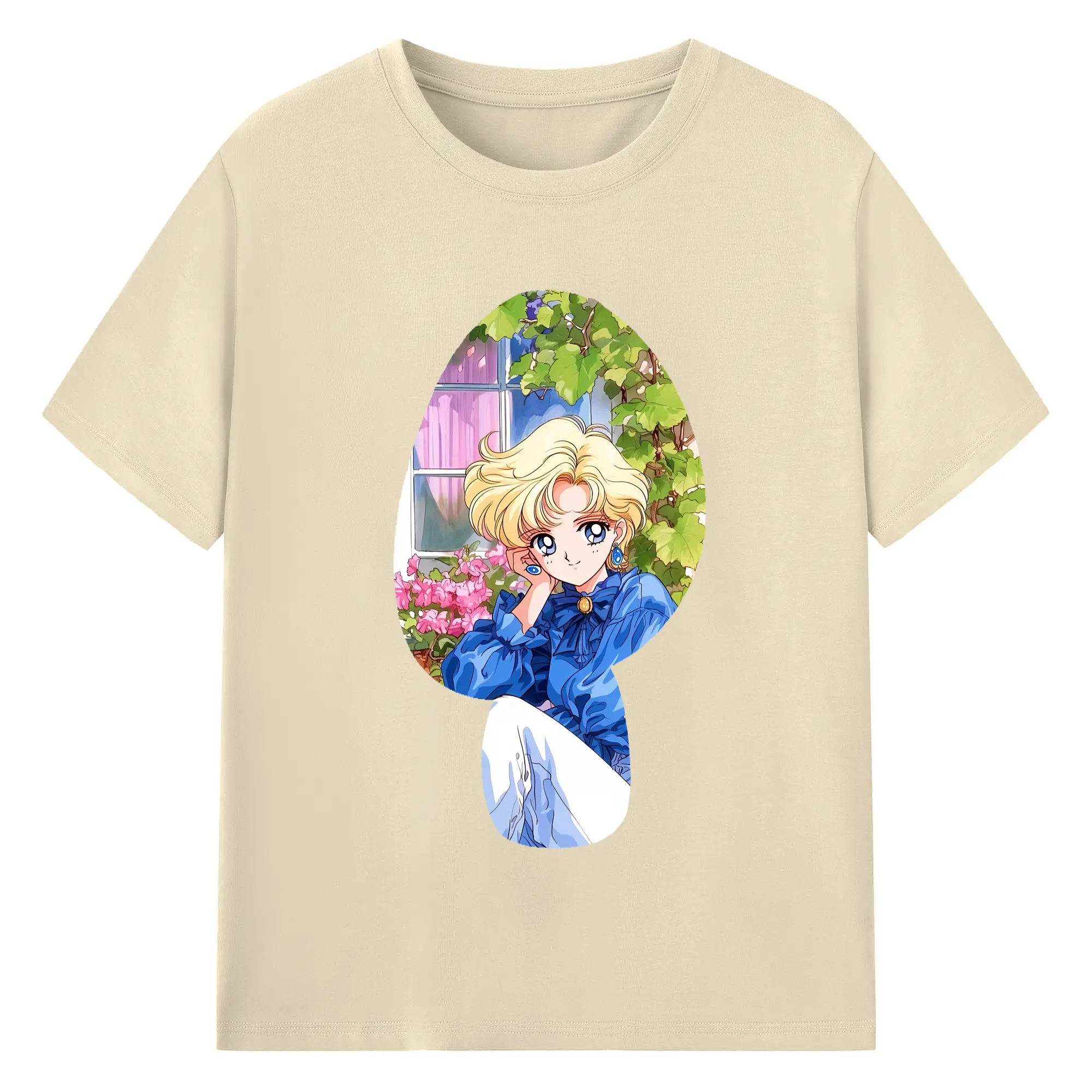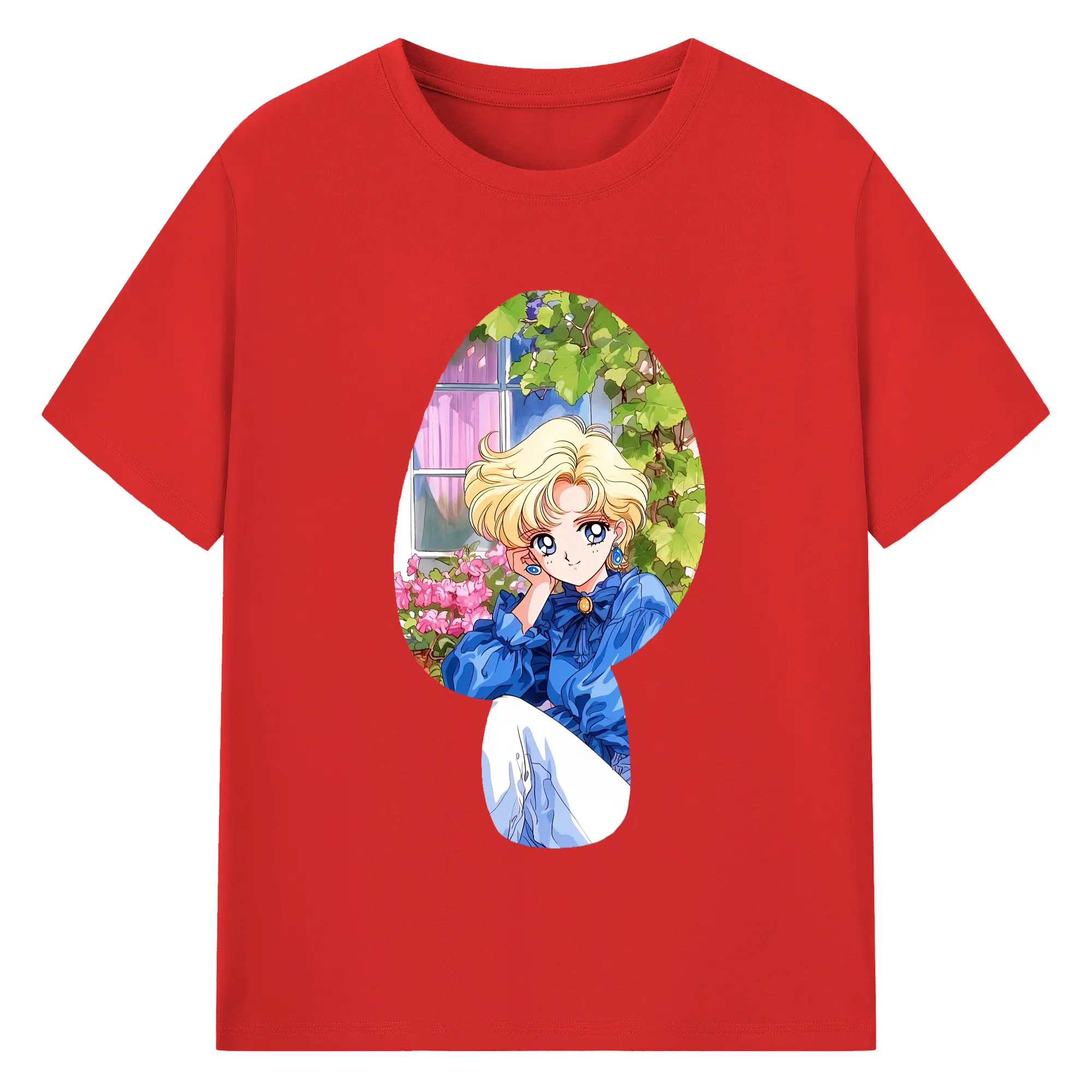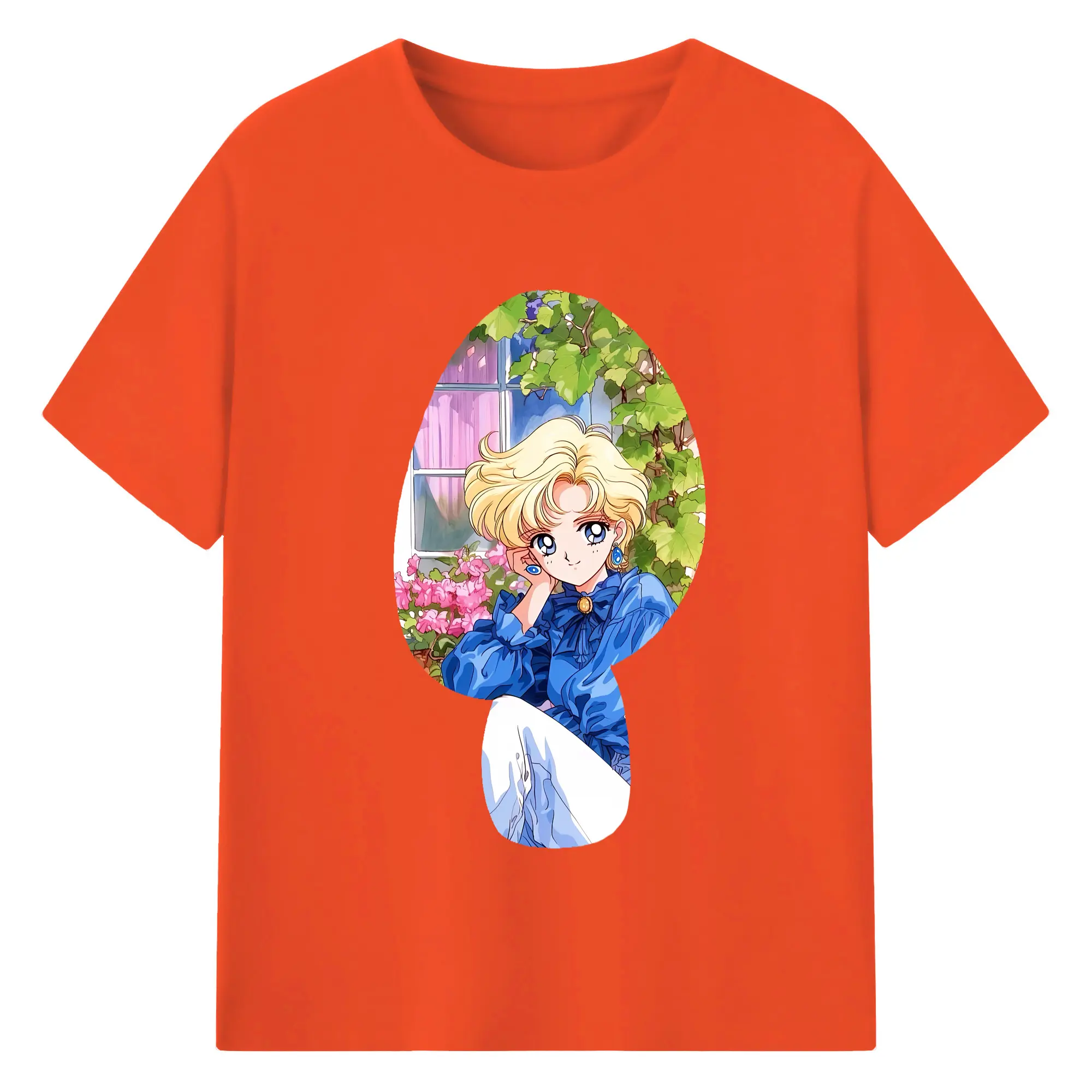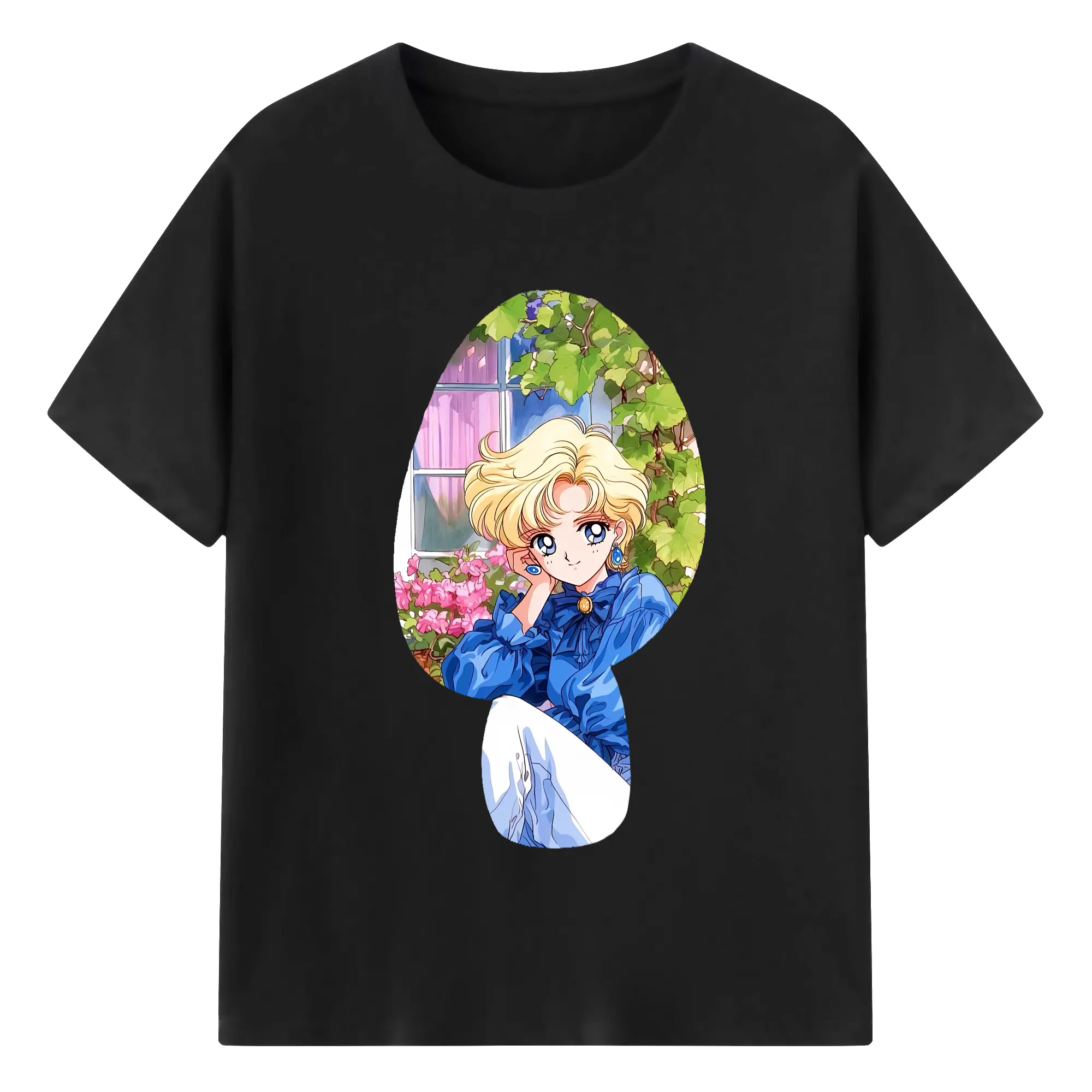 美少女戦士セーラームーン グッズ 天王 はるか - 綿100% ヴィンテージ風 半袖Tシャツ ・ フロントプリント ・ 柔らか肌触り ・ 通気性 快適 ・ スポーツ カジュアル 外出用