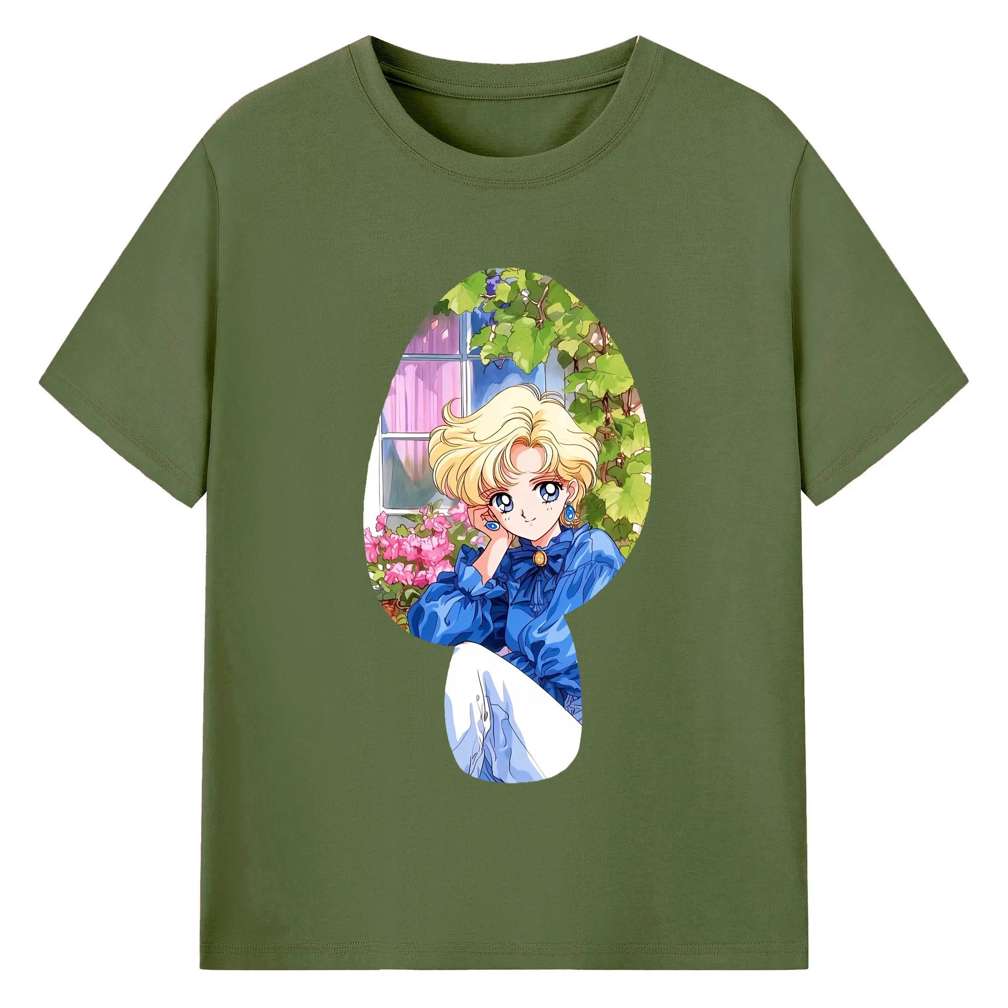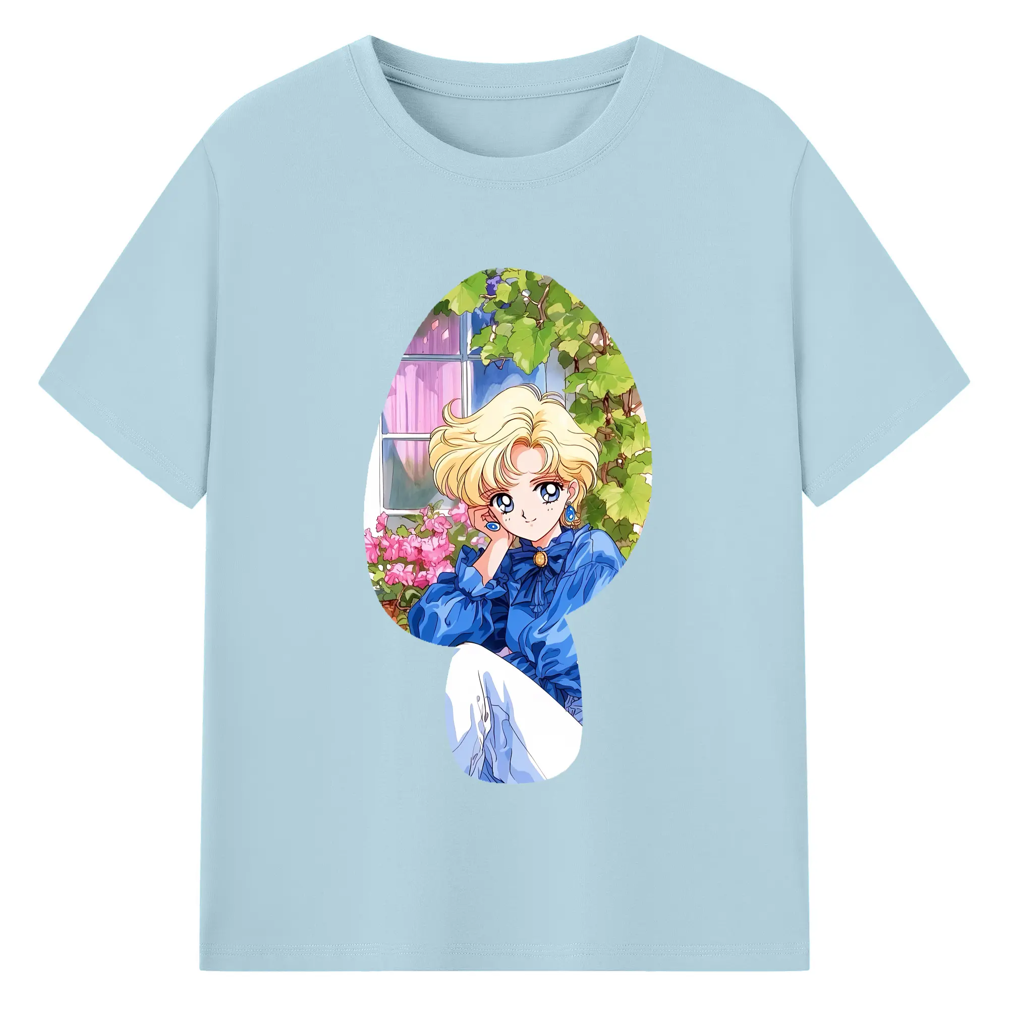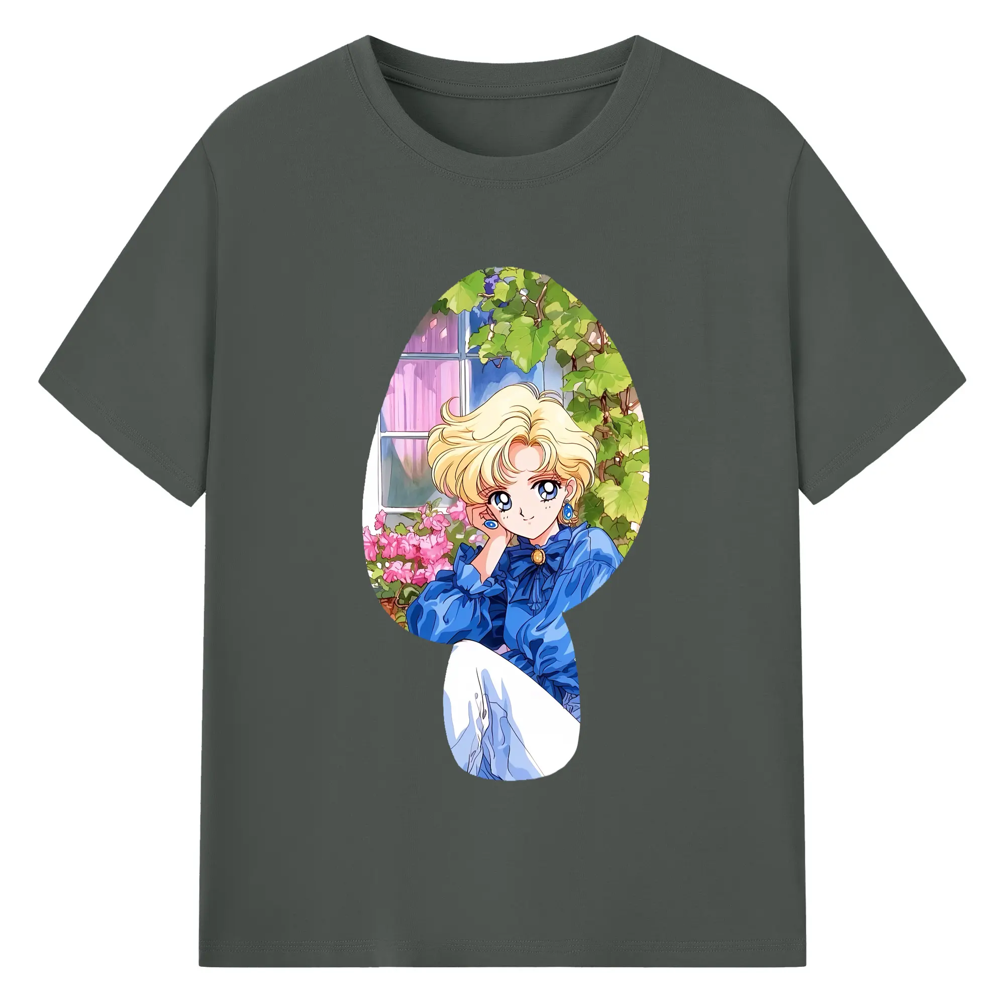 美少女戦士セーラームーン グッズ 天王 はるか - 綿100% ヴィンテージ風 半袖Tシャツ ・ フロントプリント ・ 柔らか肌触り ・ 通気性 快適 ・ スポーツ カジュアル 外出用