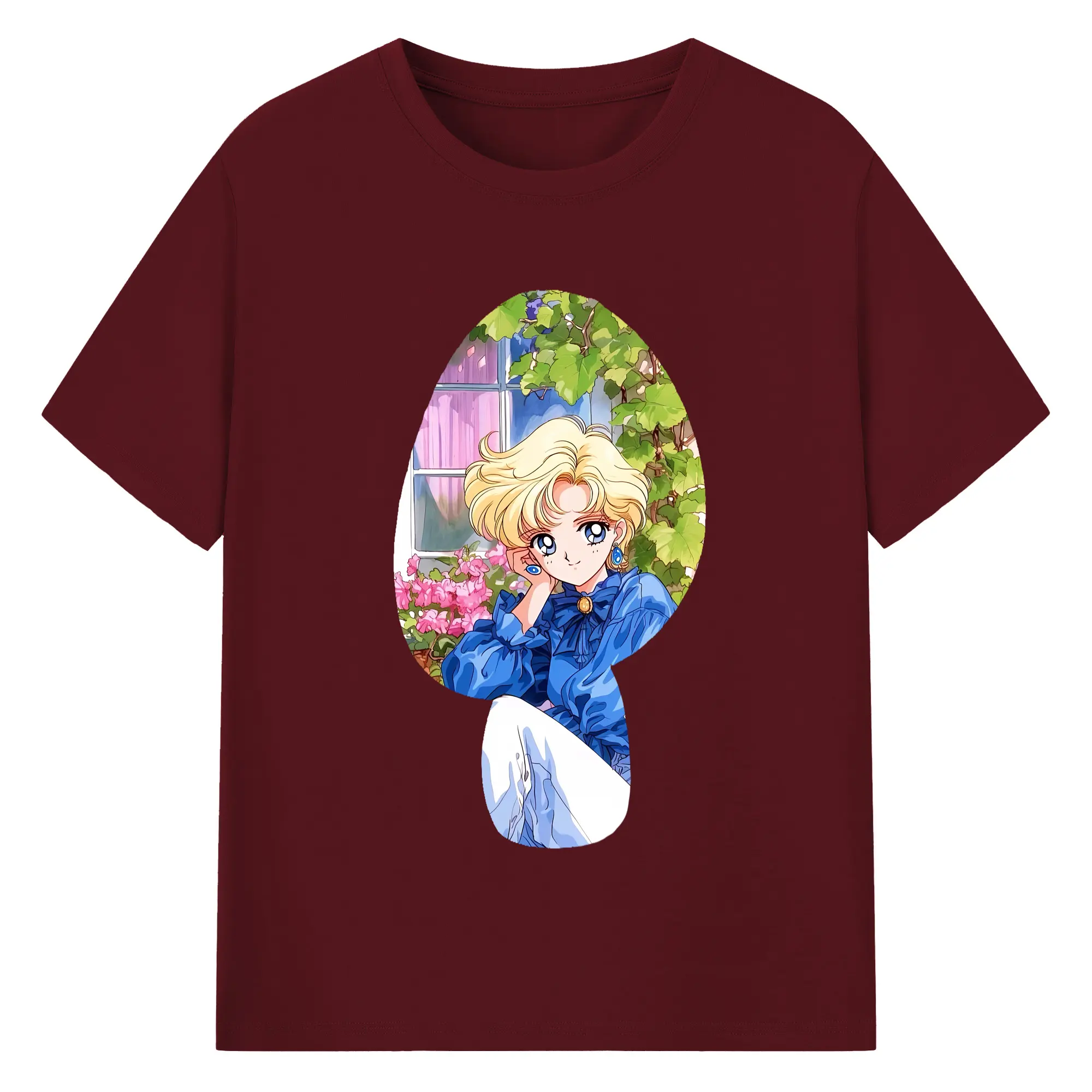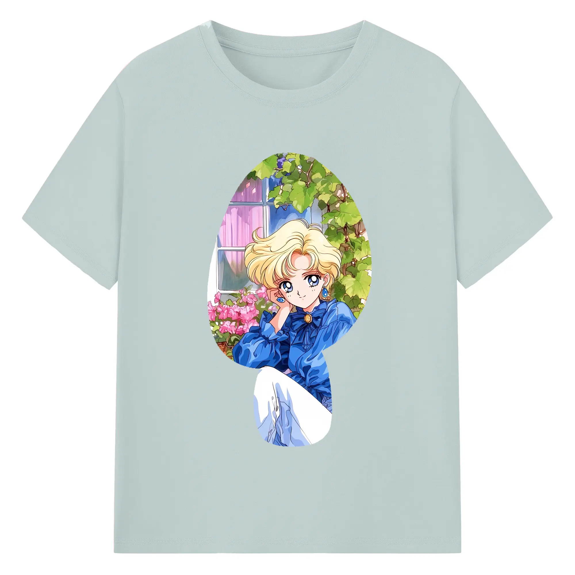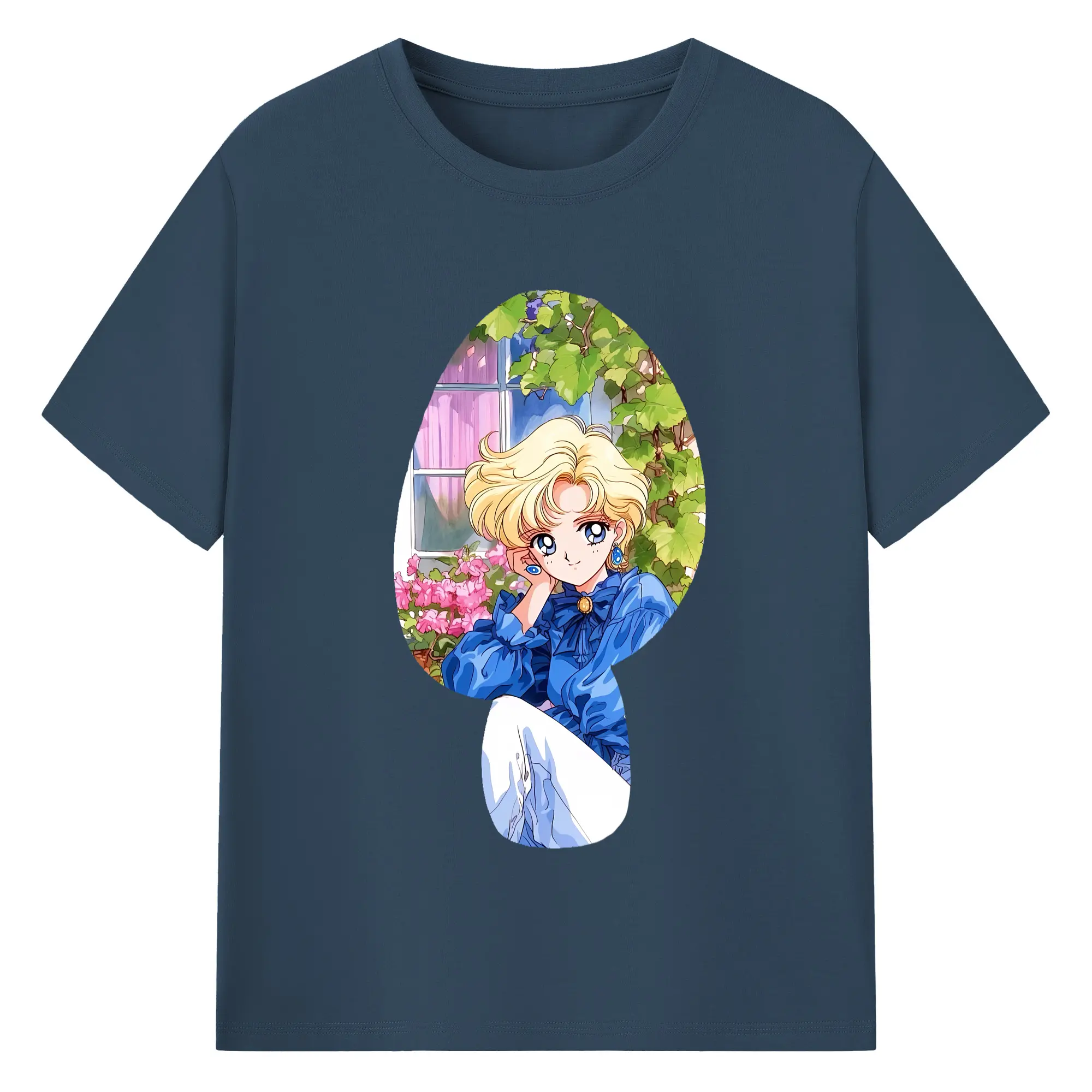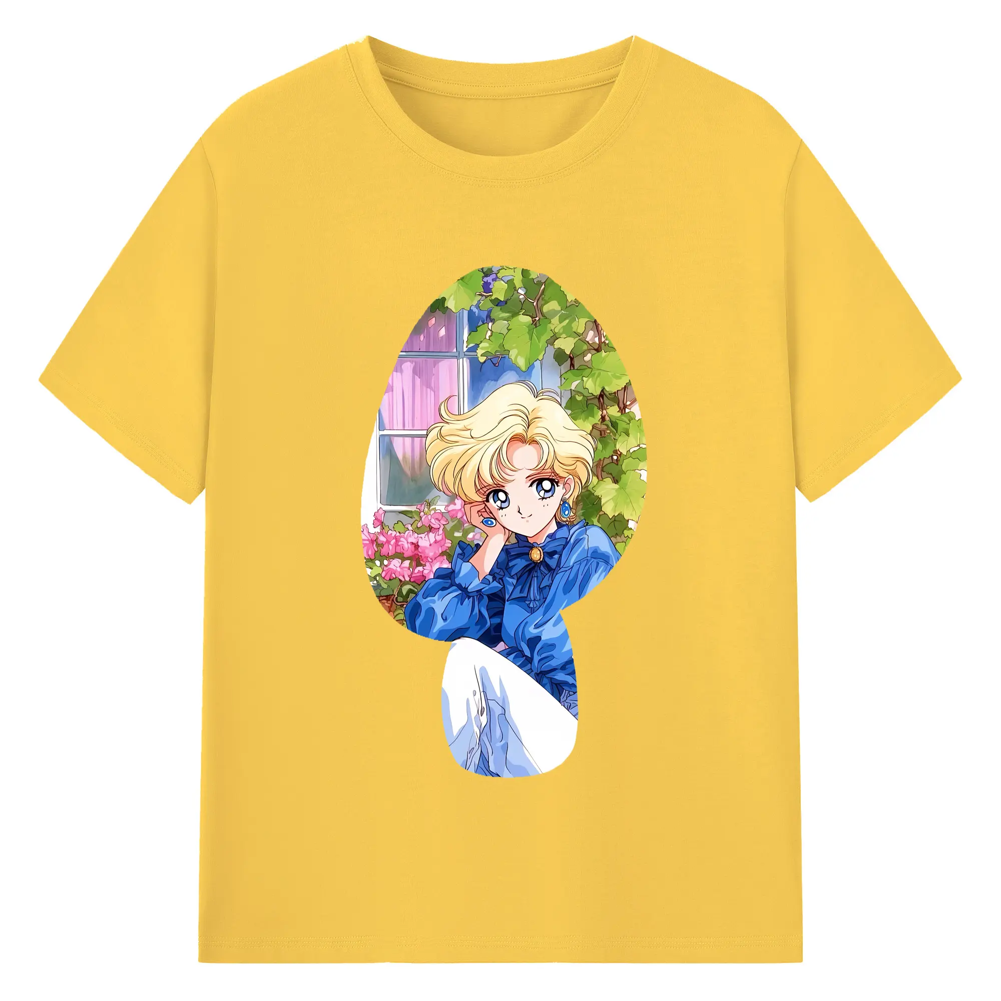 美少女戦士セーラームーン グッズ 天王 はるか - 綿100% ヴィンテージ風 半袖Tシャツ ・ フロントプリント ・ 柔らか肌触り ・ 通気性 快適 ・ スポーツ カジュアル 外出用