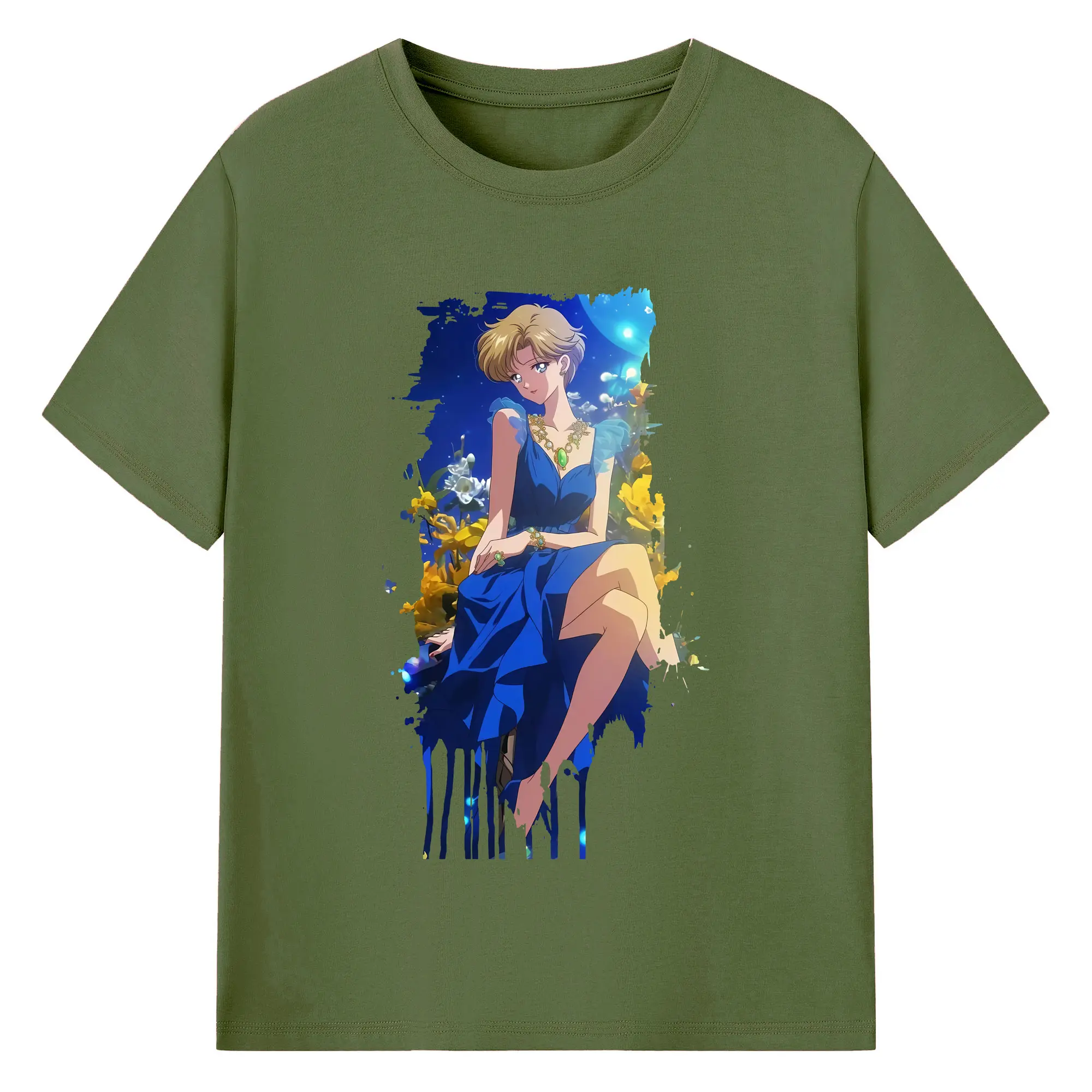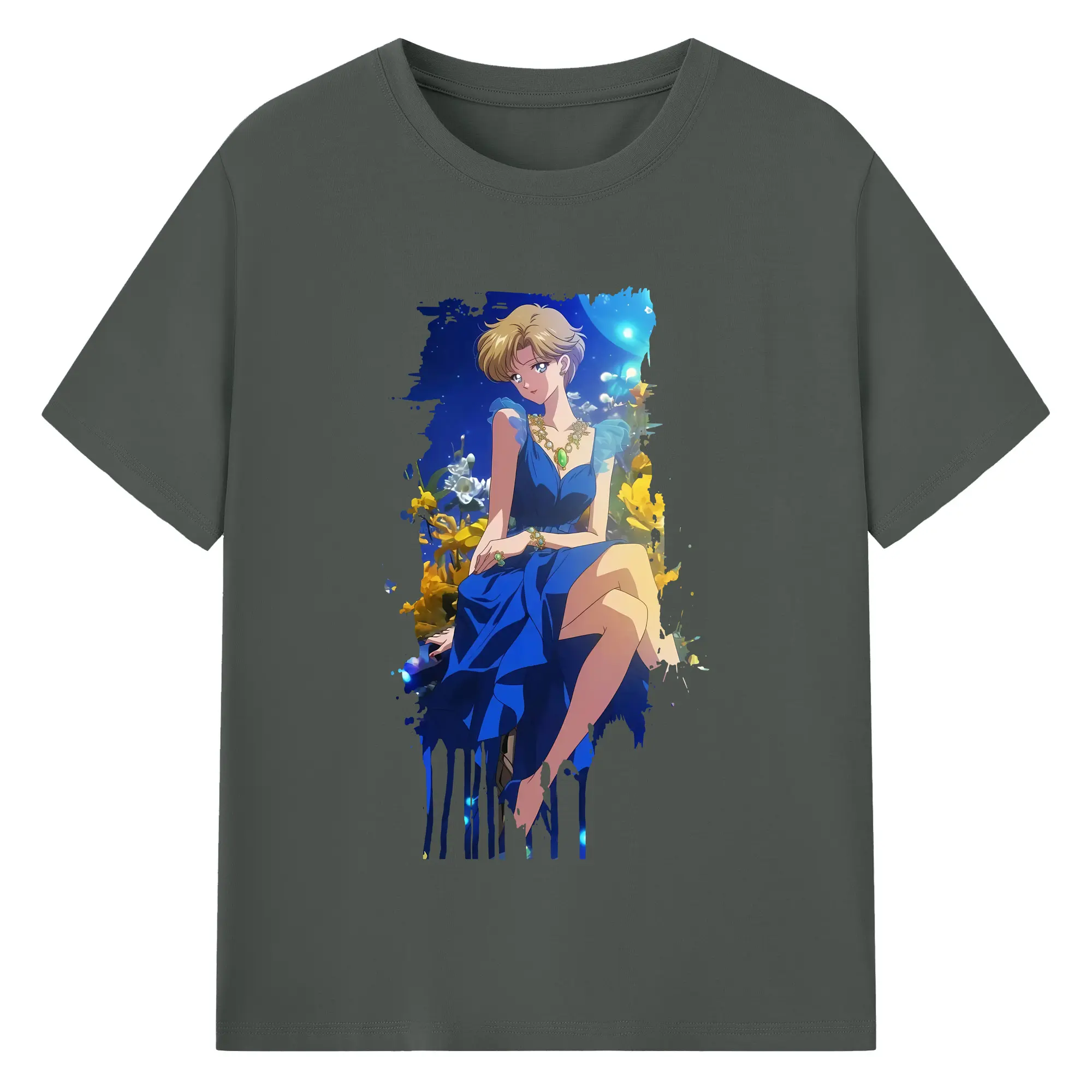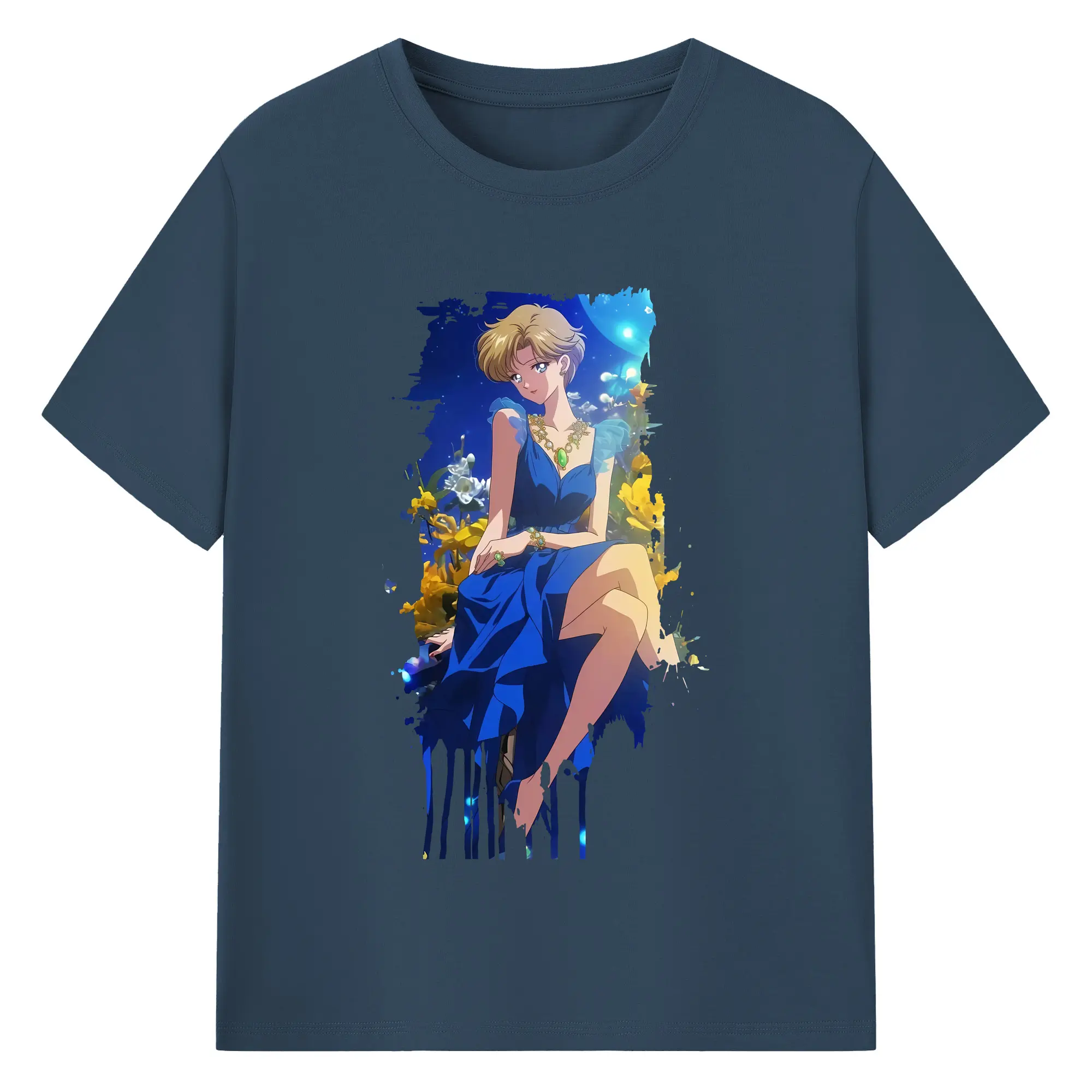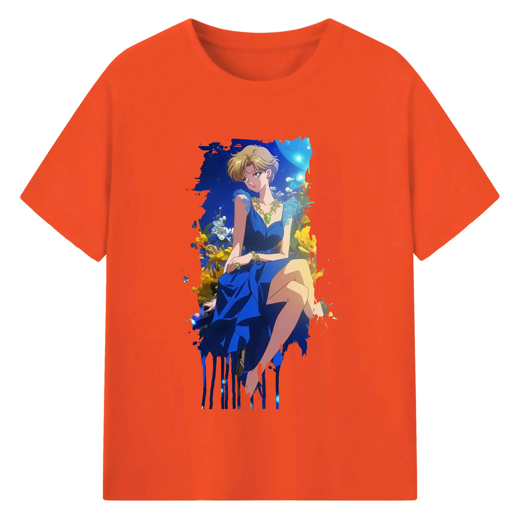 美少女戦士セーラームーン グッズ 天王 はるか - 綿100% ヴィンテージ風 半袖Tシャツ ・ フロントプリント ・ 柔らか肌触り ・ 通気性 快適 ・ スポーツ カジュアル 外出用