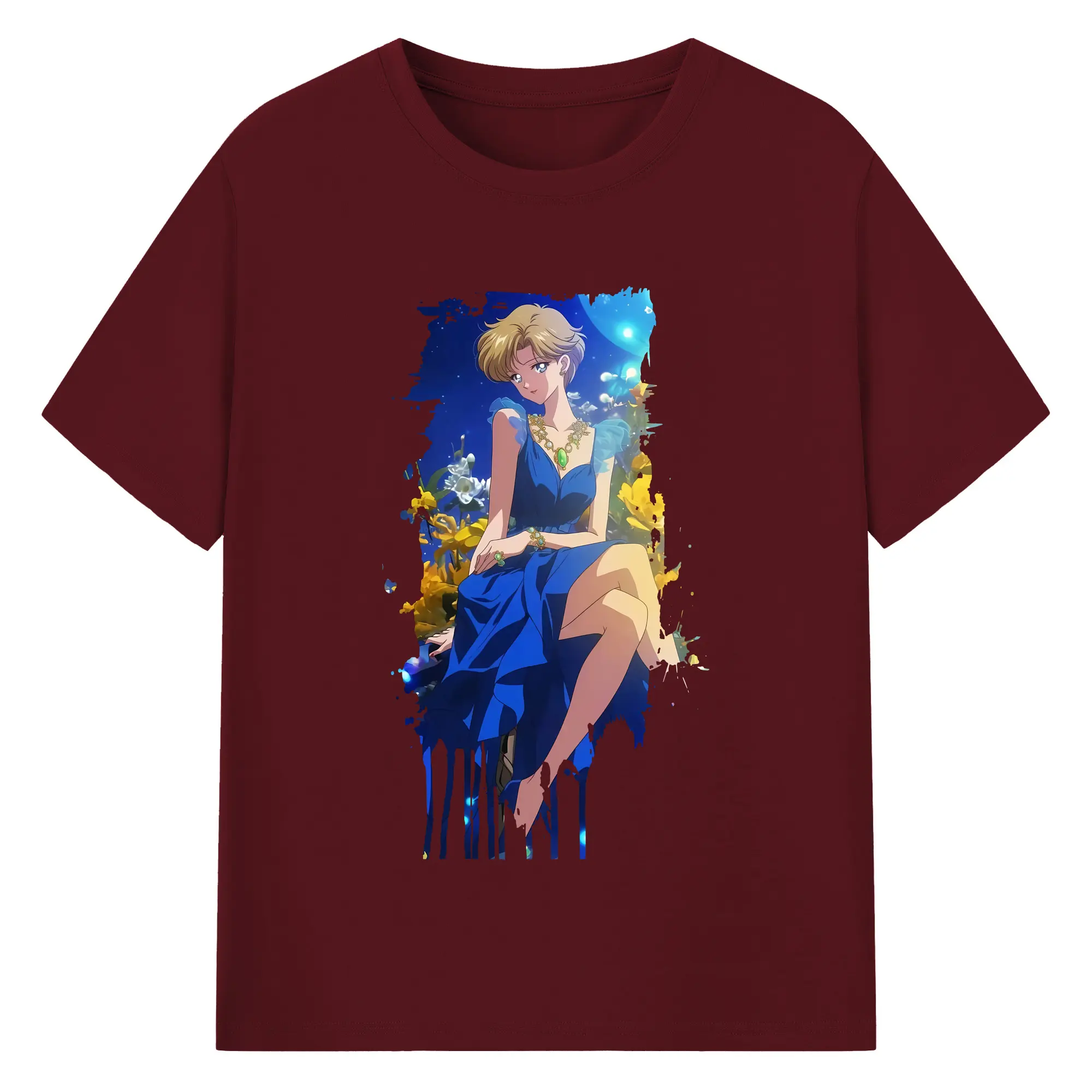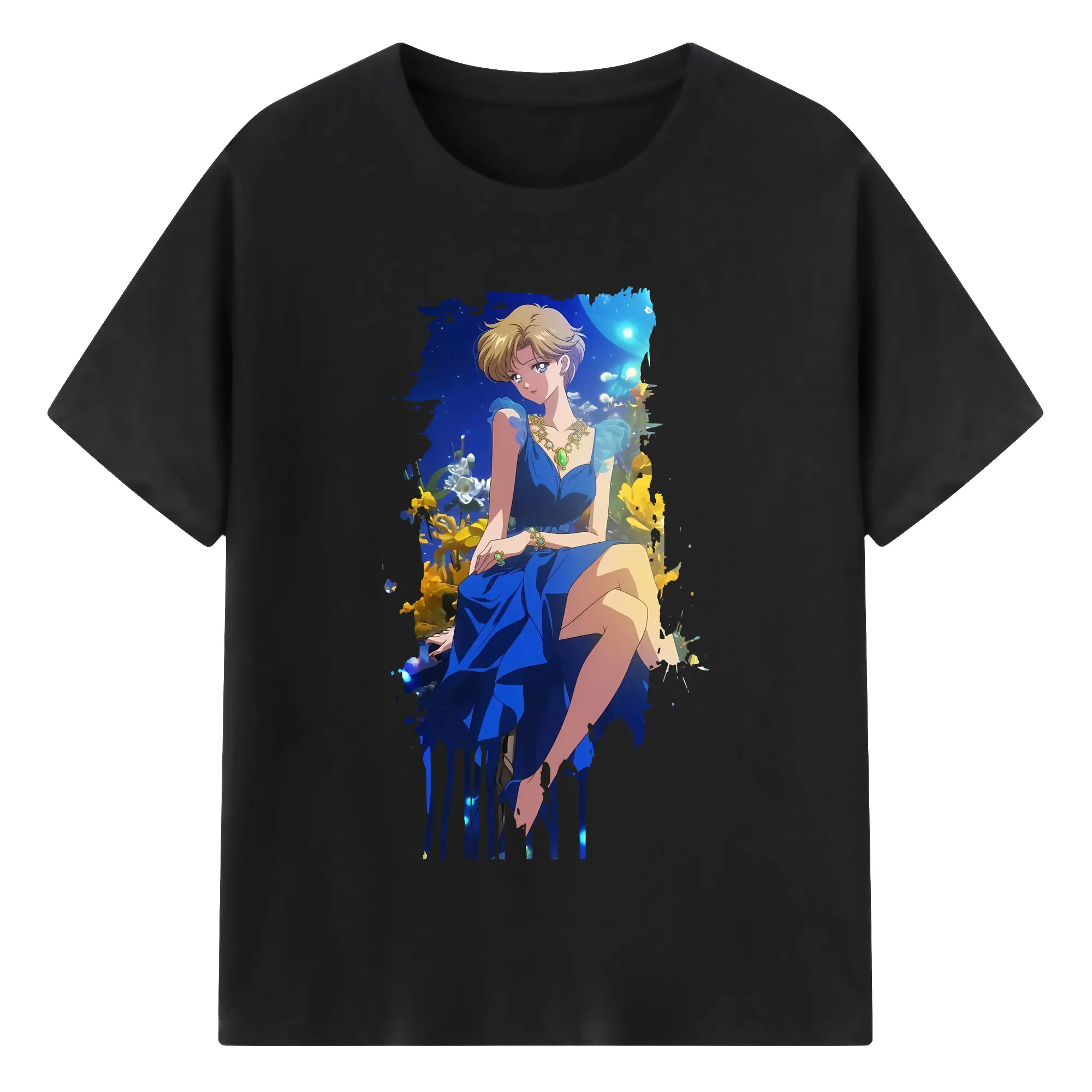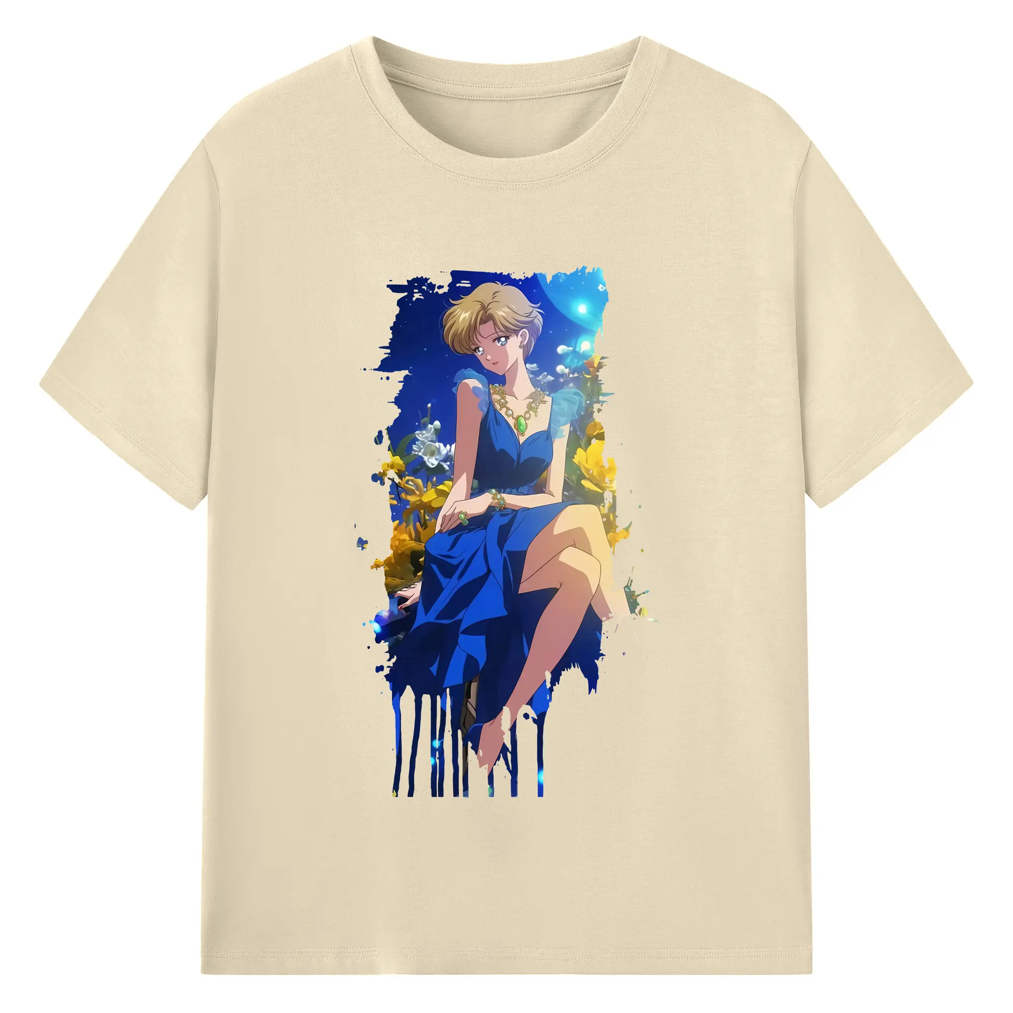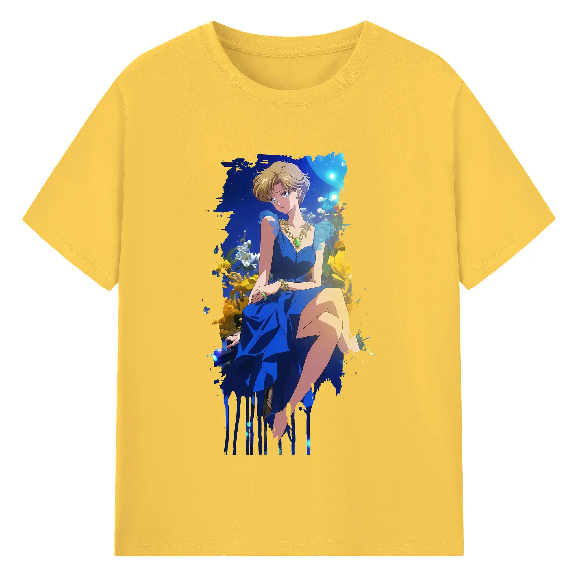 美少女戦士セーラームーン グッズ 天王 はるか - 綿100% ヴィンテージ風 半袖Tシャツ ・ フロントプリント ・ 柔らか肌触り ・ 通気性 快適 ・ スポーツ カジュアル 外出用