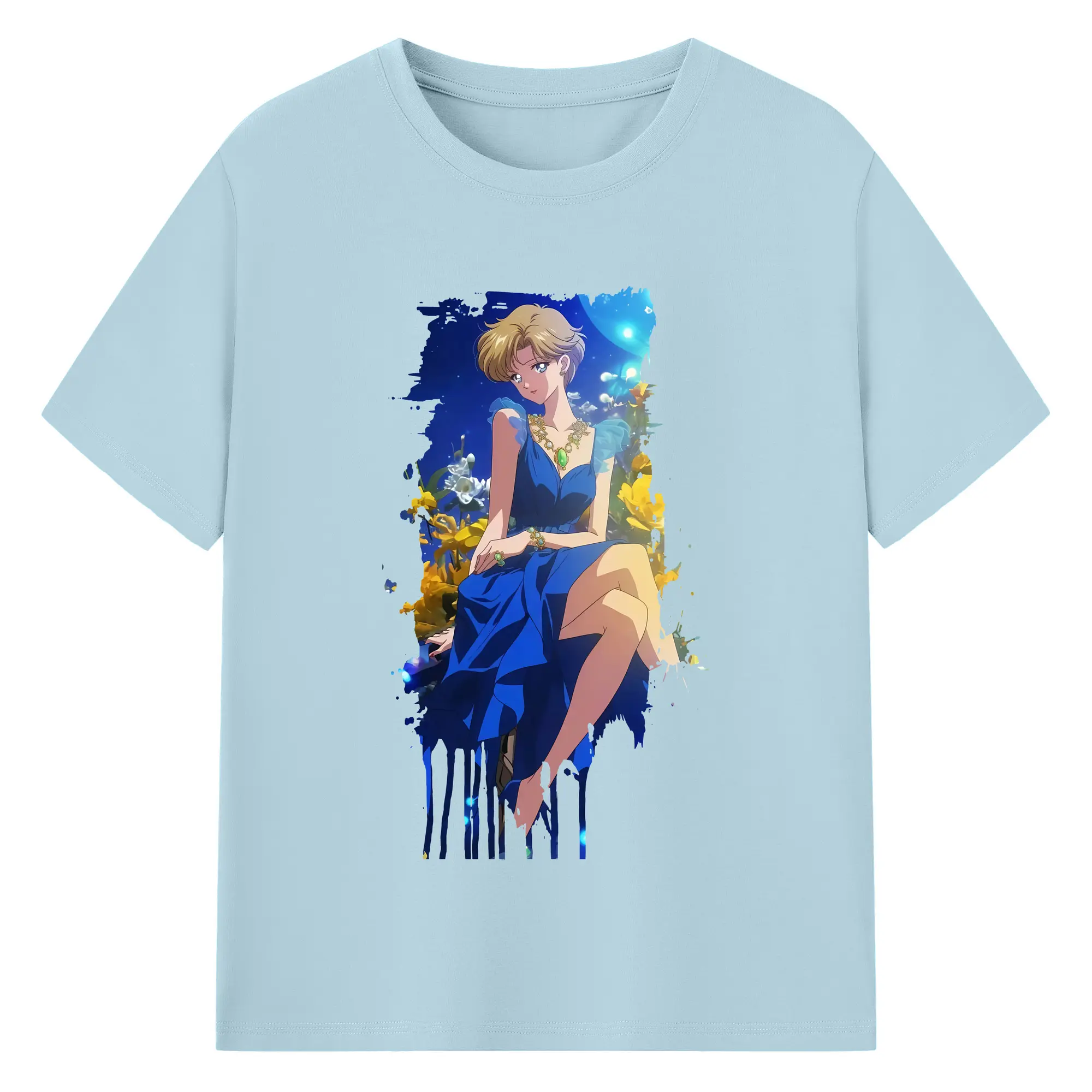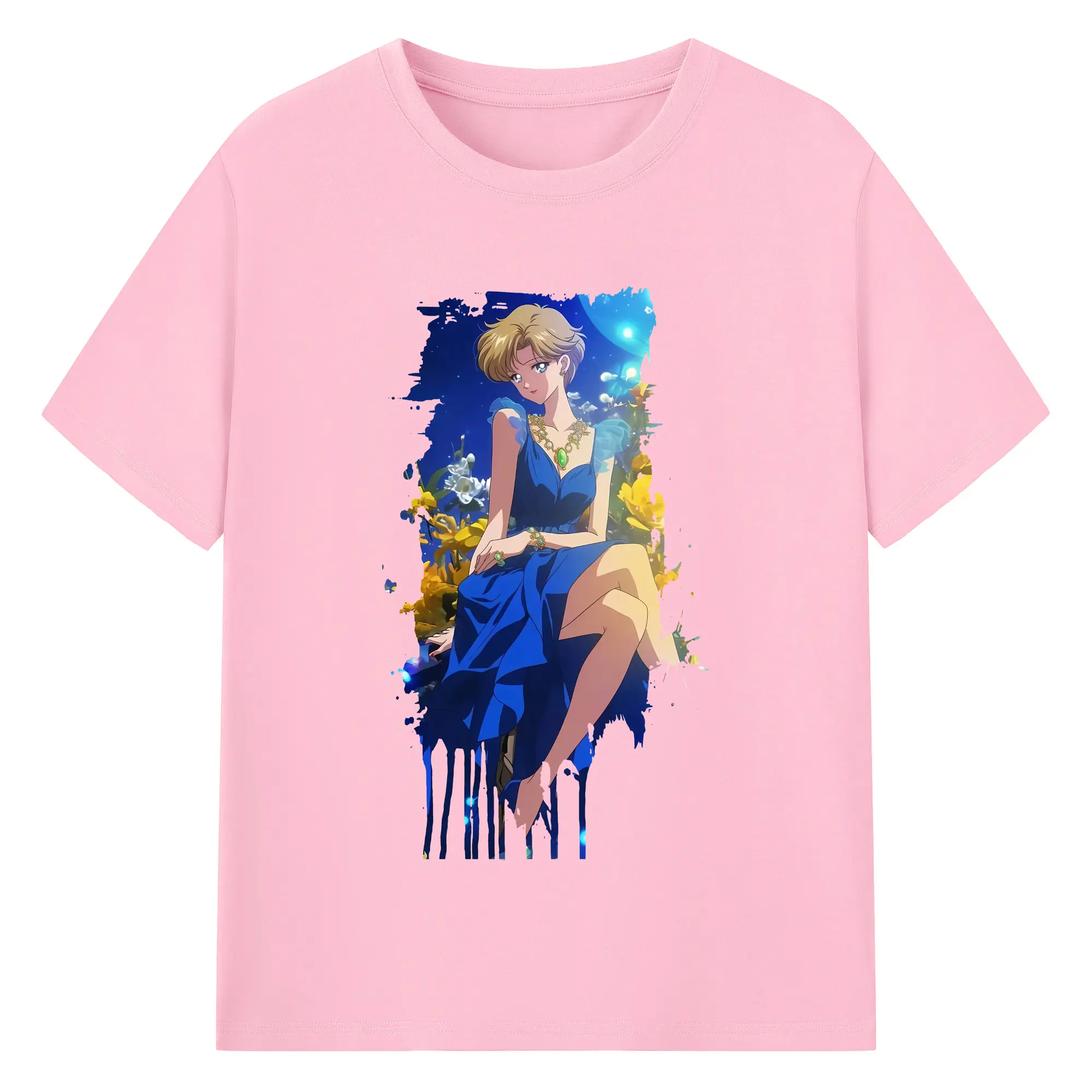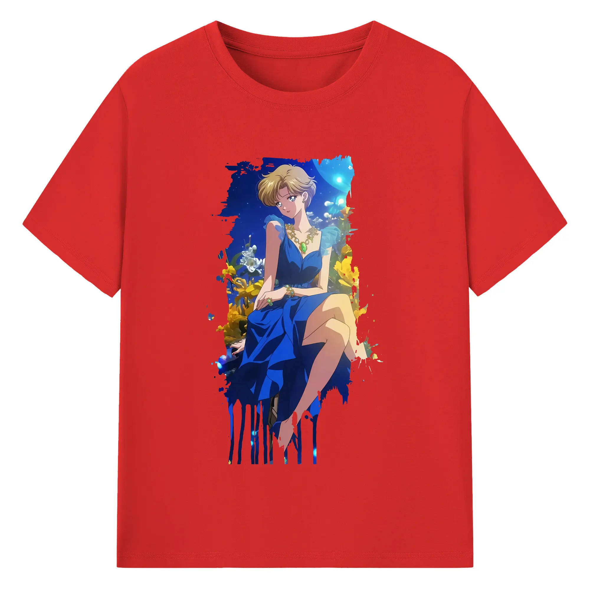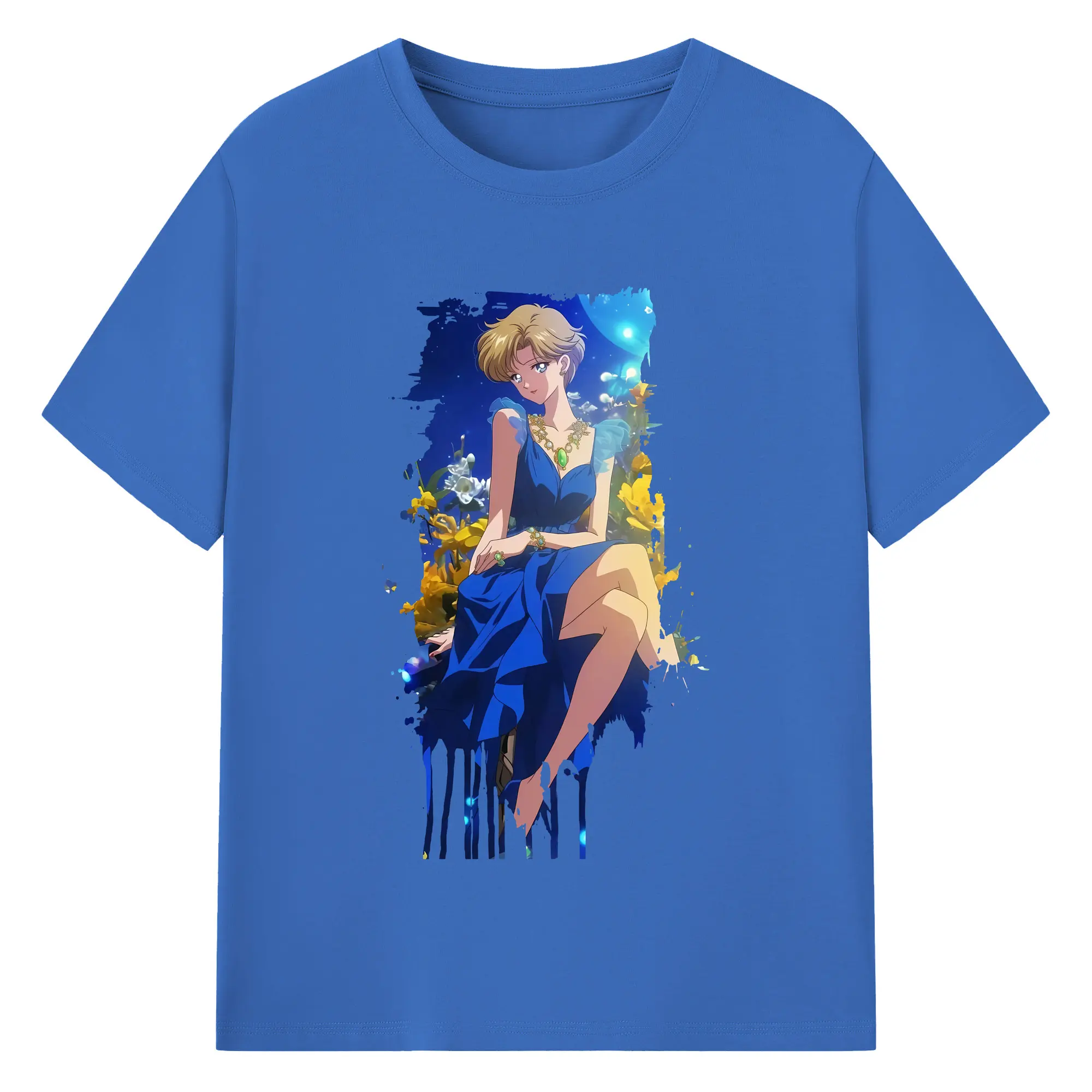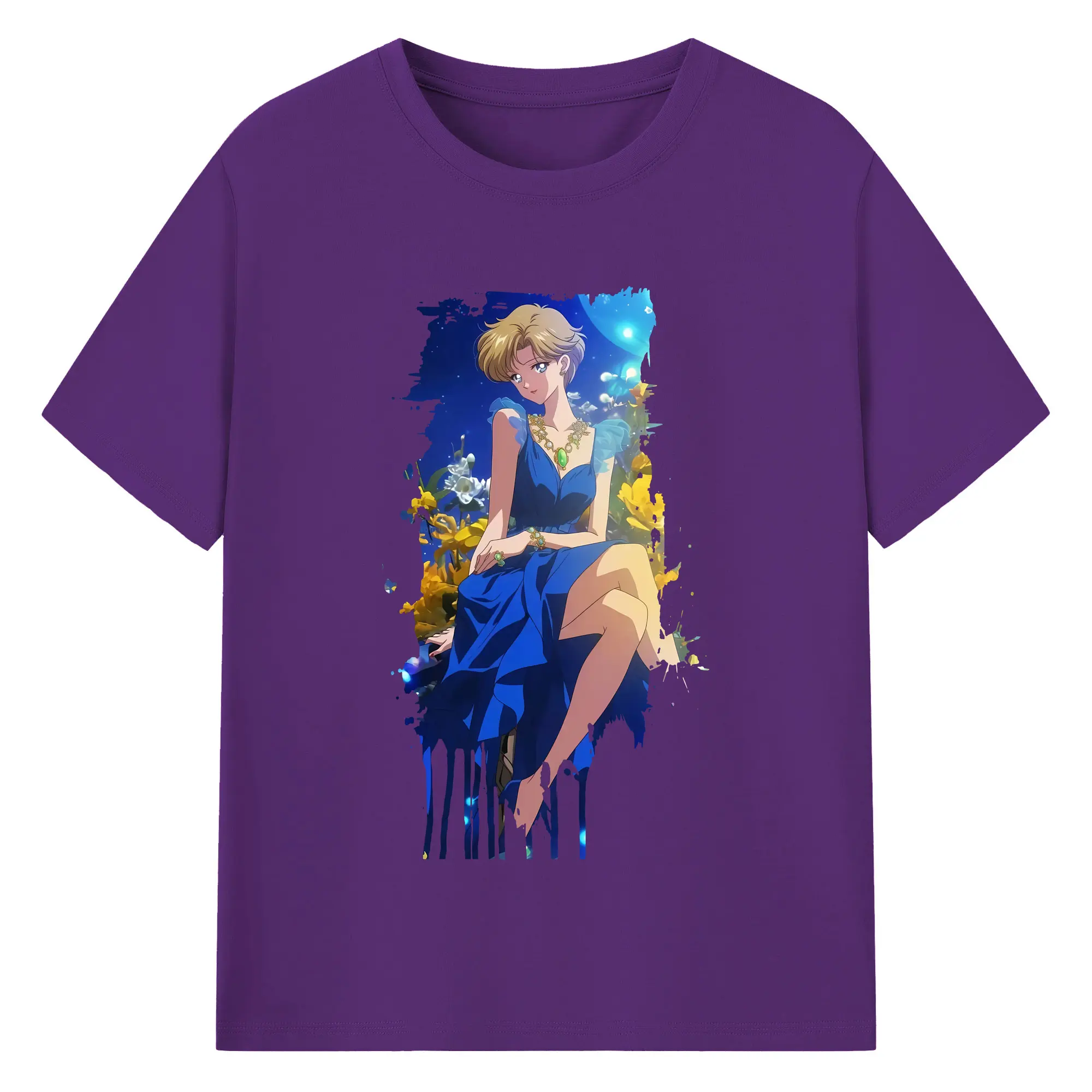 美少女戦士セーラームーン グッズ 天王 はるか - 綿100% 半袖Tシャツ ・ バックプリント ・ 快適 通気性 ・ 日常使い 散歩 スポーツ用