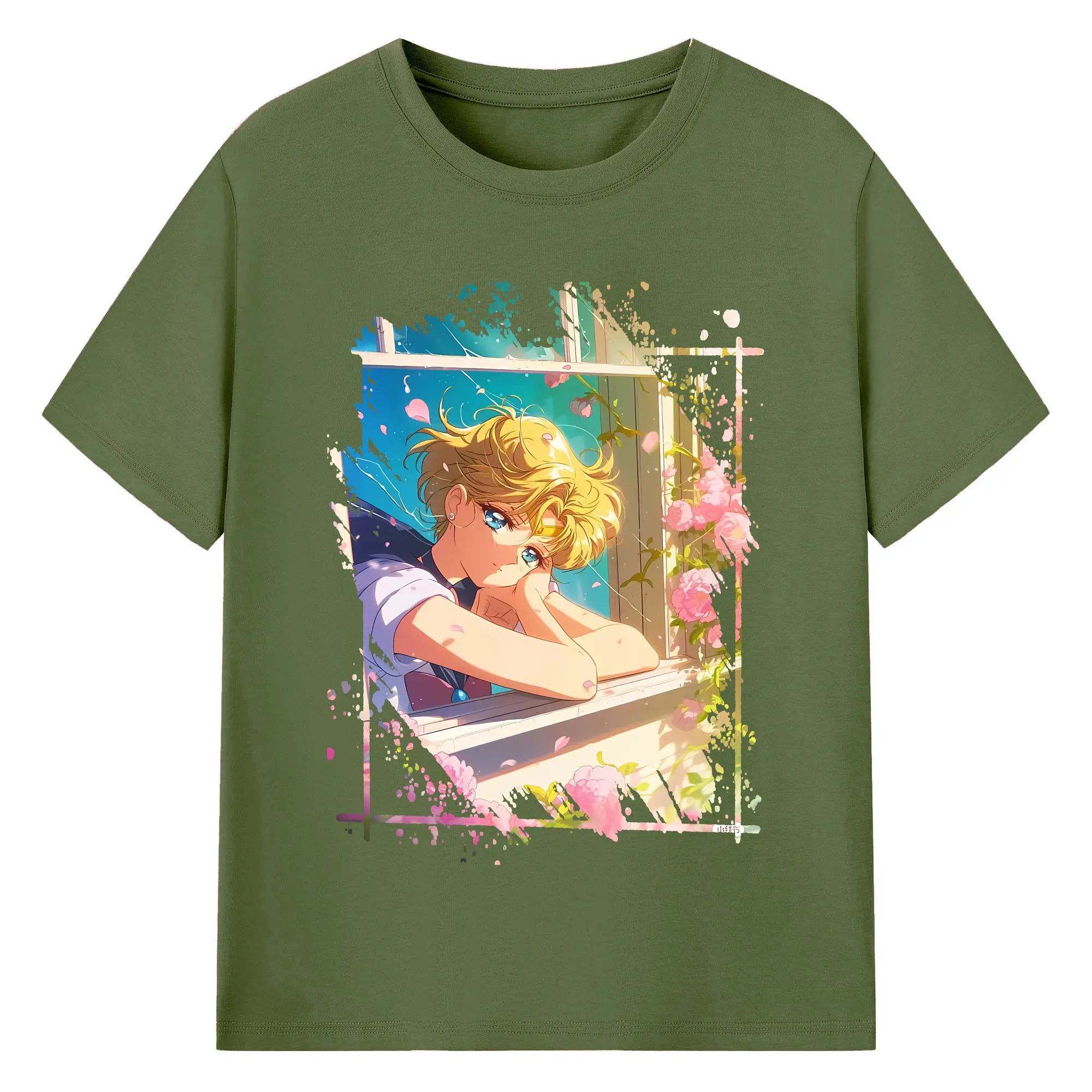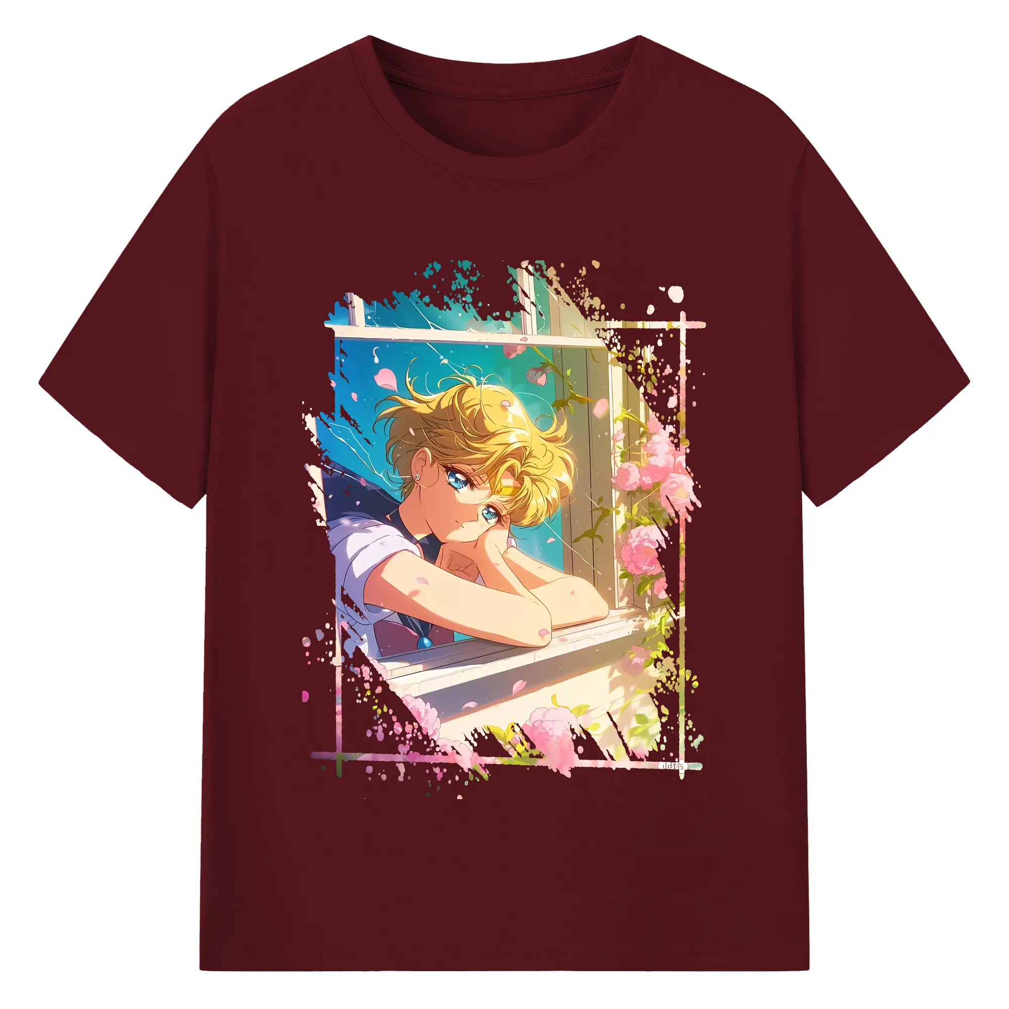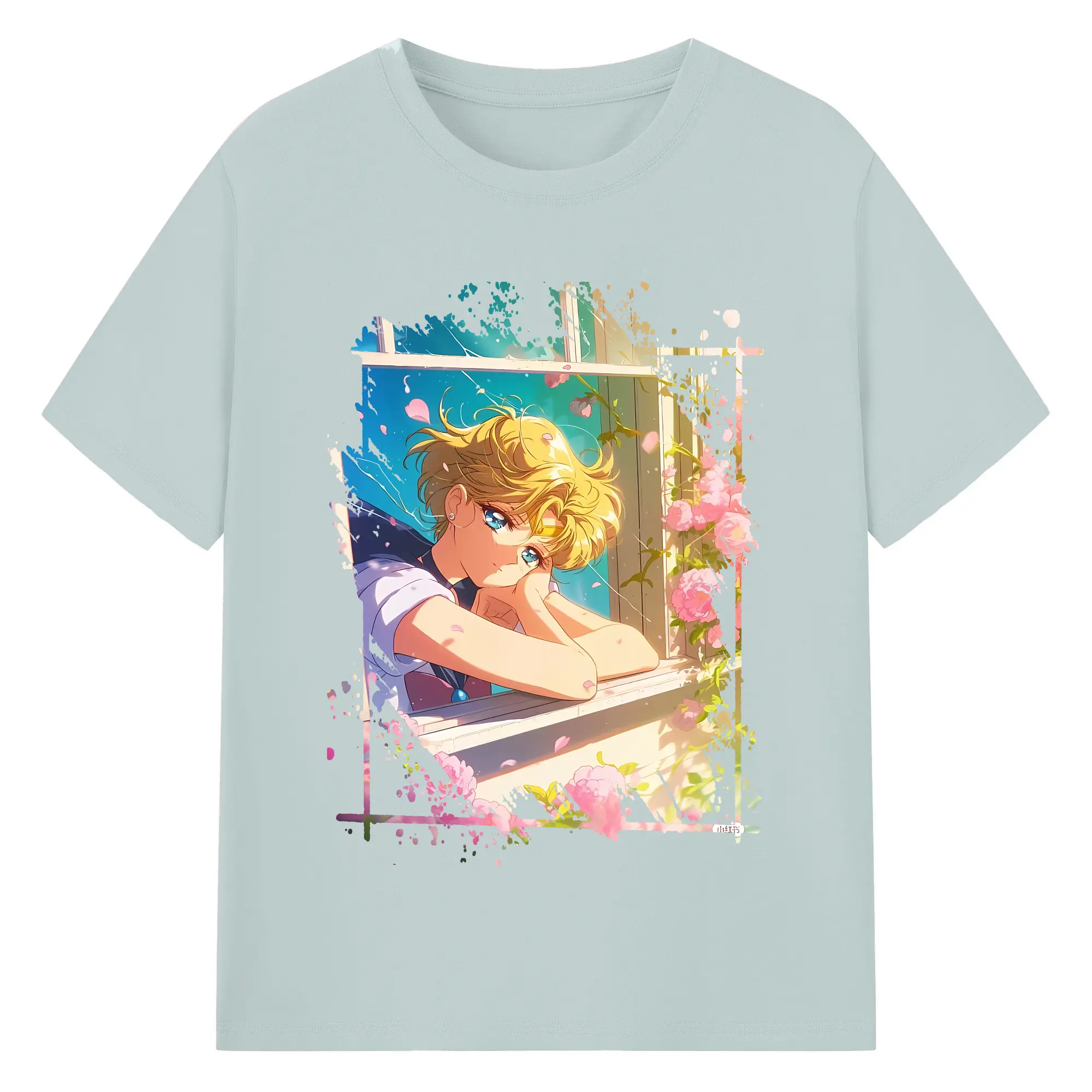 美少女戦士セーラームーン グッズ 天王 はるか - 綿100% ヴィンテージ風 半袖Tシャツ ・ フロントプリント ・ 柔らか肌触り ・ 通気性 快適 ・ スポーツ カジュアル 外出用