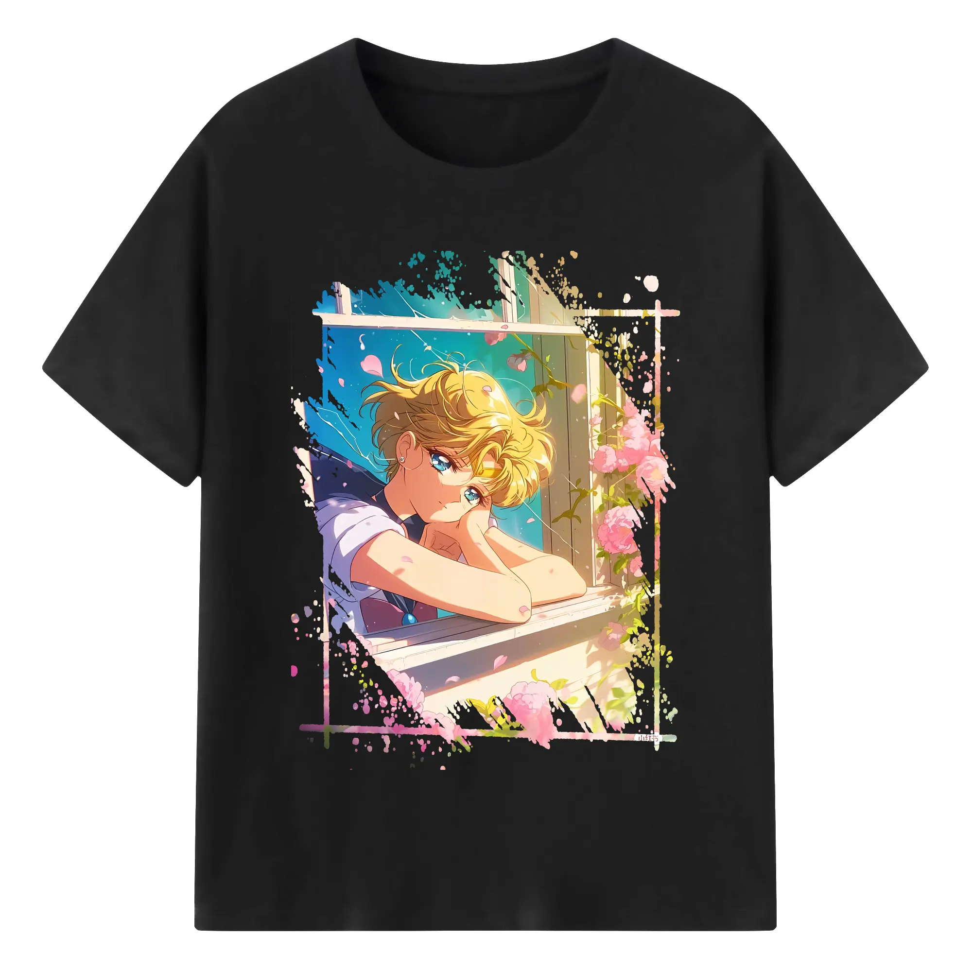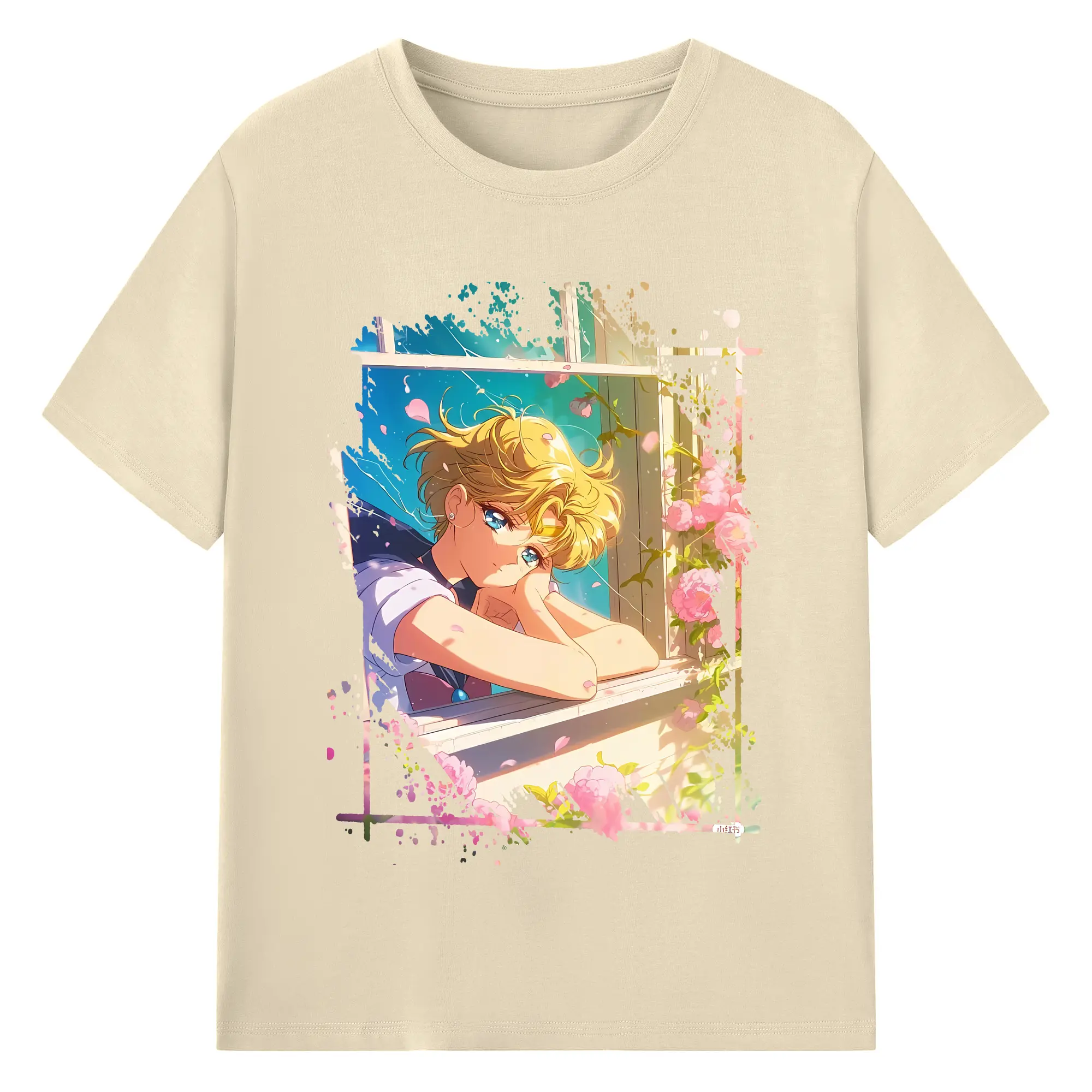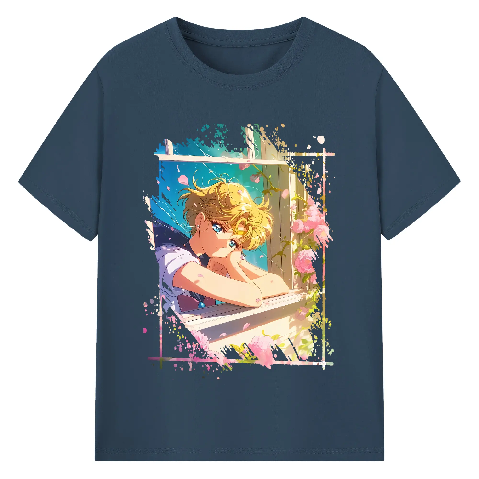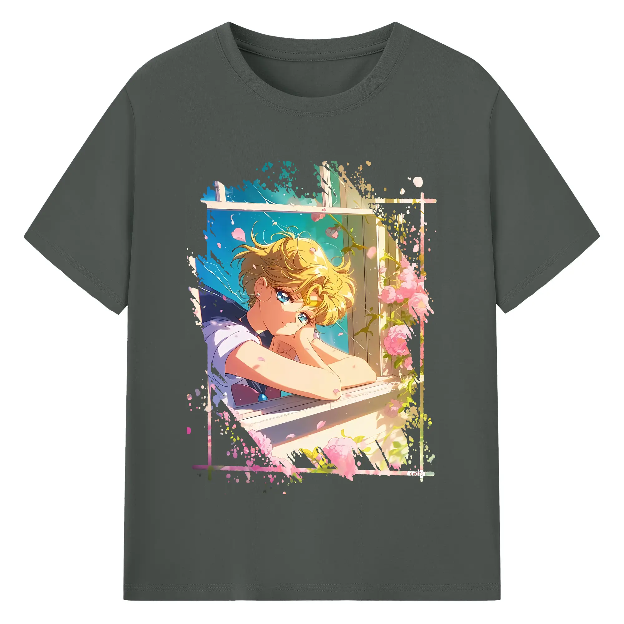 美少女戦士セーラームーン グッズ 天王 はるか - 綿100% ヴィンテージ風 半袖Tシャツ ・ フロントプリント ・ 柔らか肌触り ・ 通気性 快適 ・ スポーツ カジュアル 外出用