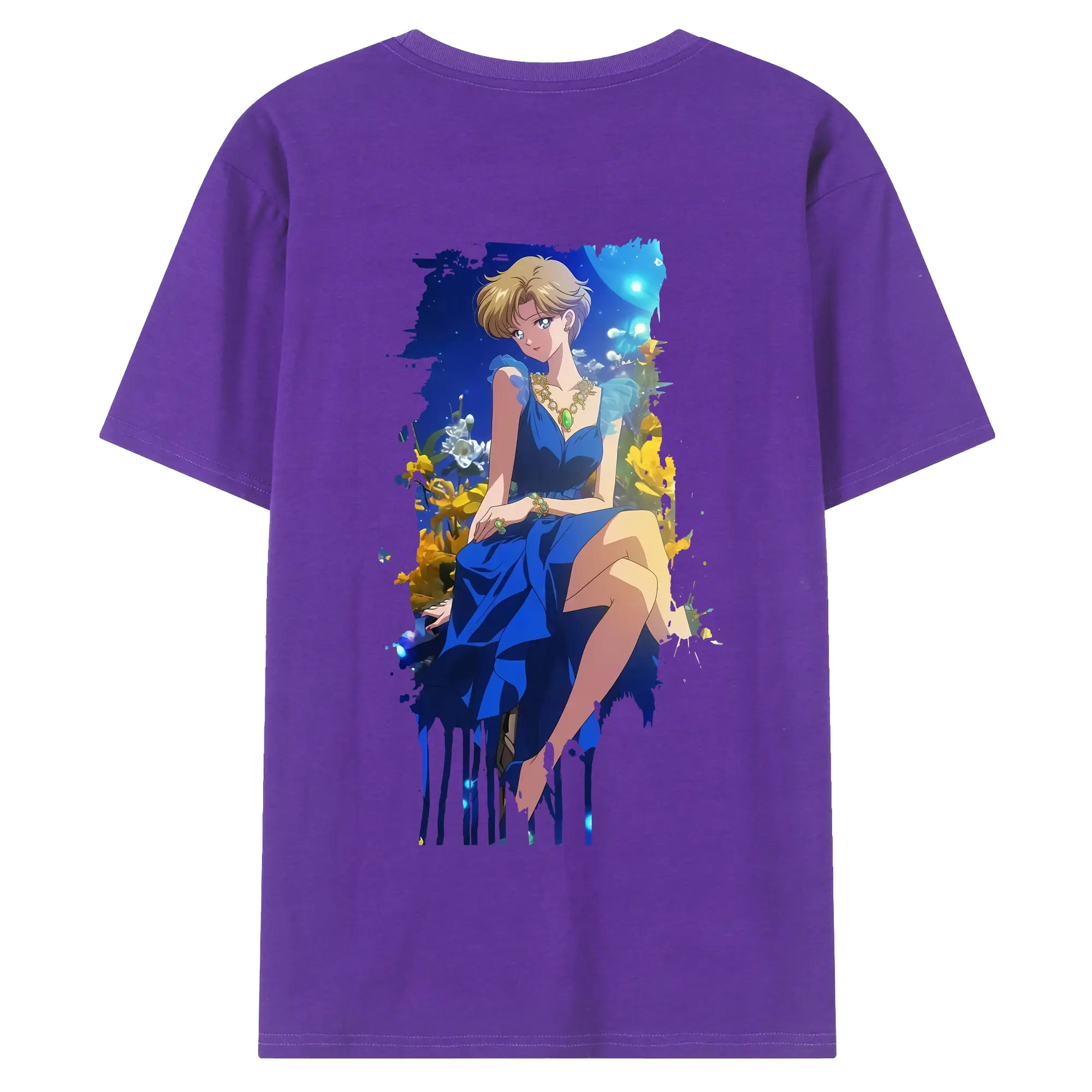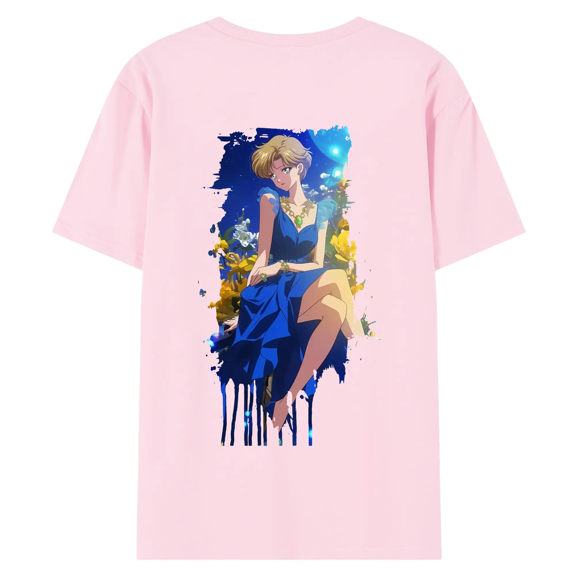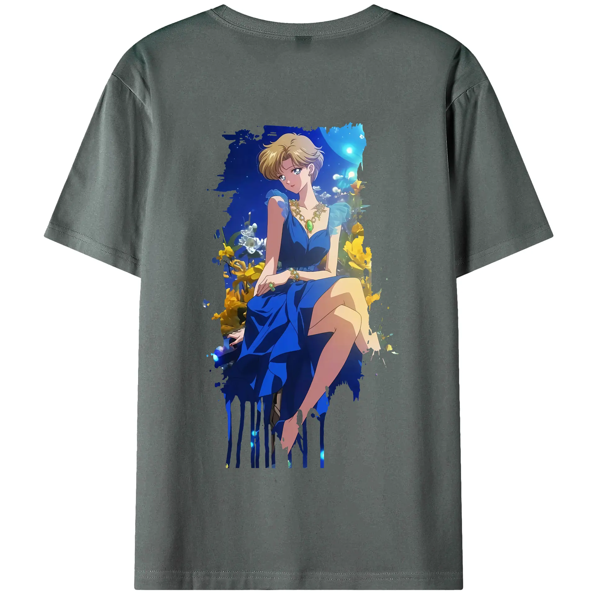 美少女戦士セーラームーン グッズ 天王 はるか - 綿100% 半袖Tシャツ ・ フロントプリント ・ 快適 通気性 ・ 日常使い 散歩 スポーツ用