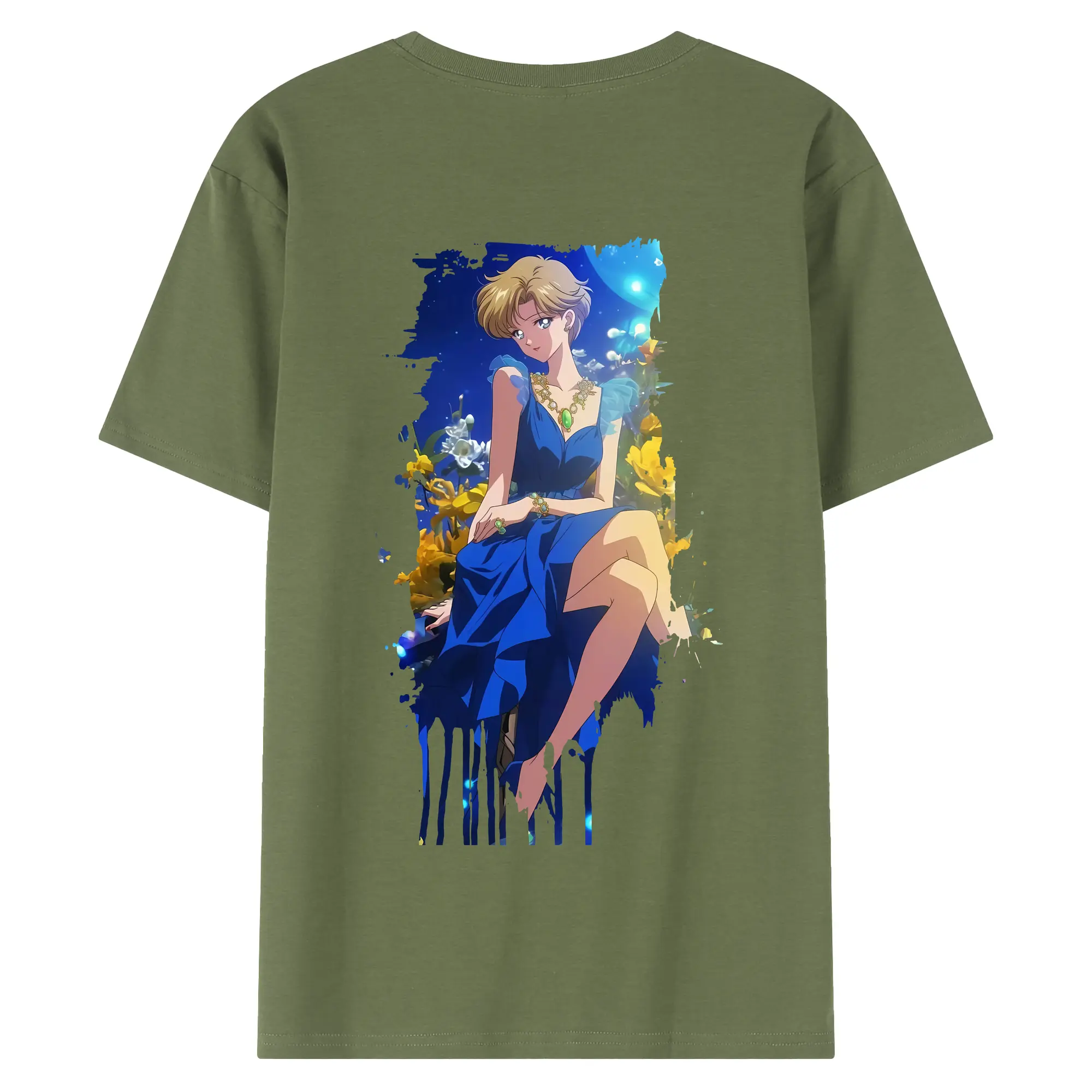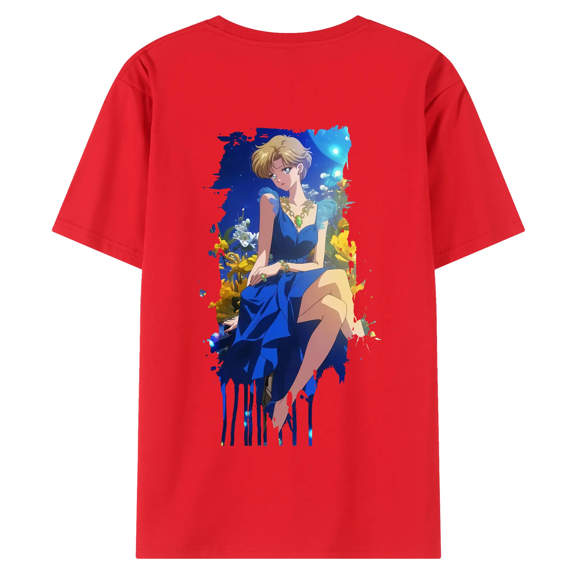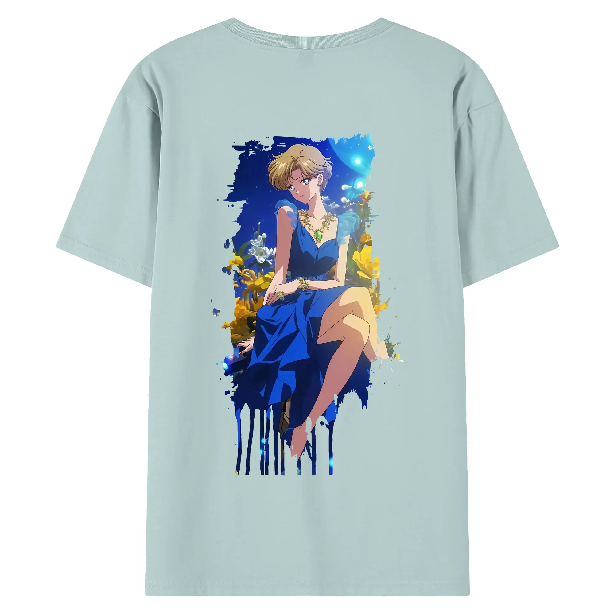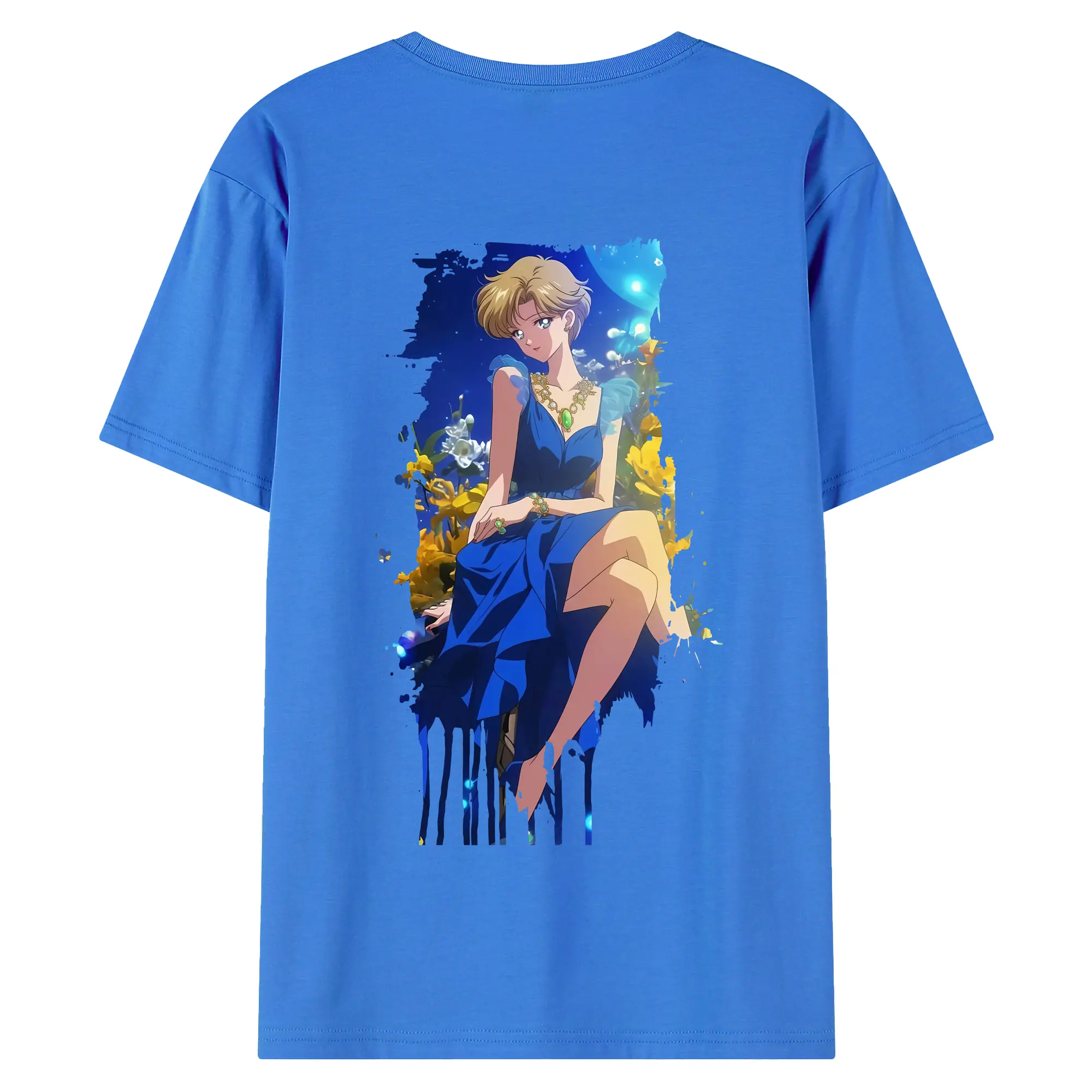 美少女戦士セーラームーン グッズ 天王 はるか - 綿100% 半袖Tシャツ ・ フロントプリント ・ 快適 通気性 ・ 日常使い 散歩 スポーツ用