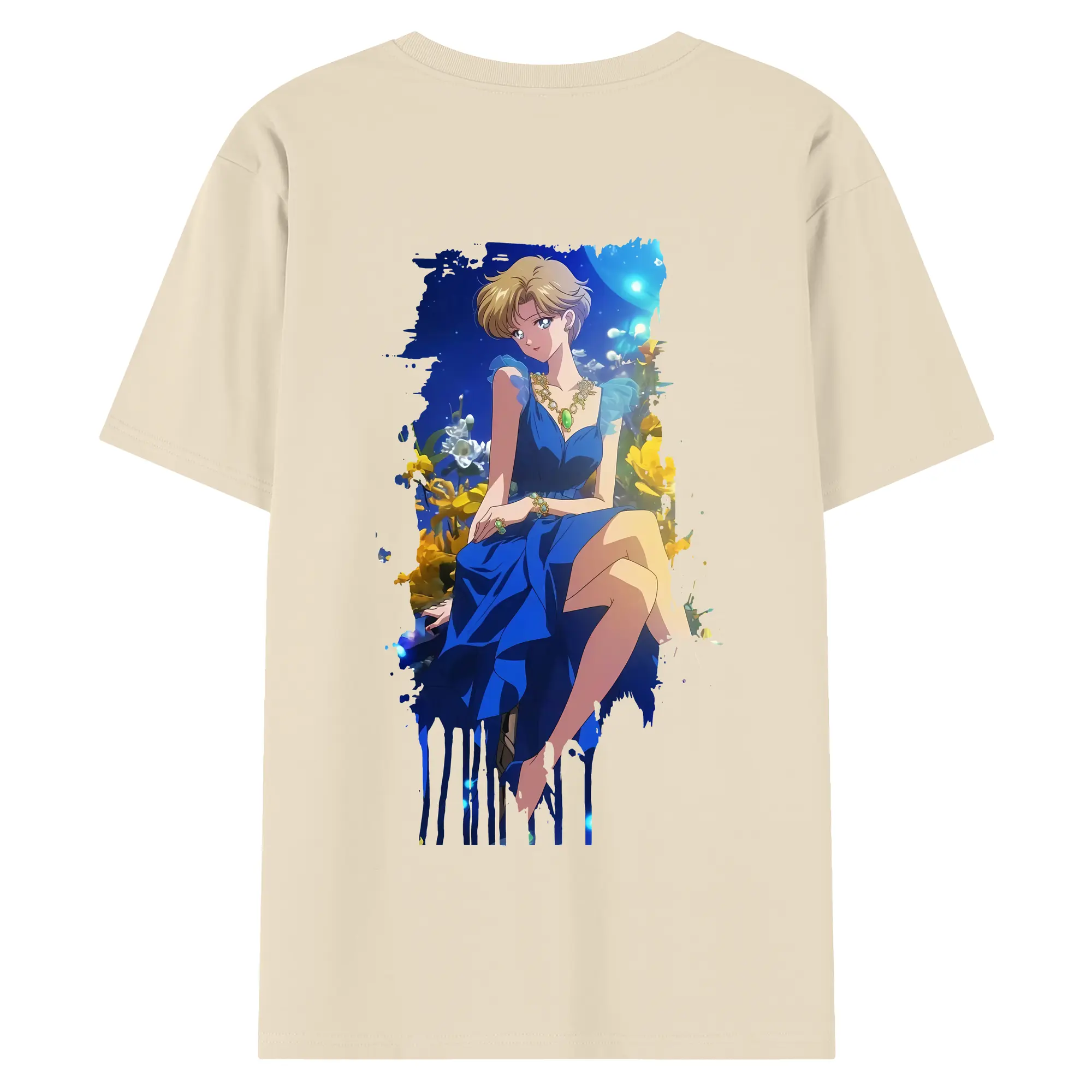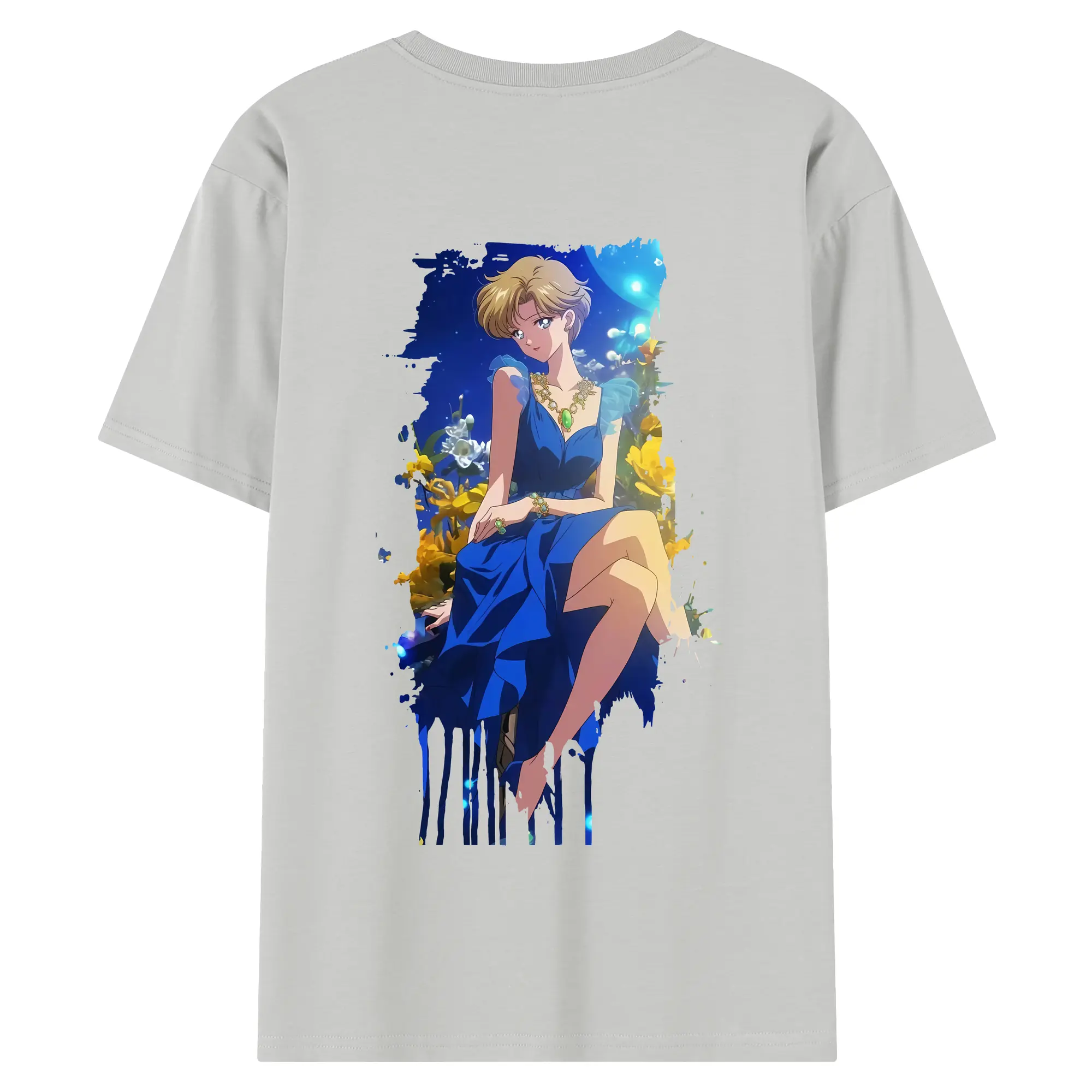 美少女戦士セーラームーン グッズ 天王 はるか - 綿100% ヴィンテージ風 半袖Tシャツ ・ 背面プリント ・ 柔らか肌触り ・ 通気性 快適 ・ スポーツ カジュアル 外出用