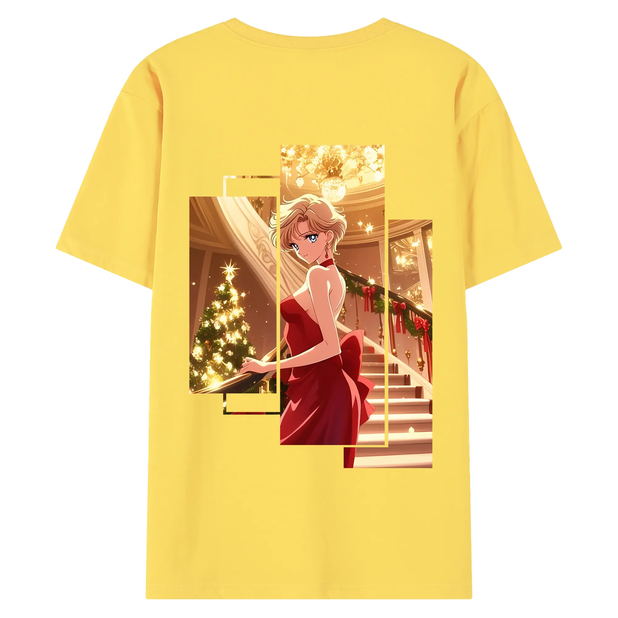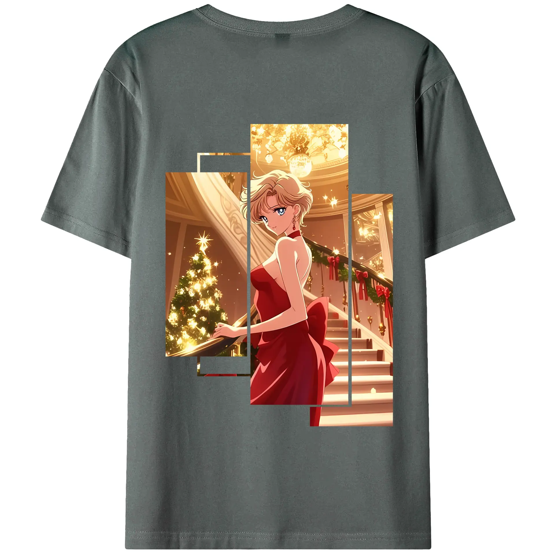 美少女戦士セーラームーン グッズ 天王 はるか - 綿100% 半袖Tシャツ ・ フロントプリント ・ 快適 通気性 ・ 日常使い 散歩 スポーツ用