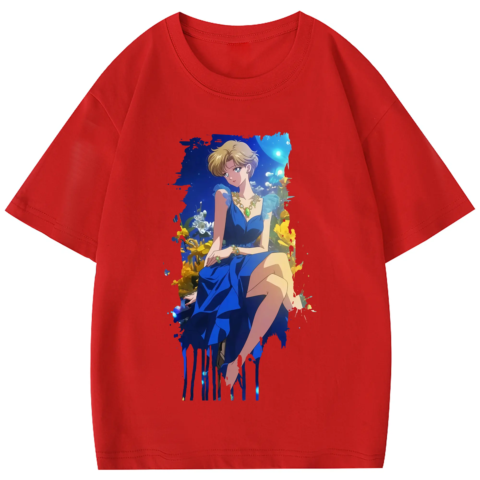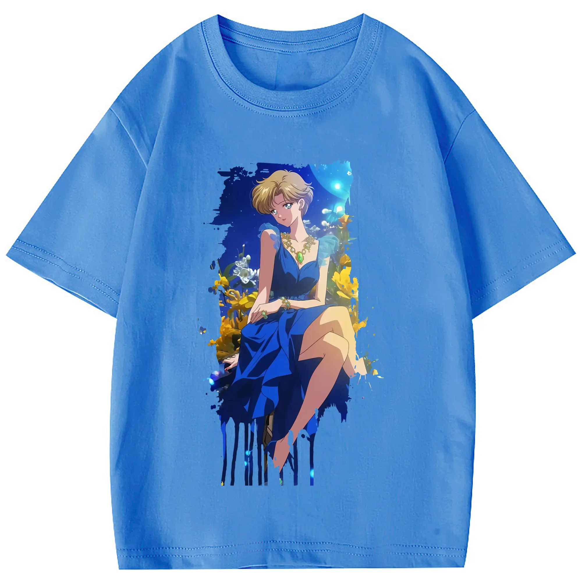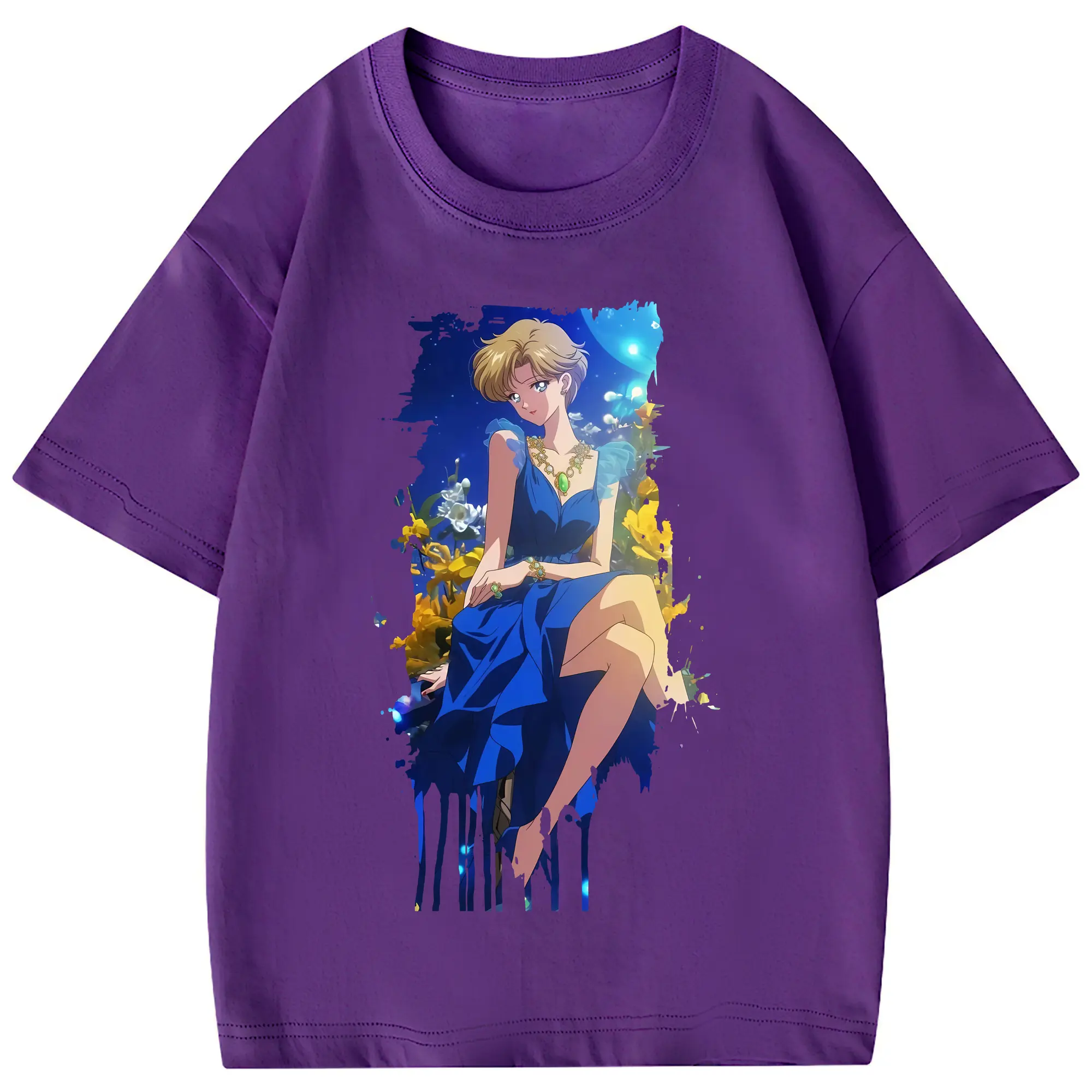 美少女戦士セーラームーン グッズ 天王 はるか - 綿100% 半袖Tシャツ ・ フロントプリント ・ 快適 通気性 ・ 日常使い 散歩 スポーツ用