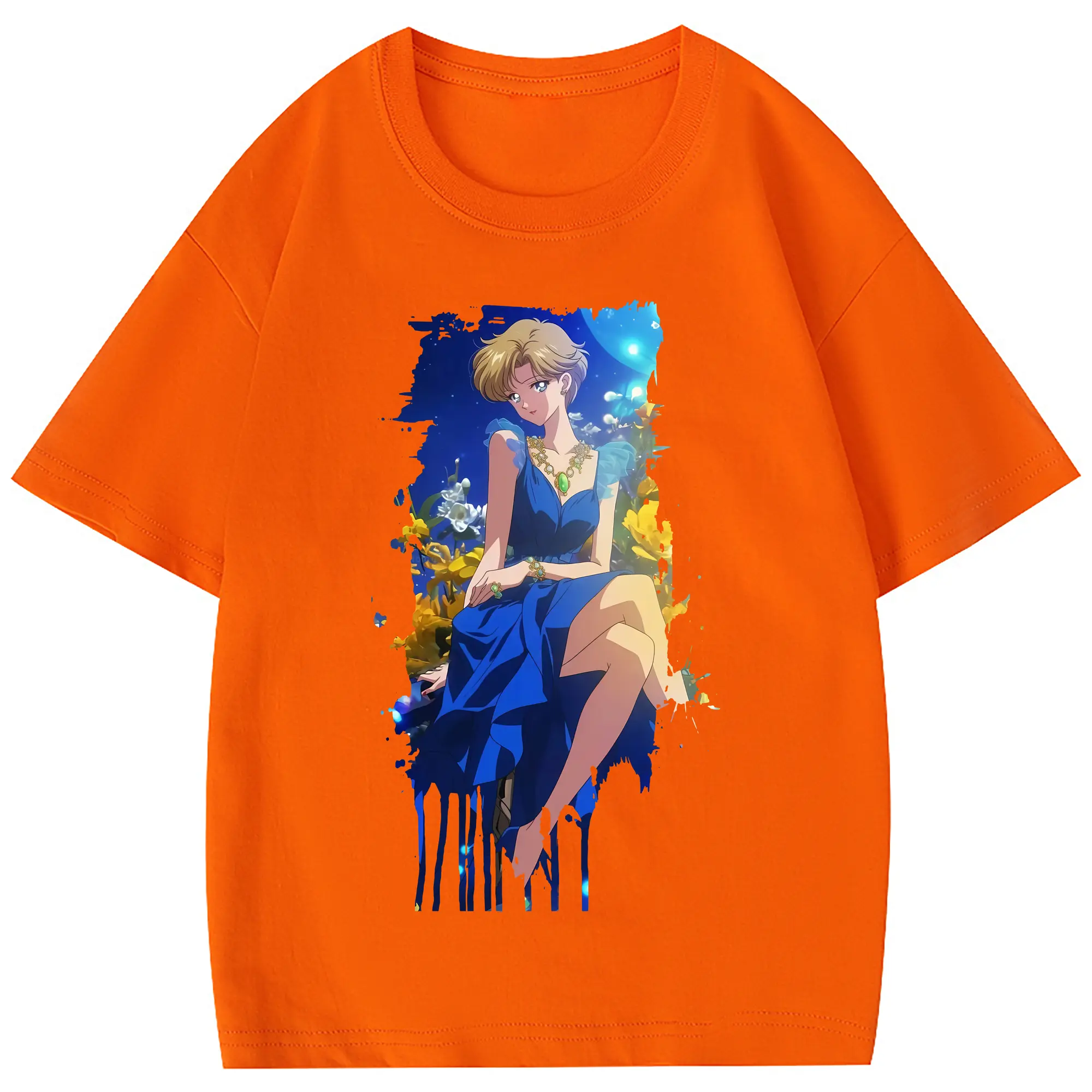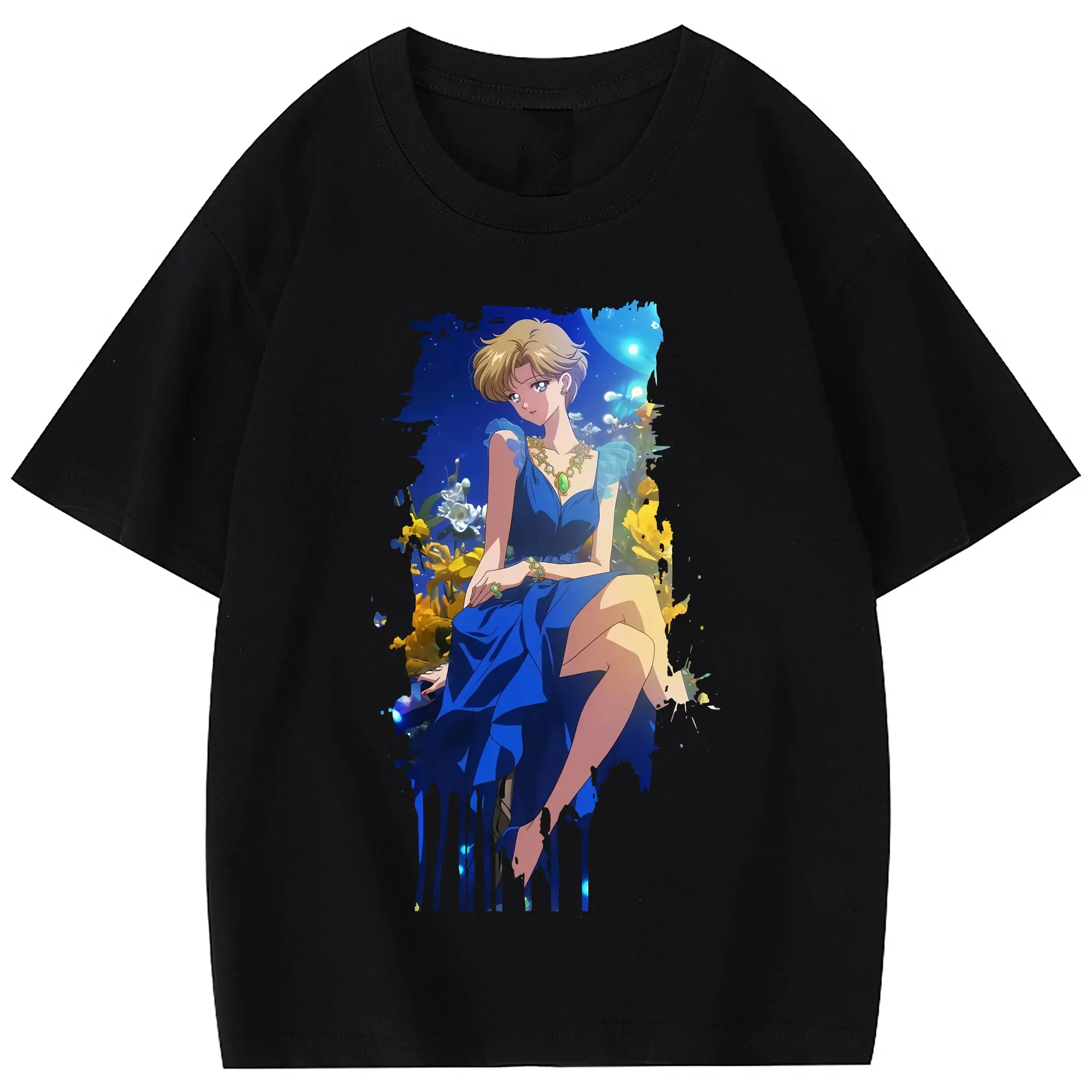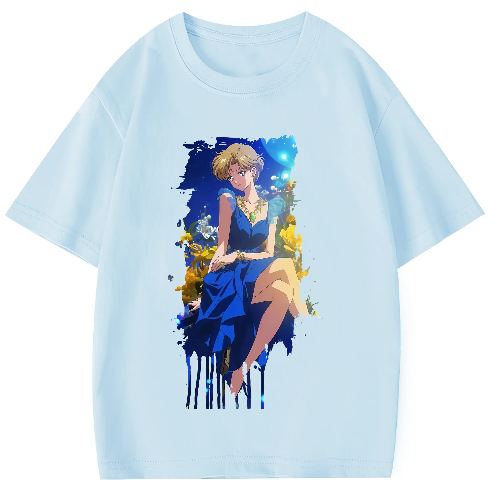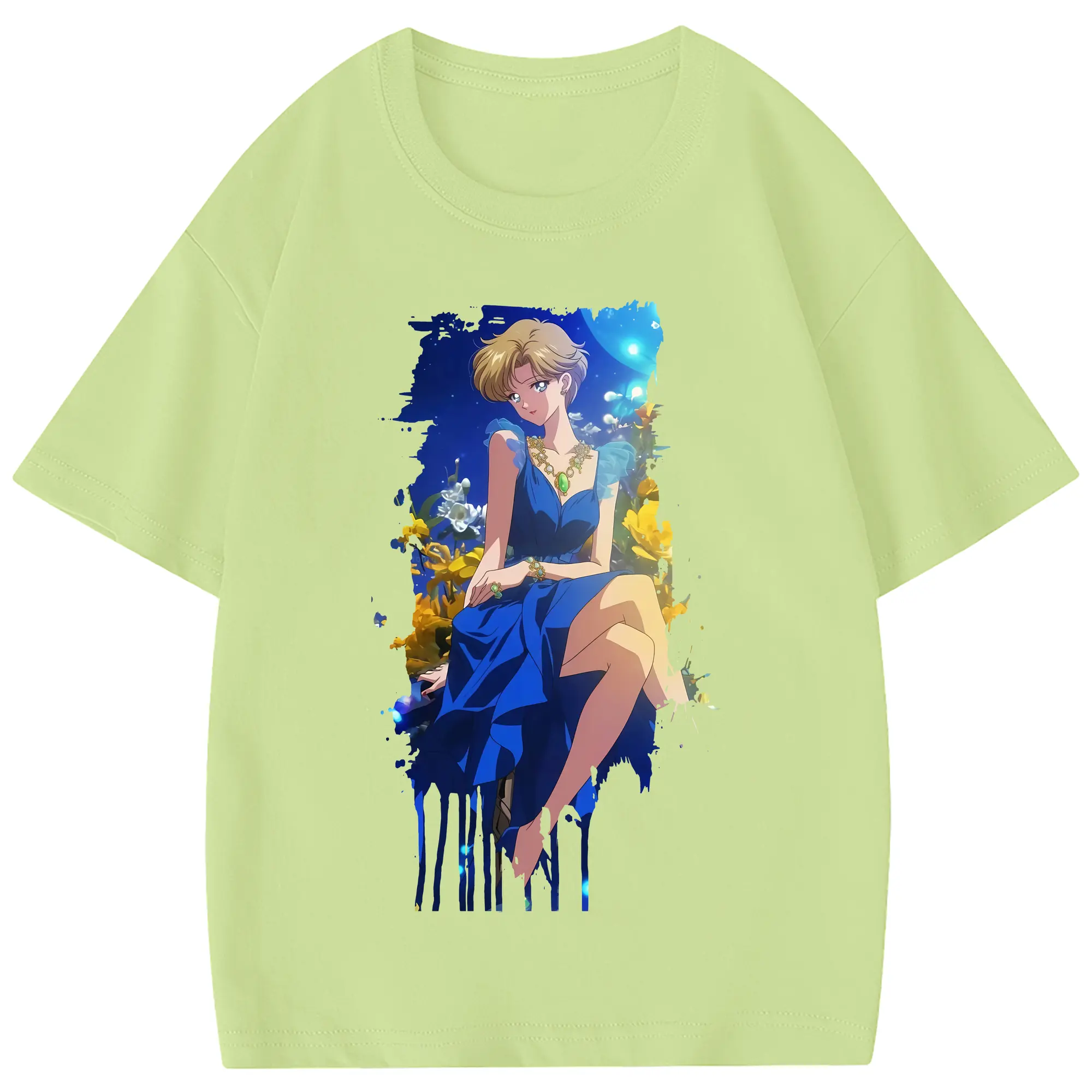 美少女戦士セーラームーン グッズ 天王 はるか - 綿100% 半袖Tシャツ ・ フロントプリント ・ 快適 通気性 ・ 日常使い 散歩 スポーツ用