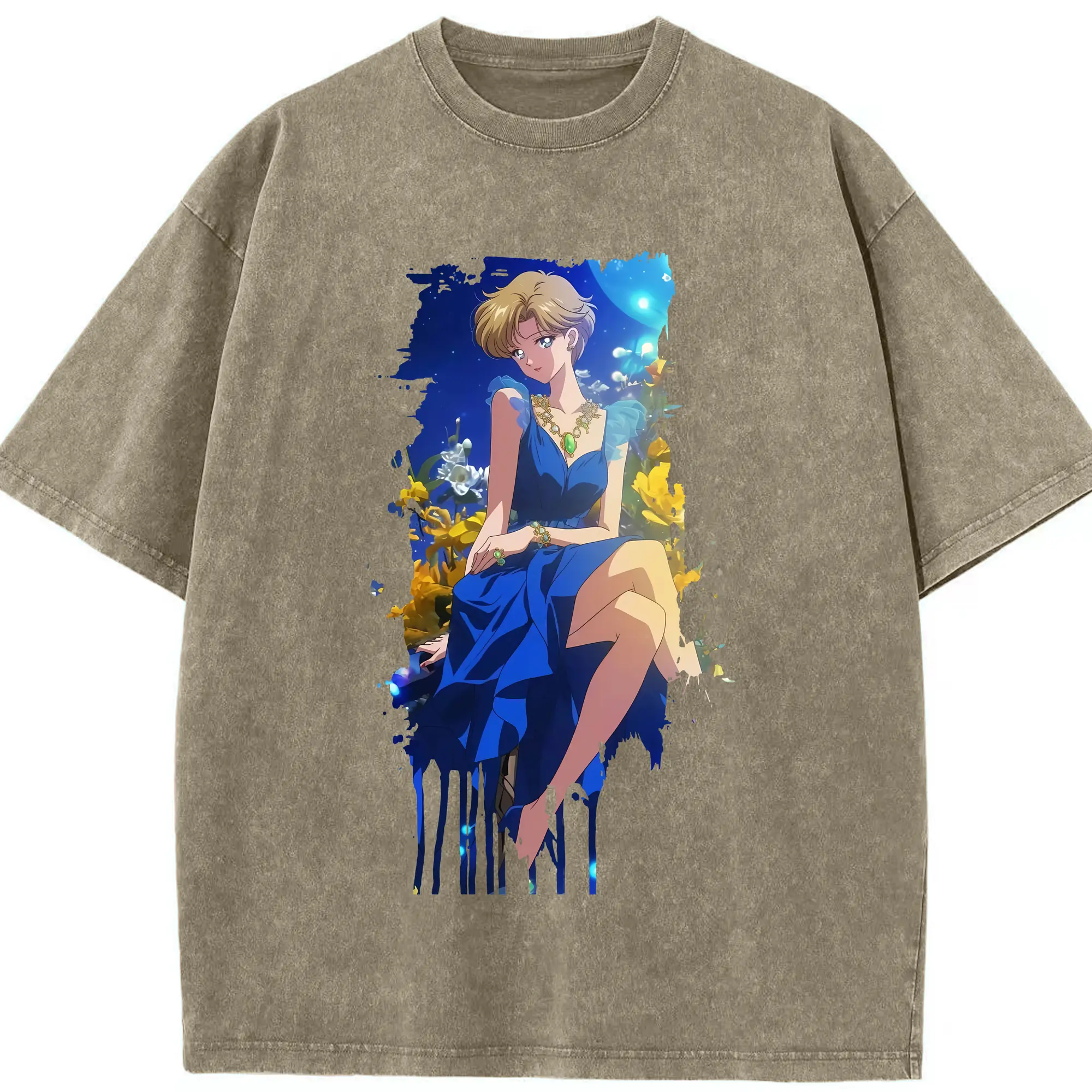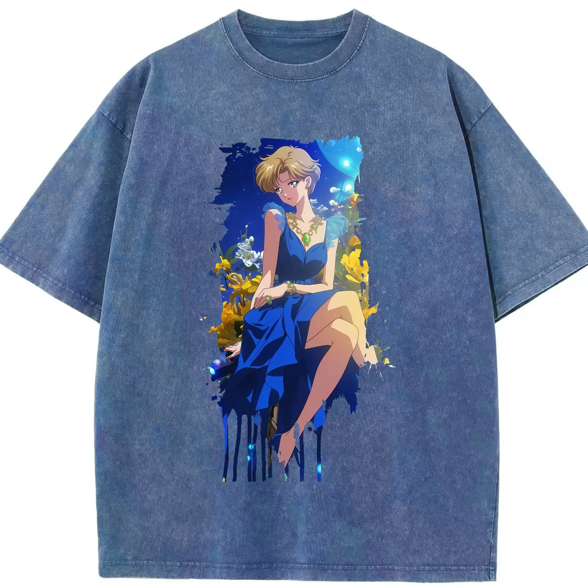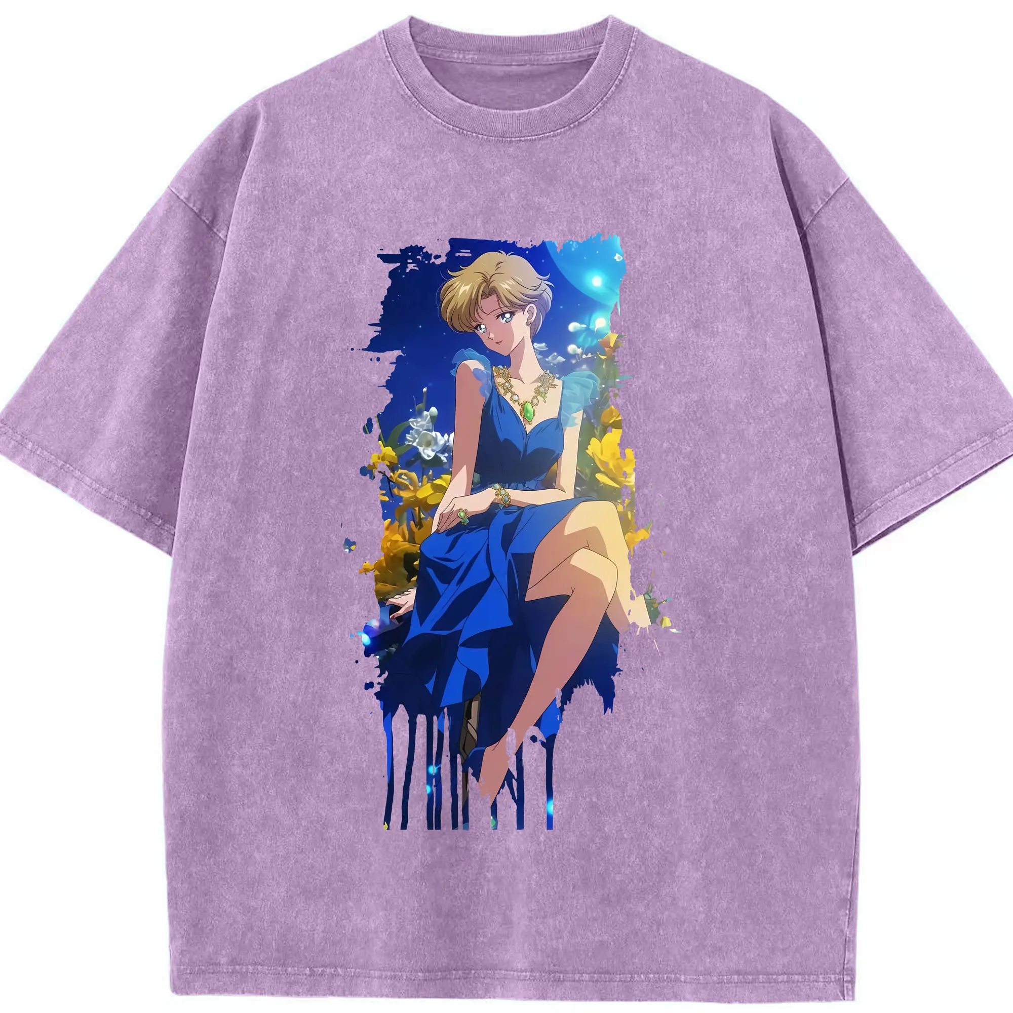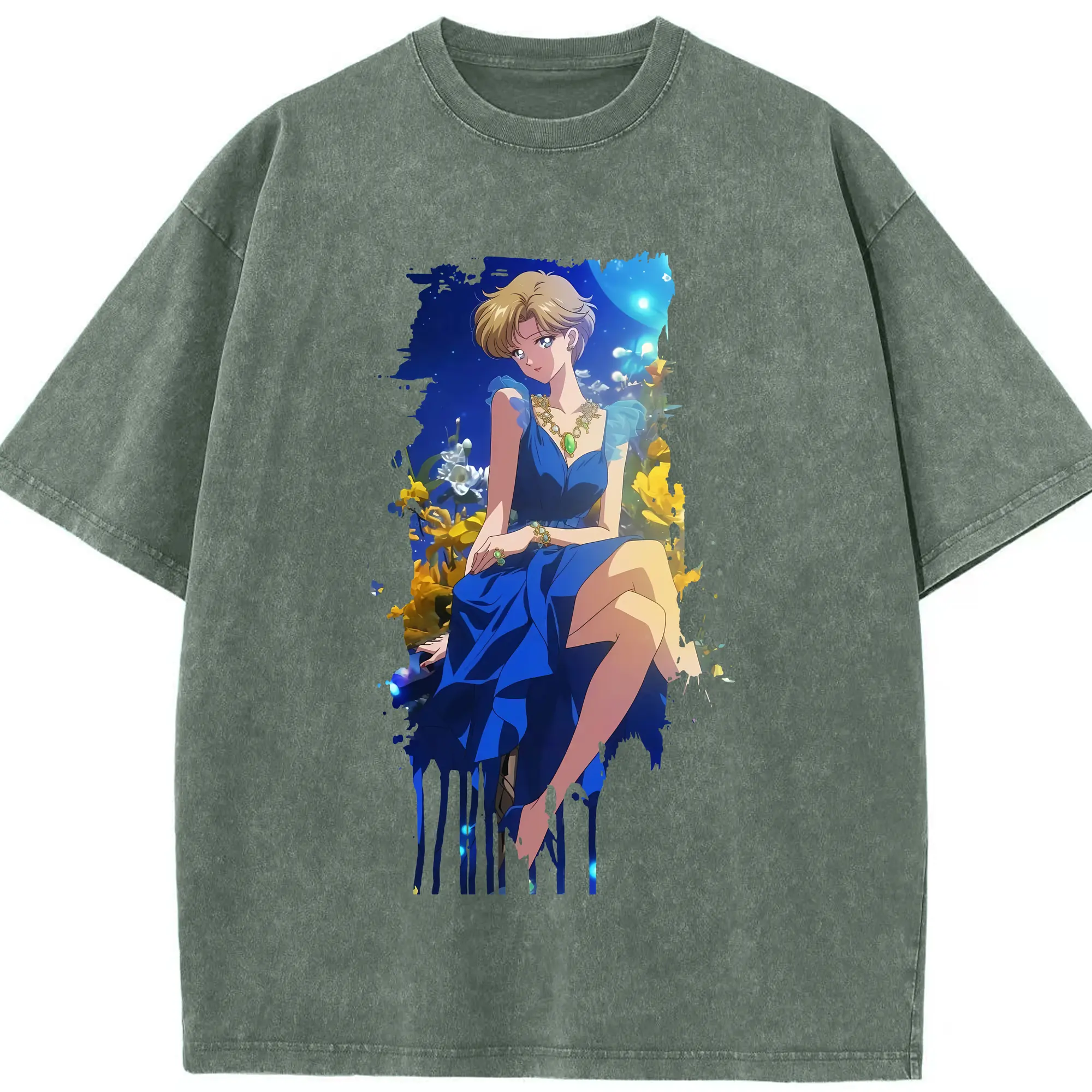 美少女戦士セーラームーン グッズ 天王 はるか - 綿100% ヴィンテージ風 半袖Tシャツ ・ 背面プリント ・ 柔らか肌触り ・ 通気性 快適 ・ スポーツ カジュアル 外出用