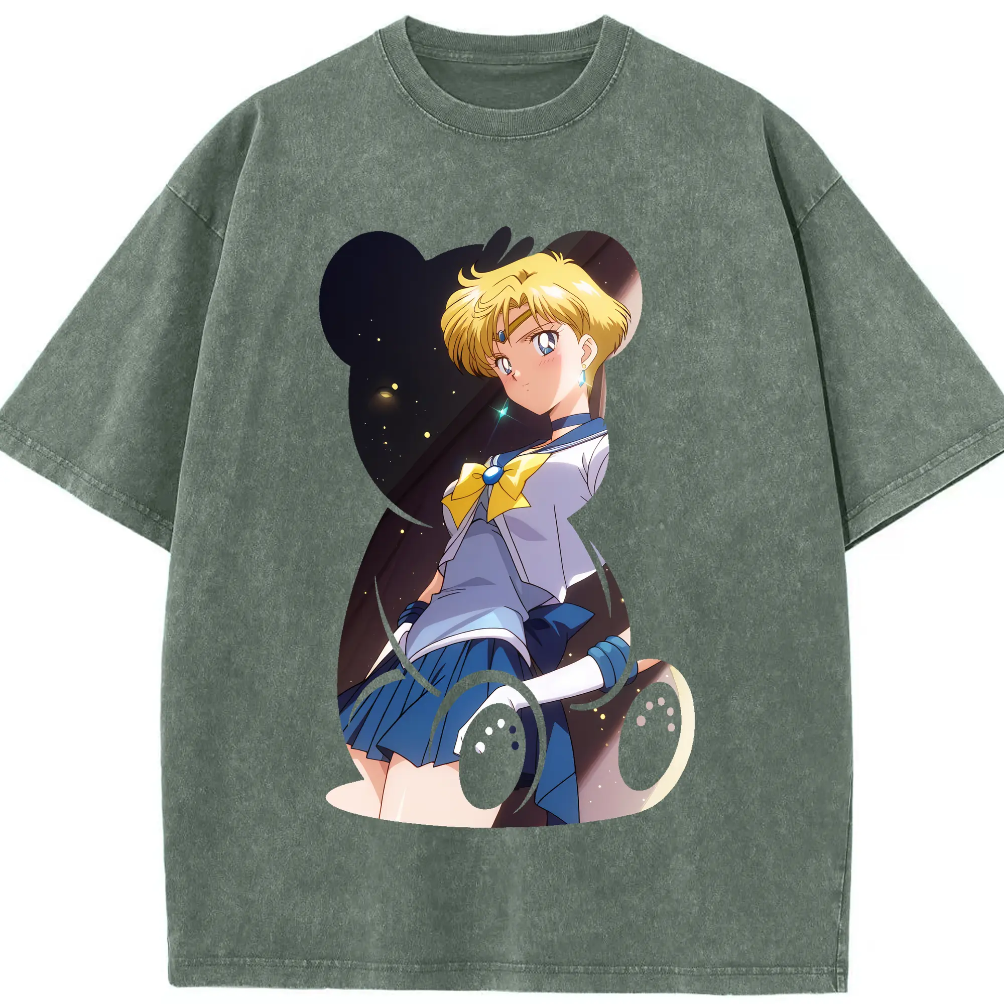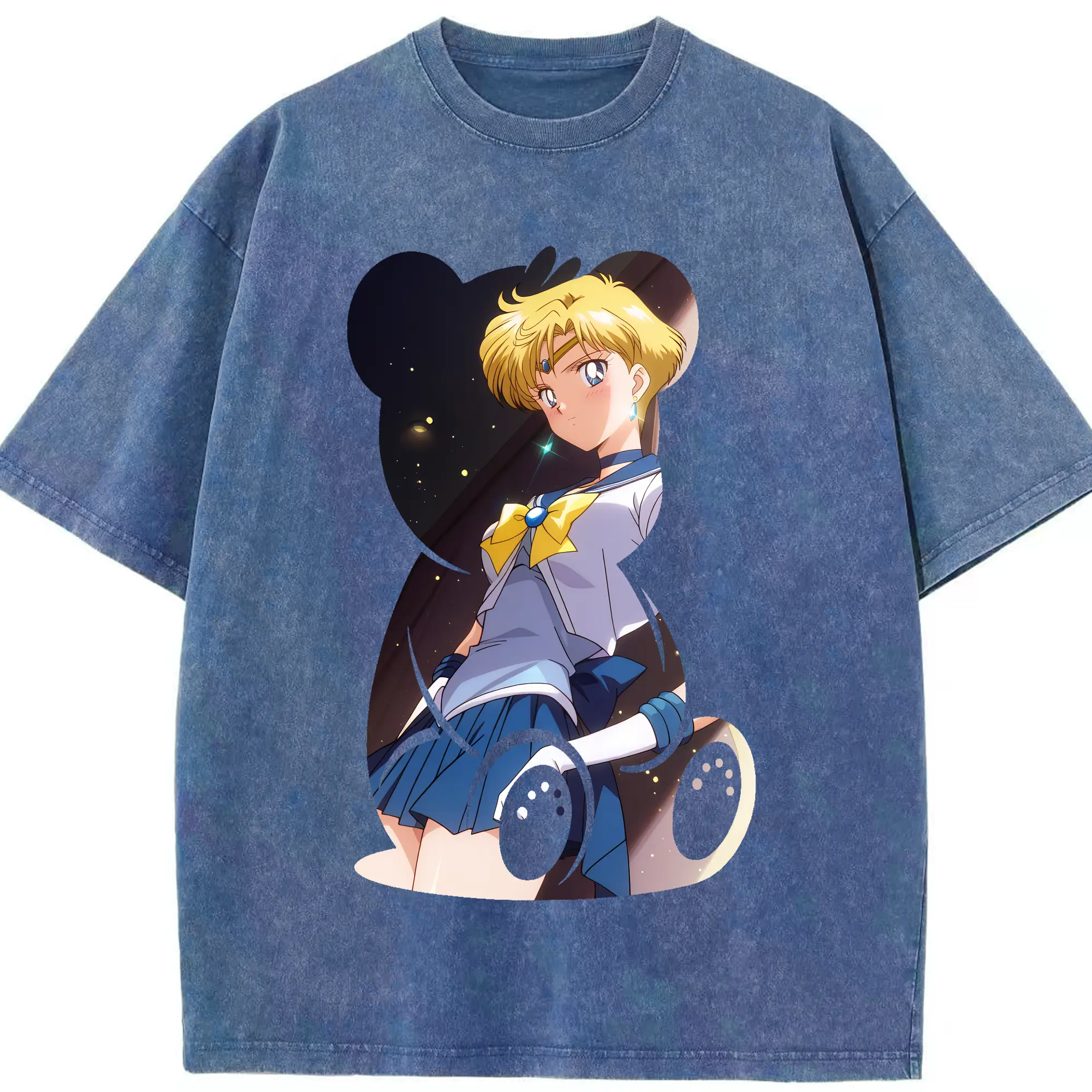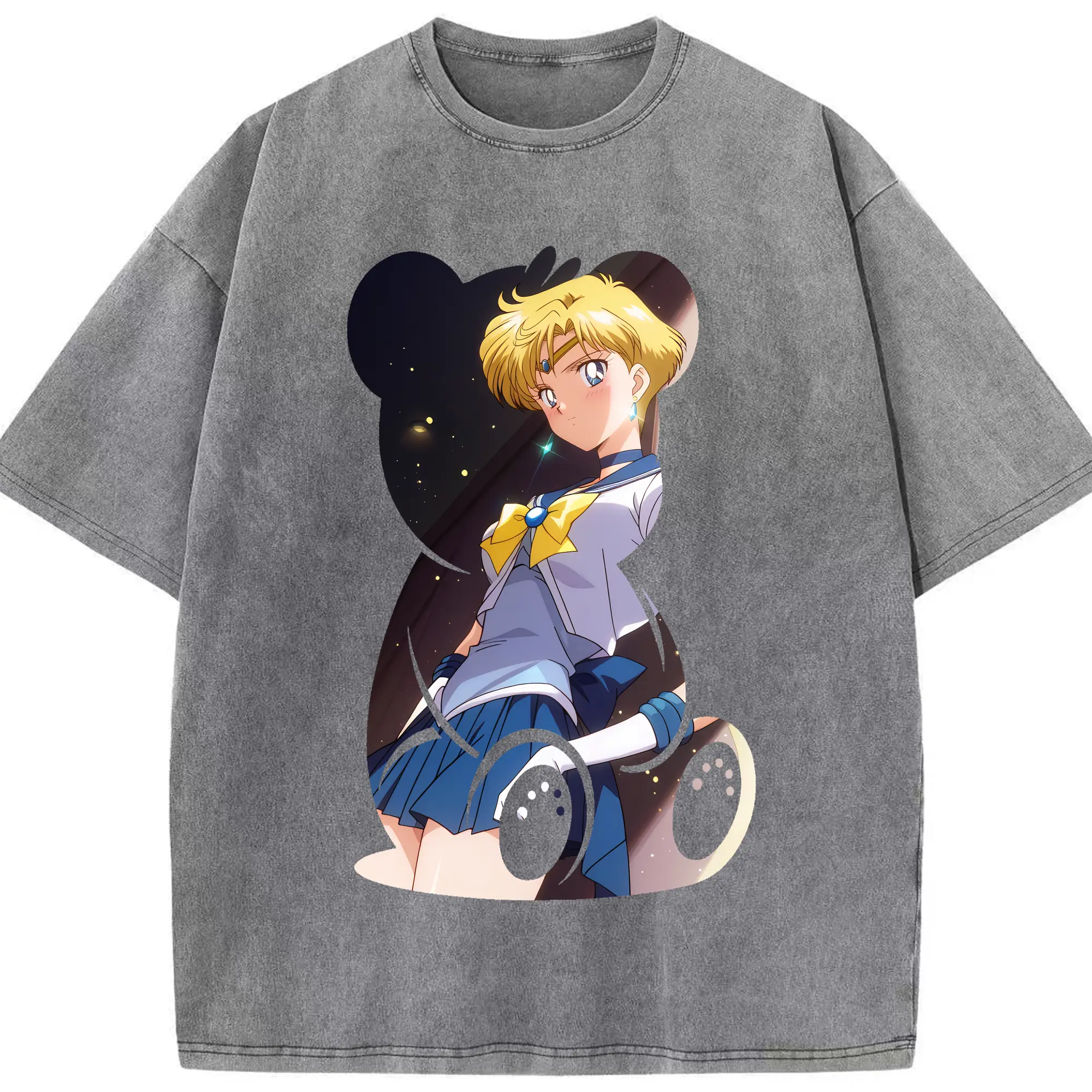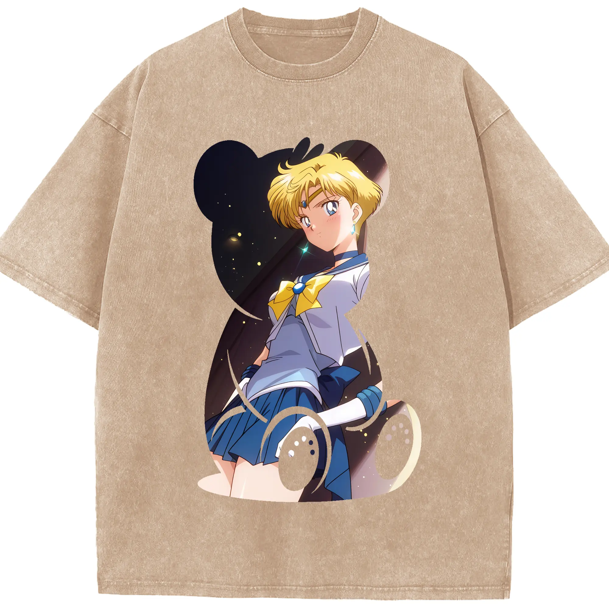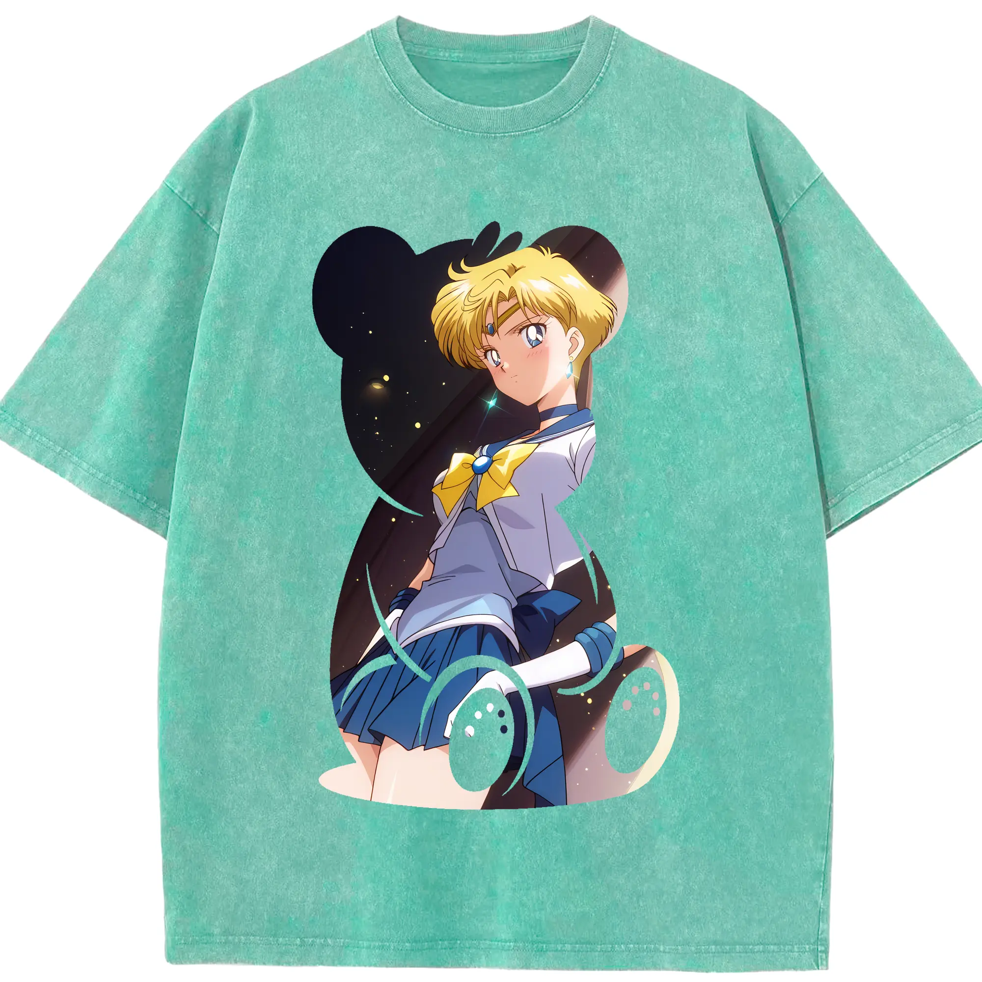 美少女戦士セーラームーン グッズ 天王 はるか - 綿100% ヴィンテージ風 半袖Tシャツ ・ 背面プリント ・ 柔らか肌触り ・ 通気性 快適 ・ スポーツ カジュアル 外出用