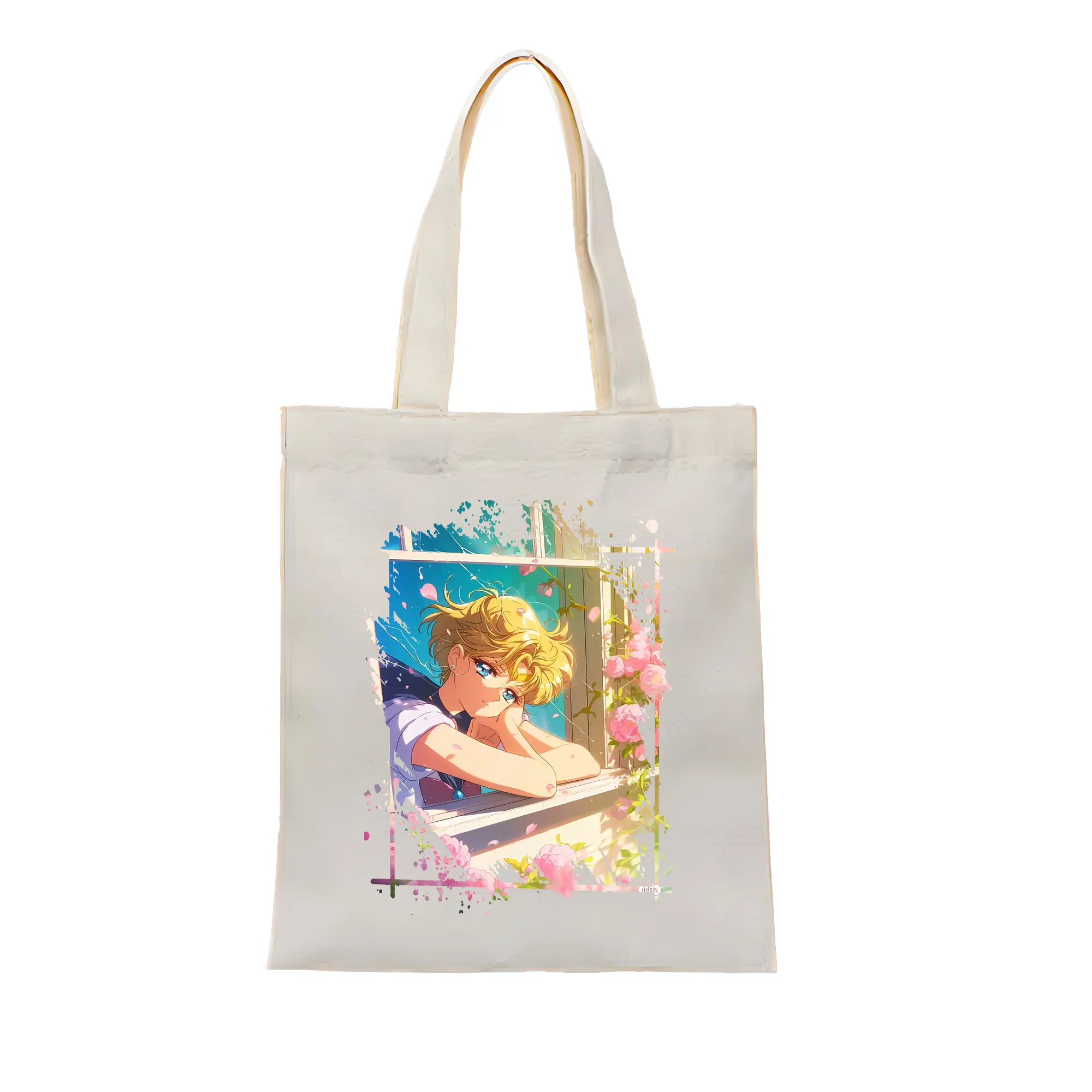美少女戦士セーラームーン グッズ 天王 はるか - 縦型キャンバス手提げバッグ(トートバッグ) ・ キャンバス素材 ・ ショッピング用 ・ 軽量 丈夫 お手入れ簡単