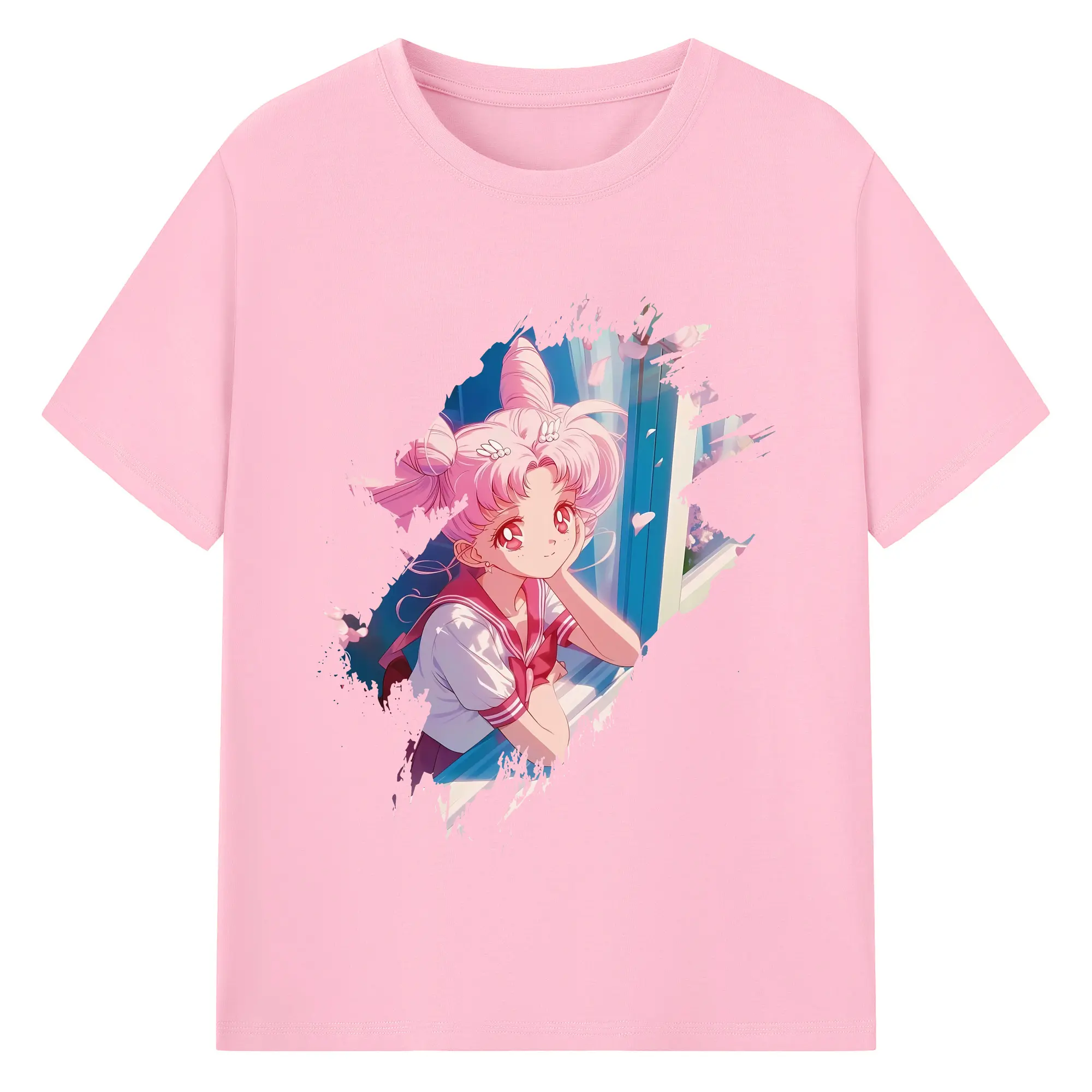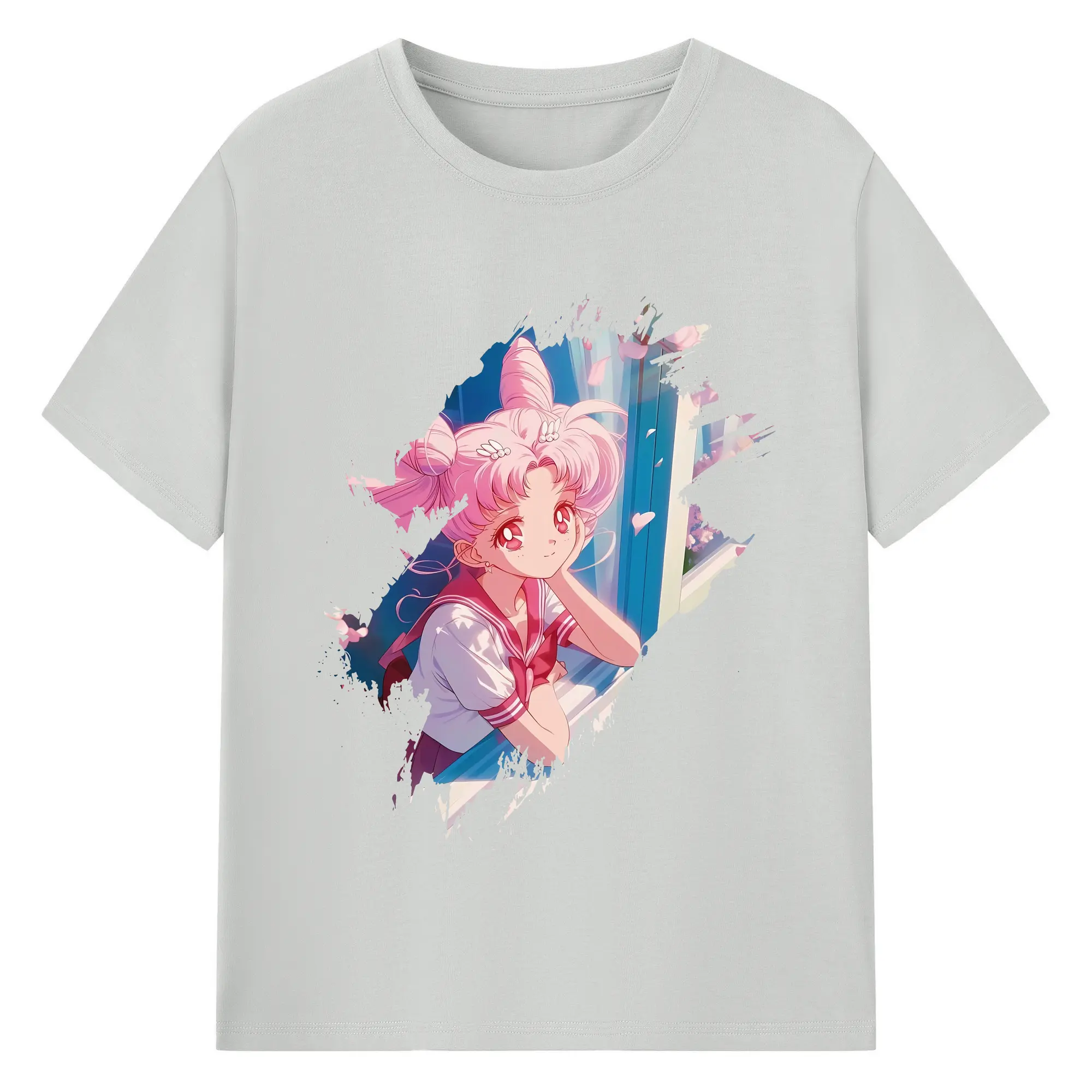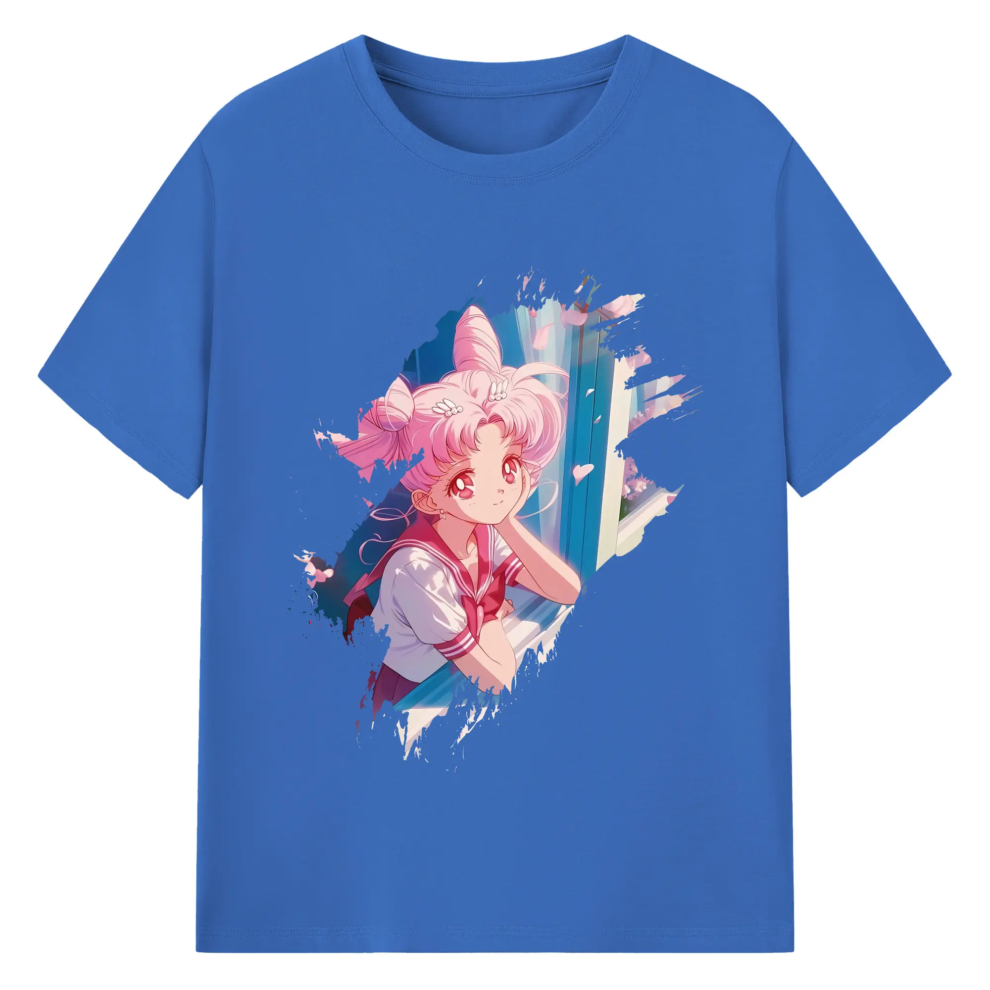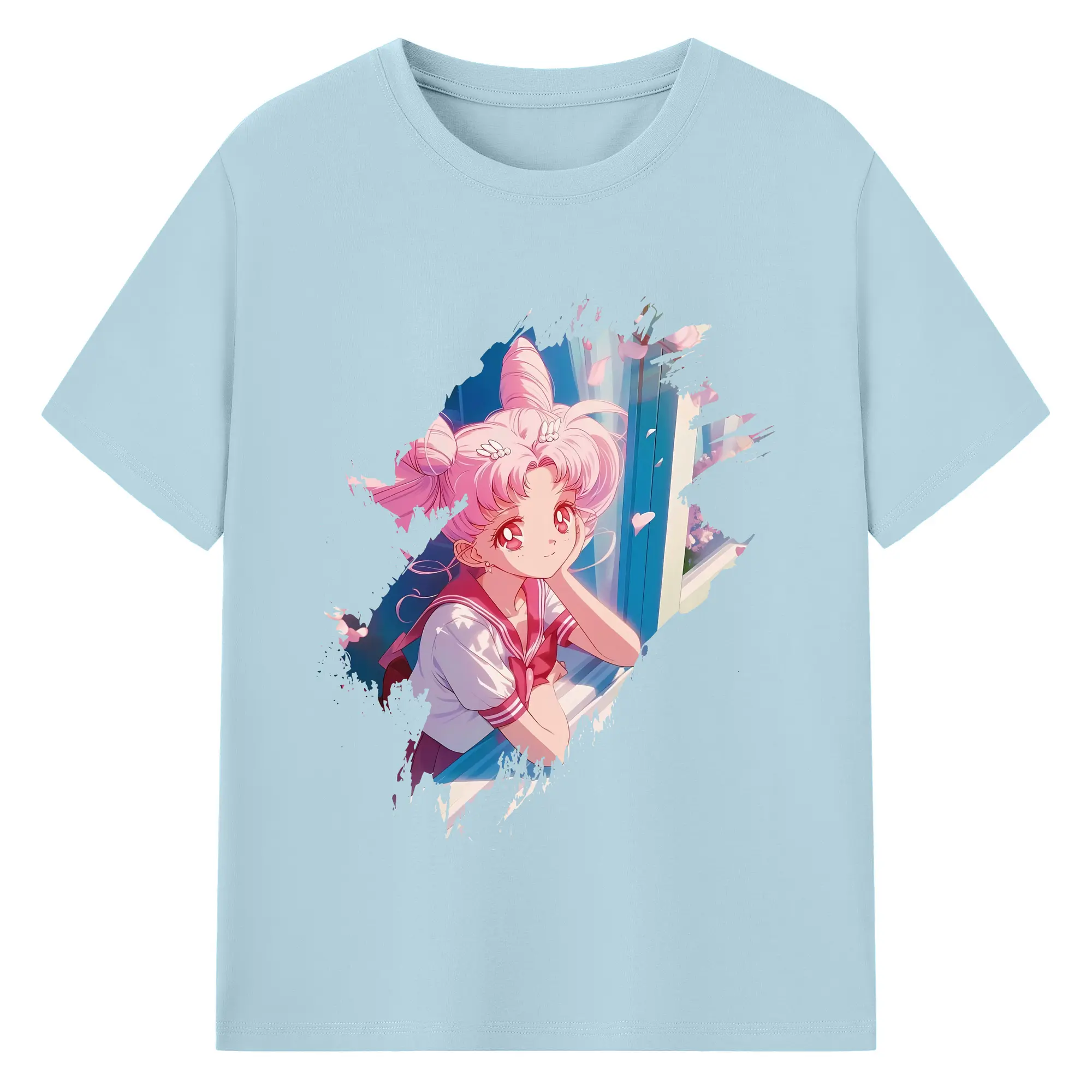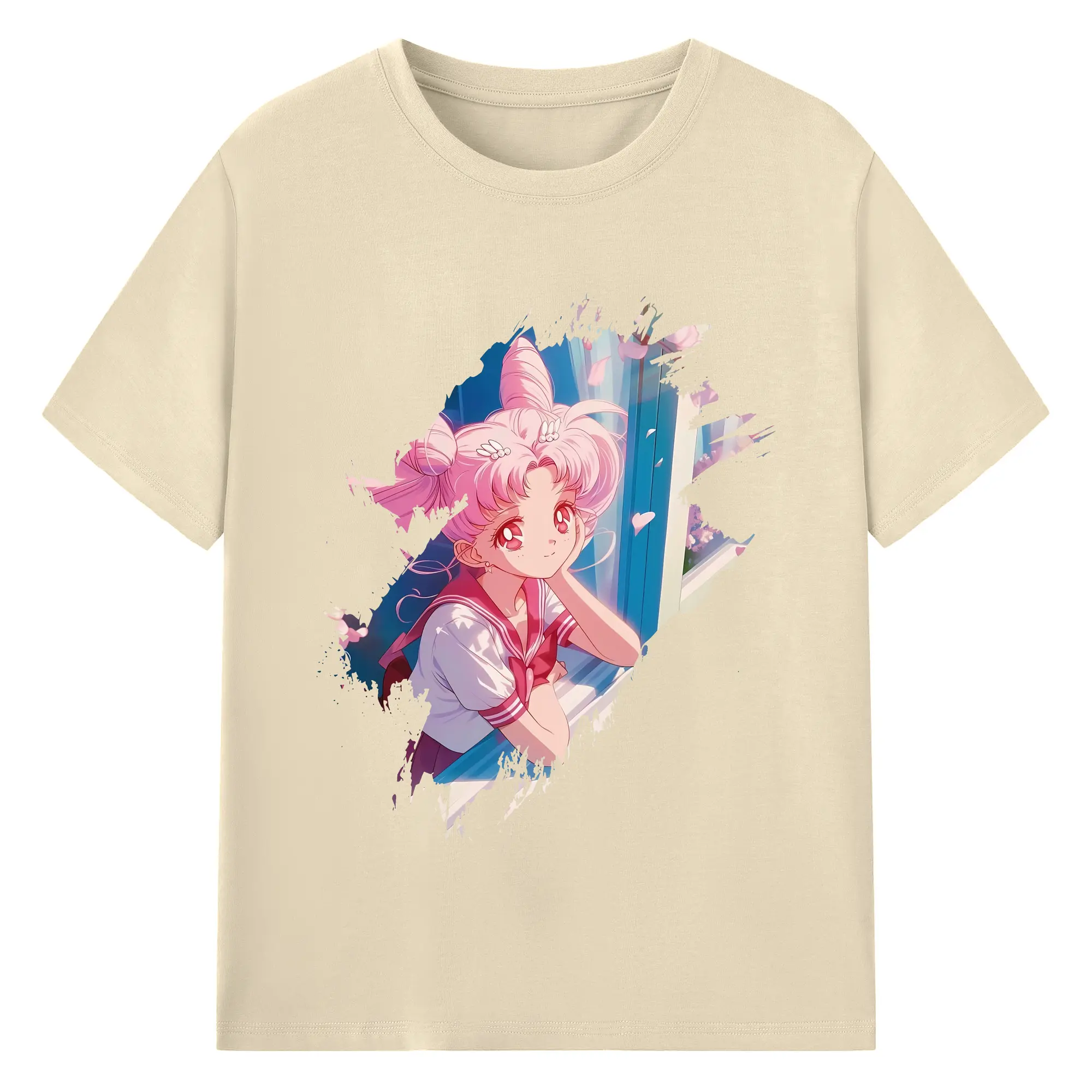美少女戦士セーラームーン グッズ,ちびうさ - 綿100% 半袖Tシャツ ・ バックプリント ・ 快適 通気性 ・ 日常使い 散歩 スポーツ用