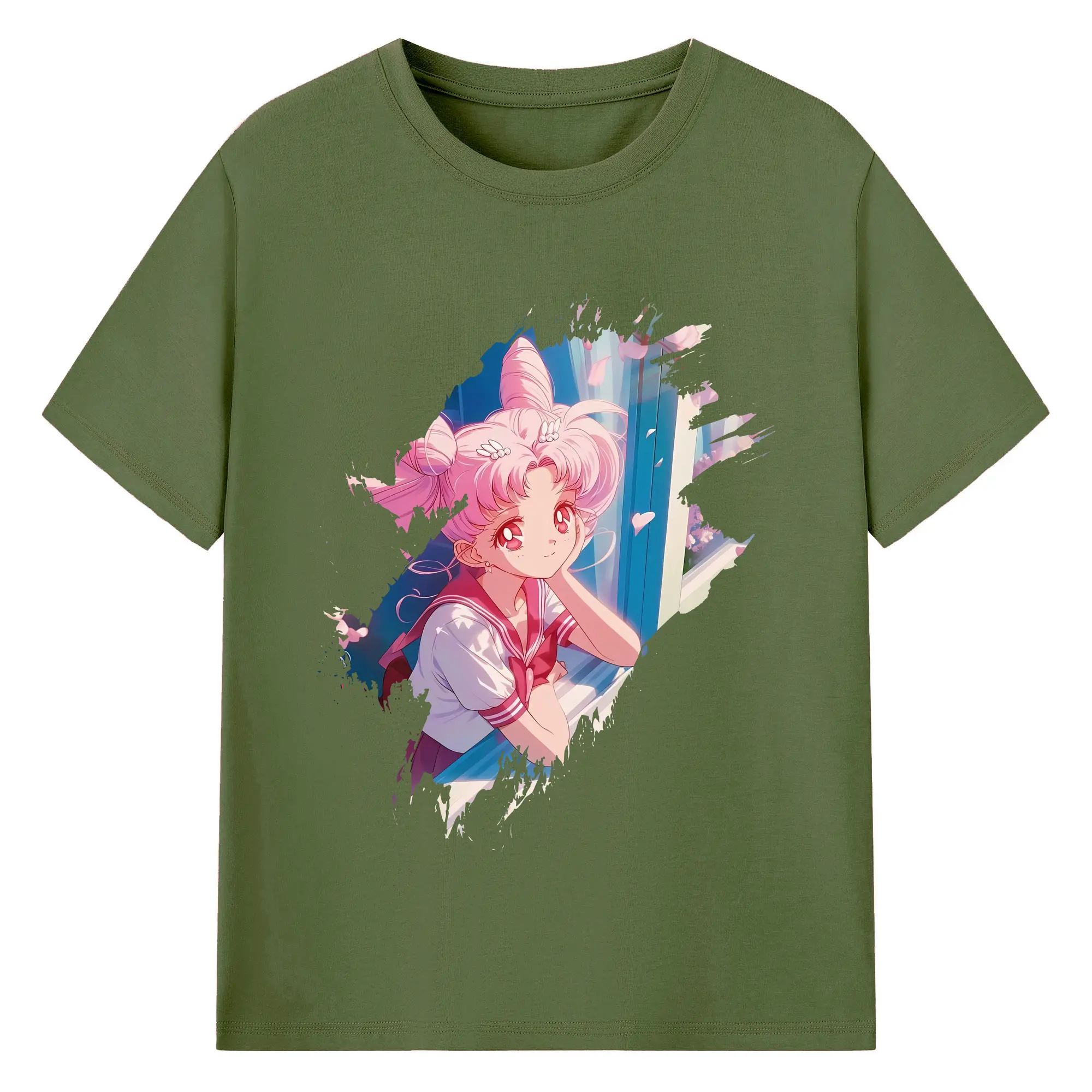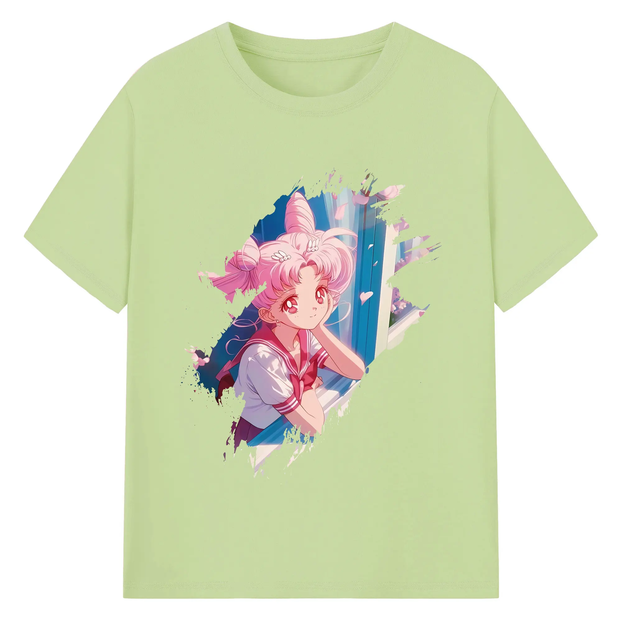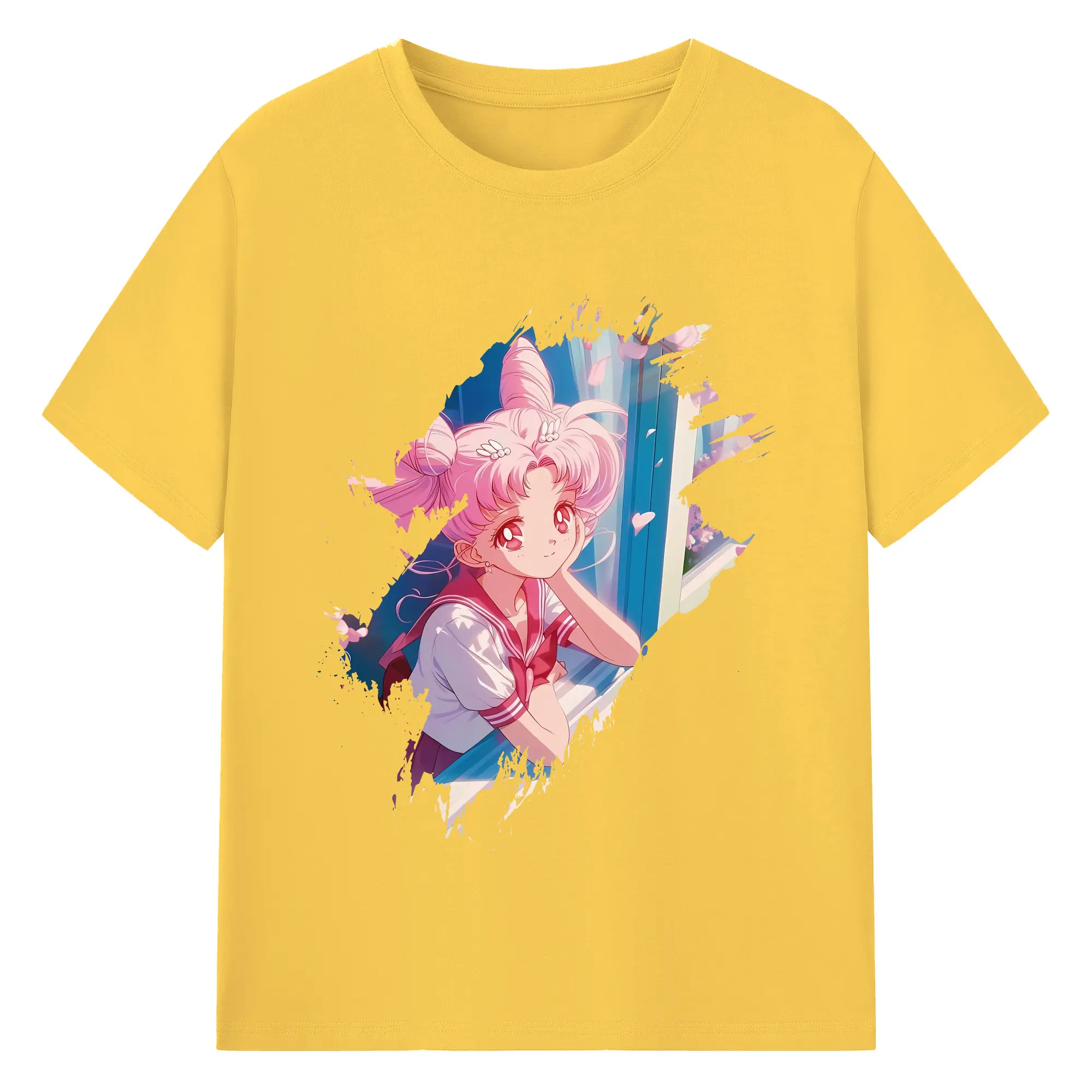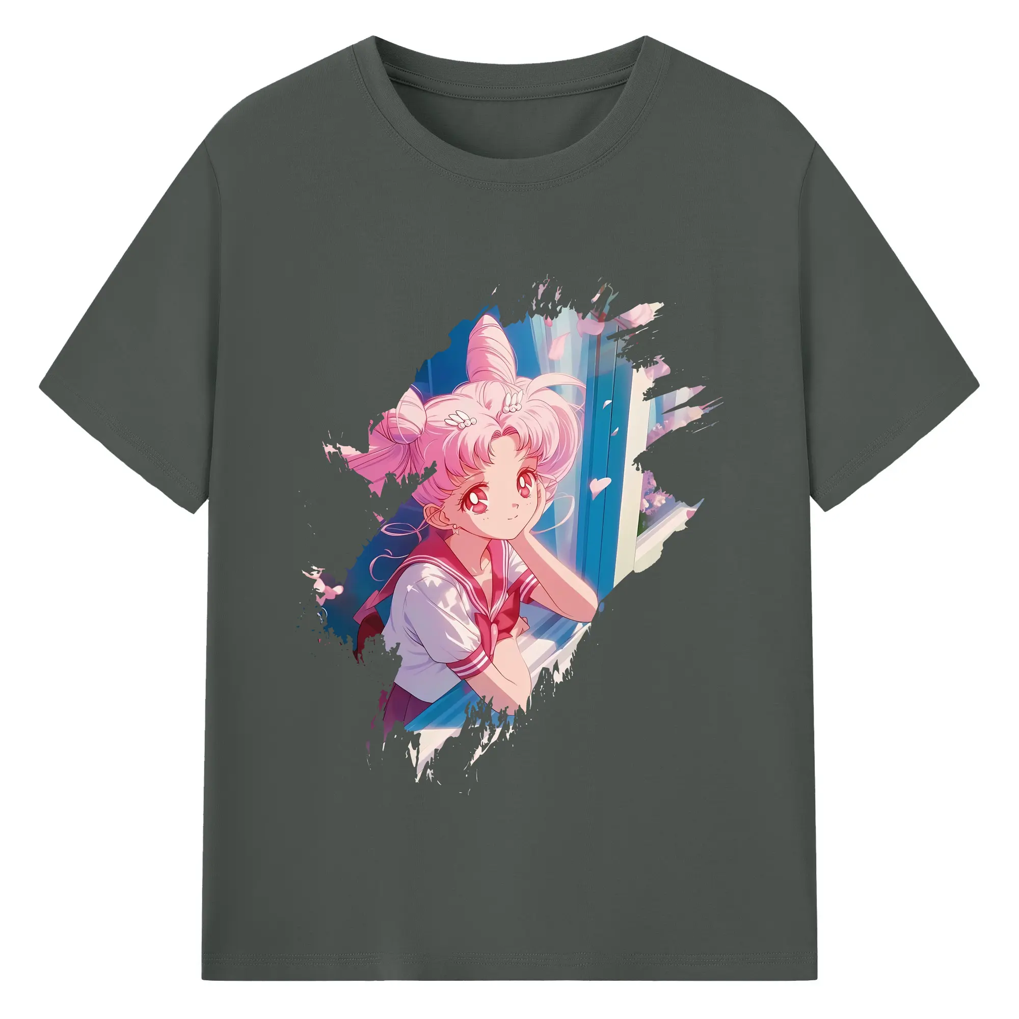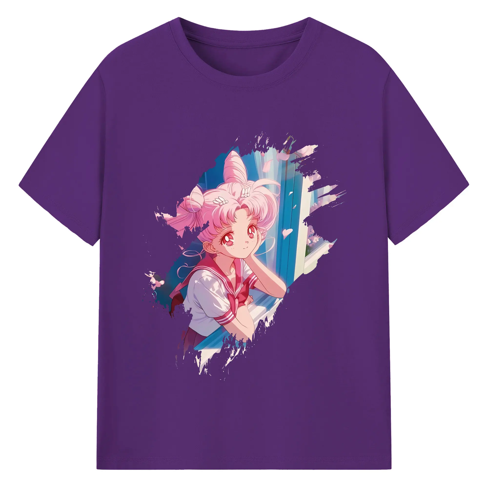美少女戦士セーラームーン グッズ,ちびうさ - 綿100% 半袖Tシャツ ・ バックプリント ・ 快適 通気性 ・ 日常使い 散歩 スポーツ用