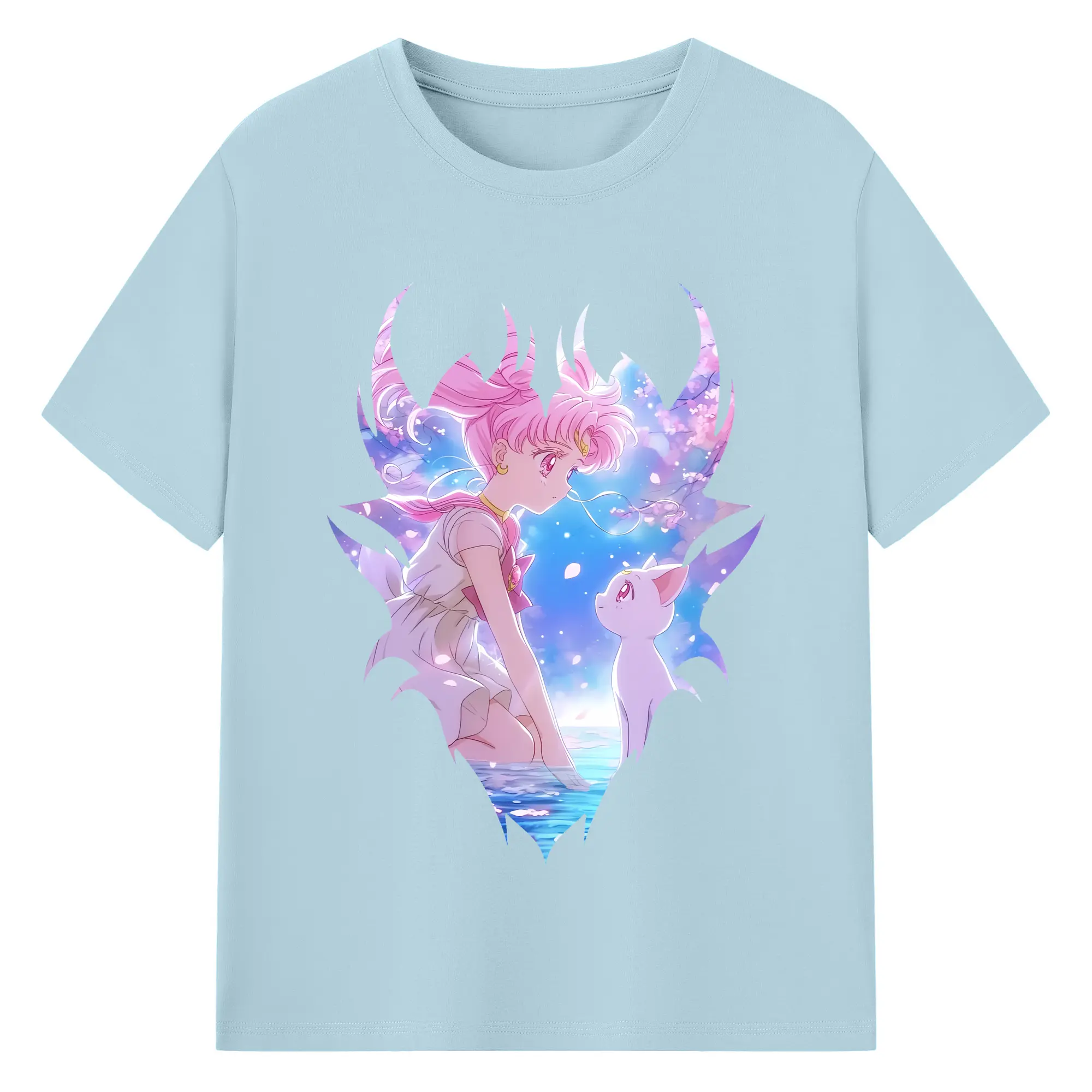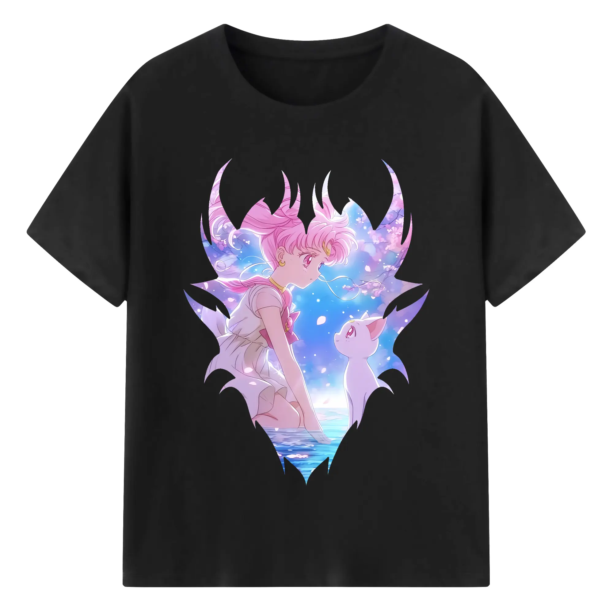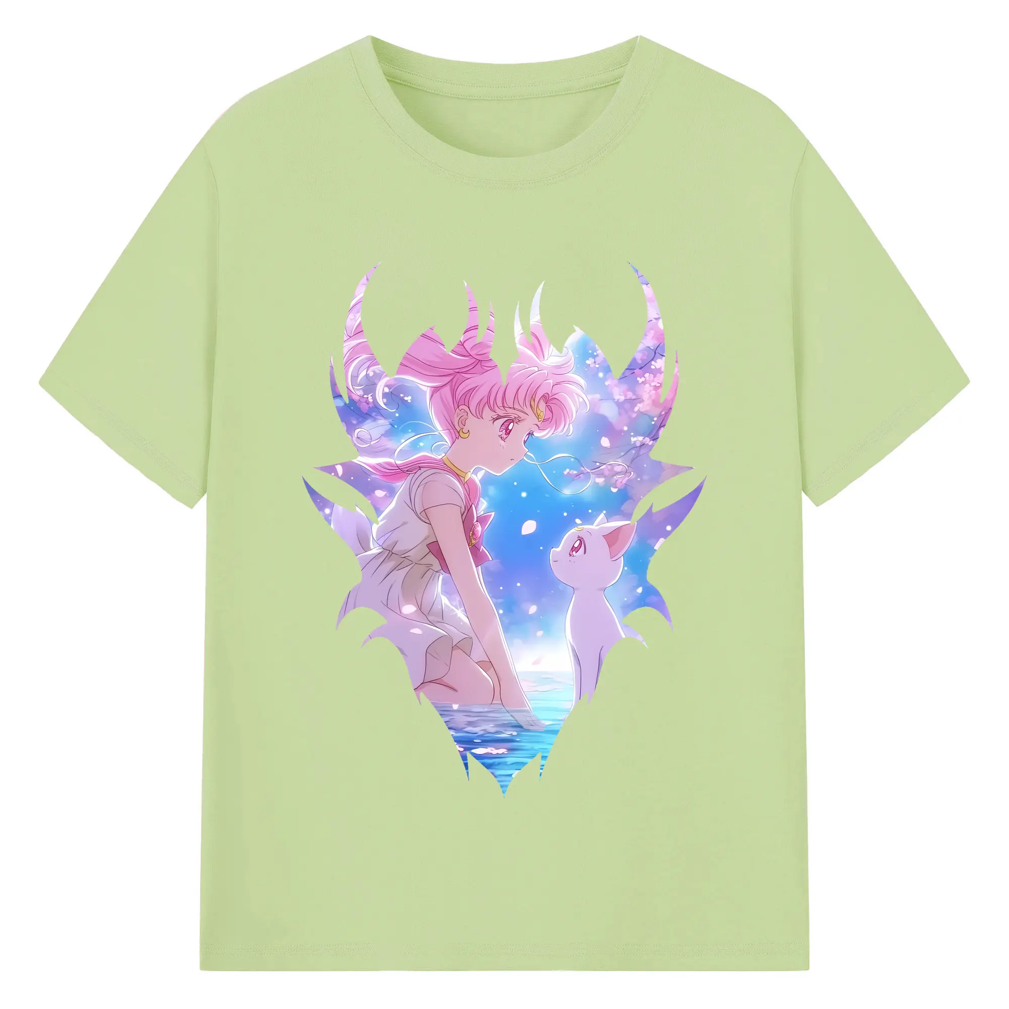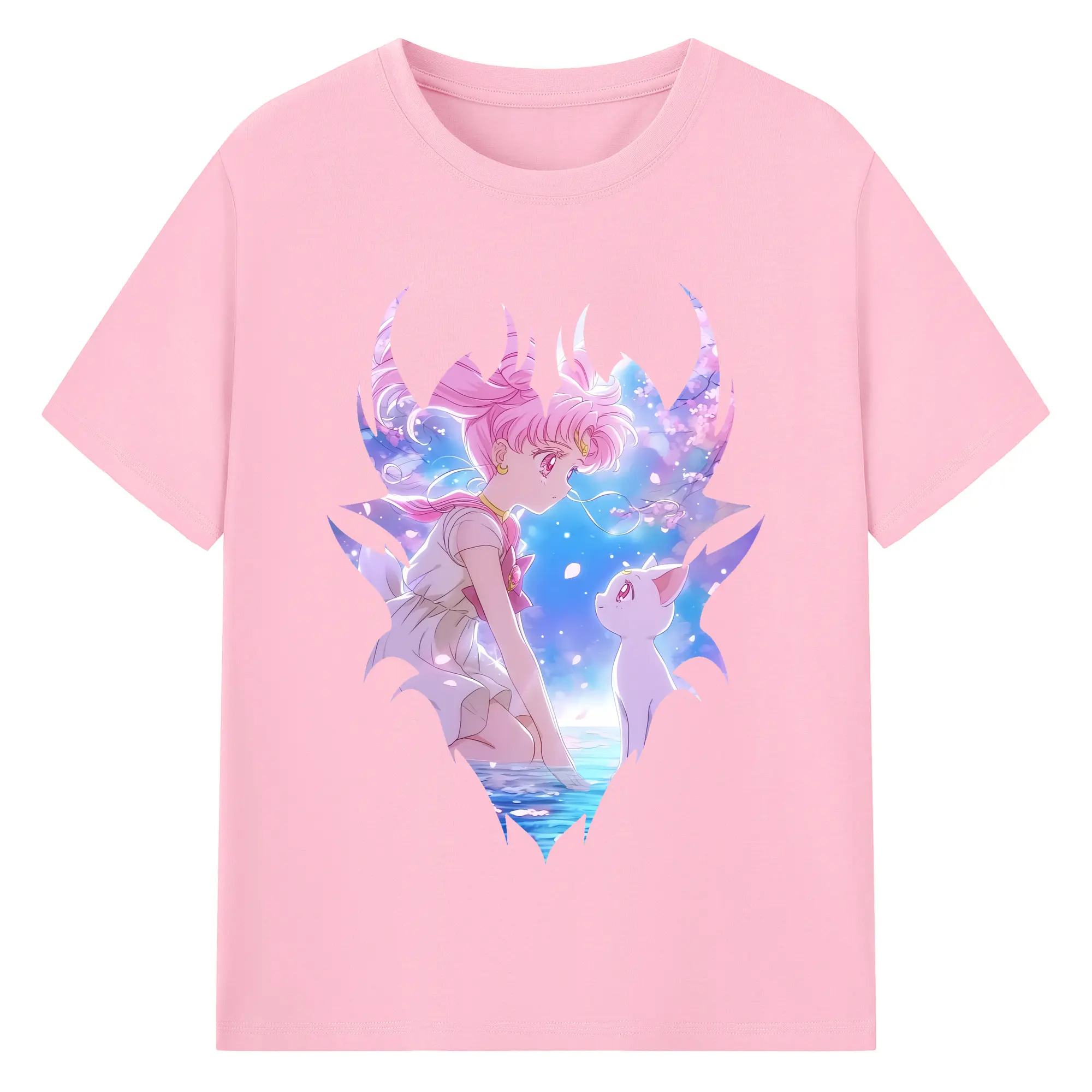 美少女戦士セーラームーン グッズ,ちびうさ - 綿100% 半袖Tシャツ ・ バックプリント ・ 快適 通気性 ・ 日常使い 散歩 スポーツ用