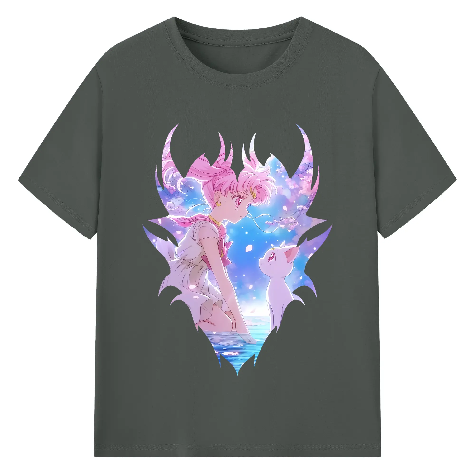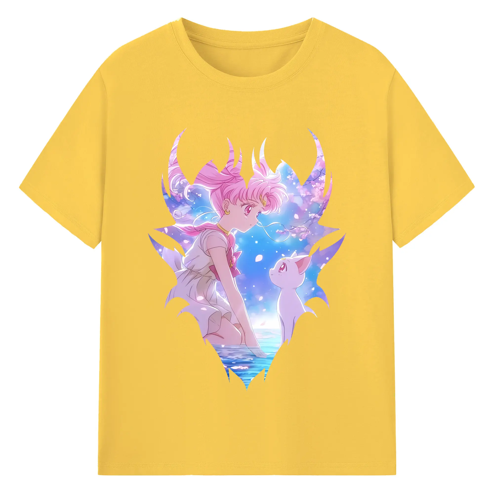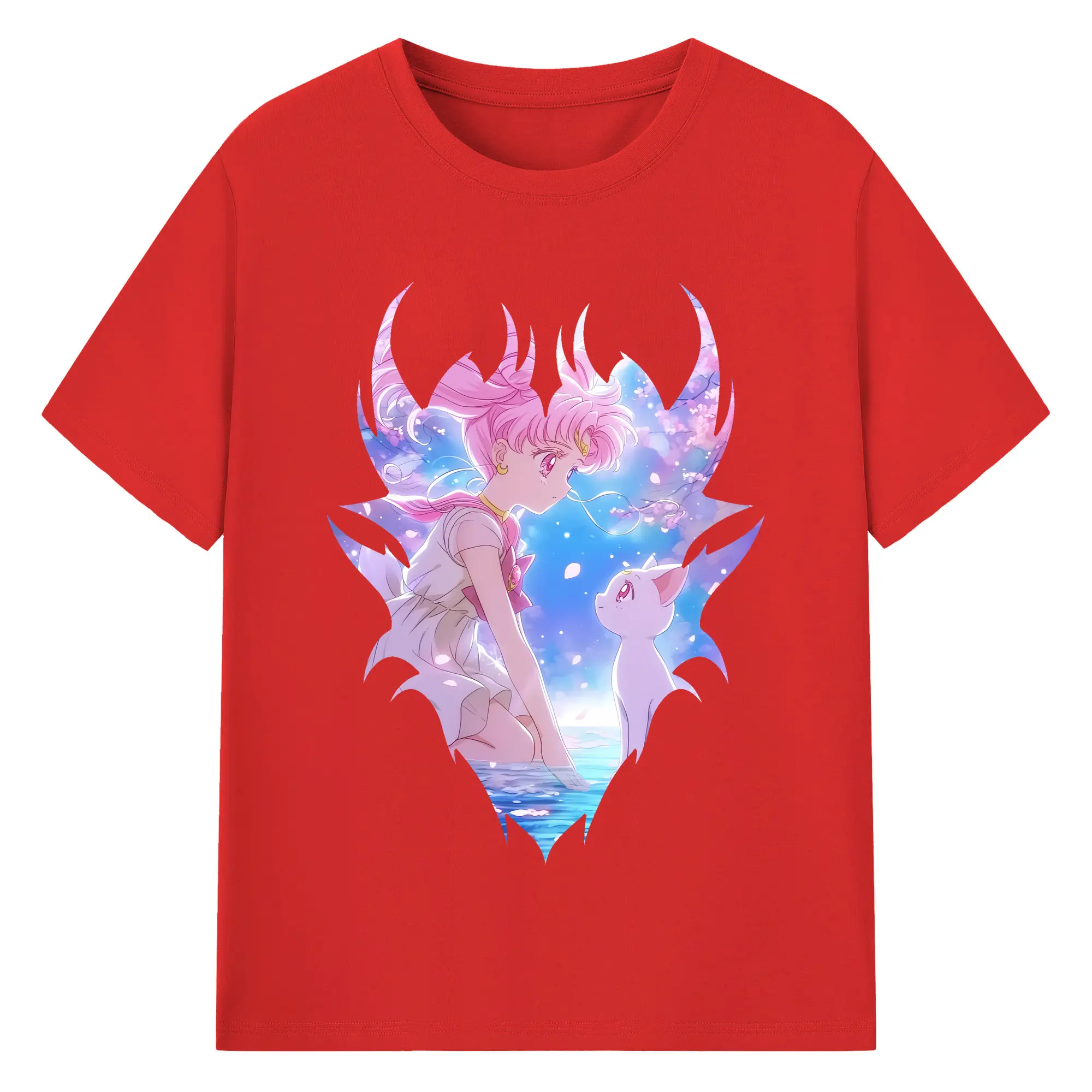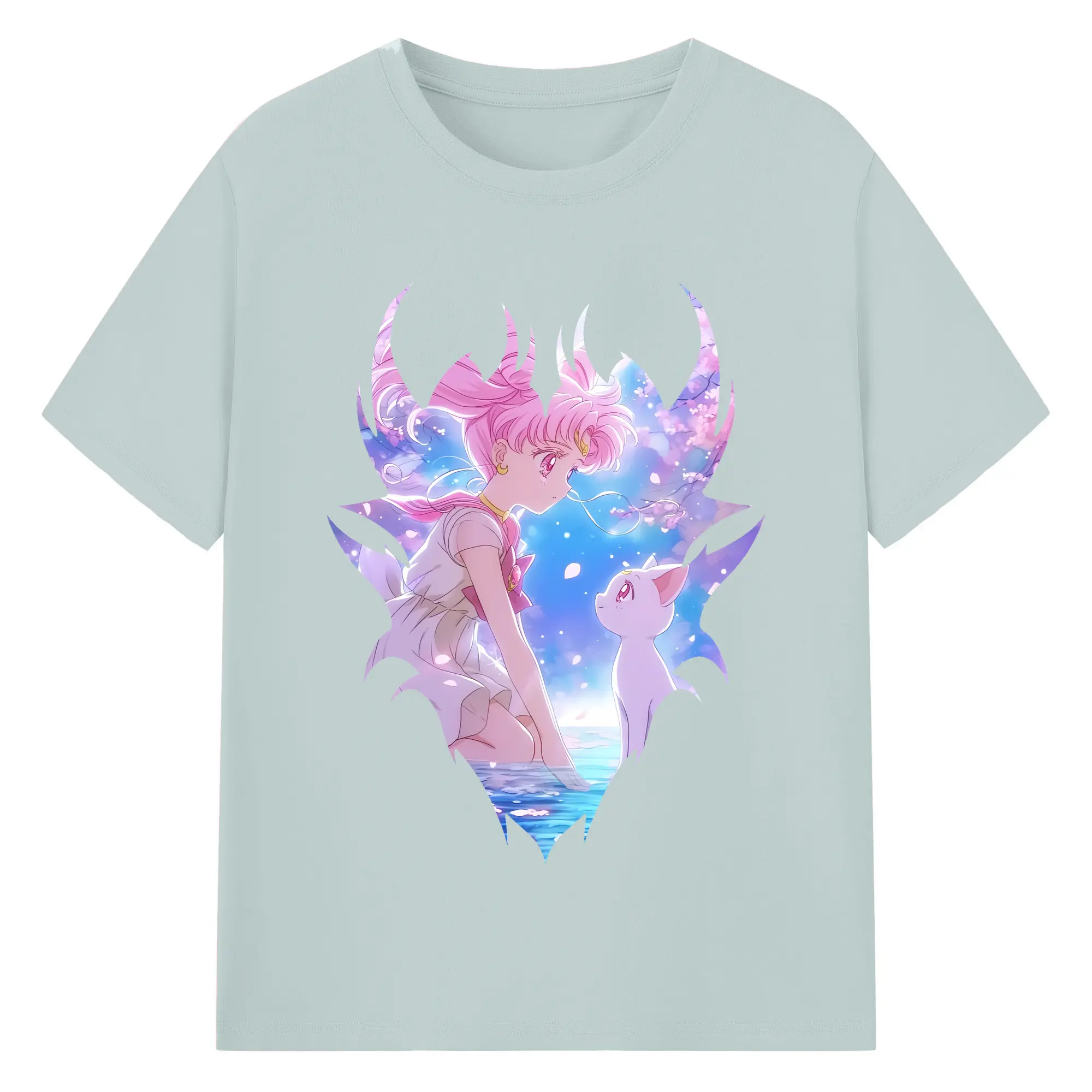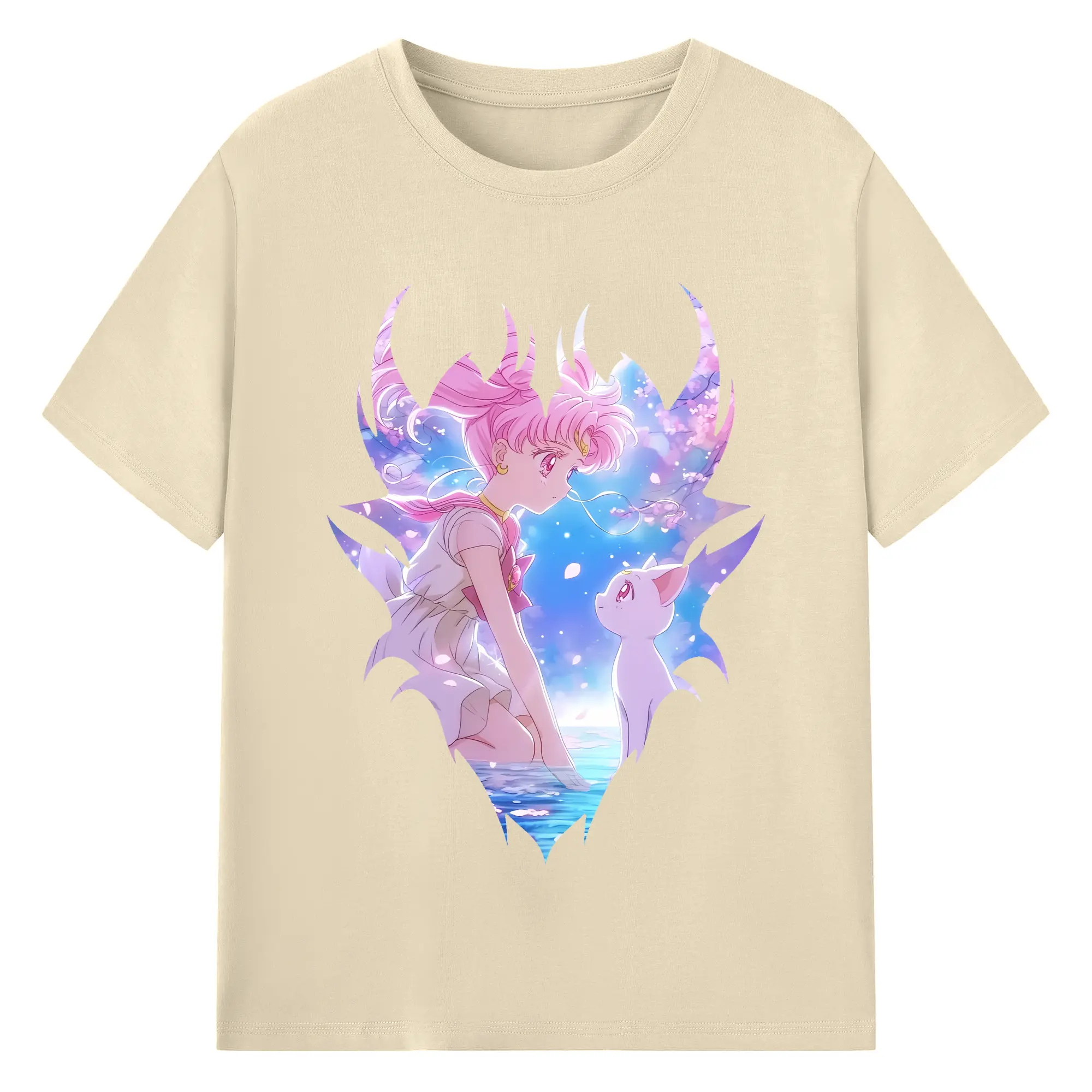 美少女戦士セーラームーン グッズ,ちびうさ - 綿100% 半袖Tシャツ ・ バックプリント ・ 快適 通気性 ・ 日常使い 散歩 スポーツ用