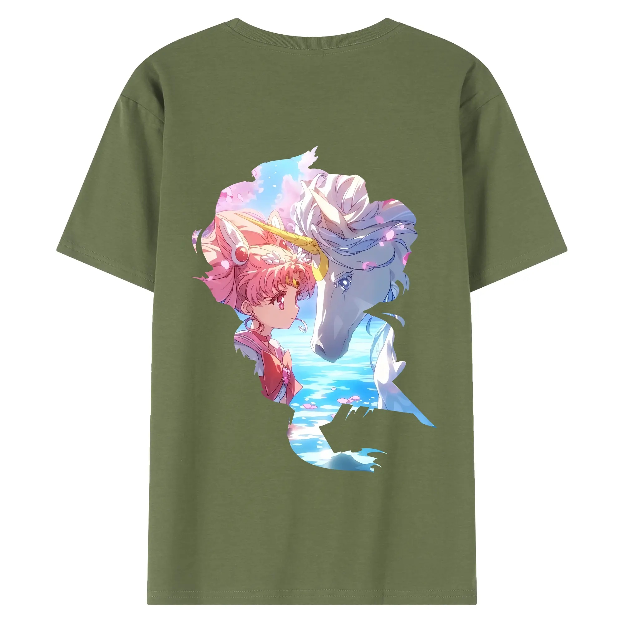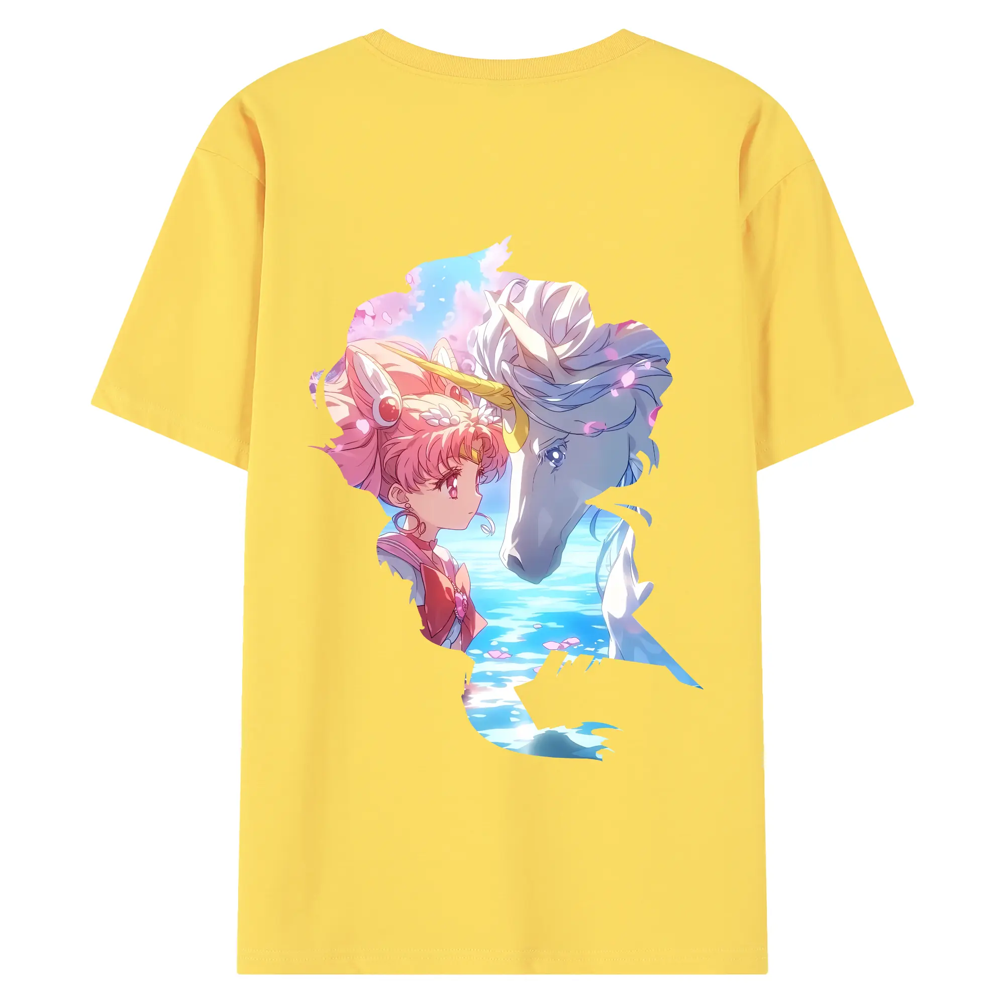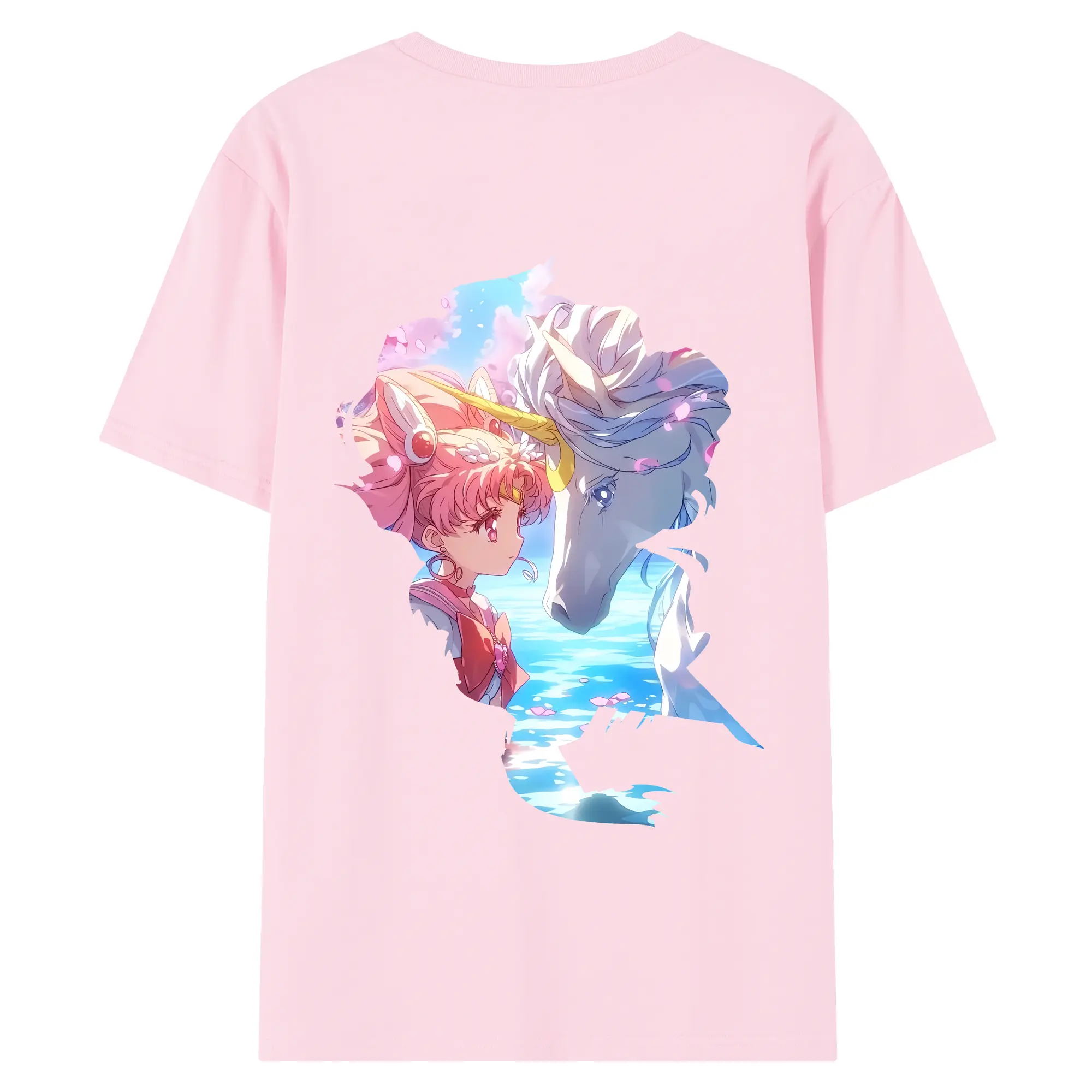 美少女戦士セーラームーン グッズ,ちびうさ - 綿100% 半袖Tシャツ ・ フロントプリント ・ 快適 通気性 ・ 日常使い 散歩 スポーツ用