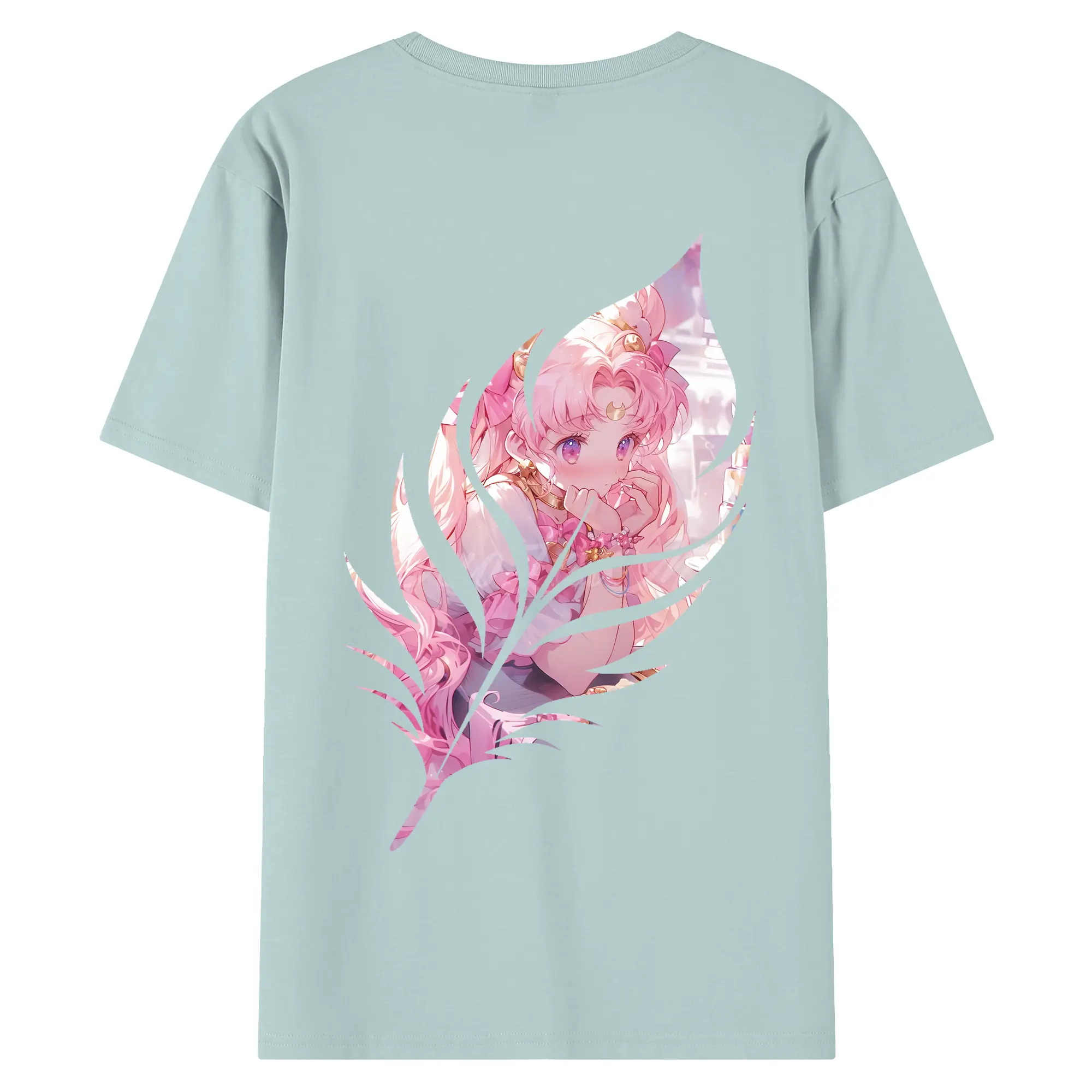 美少女戦士セーラームーン グッズ,ちびうさ - 綿100% 半袖Tシャツ ・ フロントプリント ・ 快適 通気性 ・ 日常使い 散歩 スポーツ用