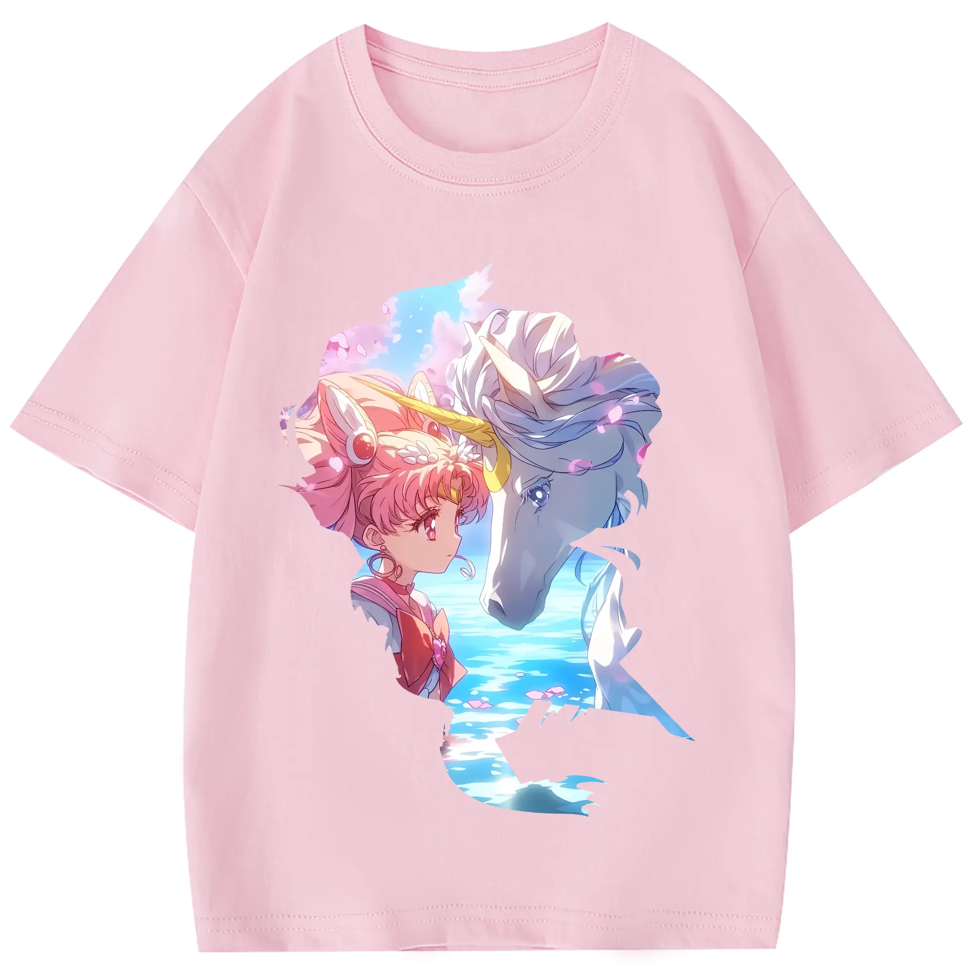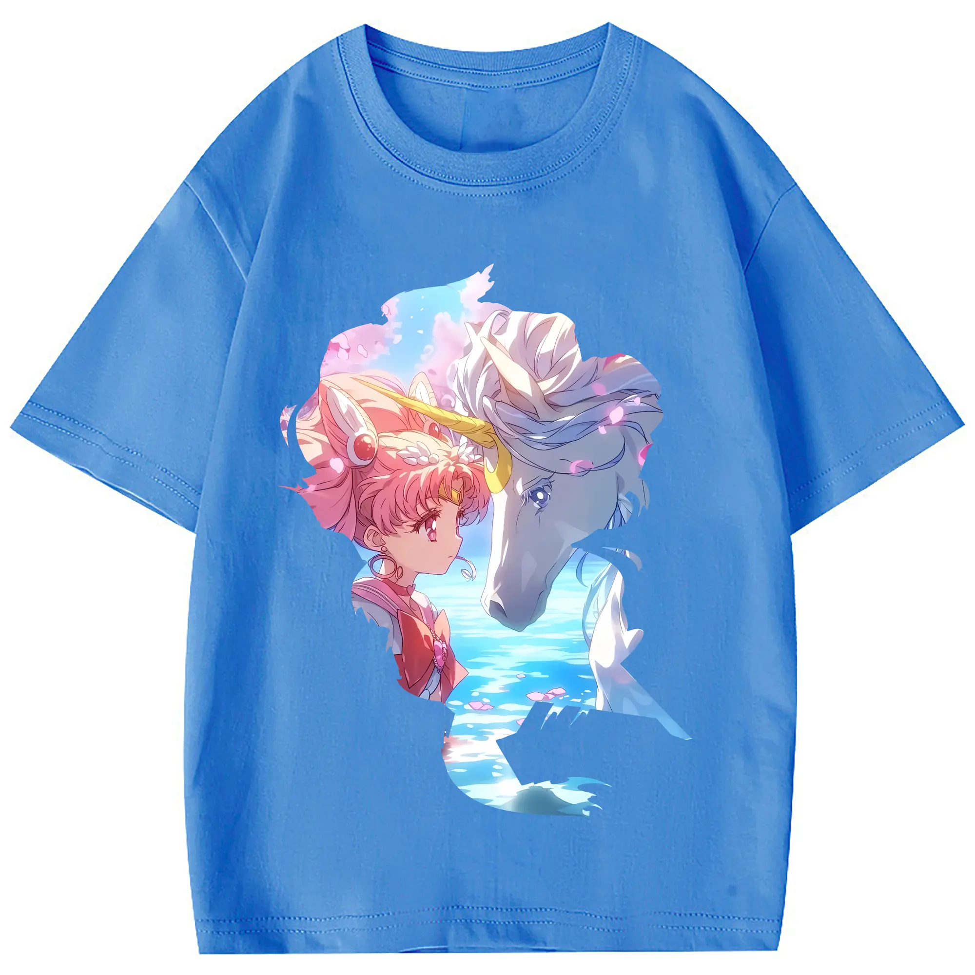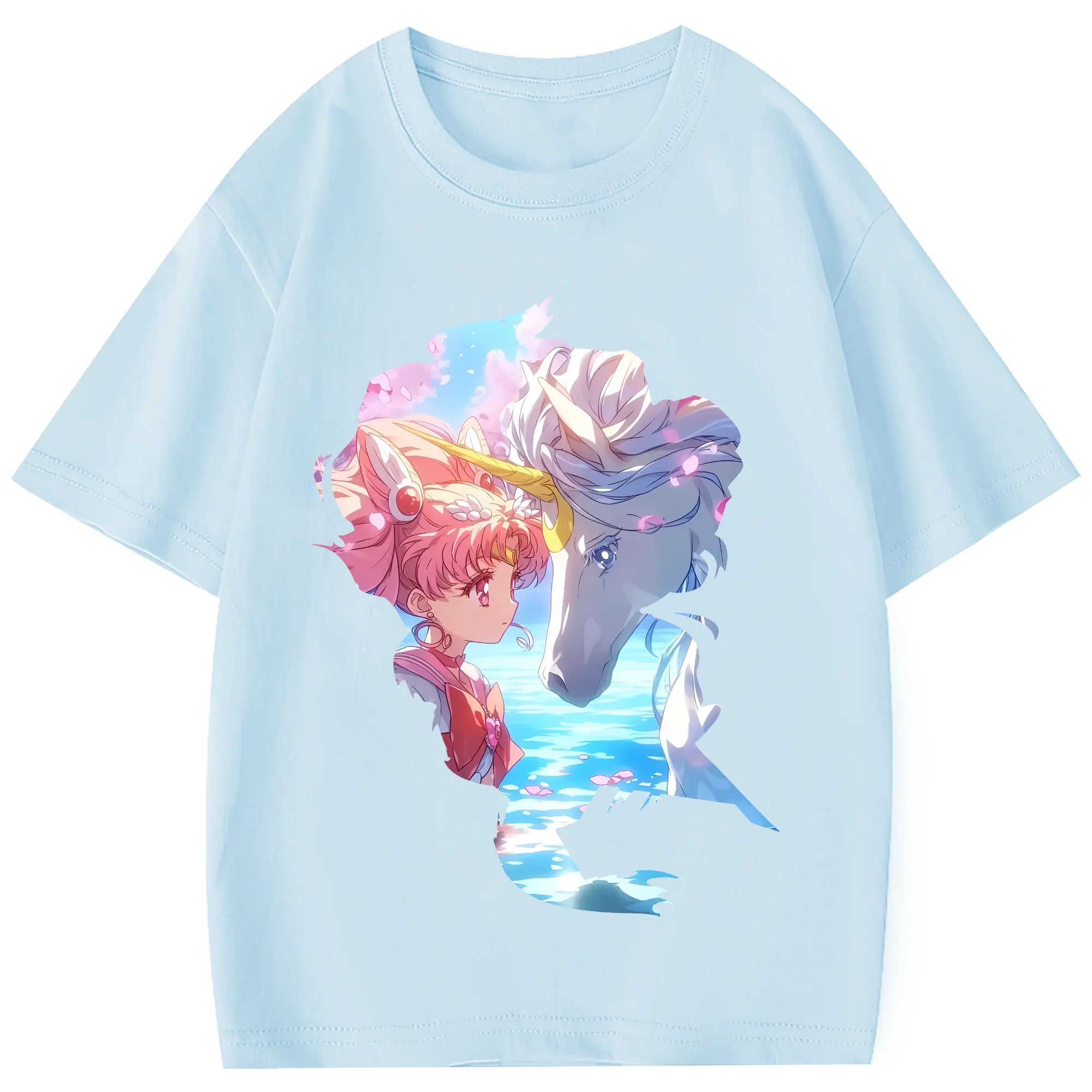 美少女戦士セーラームーン グッズ,ちびうさ - 綿100% 半袖Tシャツ ・ フロントプリント ・ 快適 通気性 ・ 日常使い 散歩 スポーツ用