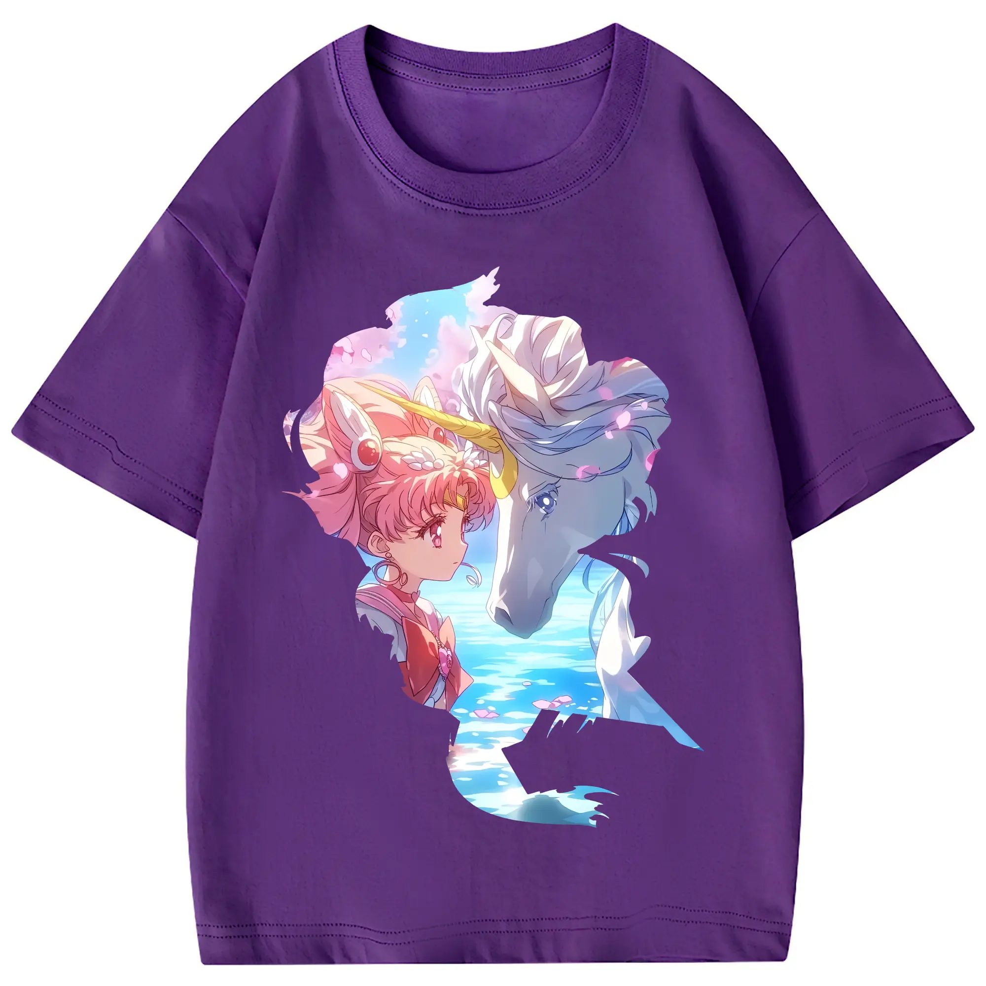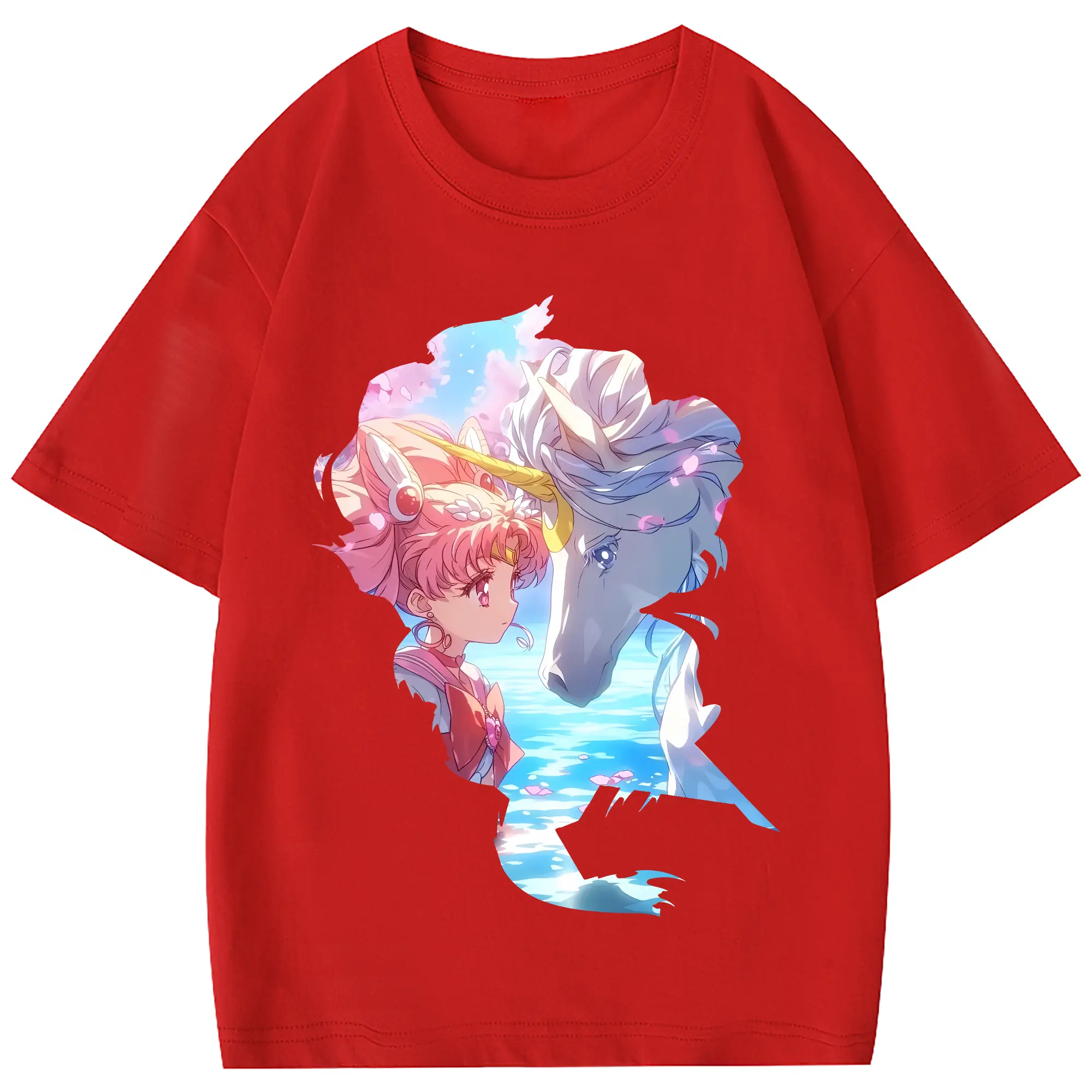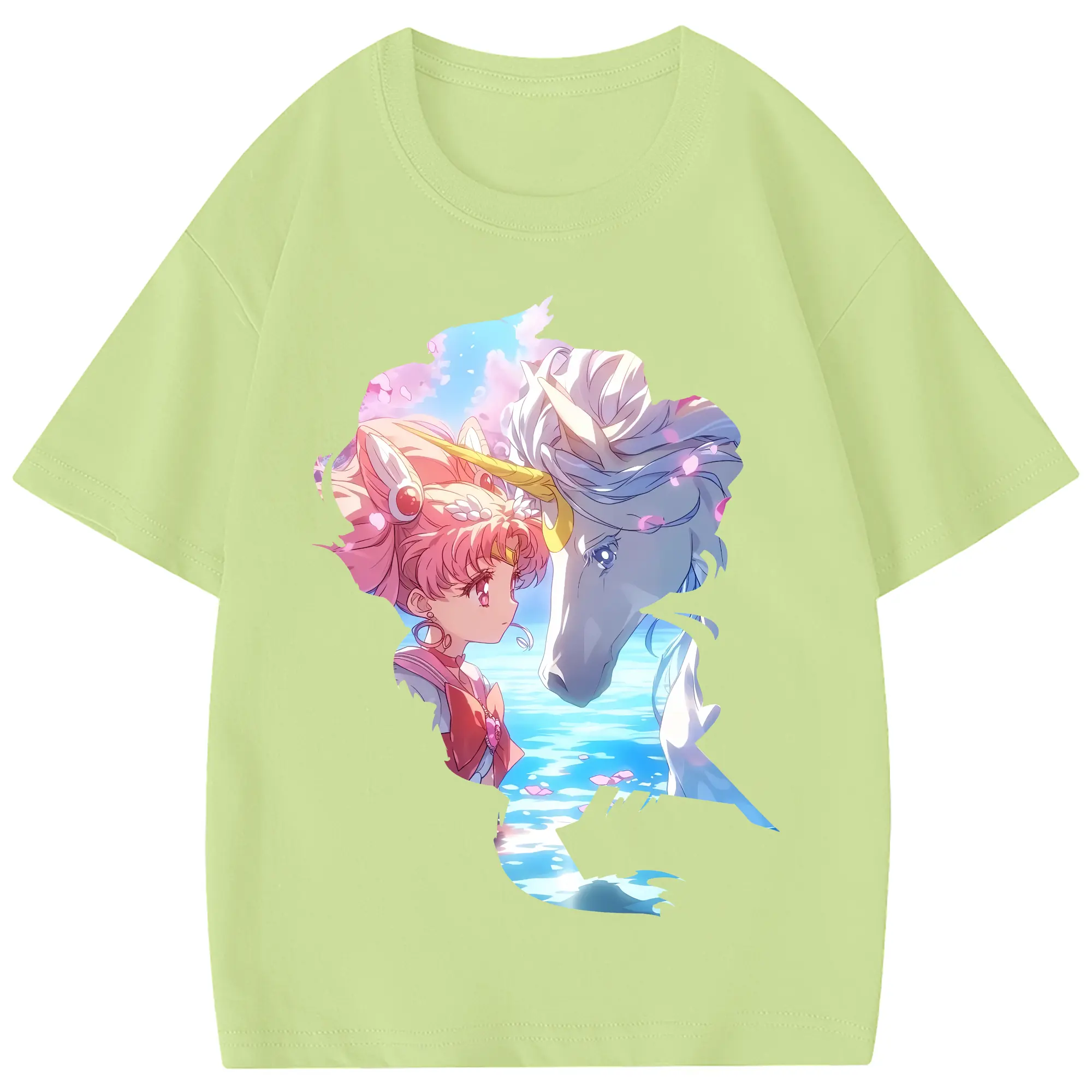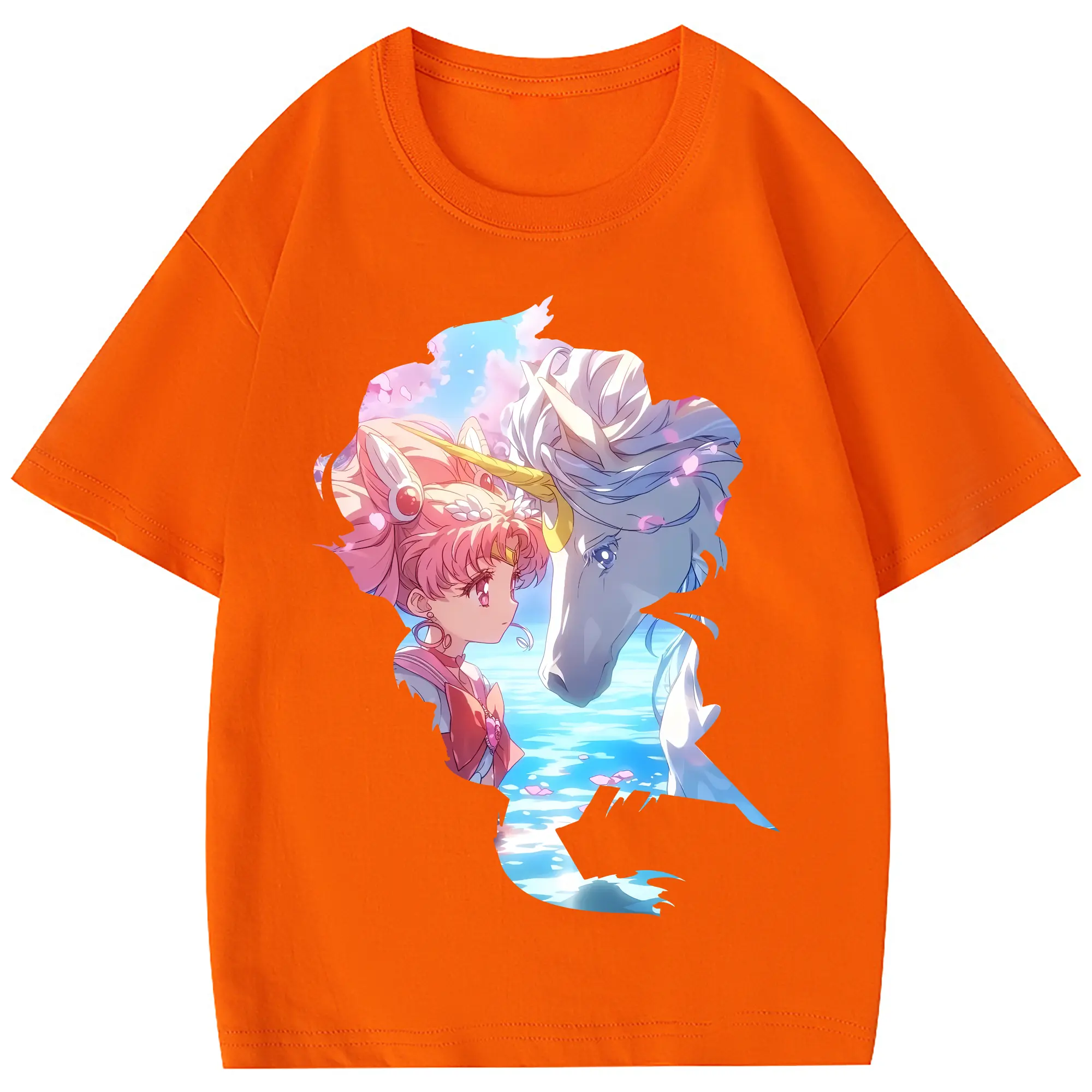 美少女戦士セーラームーン グッズ,ちびうさ - 綿100% 半袖Tシャツ ・ フロントプリント ・ 快適 通気性 ・ 日常使い 散歩 スポーツ用