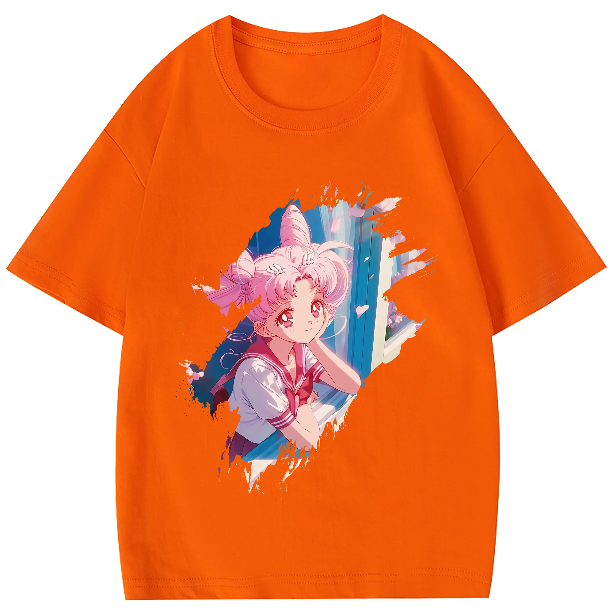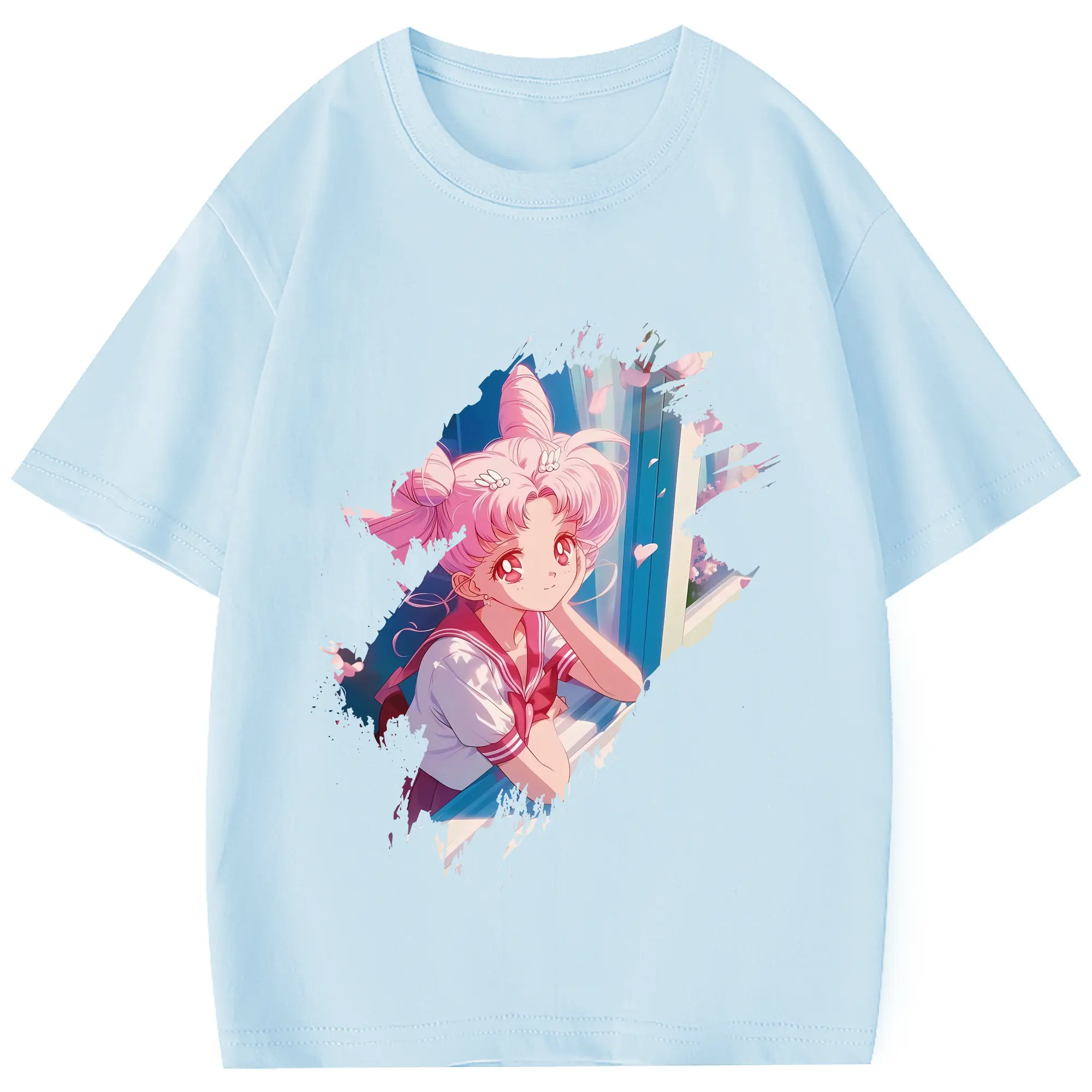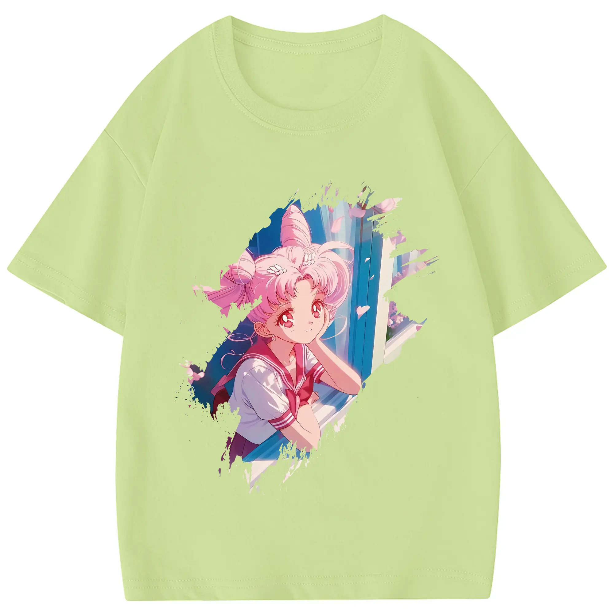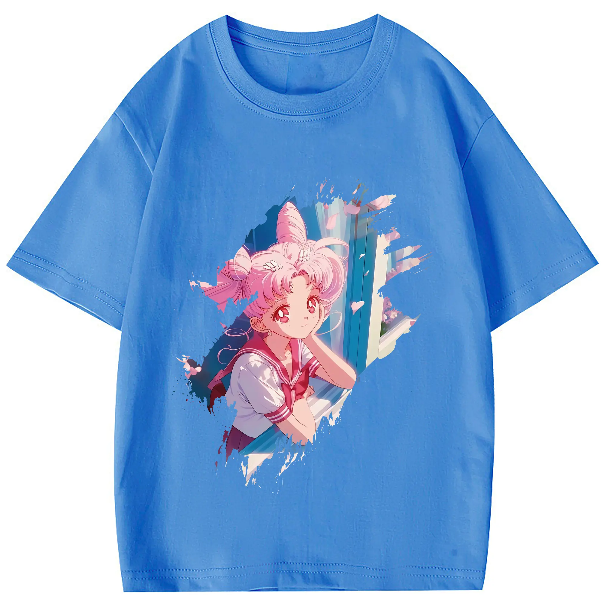 美少女戦士セーラームーン グッズ,ちびうさ - 綿100% 半袖Tシャツ ・ フロントプリント ・ 快適 通気性 ・ 日常使い 散歩 スポーツ用