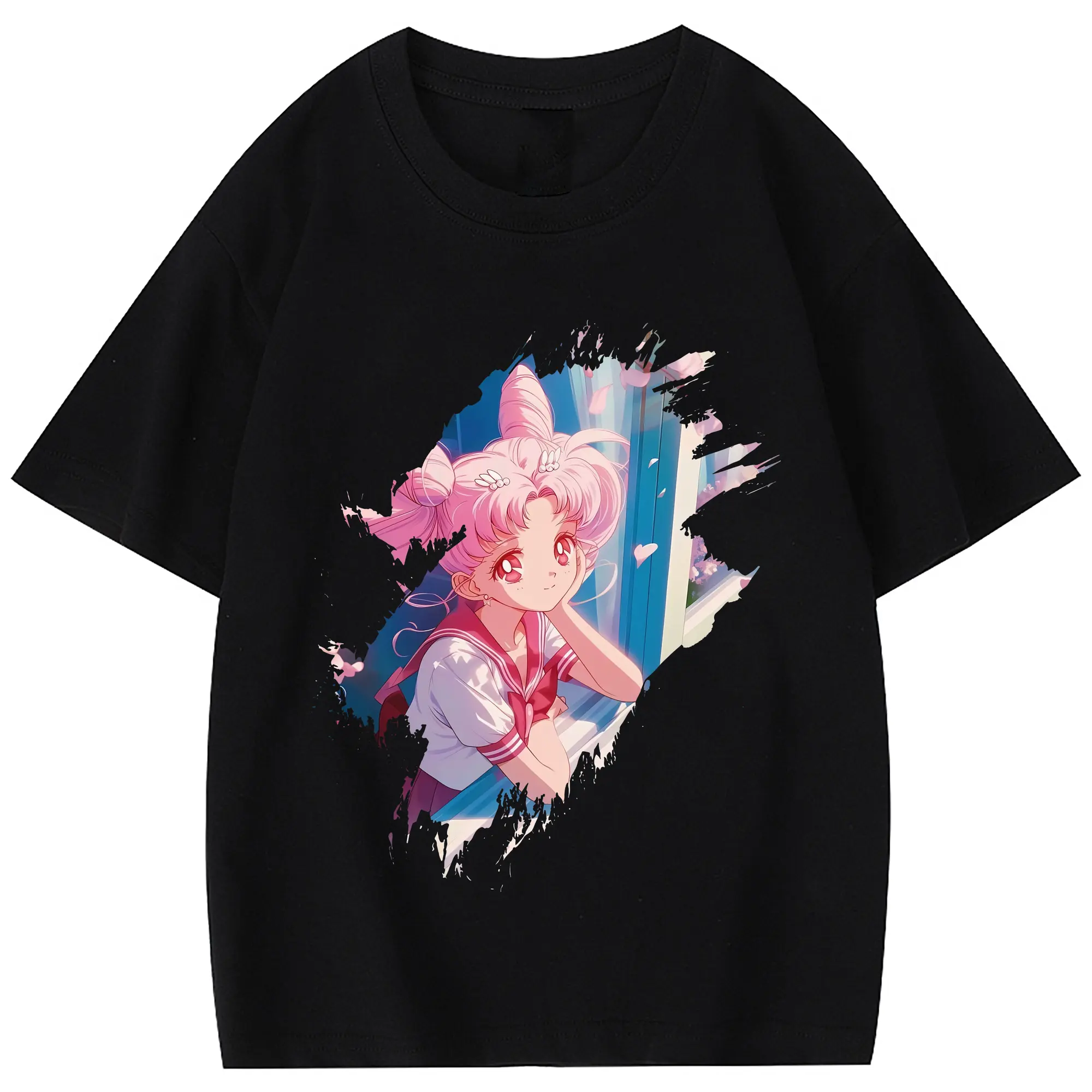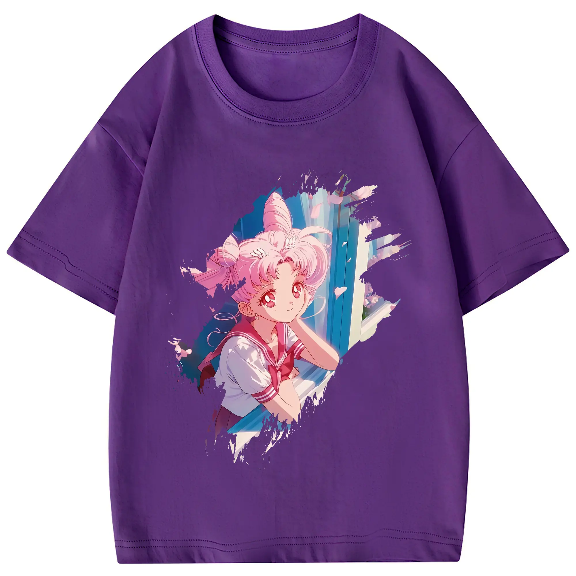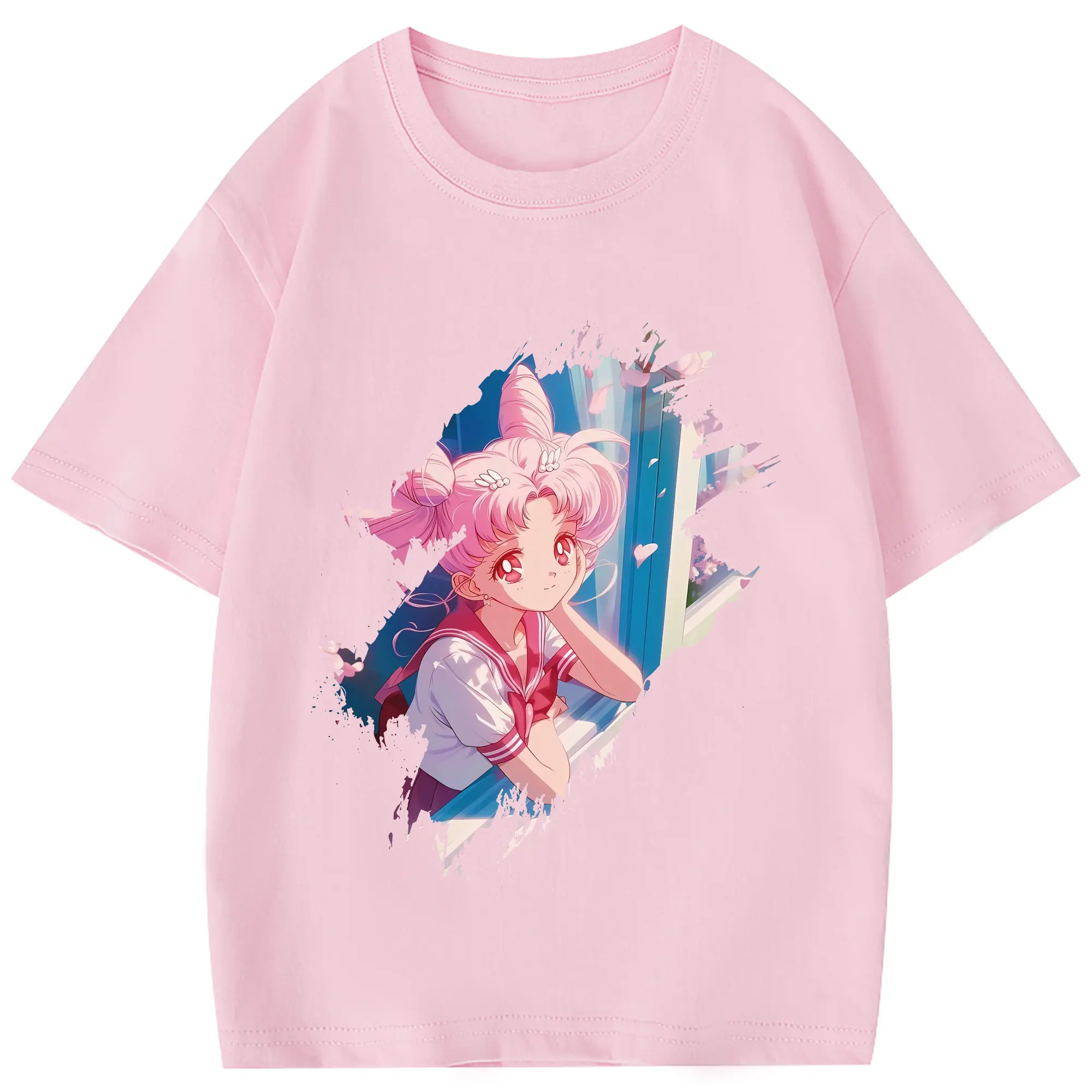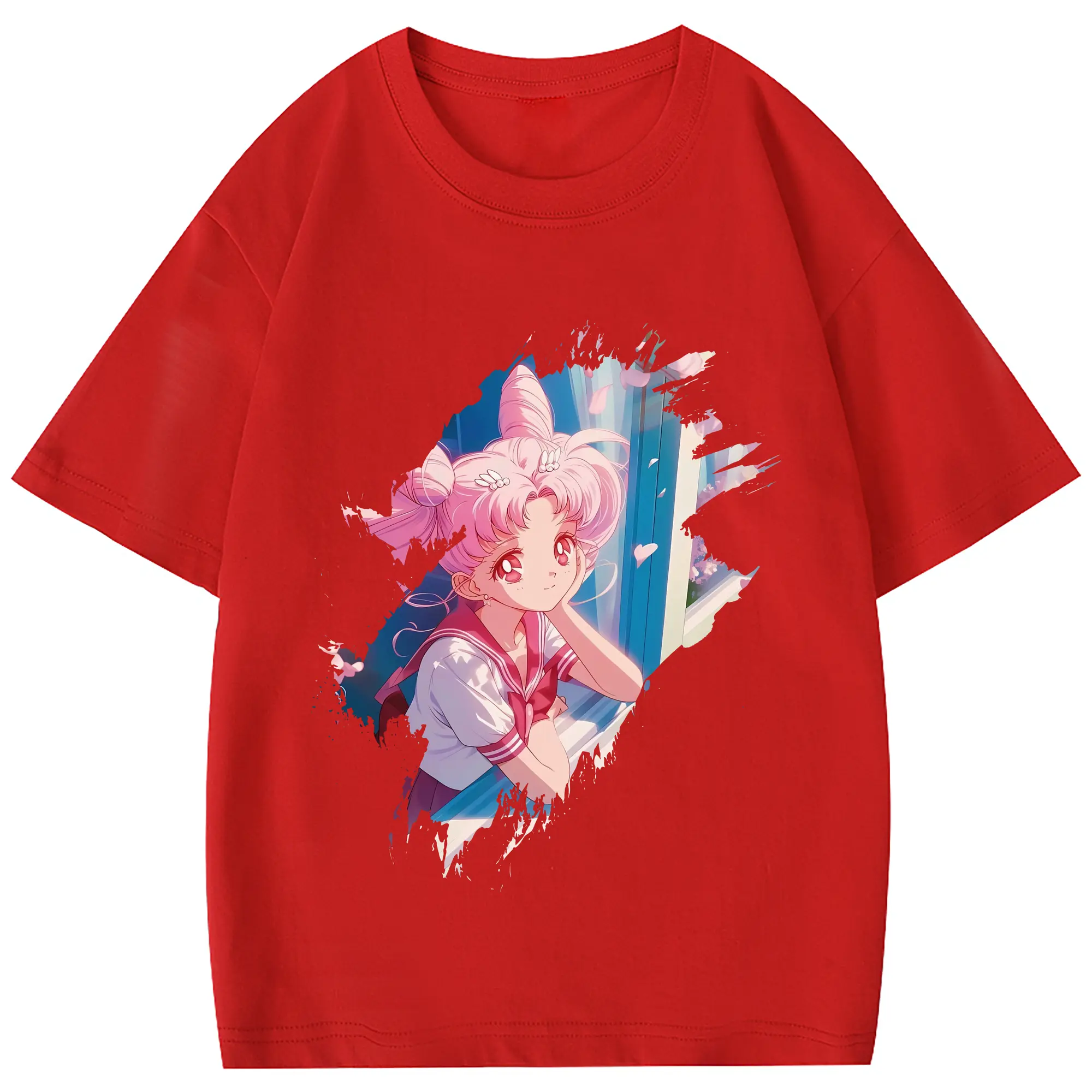 美少女戦士セーラームーン グッズ,ちびうさ - 綿100% 半袖Tシャツ ・ フロントプリント ・ 快適 通気性 ・ 日常使い 散歩 スポーツ用