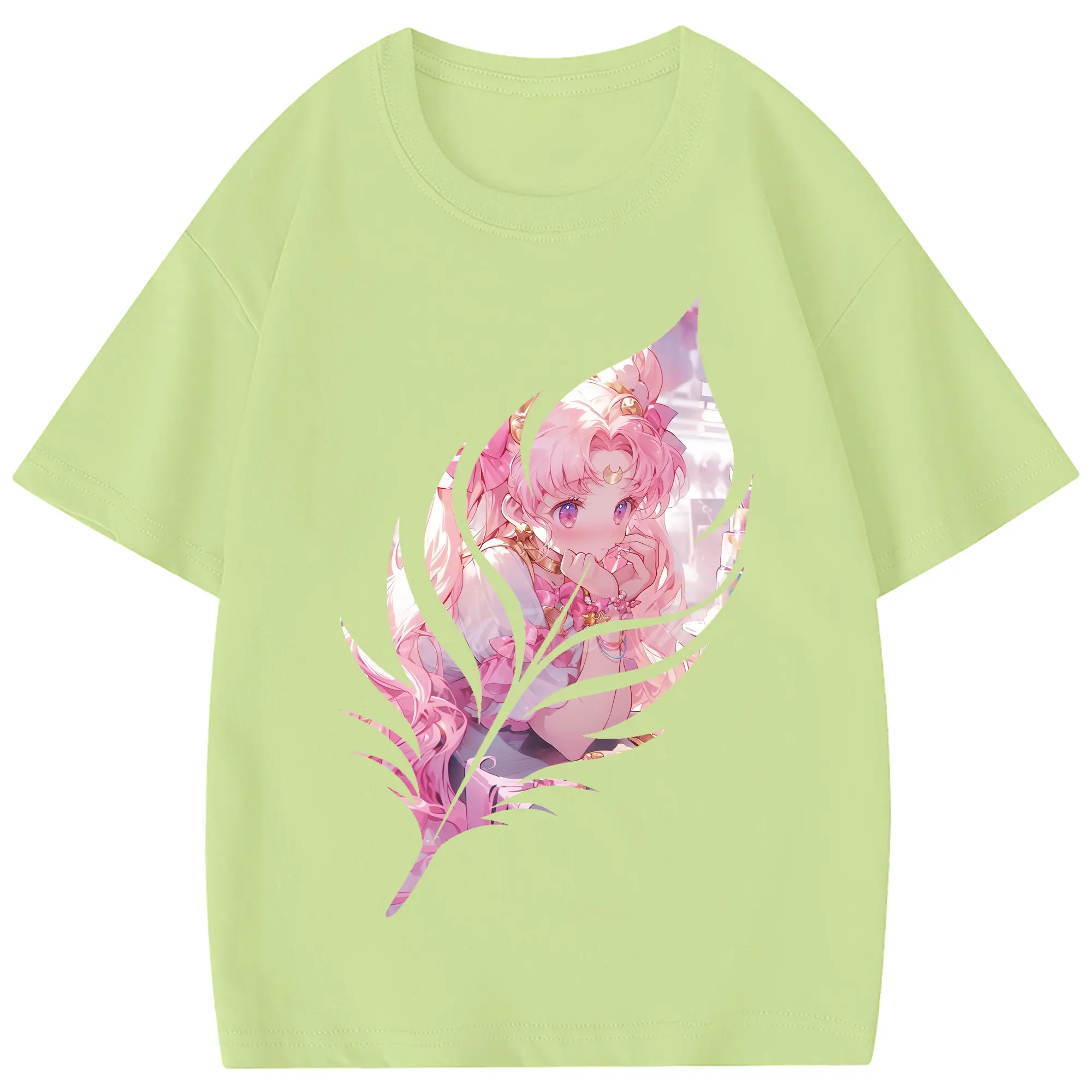美少女戦士セーラームーン グッズ,ちびうさ - 綿100% 半袖Tシャツ ・ フロントプリント ・ 快適 通気性 ・ 日常使い 散歩 スポーツ用
