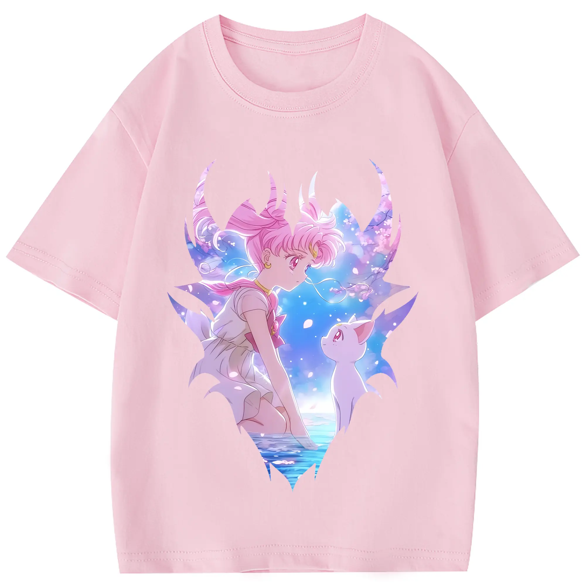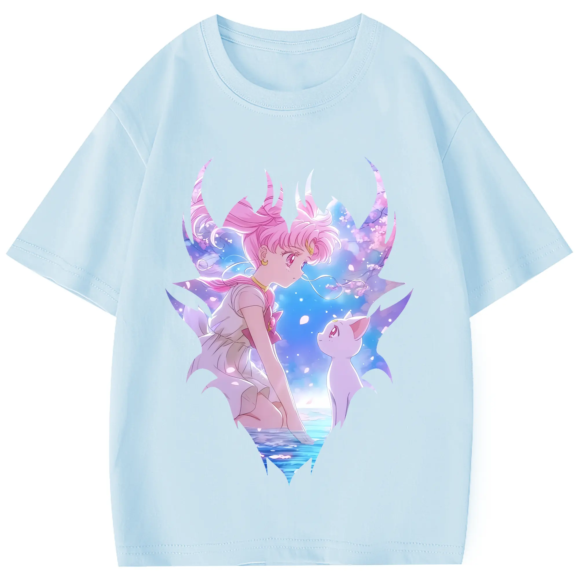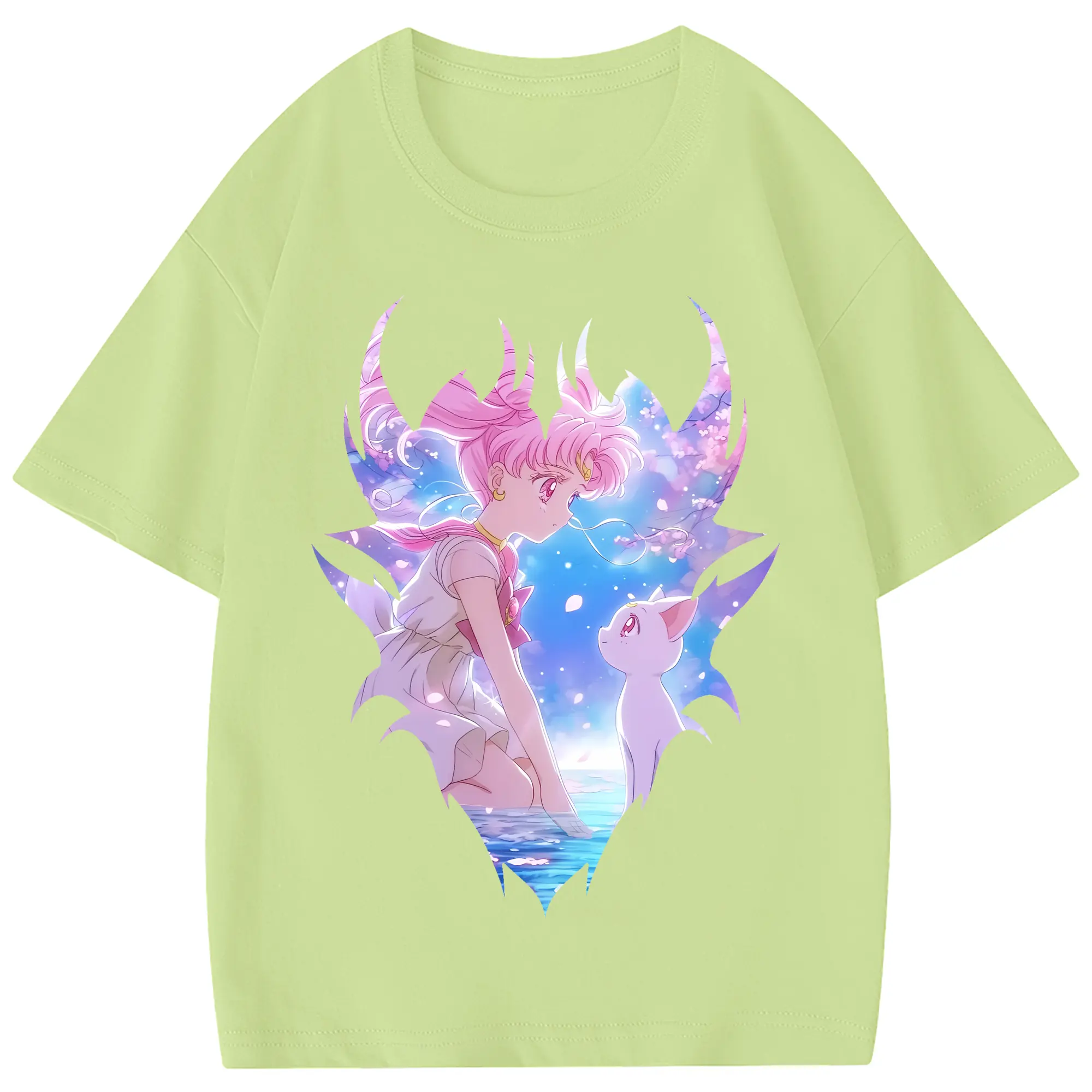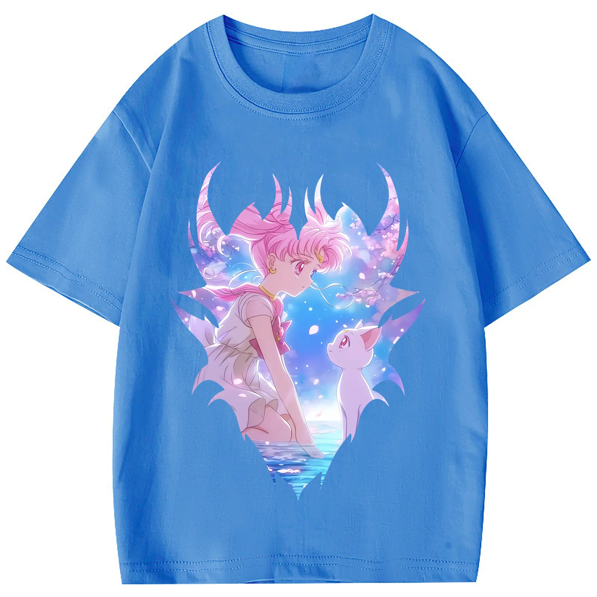 美少女戦士セーラームーン グッズ,ちびうさ - 綿100% 半袖Tシャツ ・ フロントプリント ・ 快適 通気性 ・ 日常使い 散歩 スポーツ用