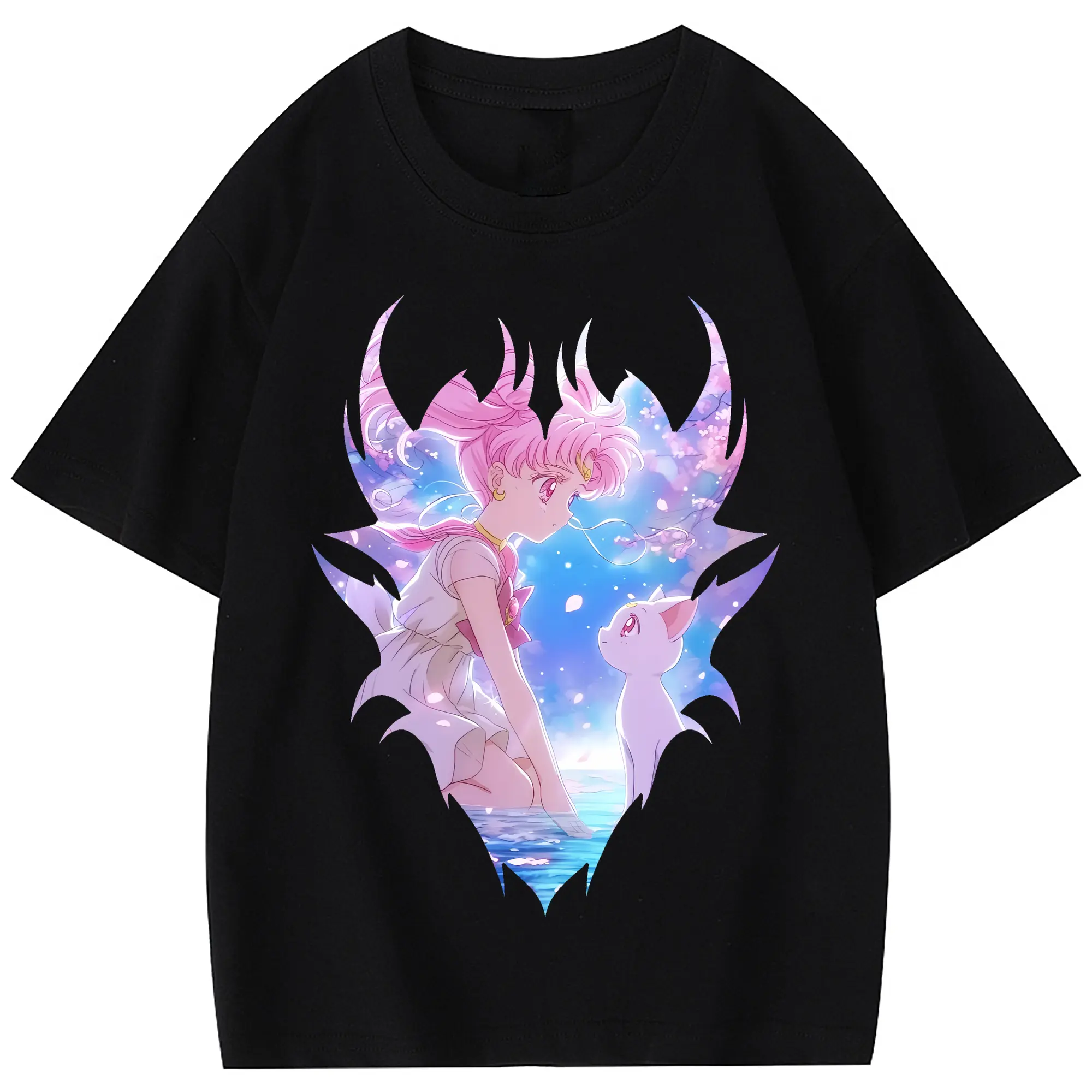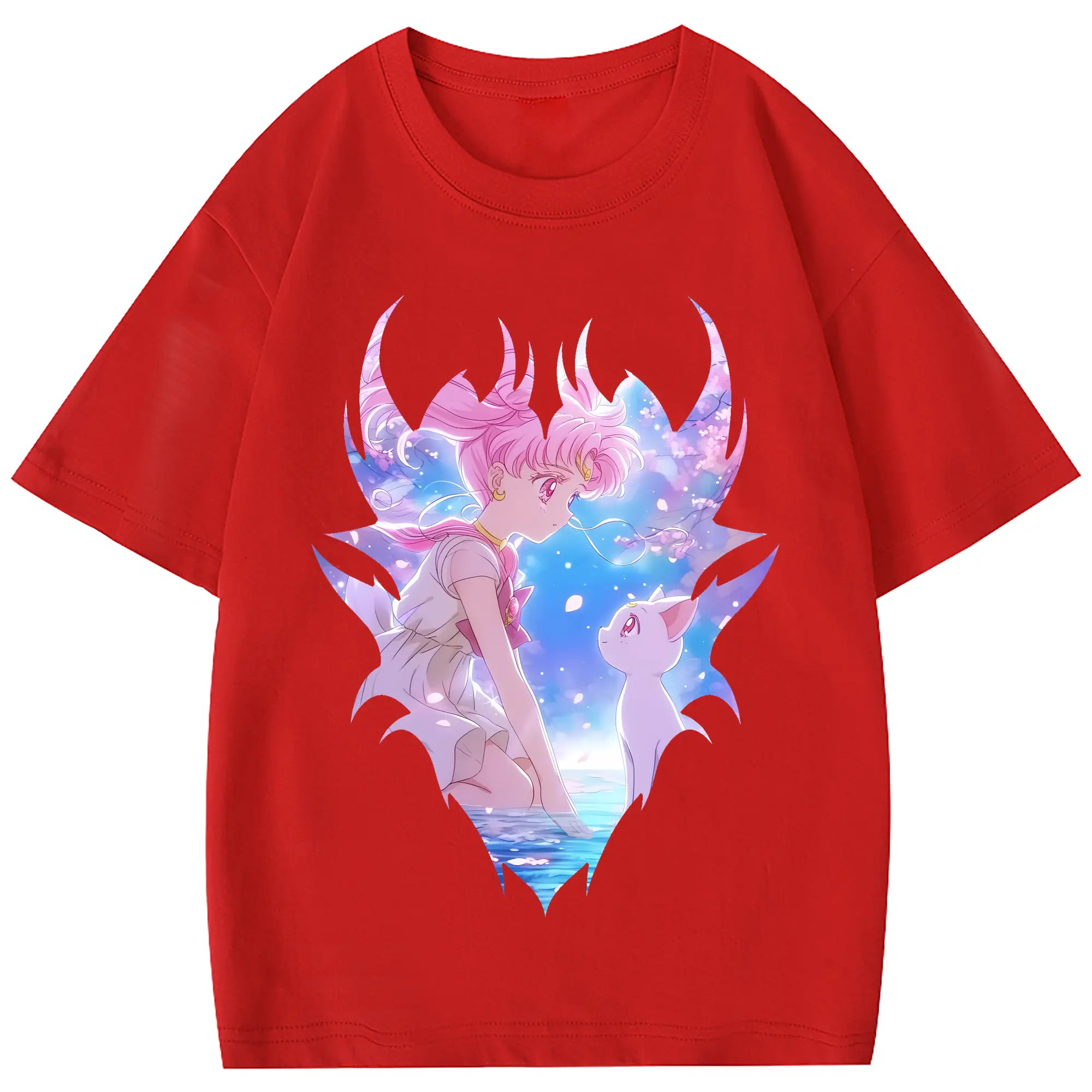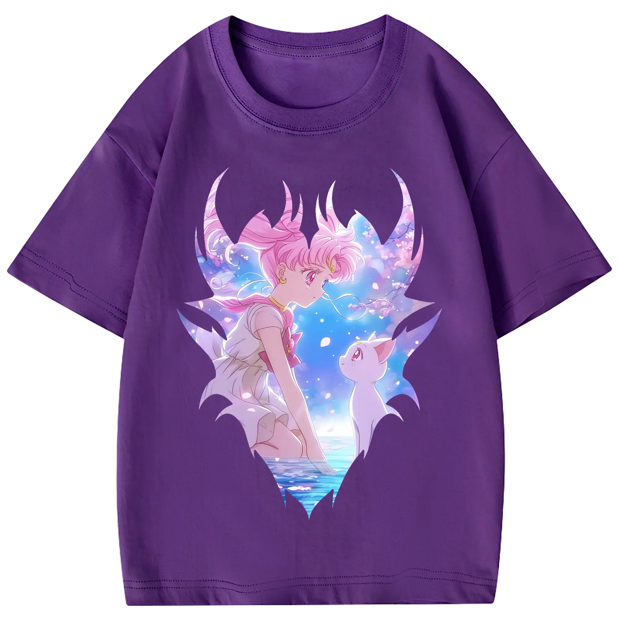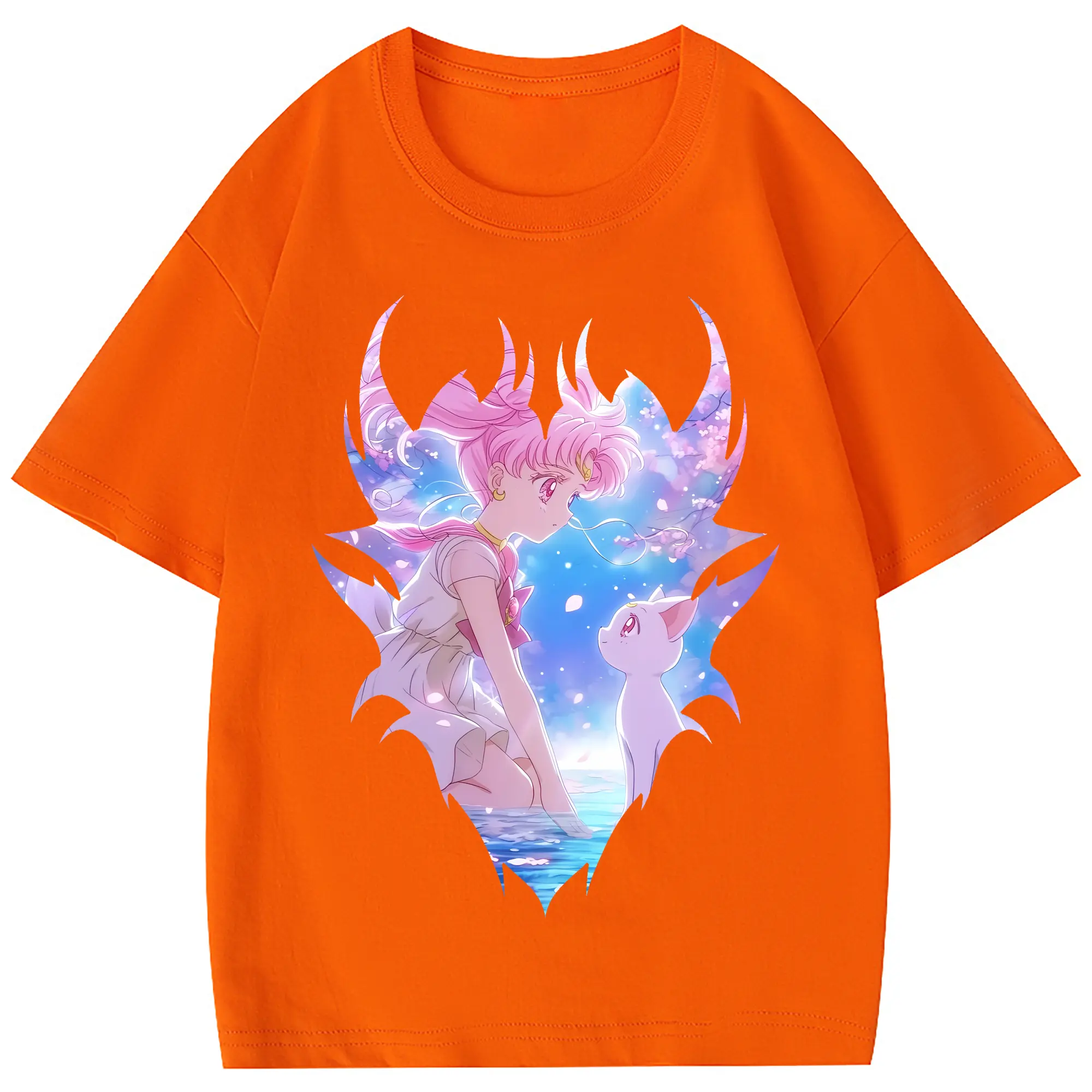 美少女戦士セーラームーン グッズ,ちびうさ - 綿100% 半袖Tシャツ ・ フロントプリント ・ 快適 通気性 ・ 日常使い 散歩 スポーツ用