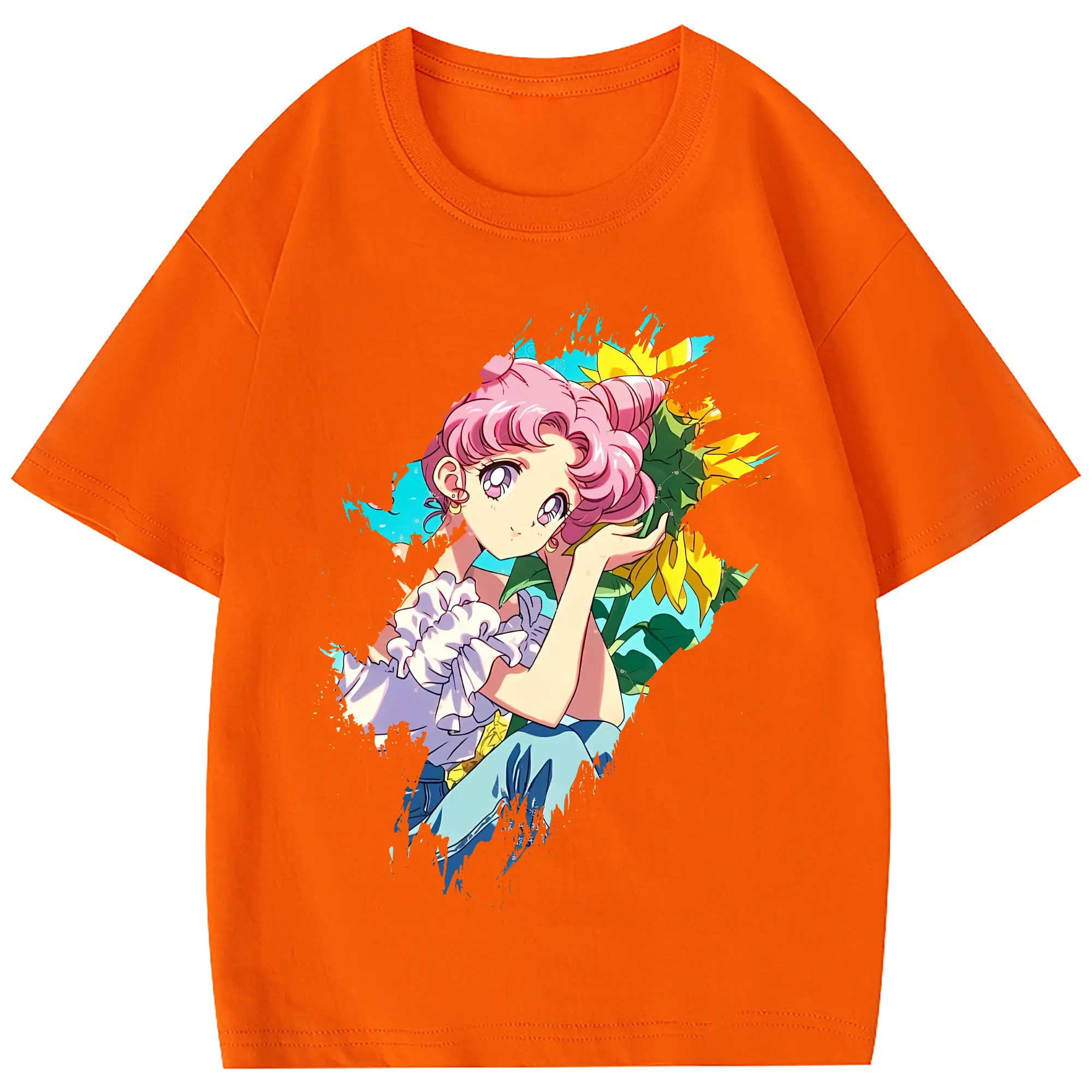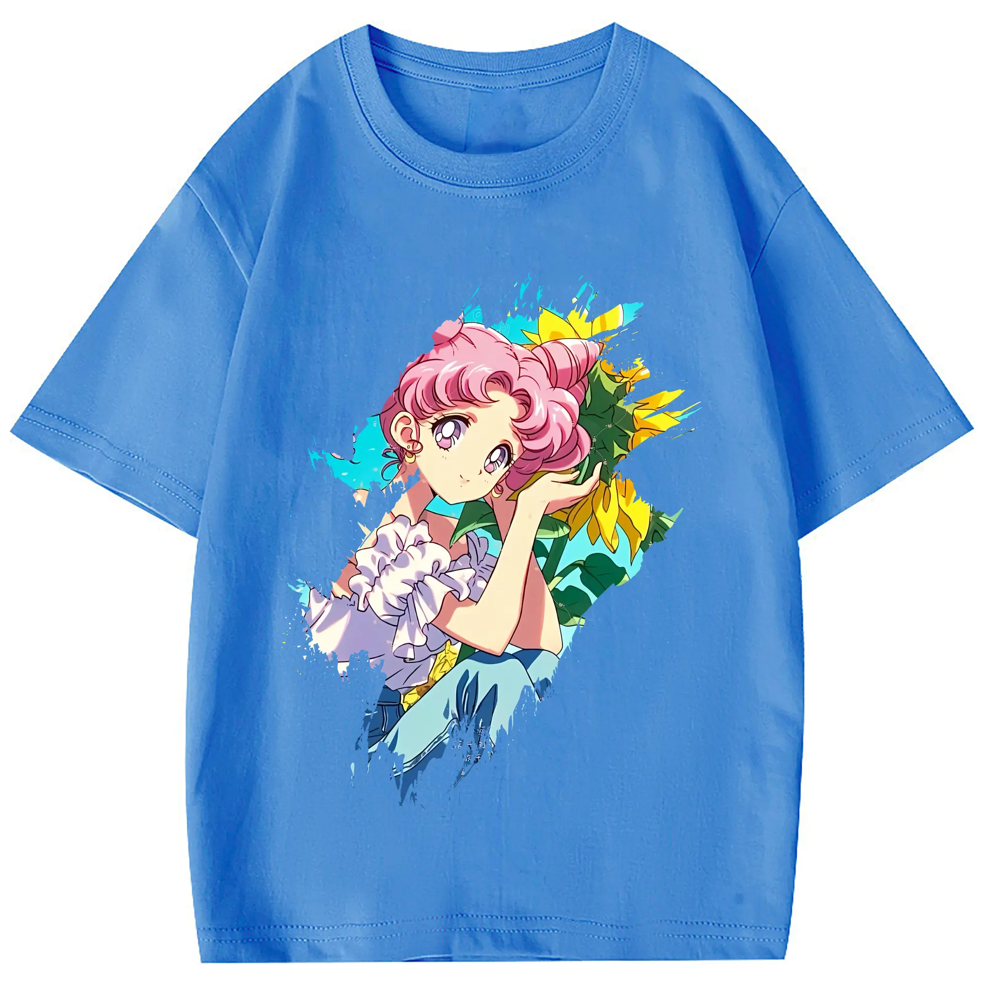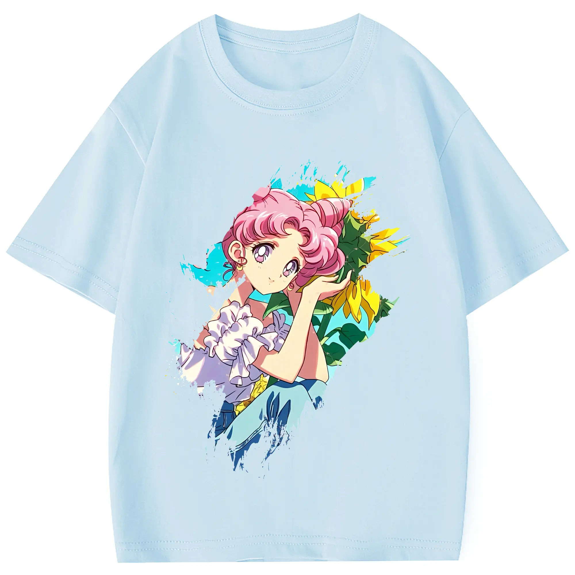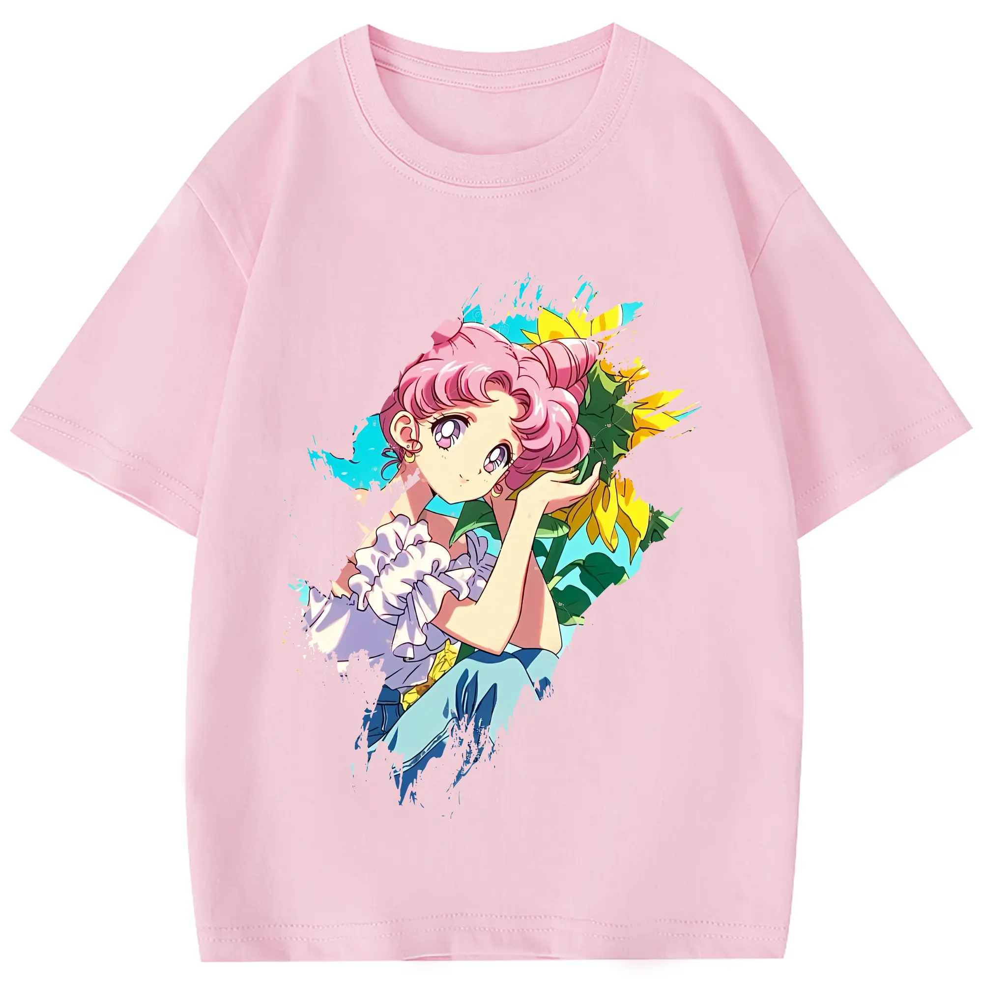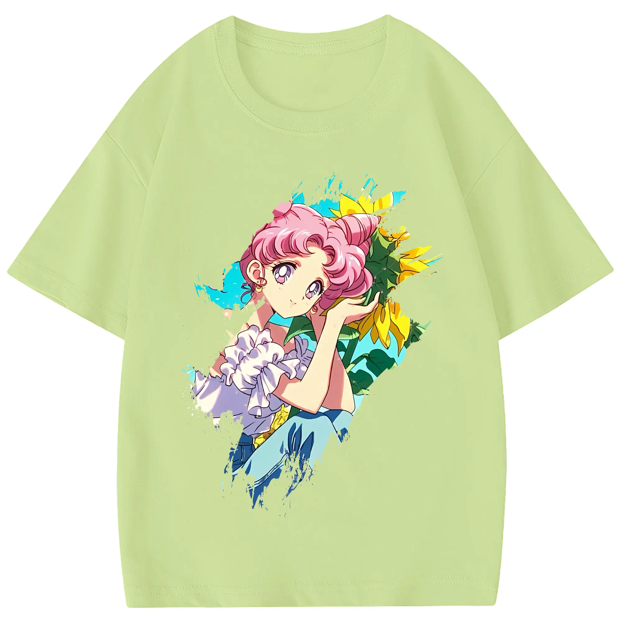 美少女戦士セーラームーン グッズ,ちびうさ - 綿100% 半袖Tシャツ ・ フロントプリント ・ 快適 通気性 ・ 日常使い 散歩 スポーツ用